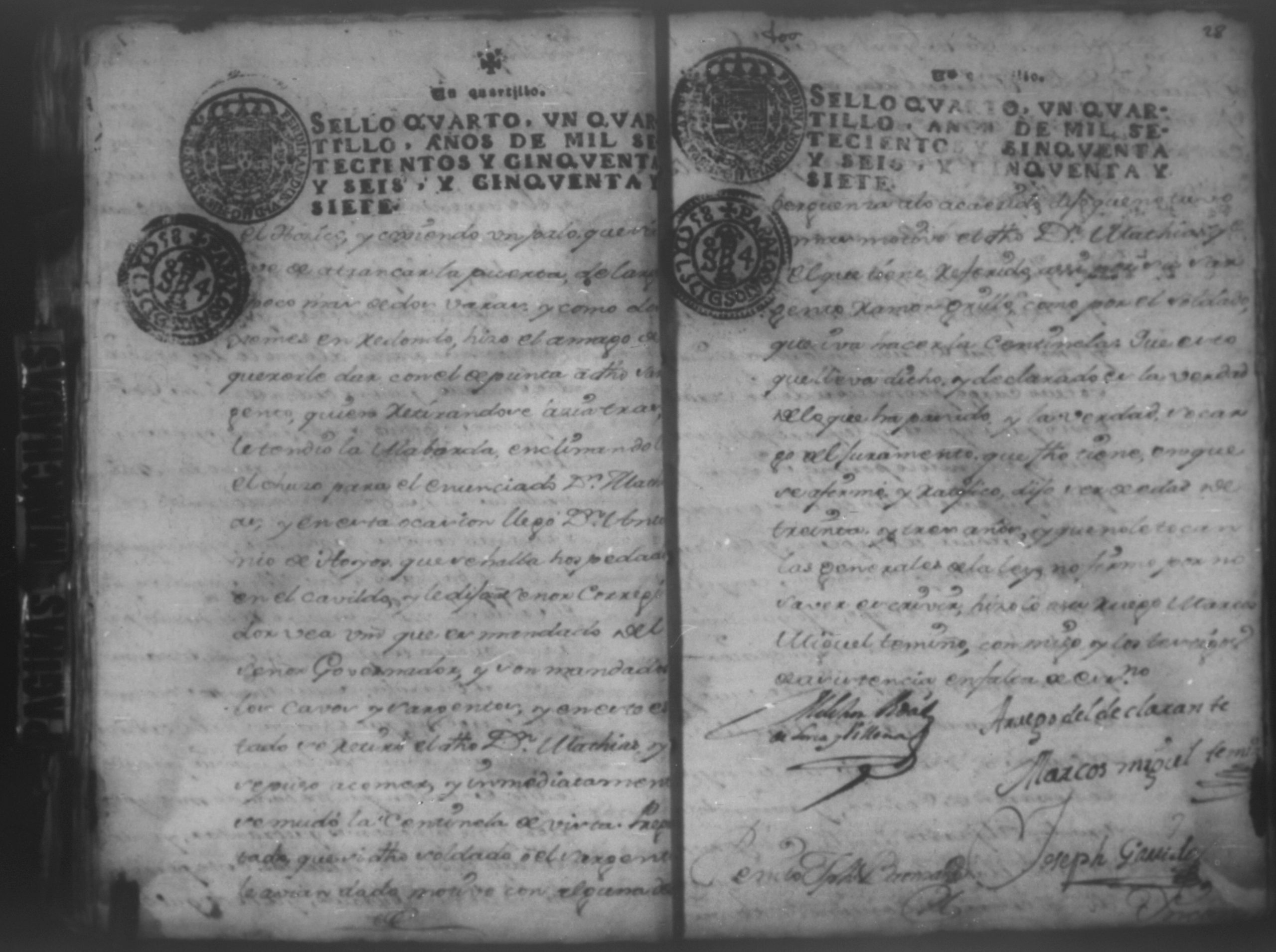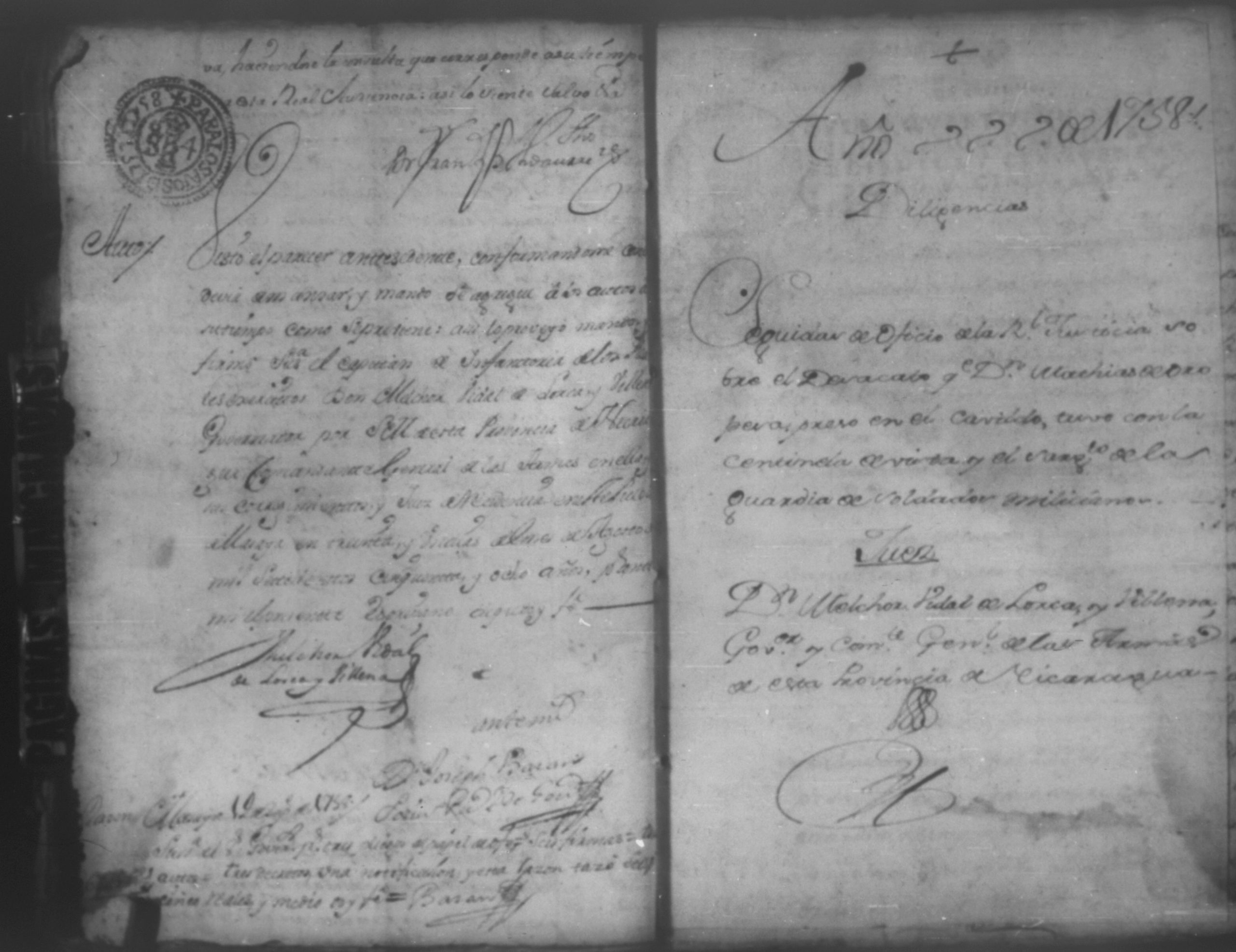 Temática: Audiencia de Nicaragua. Año de 1758. N°. 1. Don Ambrosio de Cortedano pone demanda a Don Matias de Oropesa por entrega de una mula.