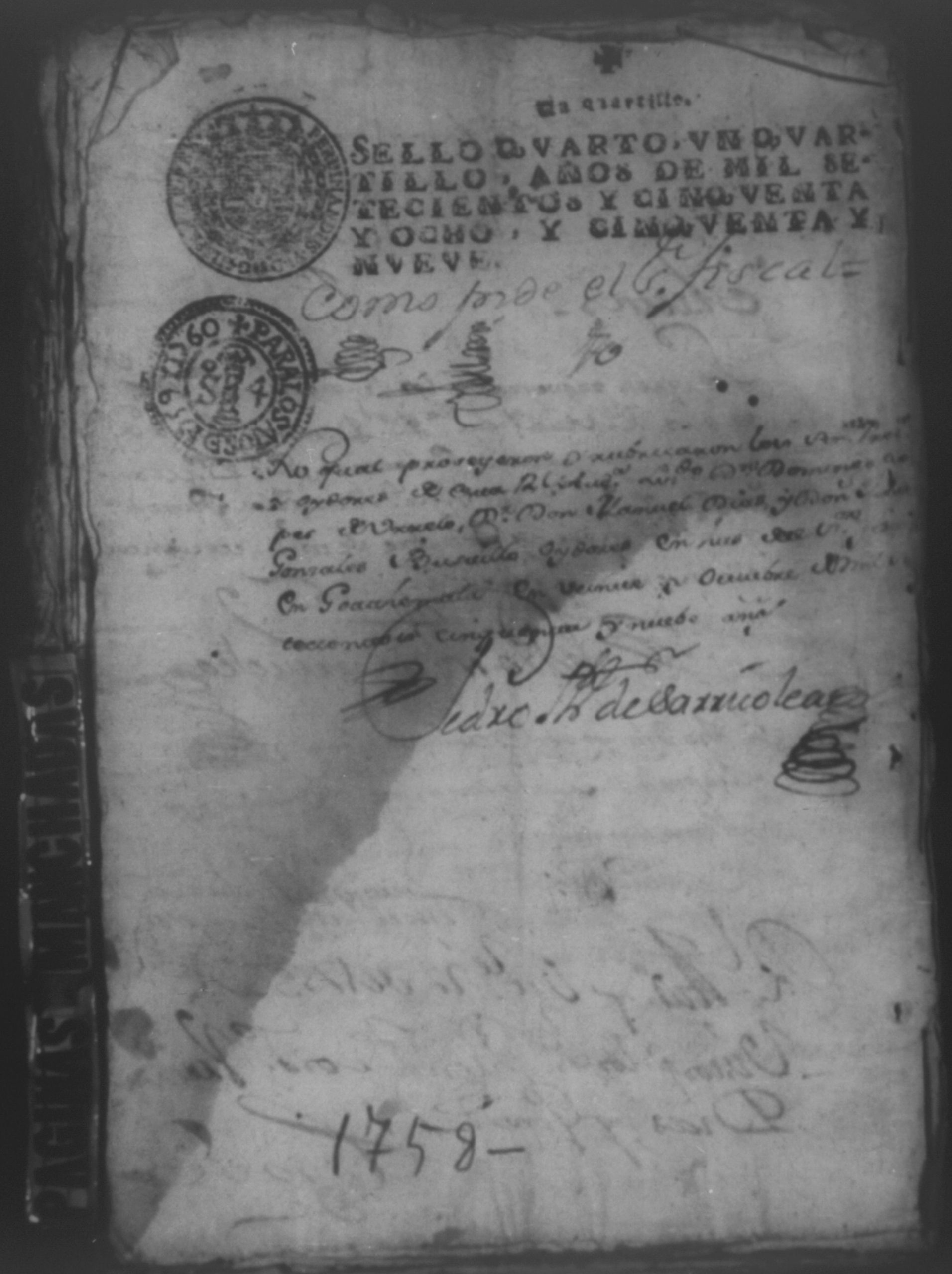 Temática: Audiencia de Nicaragua. Año de 1758. N°. 1. Don Ambrosio de Cortedano pone demanda a Don Matias de Oropesa por entrega de una mula.