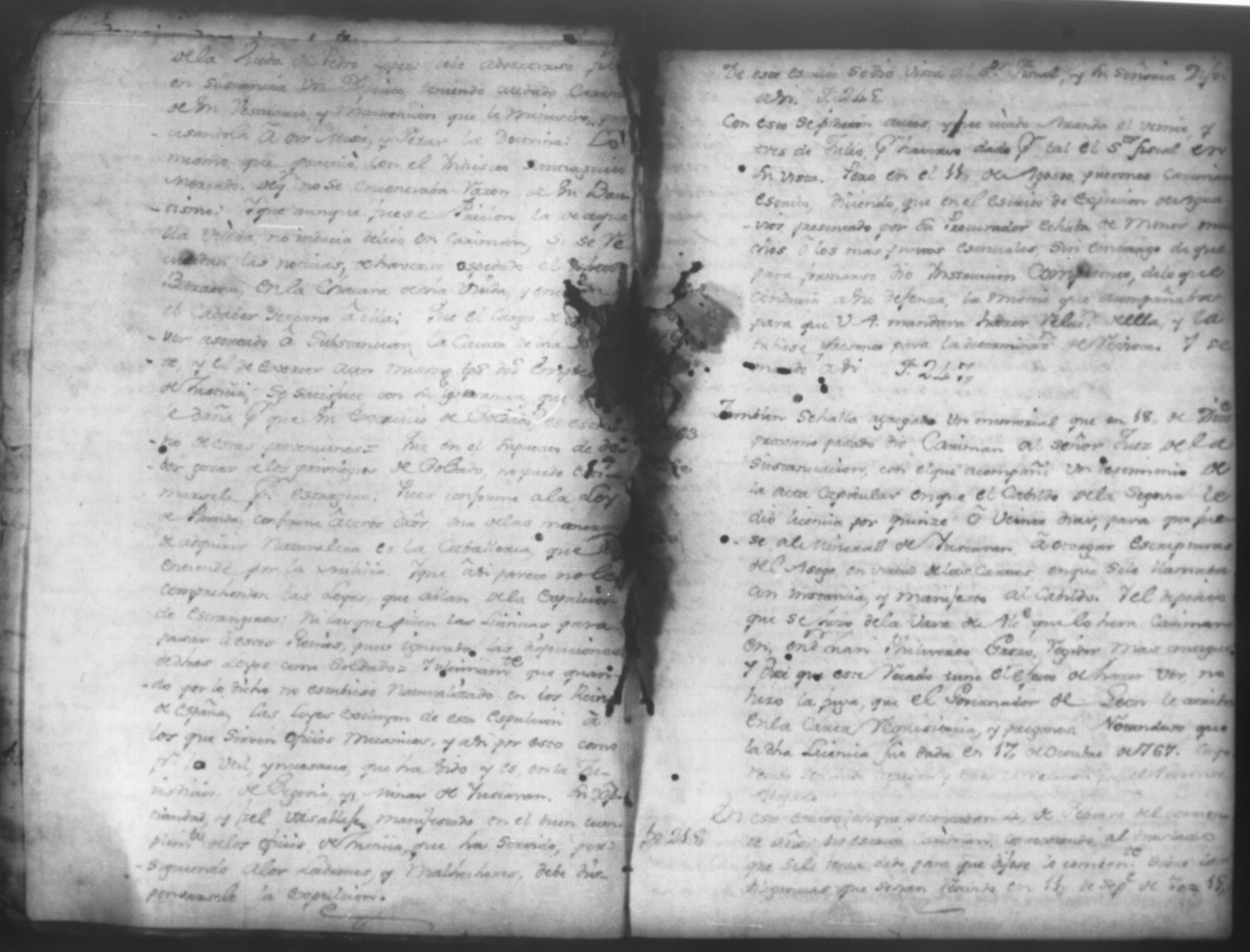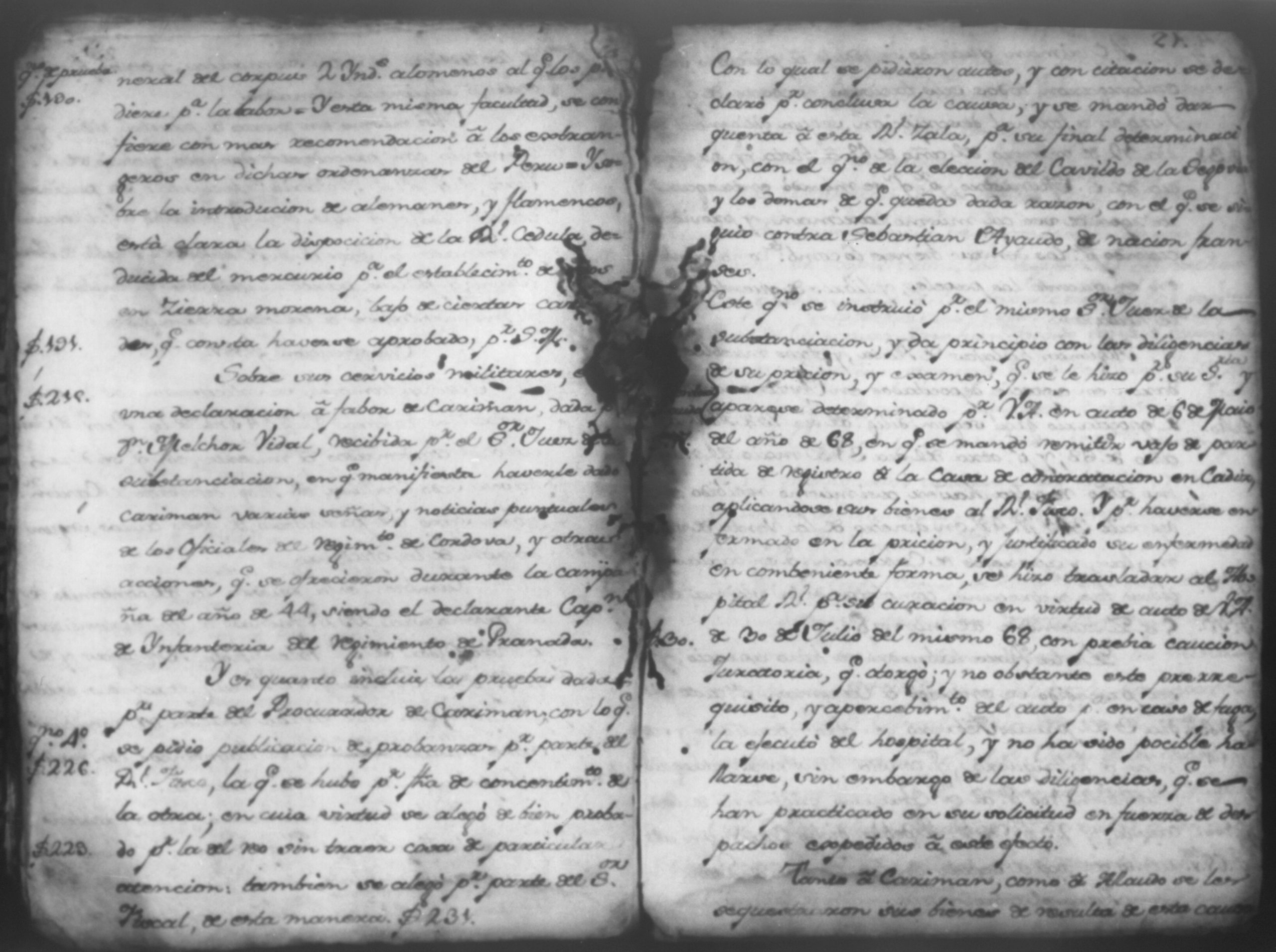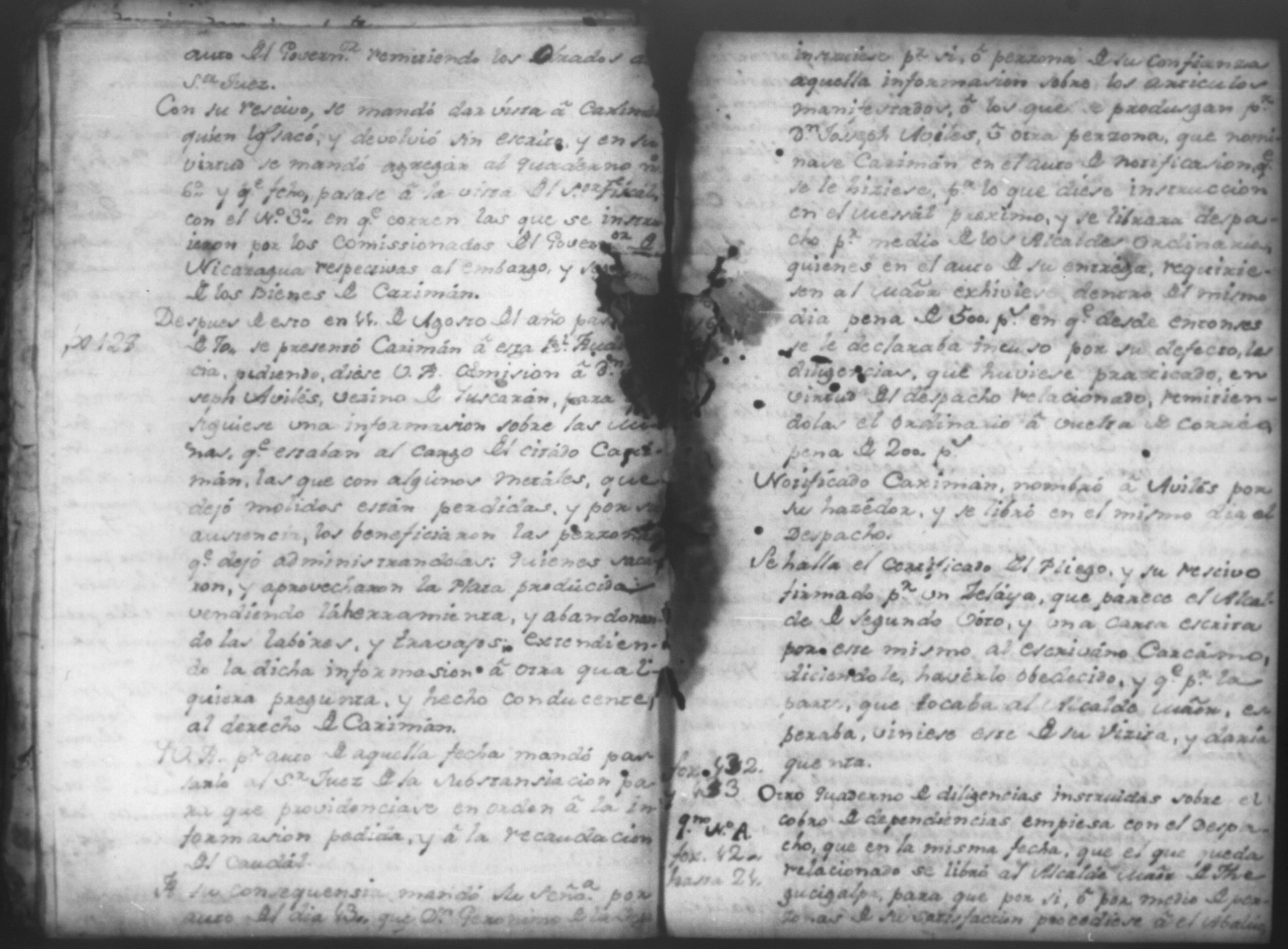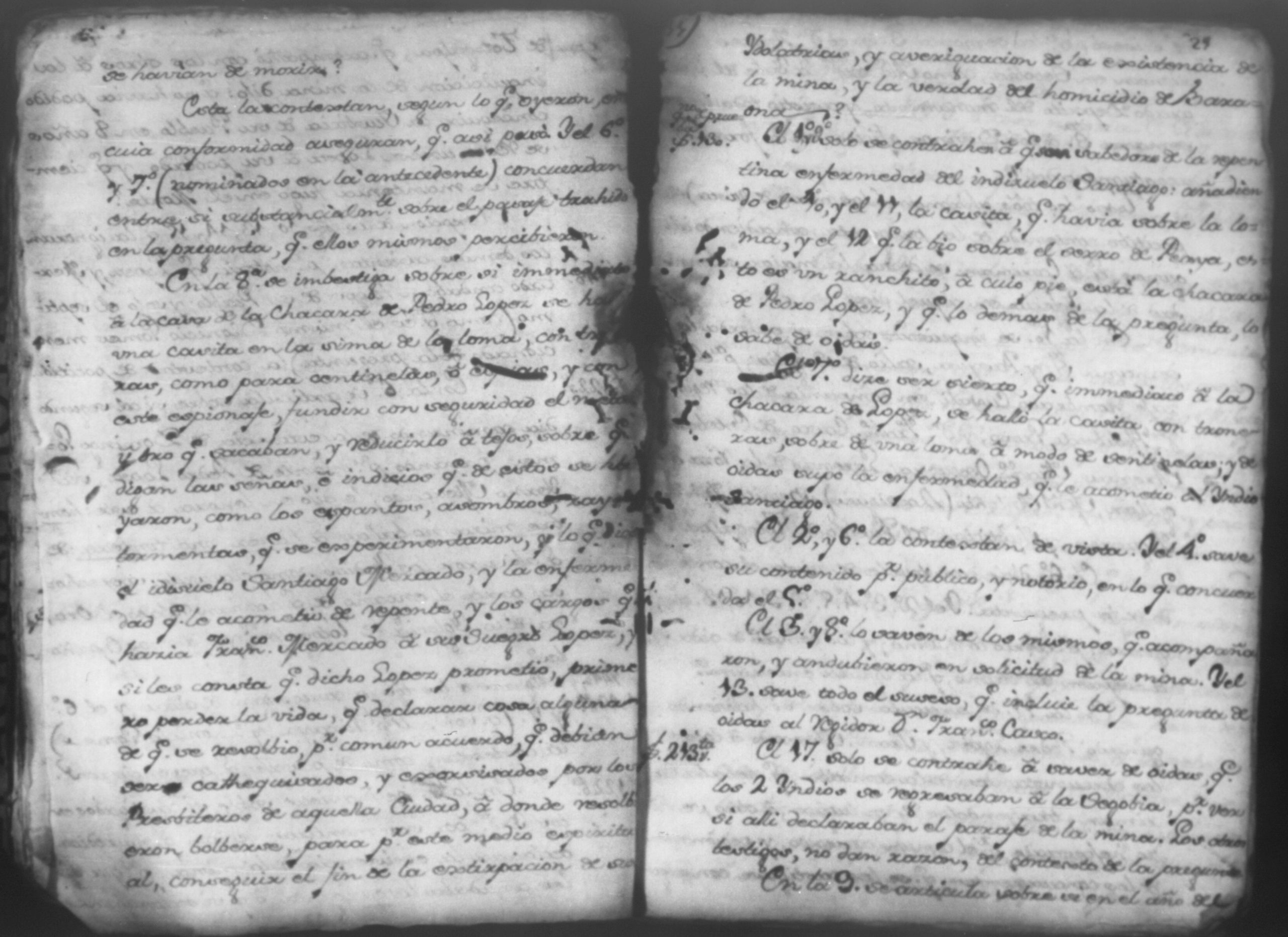 Temática: Año de 1771. Don Andres Cariman, Alcalde Ordinario de la Segovia y Don Philiberto [Groso], se ha seguido causa criminal en esta Real Audiencia en grado de cierta por la muerte que resulto en Pedro Lopez, indio, sobre el descubrimiento de una mina, cuyos autos dieron principio por los seguidos a pedimiento de la mulata Maria Geronima de Herrera viuda de Blas Barahona