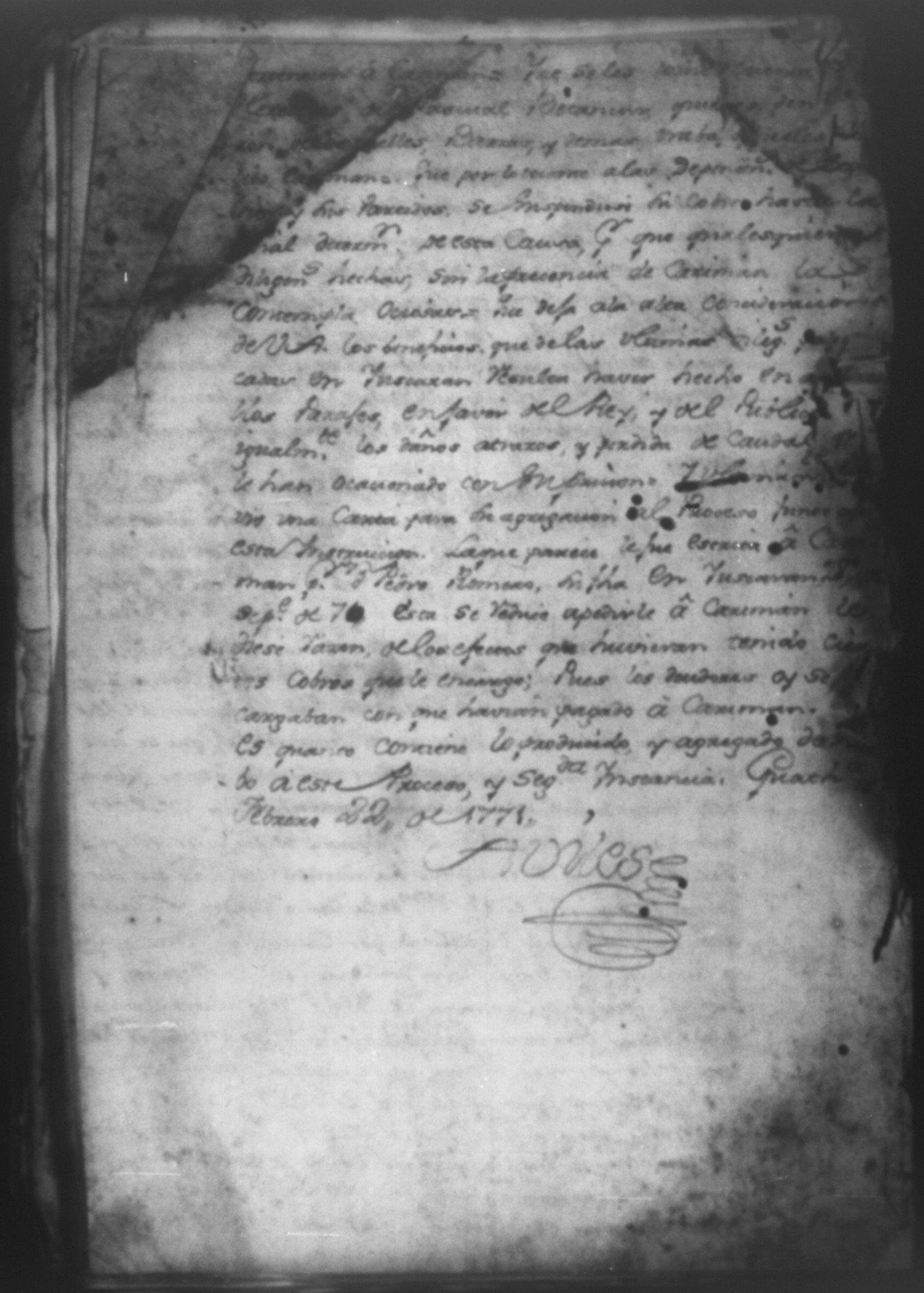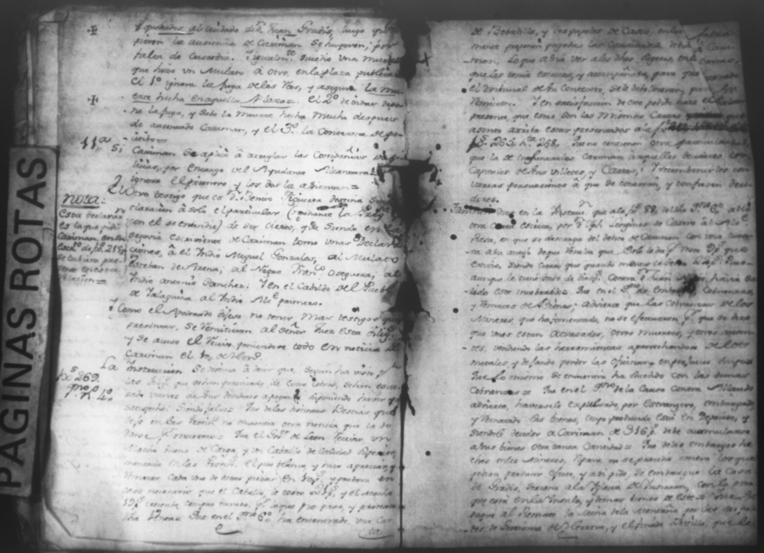 Temática: Año de 1771. Don Andres Cariman, Alcalde Ordinario de la Segovia y Don Philiberto [Groso], se ha seguido causa criminal en esta Real Audiencia en grado de cierta por la muerte que resulto en Pedro Lopez, indio, sobre el descubrimiento de una mina, cuyos autos dieron principio por los seguidos a pedimiento de la mulata Maria Geronima de Herrera viuda de Blas Barahona