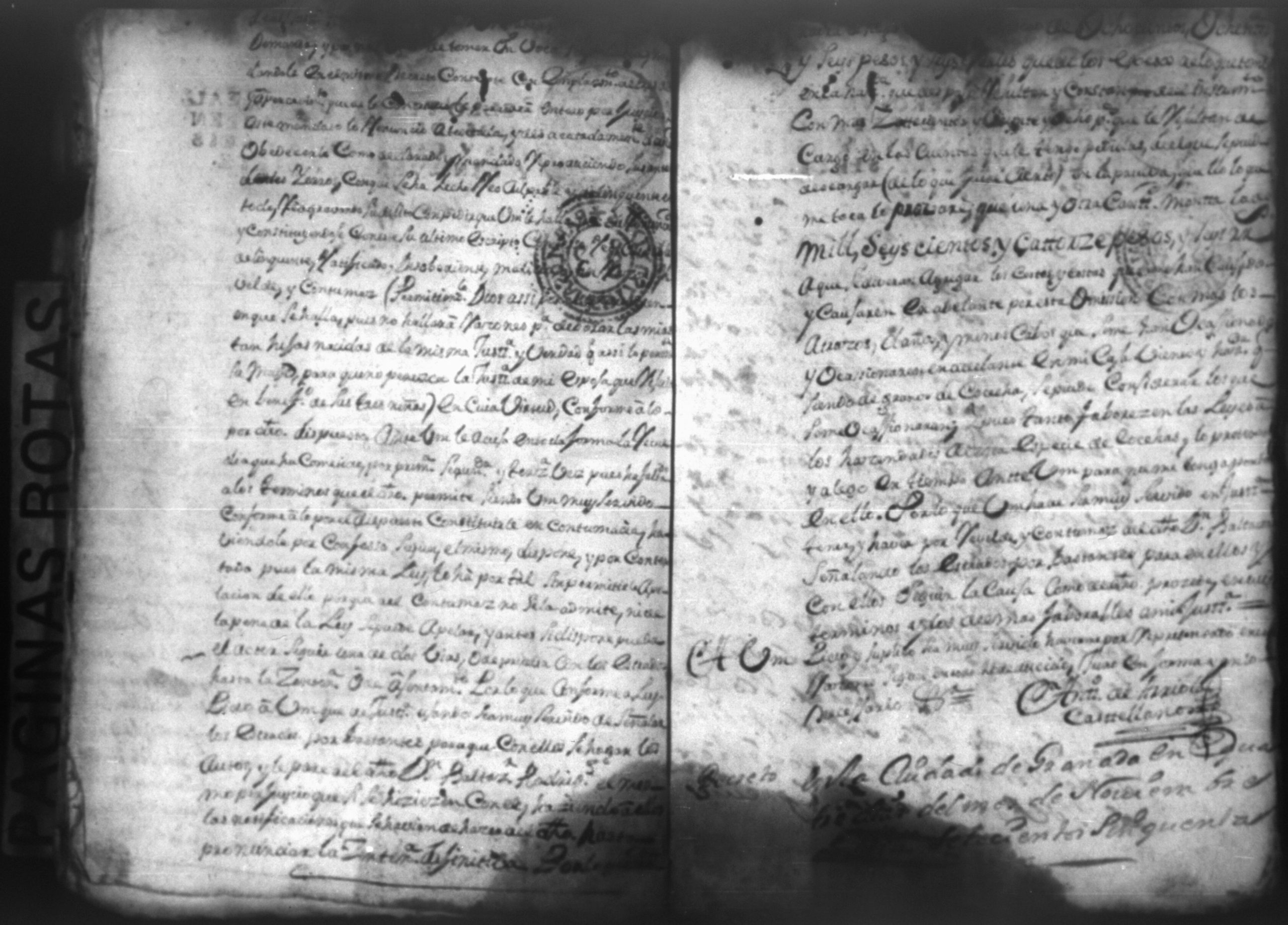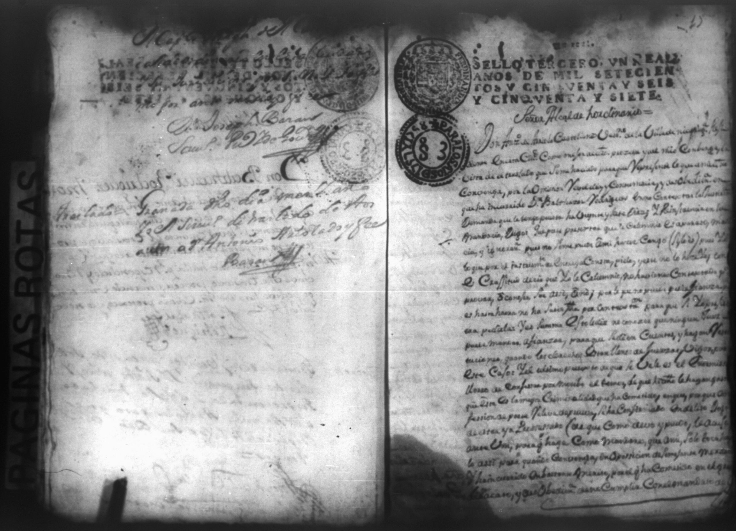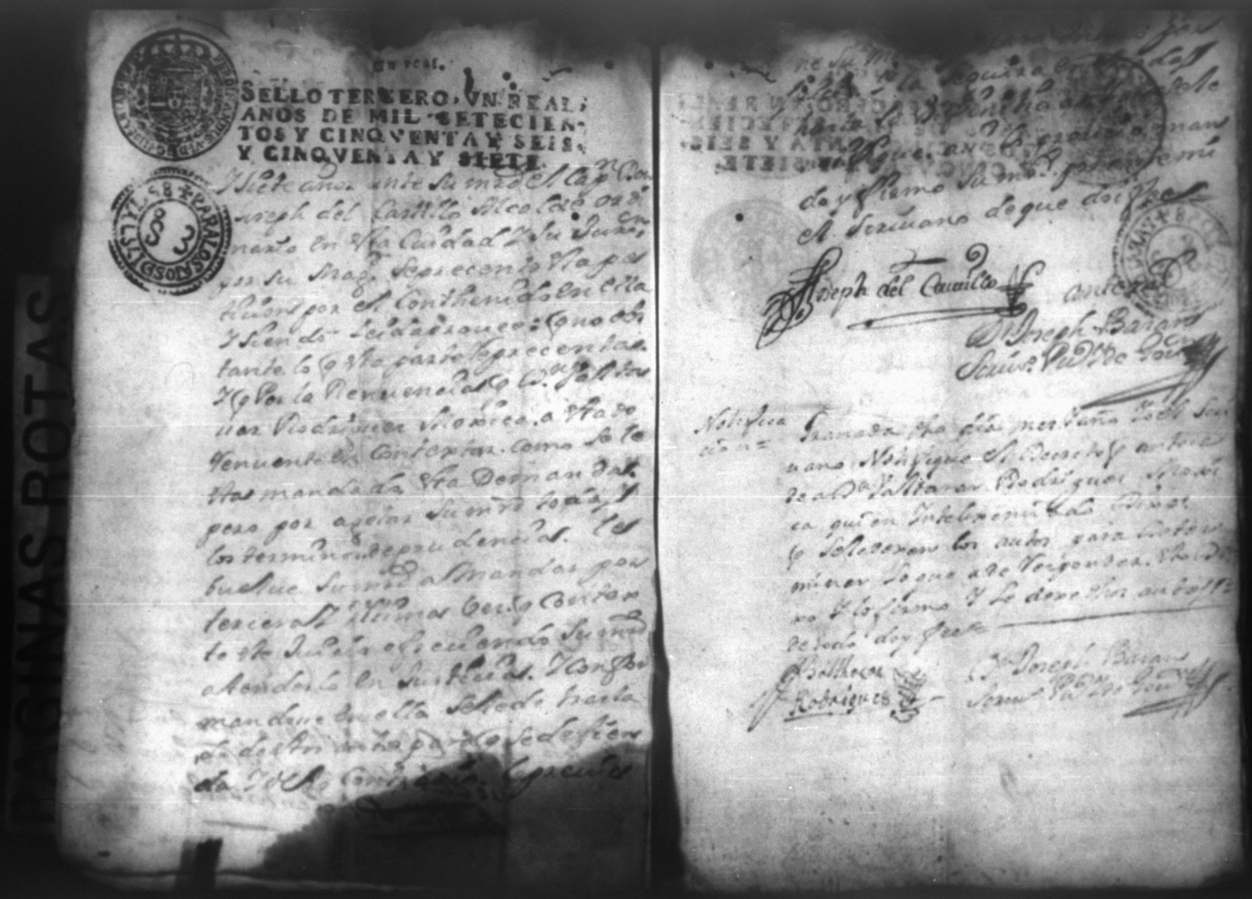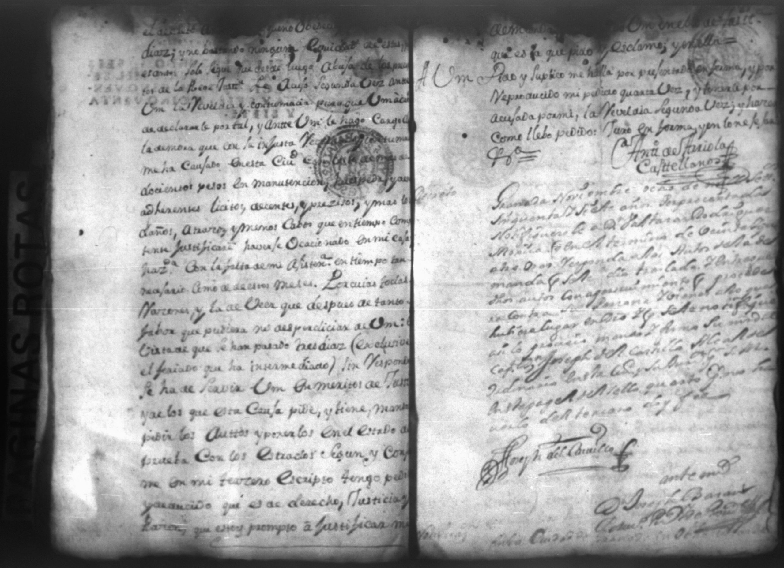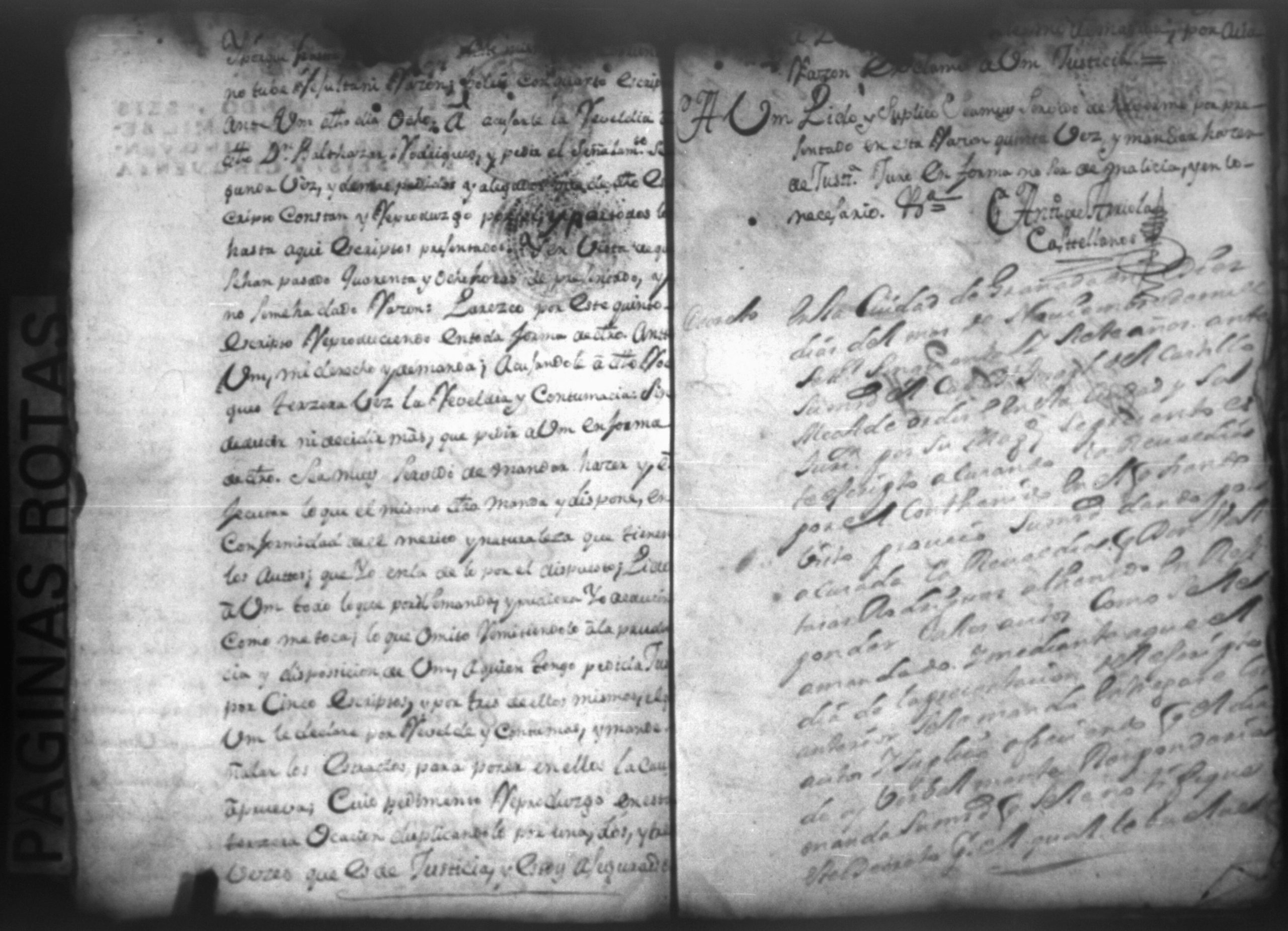 Temática: Nicaragua, 1760. Civil por pesos. Demanda puesta por Don Antonio Arriola y Castellanos contra Don Baltazar Rodriguez Moxica por cantidad de 1,614 pesos