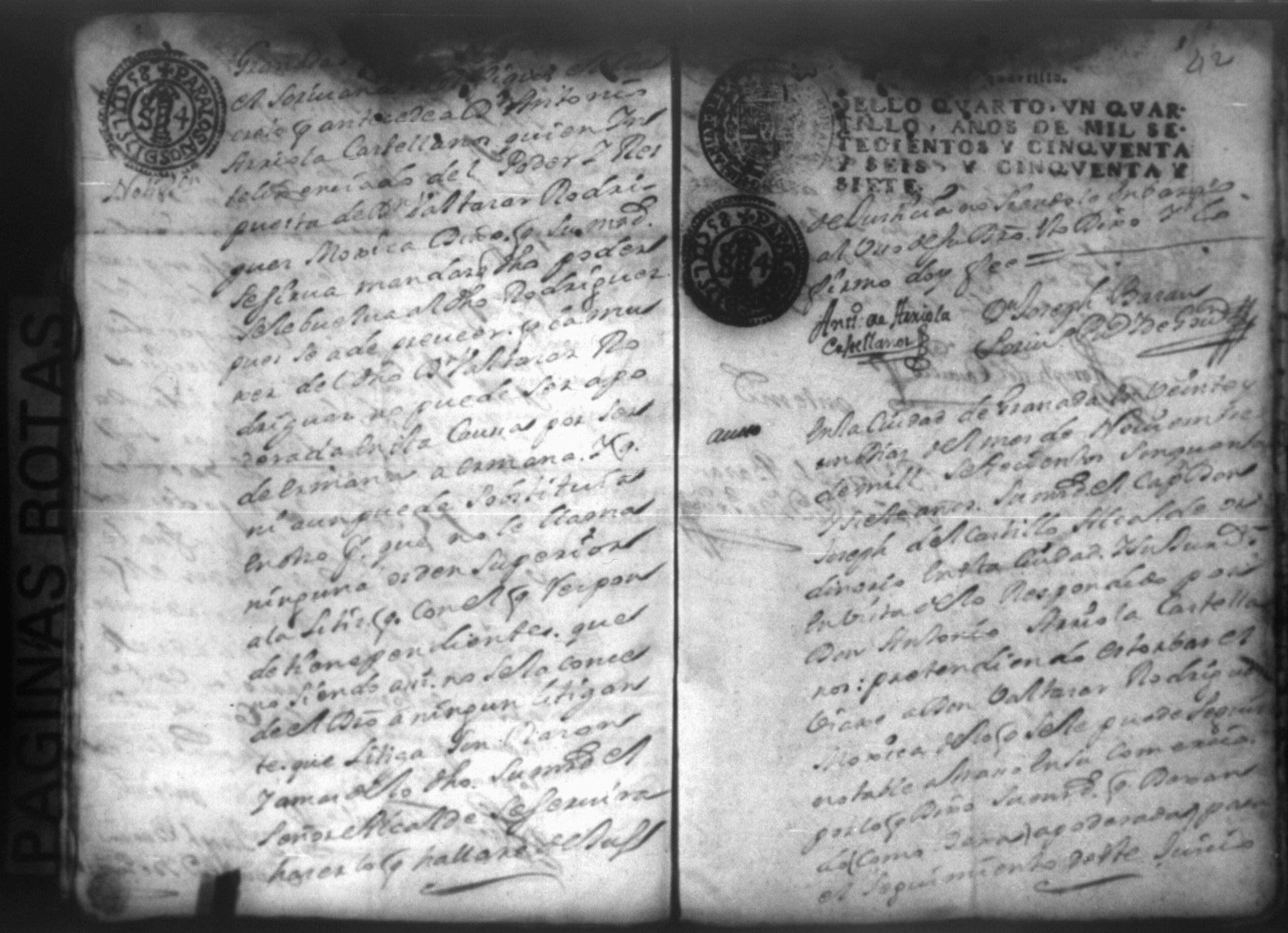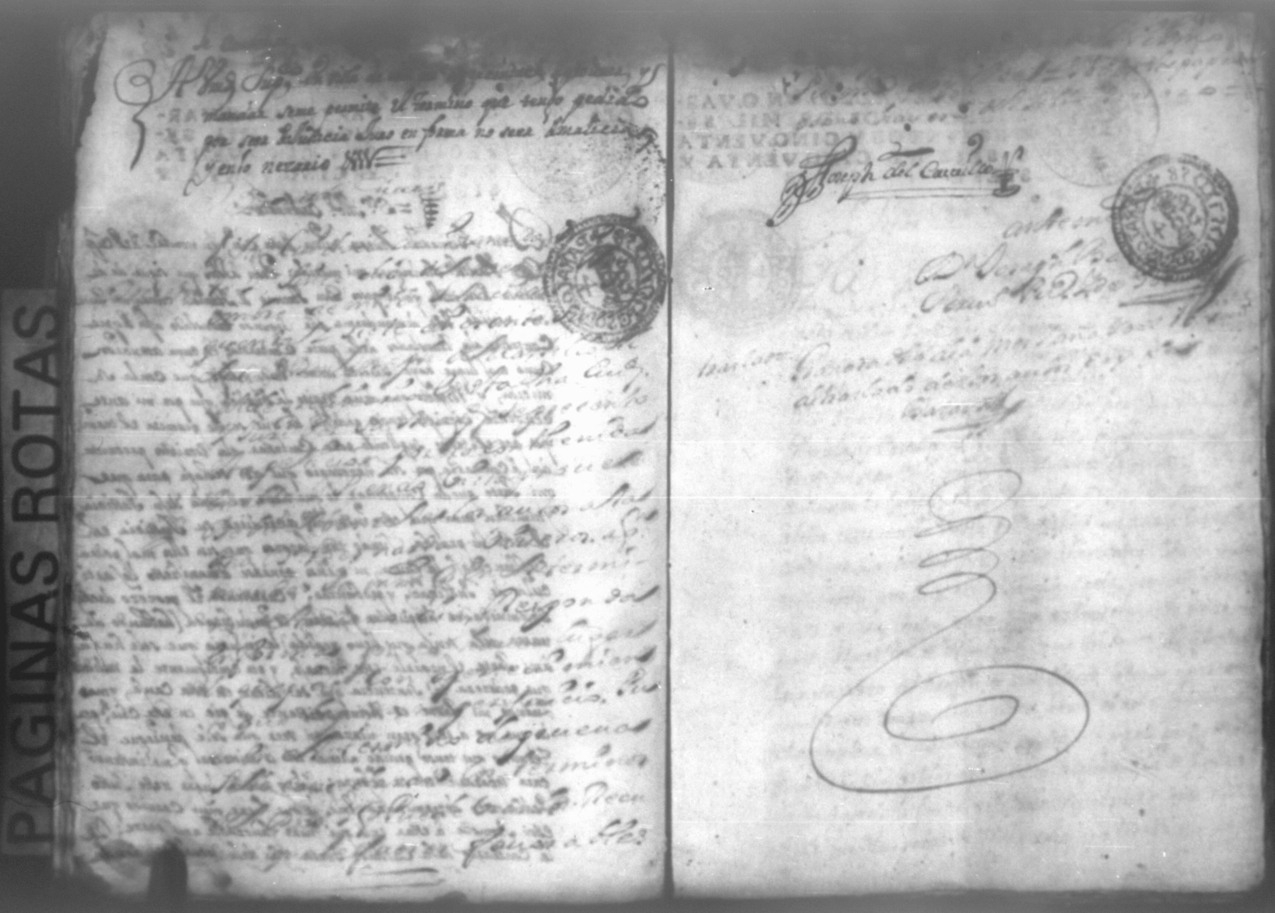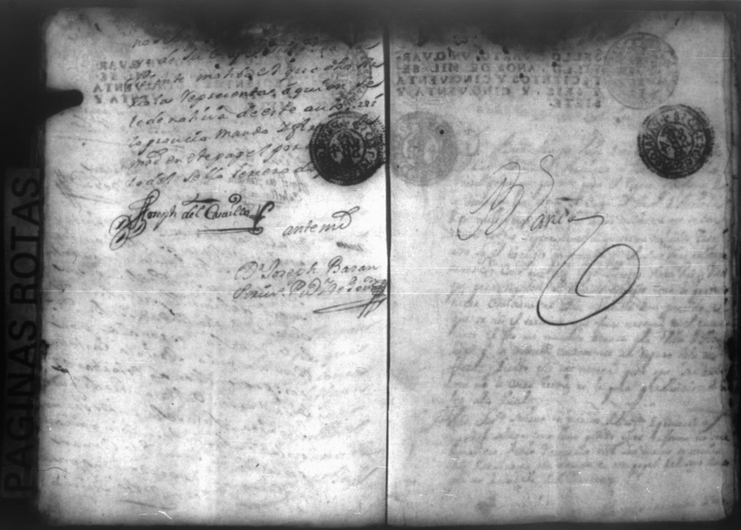 Temática: Nicaragua, 1760. Civil por pesos. Demanda puesta por Don Antonio Arriola y Castellanos contra Don Baltazar Rodriguez Moxica por cantidad de 1,614 pesos
