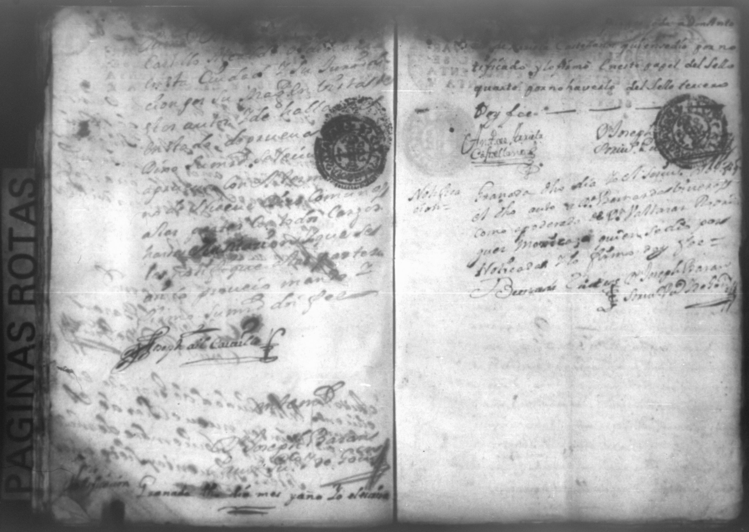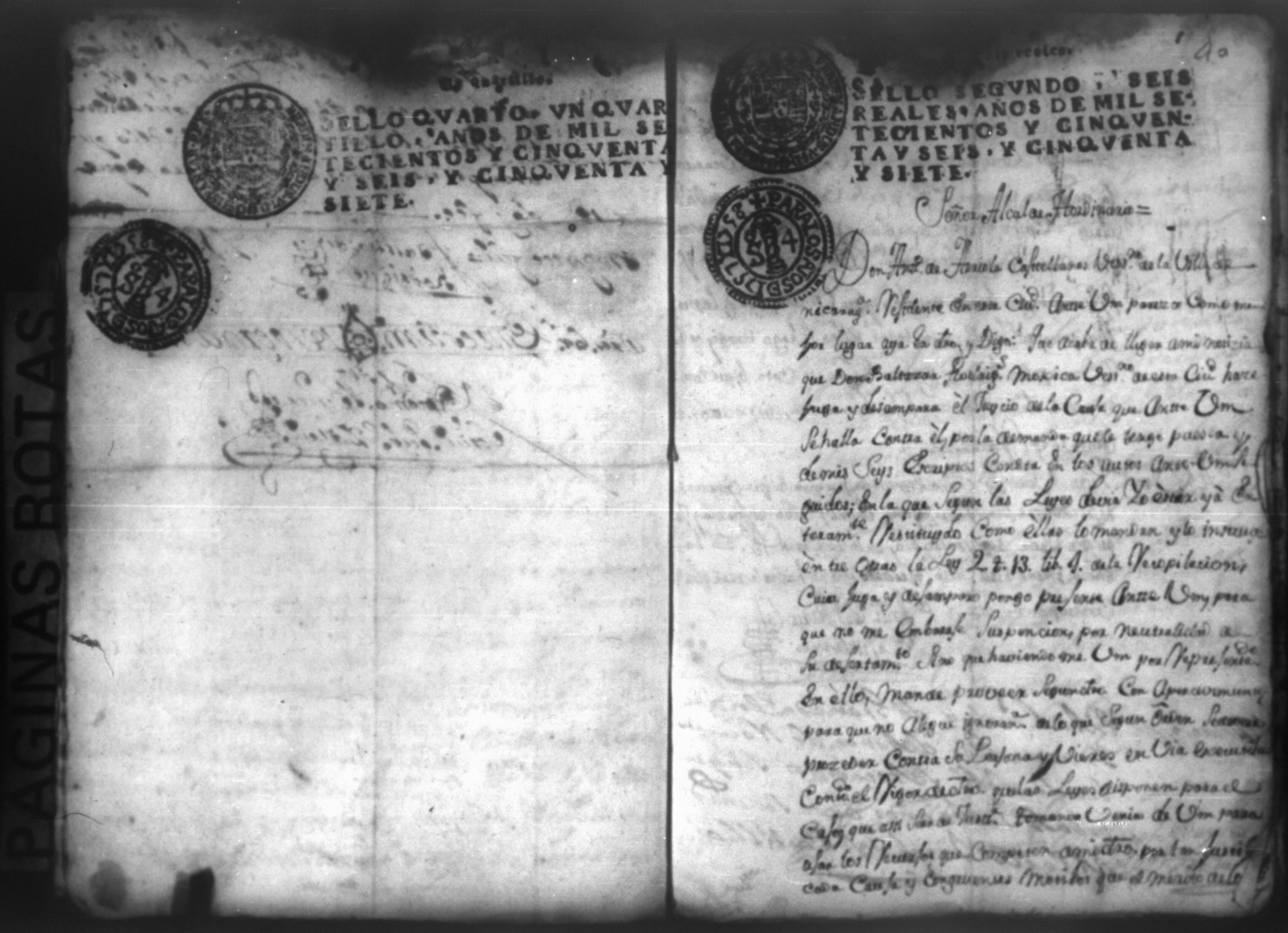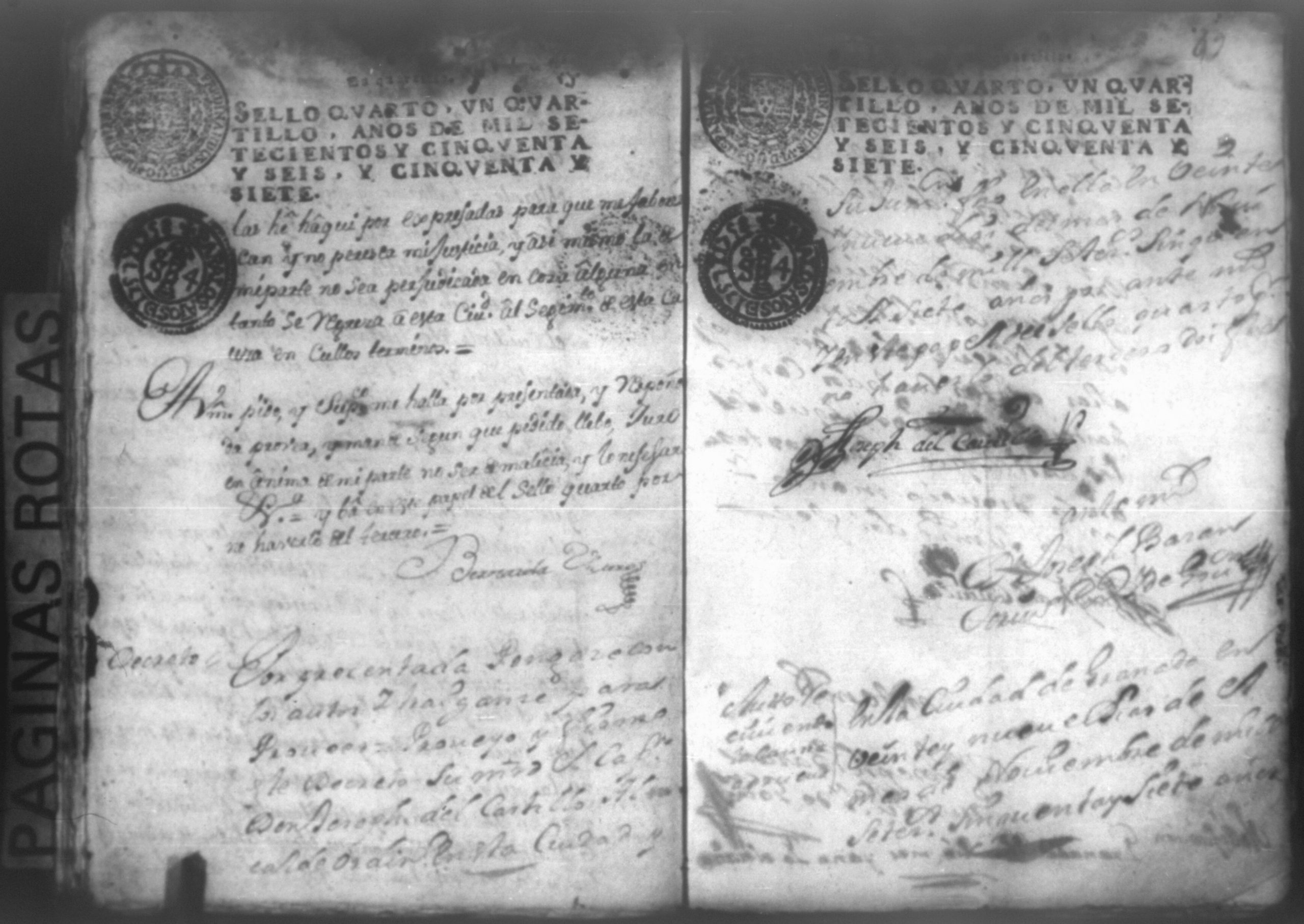 Temática: Nicaragua, 1760. Civil por pesos. Demanda puesta por Don Antonio Arriola y Castellanos contra Don Baltazar Rodriguez Moxica por cantidad de 1,614 pesos