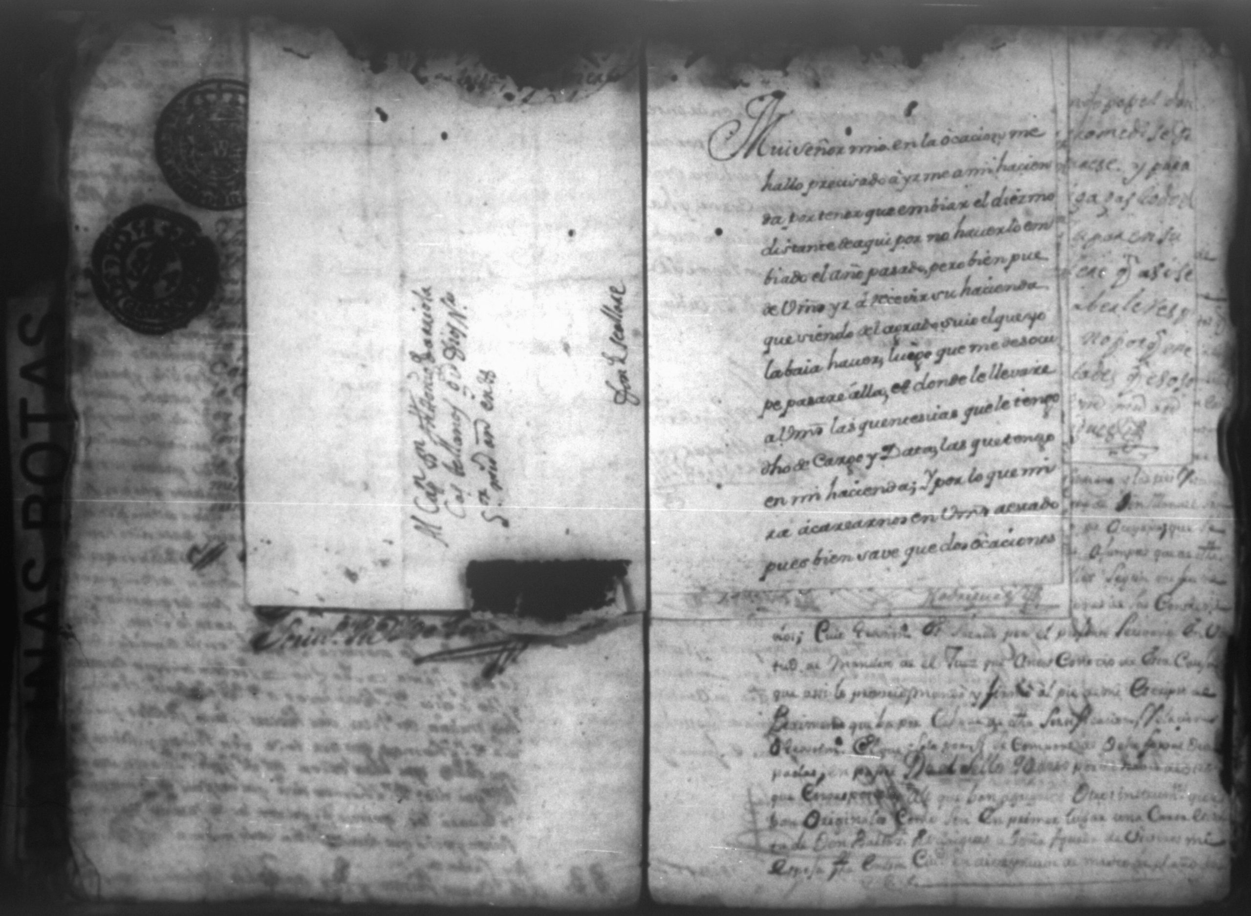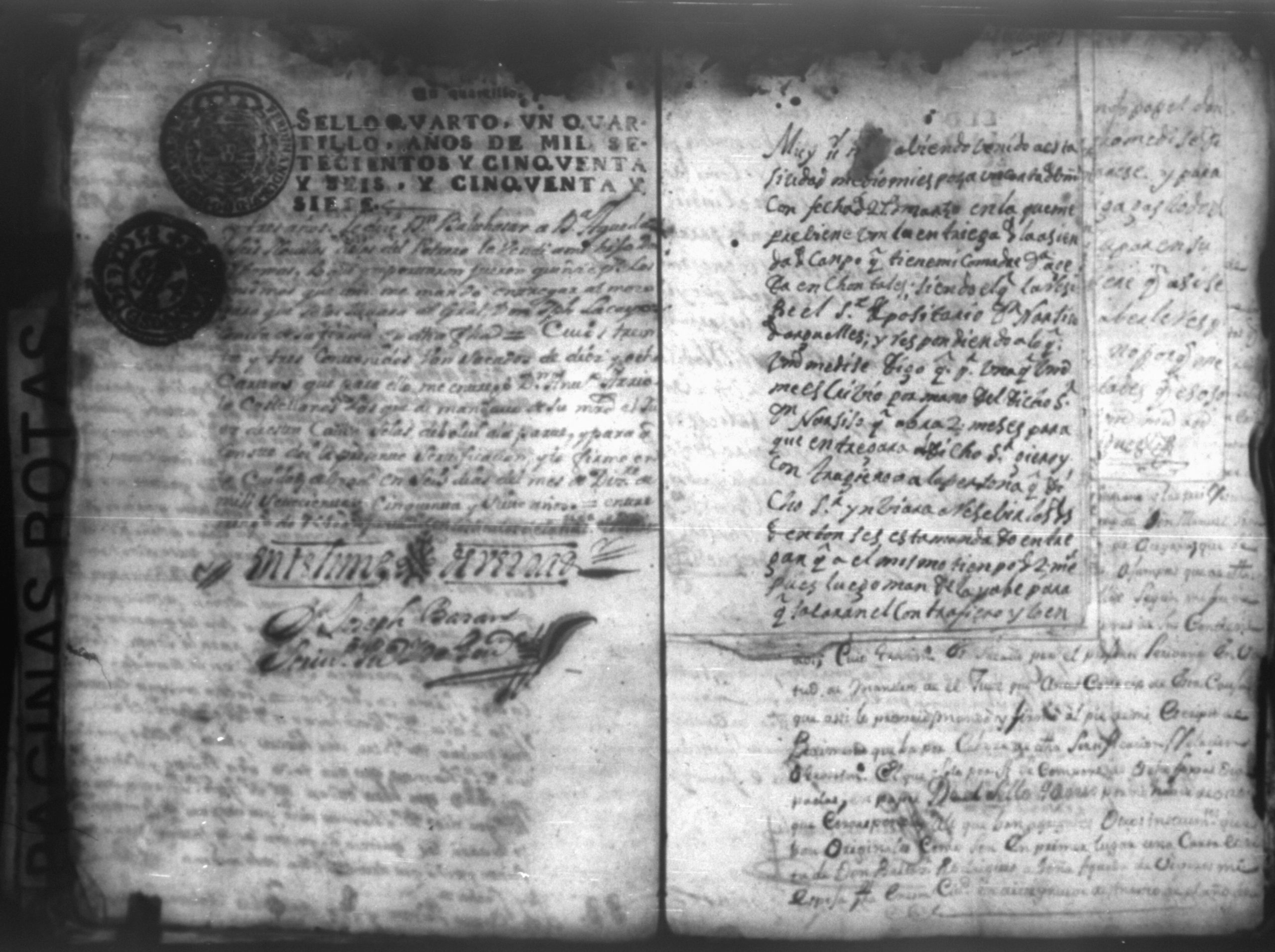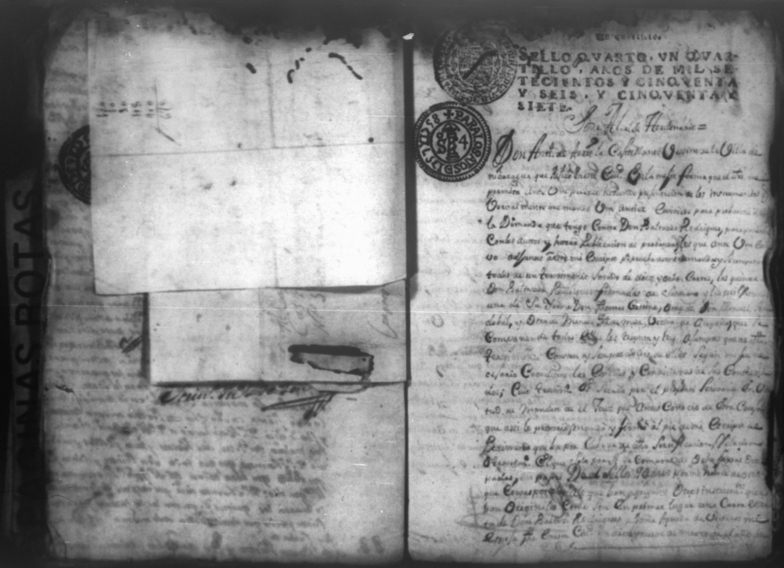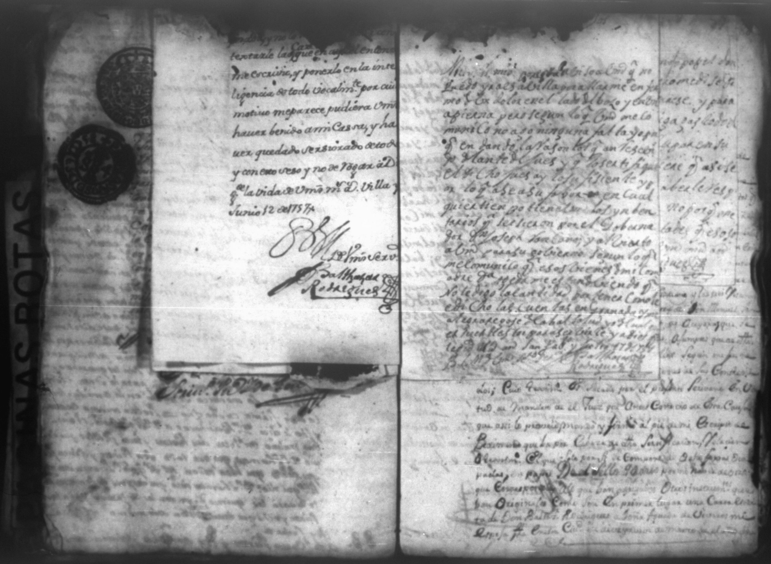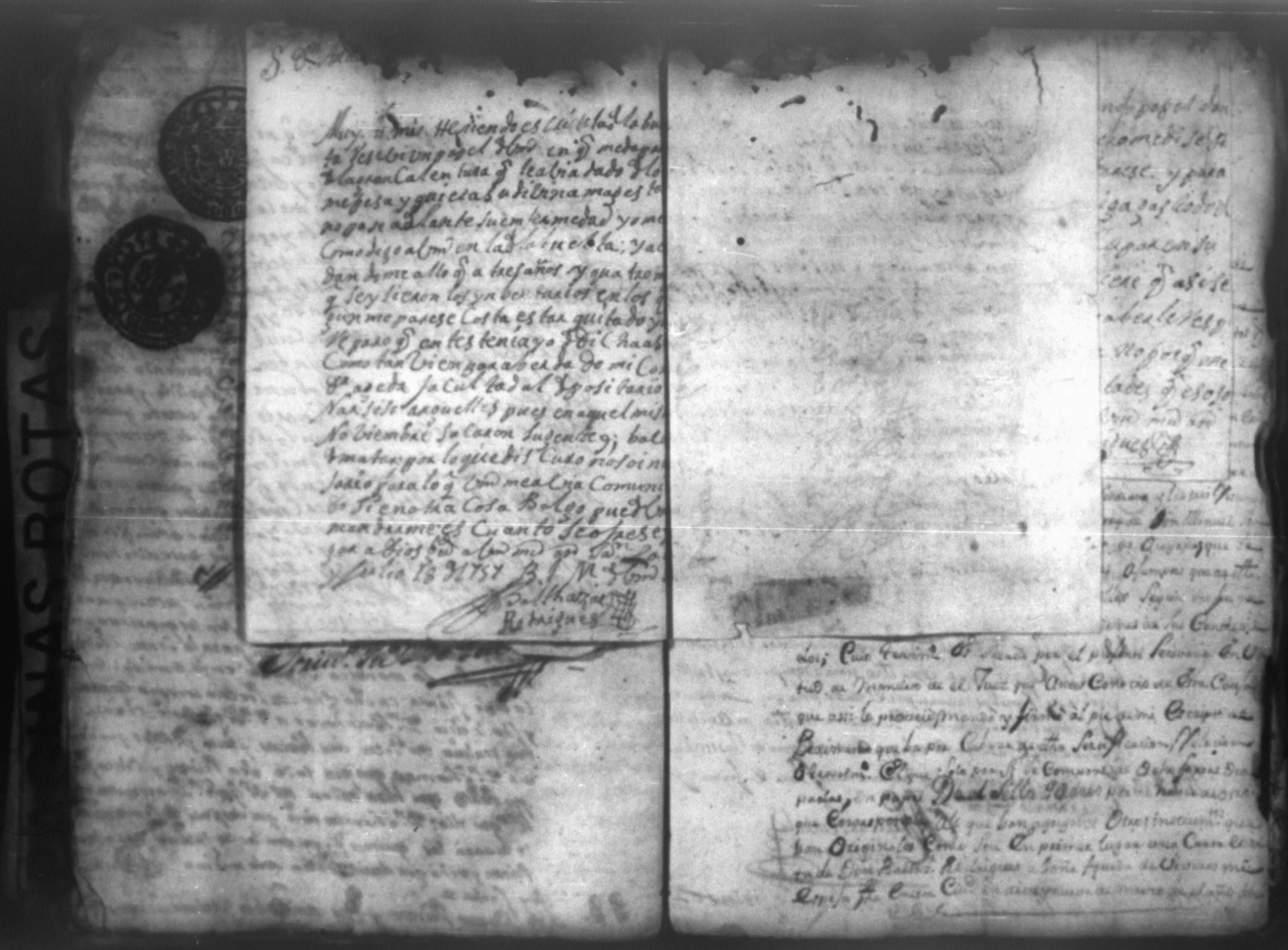 Temática: Nicaragua, 1760. Civil por pesos. Demanda puesta por Don Antonio Arriola y Castellanos contra Don Baltazar Rodriguez Moxica por cantidad de 1,614 pesos