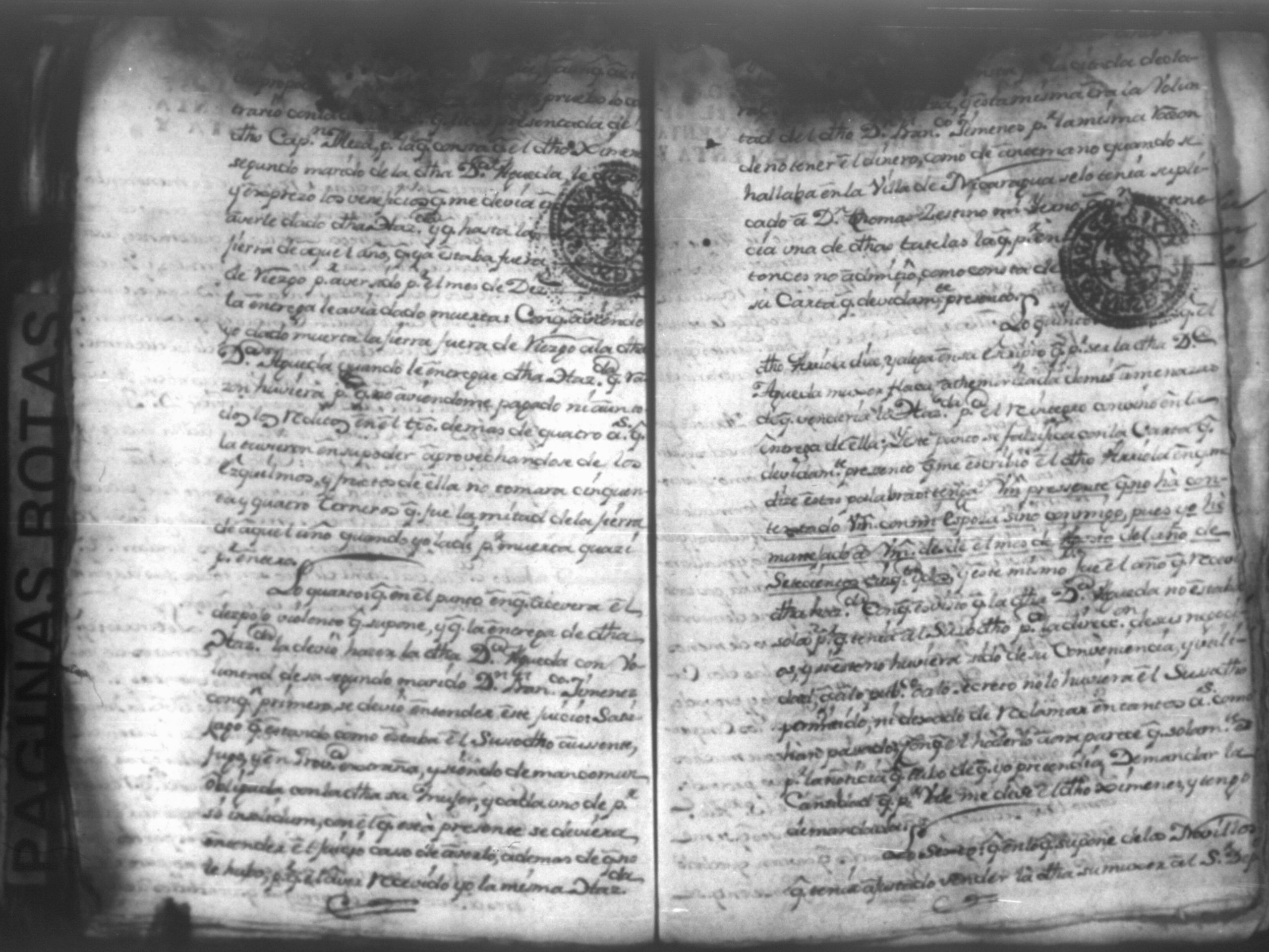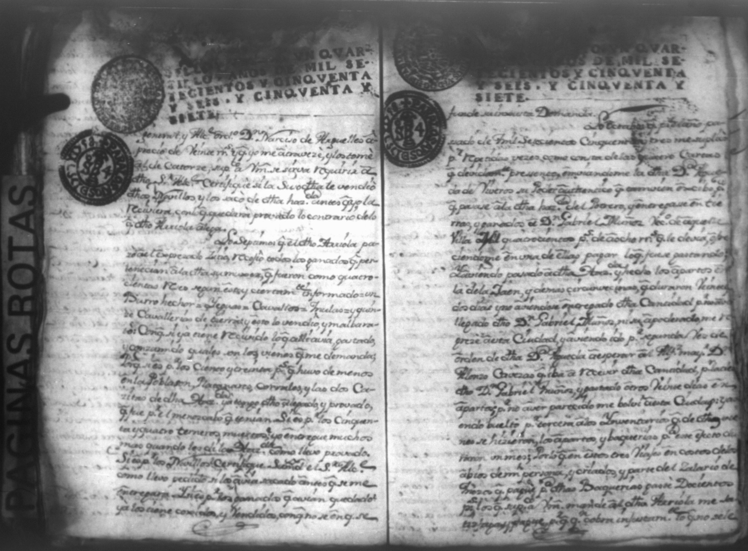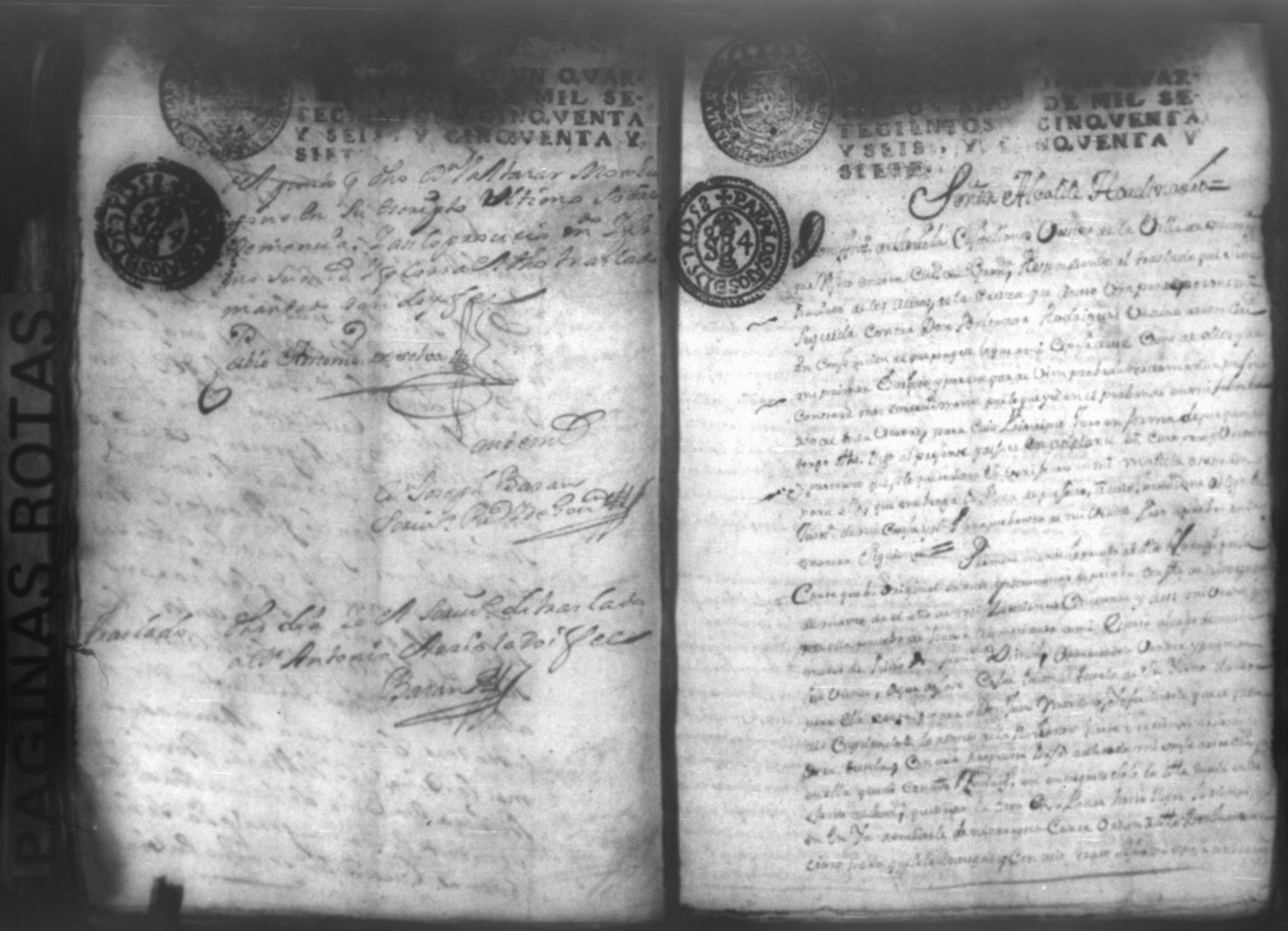 Temática: Nicaragua, 1760. Civil por pesos. Demanda puesta por Don Antonio Arriola y Castellanos contra Don Baltazar Rodriguez Moxica por cantidad de 1,614 pesos