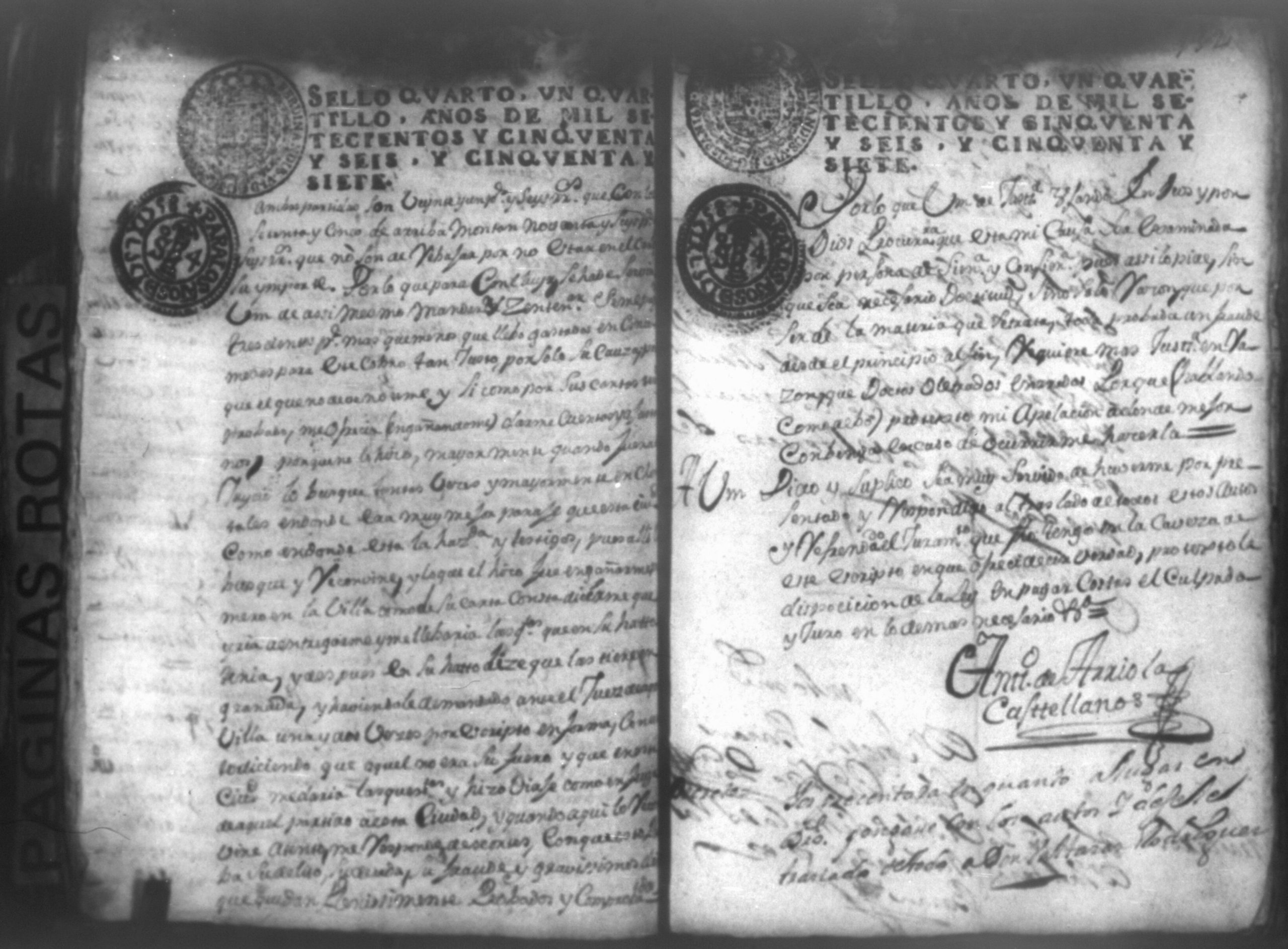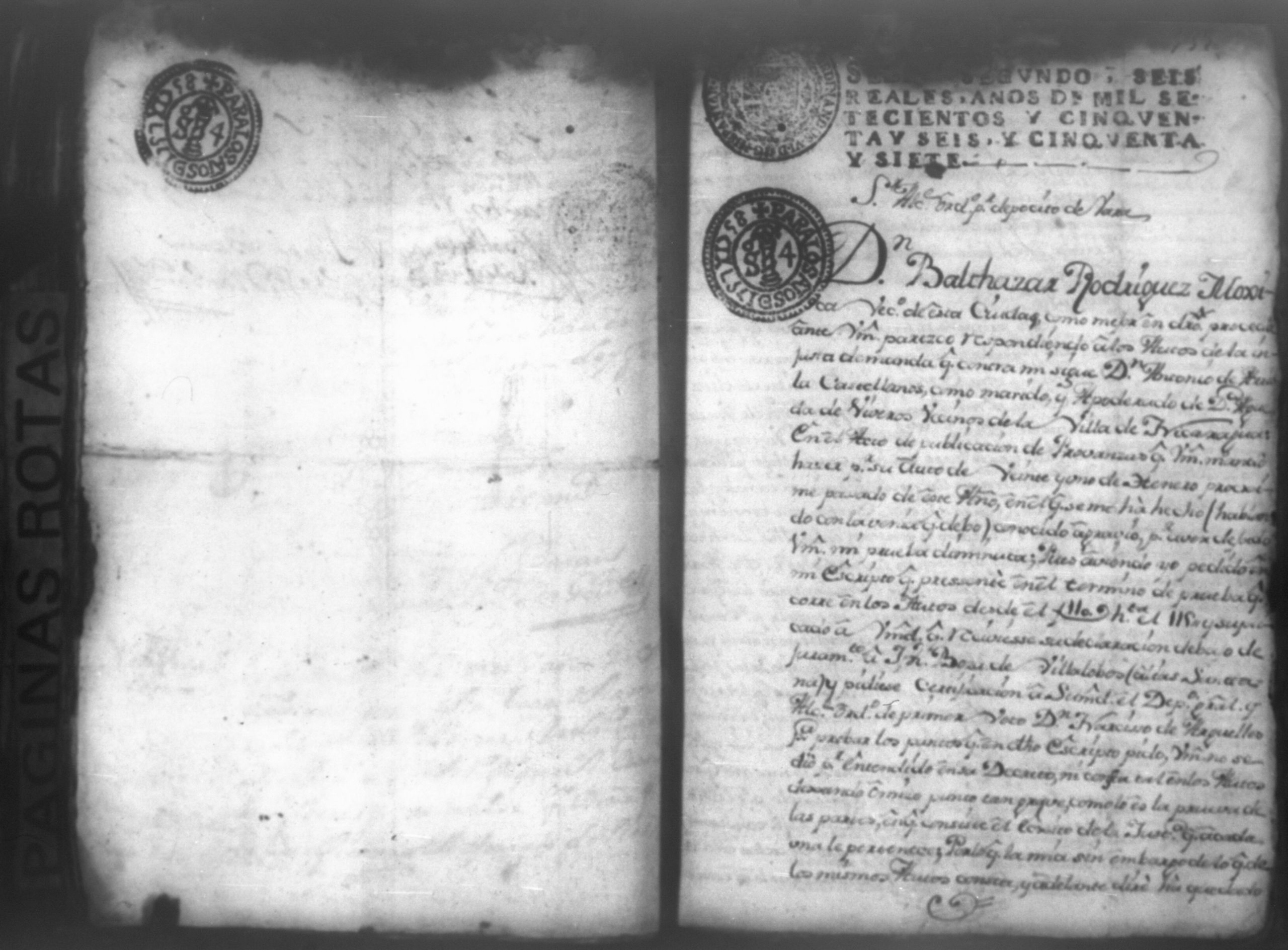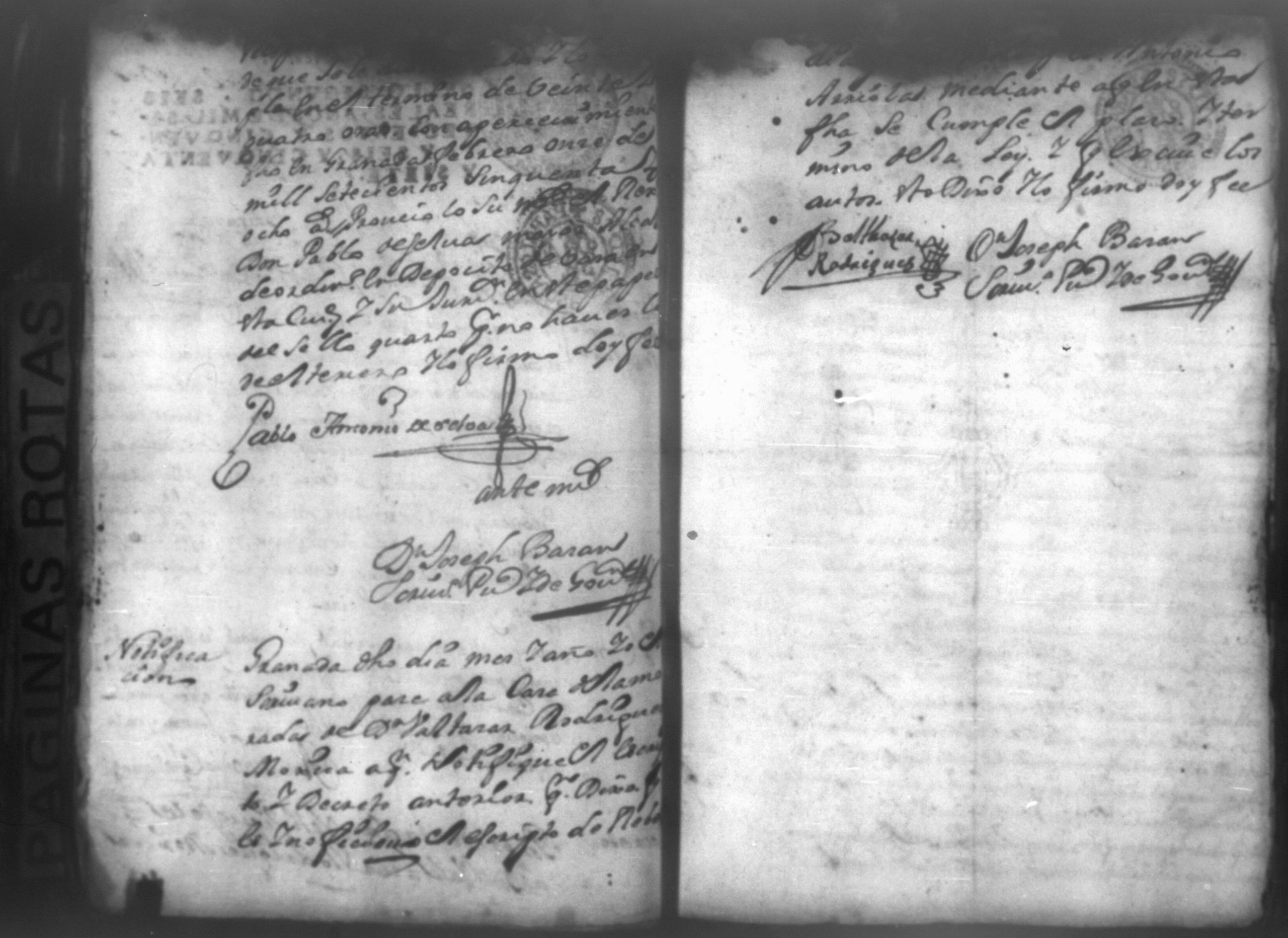 Temática: Nicaragua, 1760. Civil por pesos. Demanda puesta por Don Antonio Arriola y Castellanos contra Don Baltazar Rodriguez Moxica por cantidad de 1,614 pesos