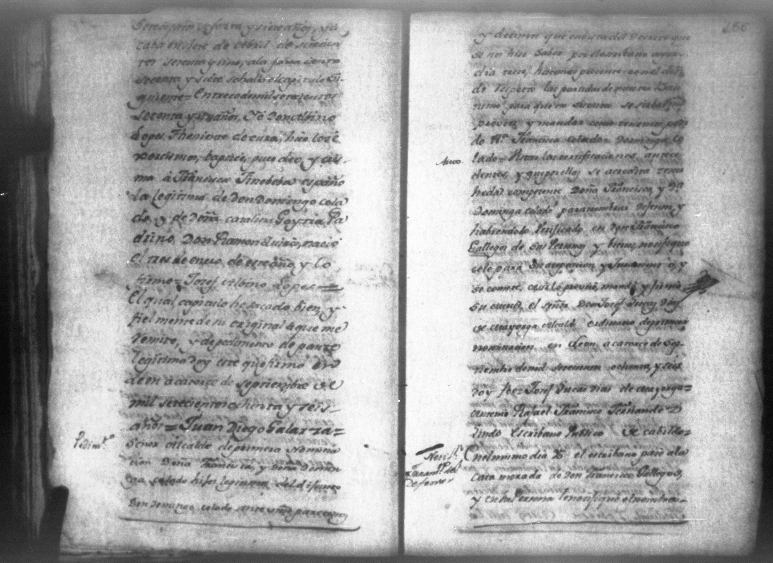 Temática: Año de 1788. Contiene las pruebas dadas por Don Francisco Fernandez Gallegos en el pleinto [que sigue] con Don Antonio Ancelmo Pelaez que ha recivido [su] […] el Alcalde [ordinario de Leon]. Don Francisco Fernandez Gallegos vecino de la ciudad de Leon marido de Doña Narcisa Collado y tutor de sus dos hermanas Doña Francisca y Doña Dominga en los autos movidos por Don Ancelmo Pelaes padrasto de las referidas sobre la nulidad de la transaccion por la qual todos los bienes pertenecientes a dichas menores que se hallan [pro incluiso] con los de su madre Doña Anna Catharina Garcia deben correr al cargo de mi parte.