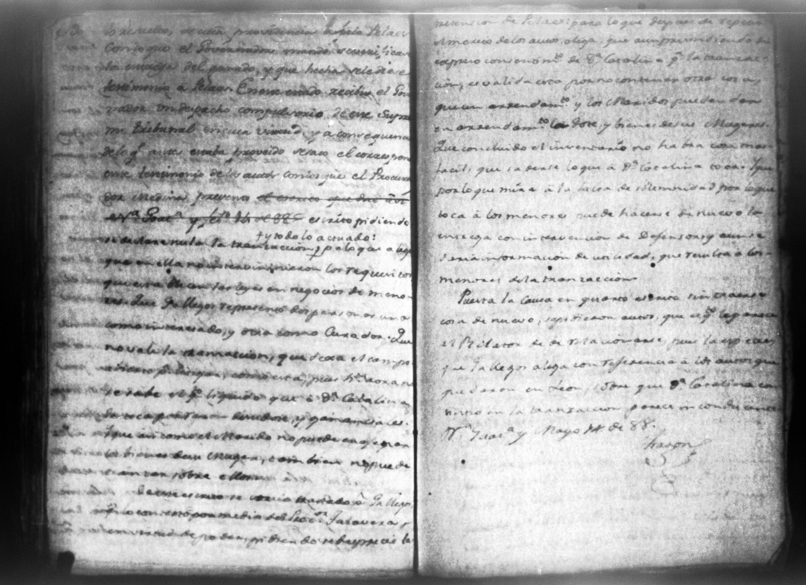 Temática: Año de 1788. Contiene las pruebas dadas por Don Francisco Fernandez Gallegos en el pleinto [que sigue] con Don Antonio Ancelmo Pelaez que ha recivido [su] […] el Alcalde [ordinario de Leon]. Don Francisco Fernandez Gallegos vecino de la ciudad de Leon marido de Doña Narcisa Collado y tutor de sus dos hermanas Doña Francisca y Doña Dominga en los autos movidos por Don Ancelmo Pelaes padrasto de las referidas sobre la nulidad de la transaccion por la qual todos los bienes pertenecientes a dichas menores que se hallan [pro incluiso] con los de su madre Doña Anna Catharina Garcia deben correr al cargo de mi parte.