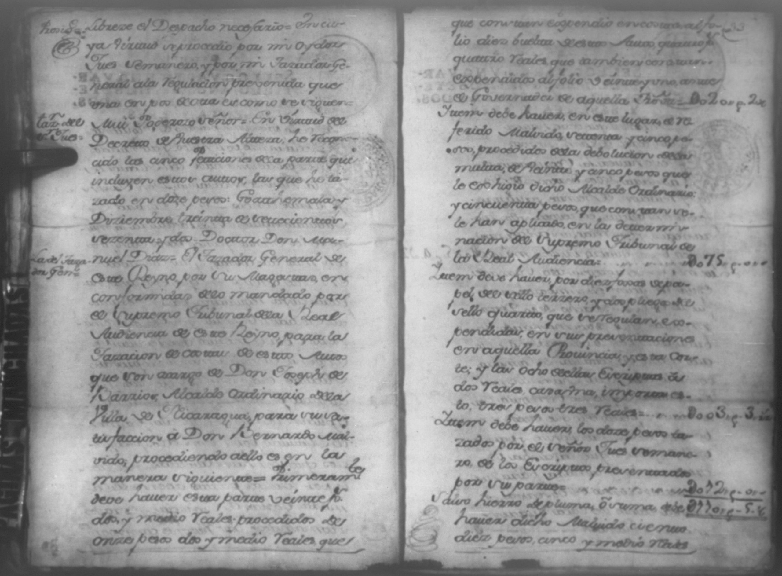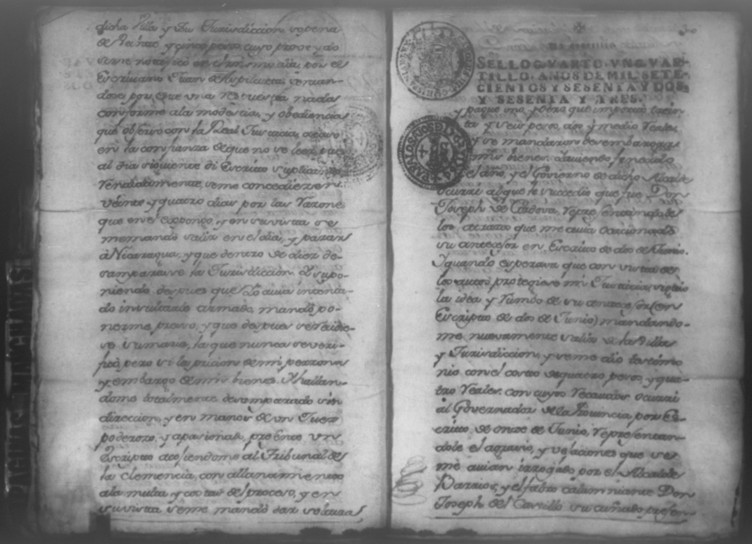 Don Bernardo de Malvido por destierro de la Villa de la Inmaculada Concepcion de Nicaragua y pena de pago de veinte y cinco pesos, Nicaragua 1763