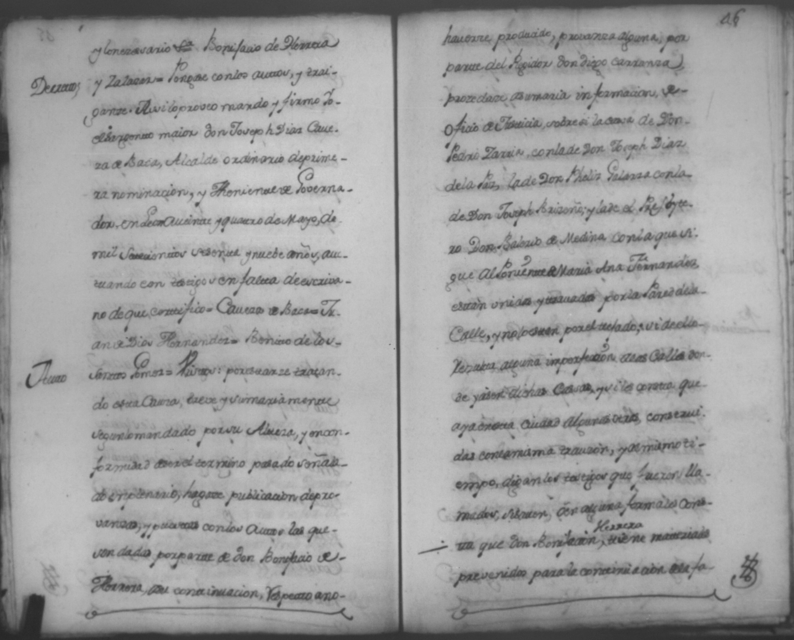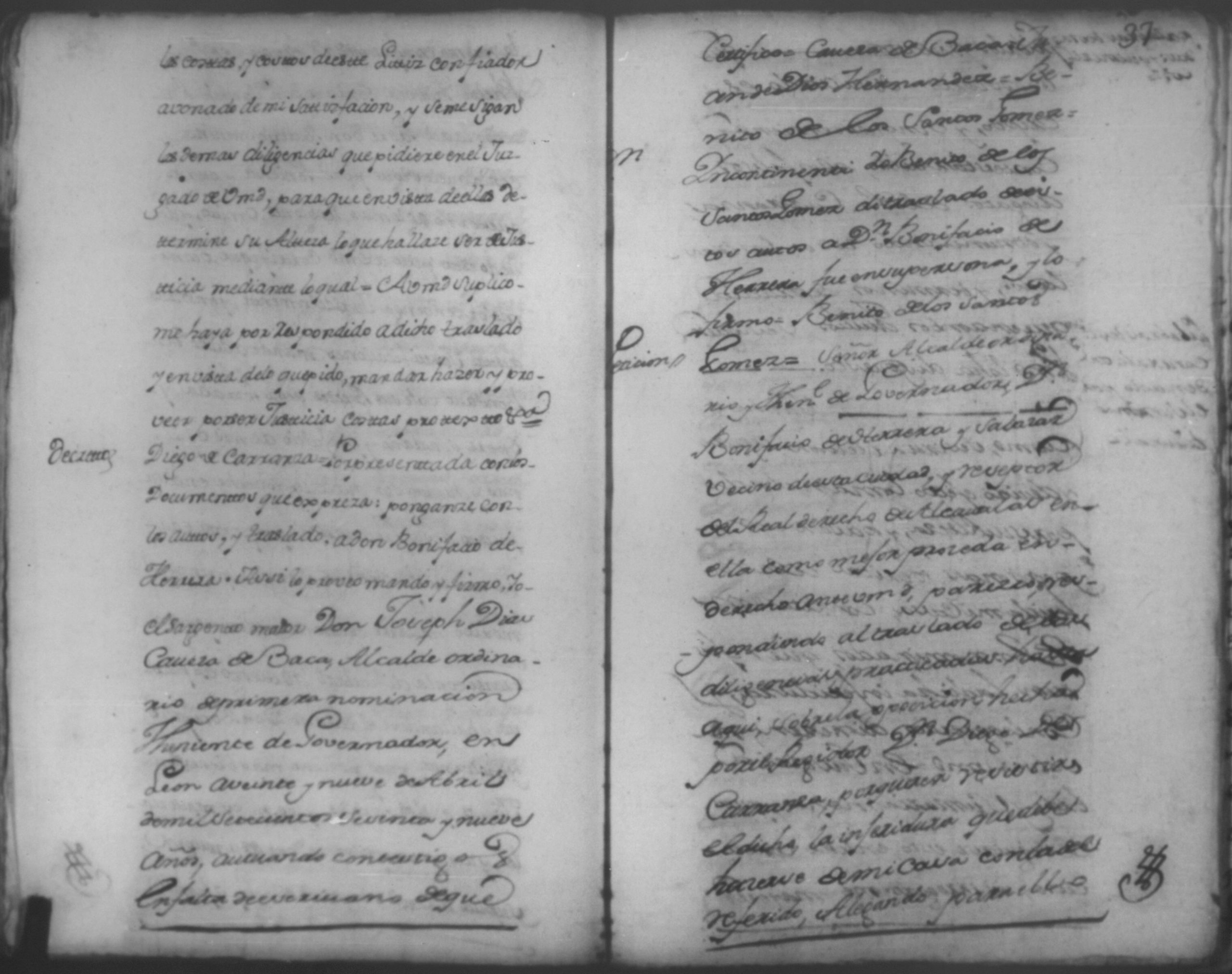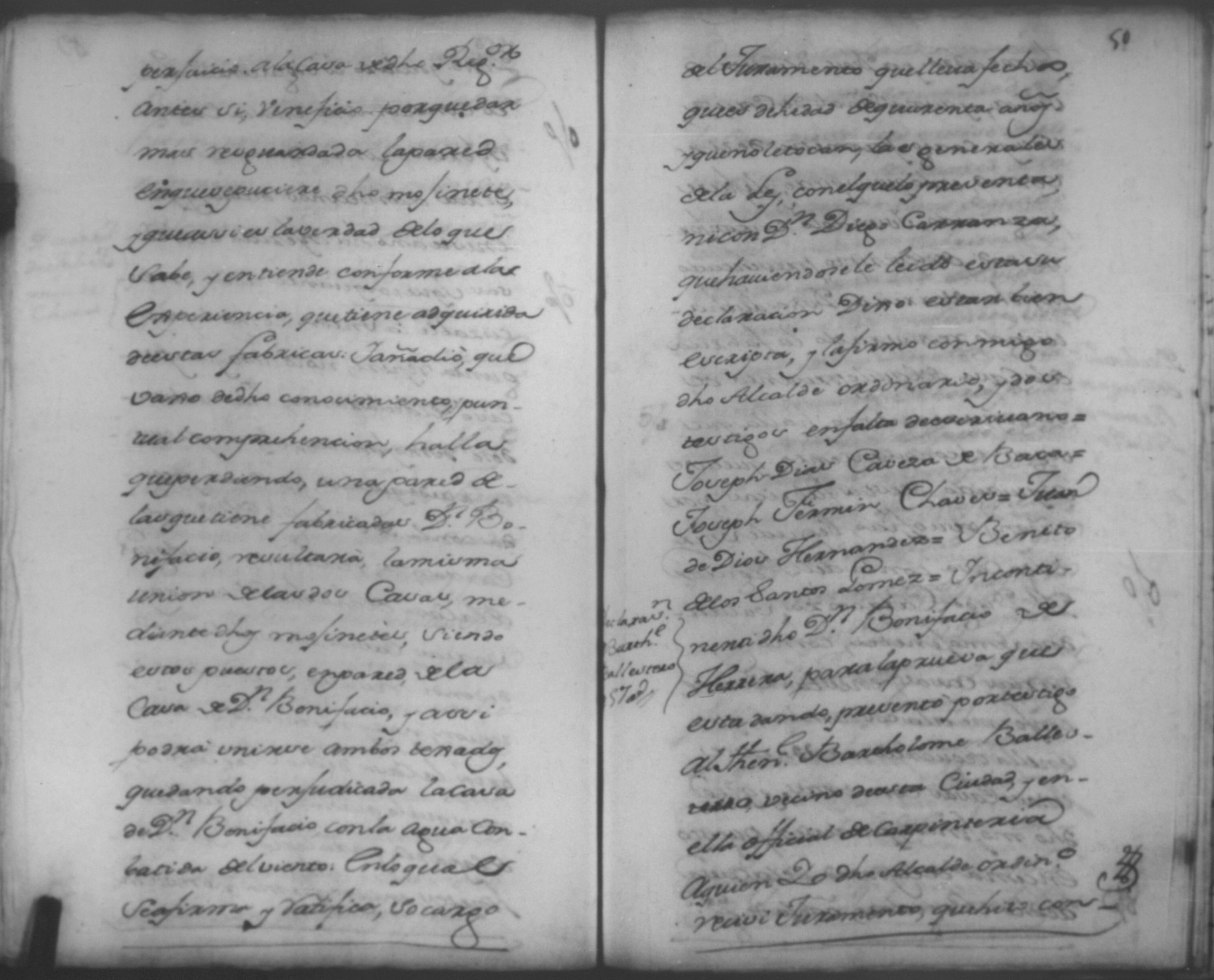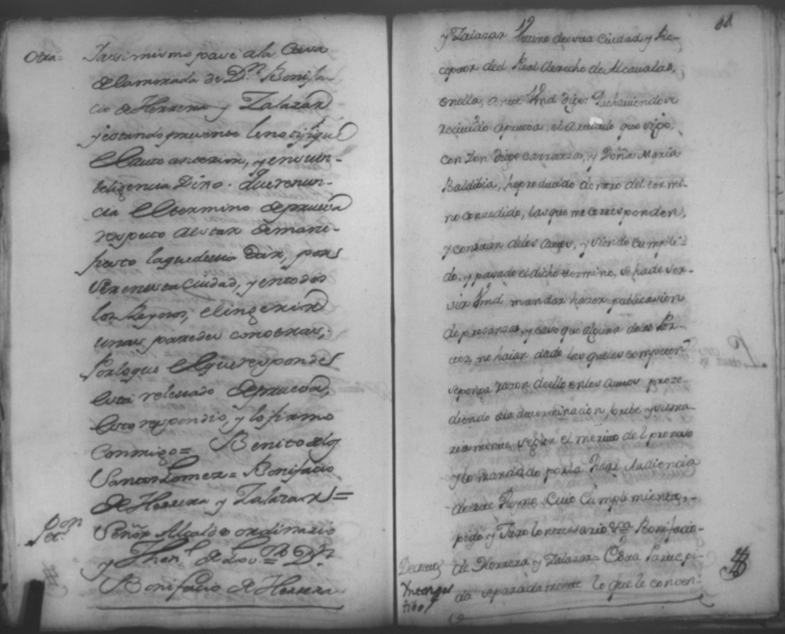 Don Bonifacio de Herrera y Zalazar, Don Diego de Carraza, Regidor y Doña María Valdivia en testimonio de autos seguidos, León 1769