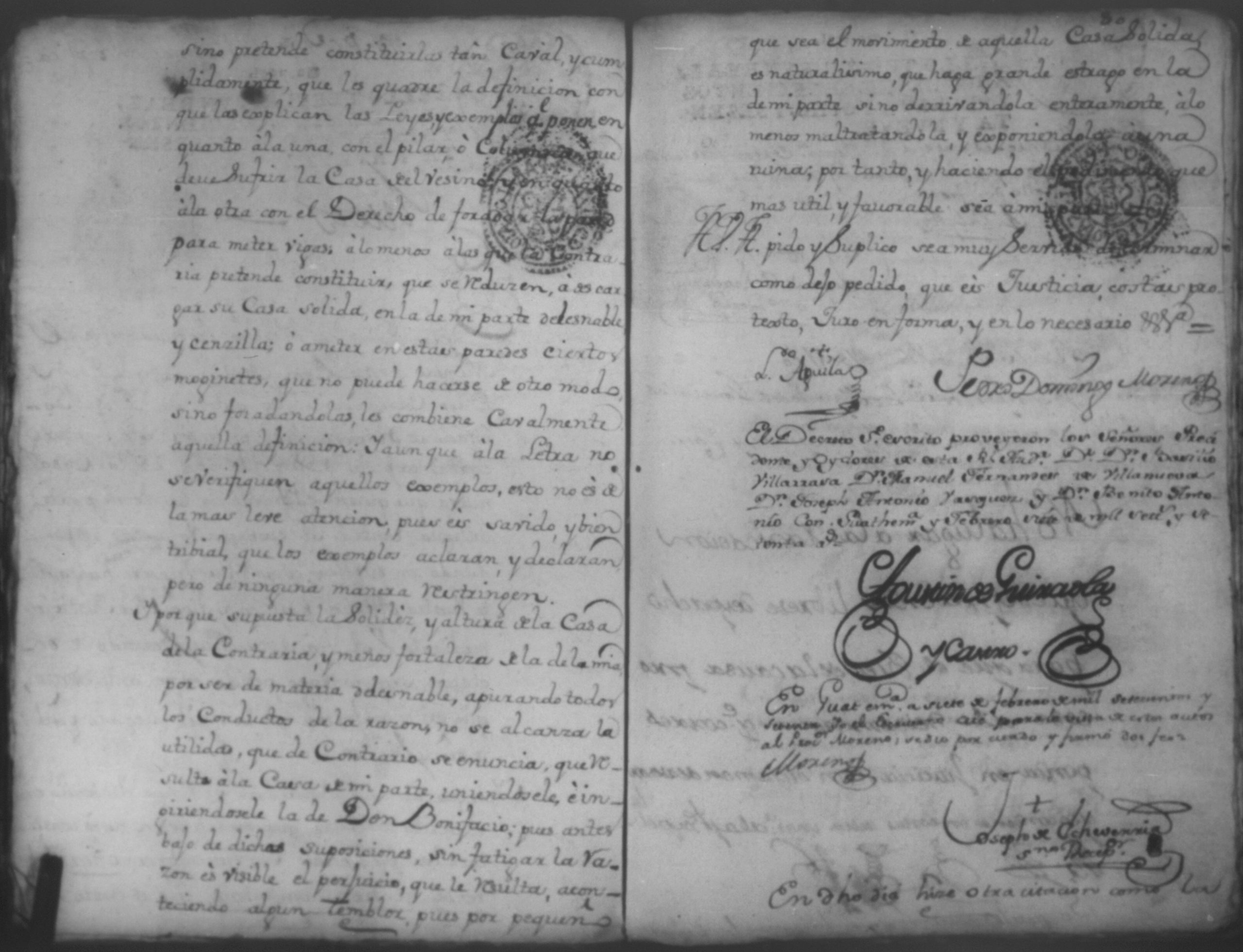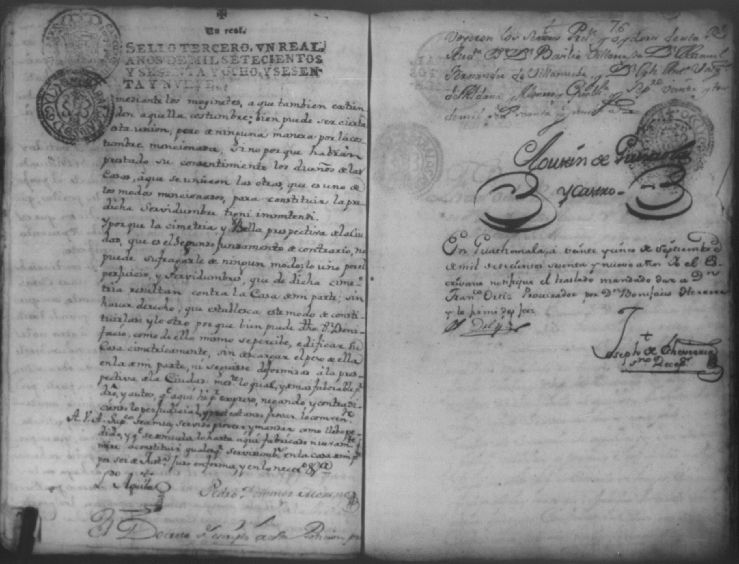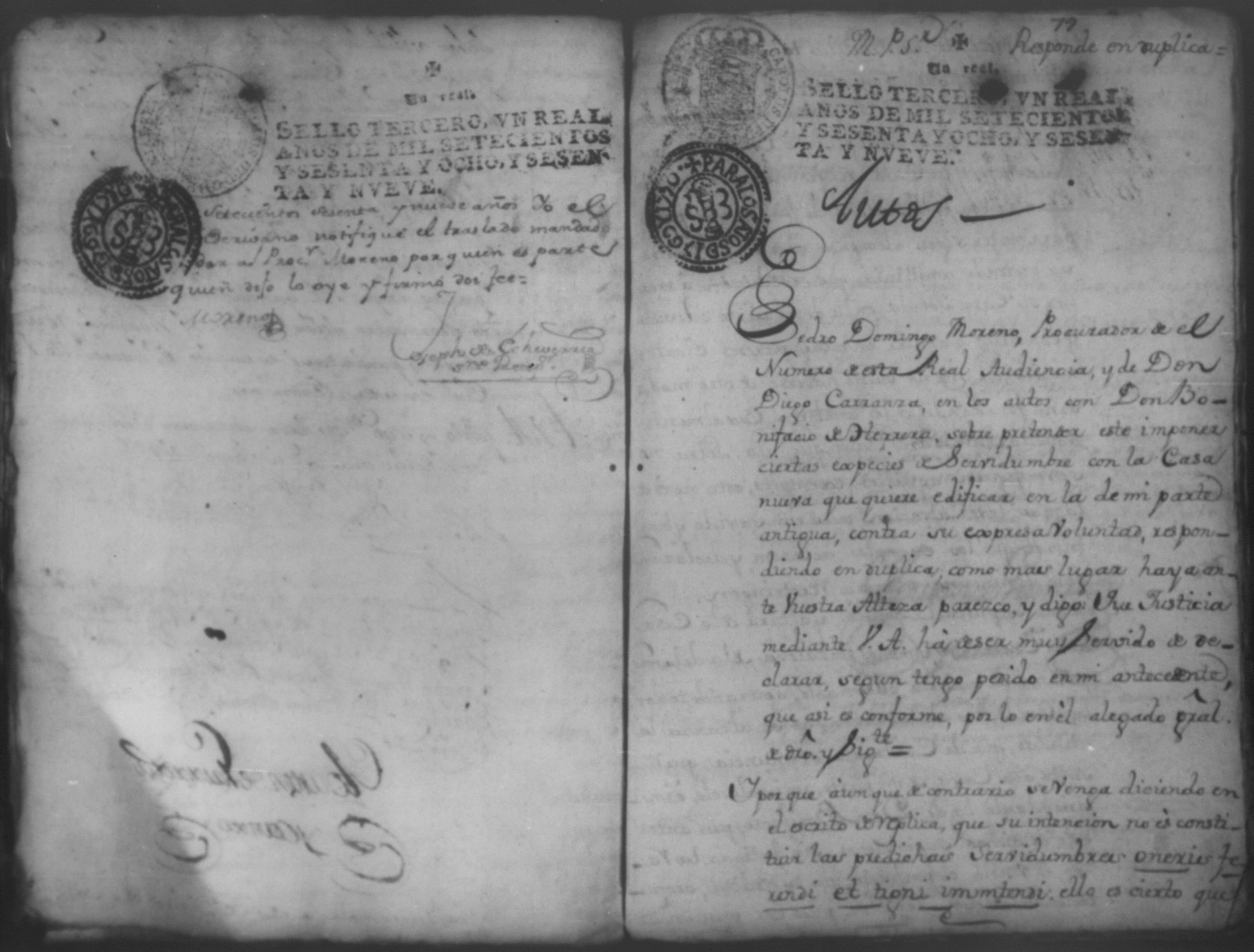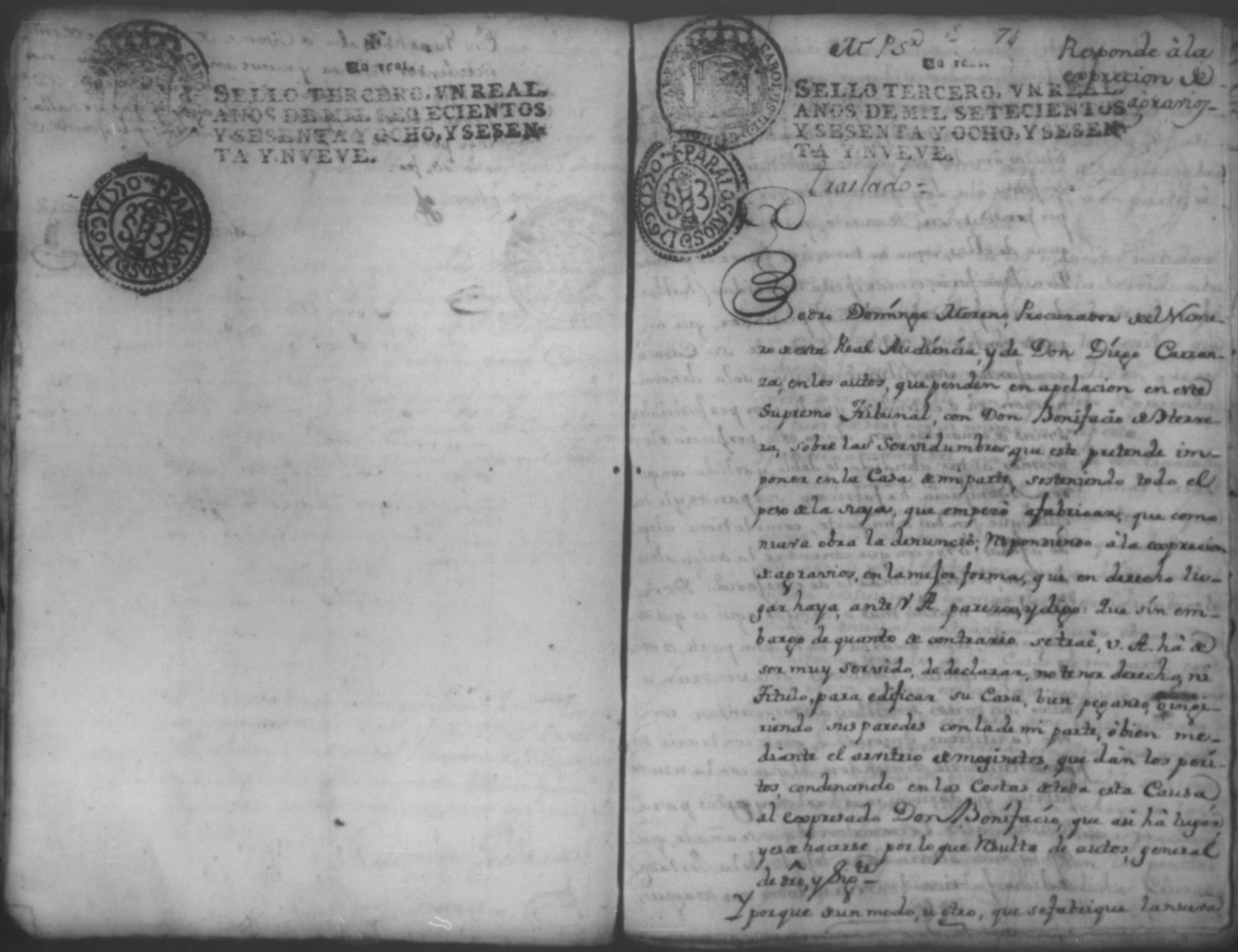 Temática: Leon 1770. Año de 1769. Testimonio de los autos seguidos entre Don Bonifacio de Herrera y Zalazar, Don Diego de Carraza Regidor y Doña María Valdivia, sobre pretender el primero ingerir su causa con la del segundo y con la de la Valdivia arrimar su tapia y lo demas que son los autos y se han seguido en el Juzgado del Alcalde ordinario de primer voto de esta Ciudad de Leon y se remite este al supremo tribunal de la Real Audiencia de este Reyno en virtud de compulasorio.