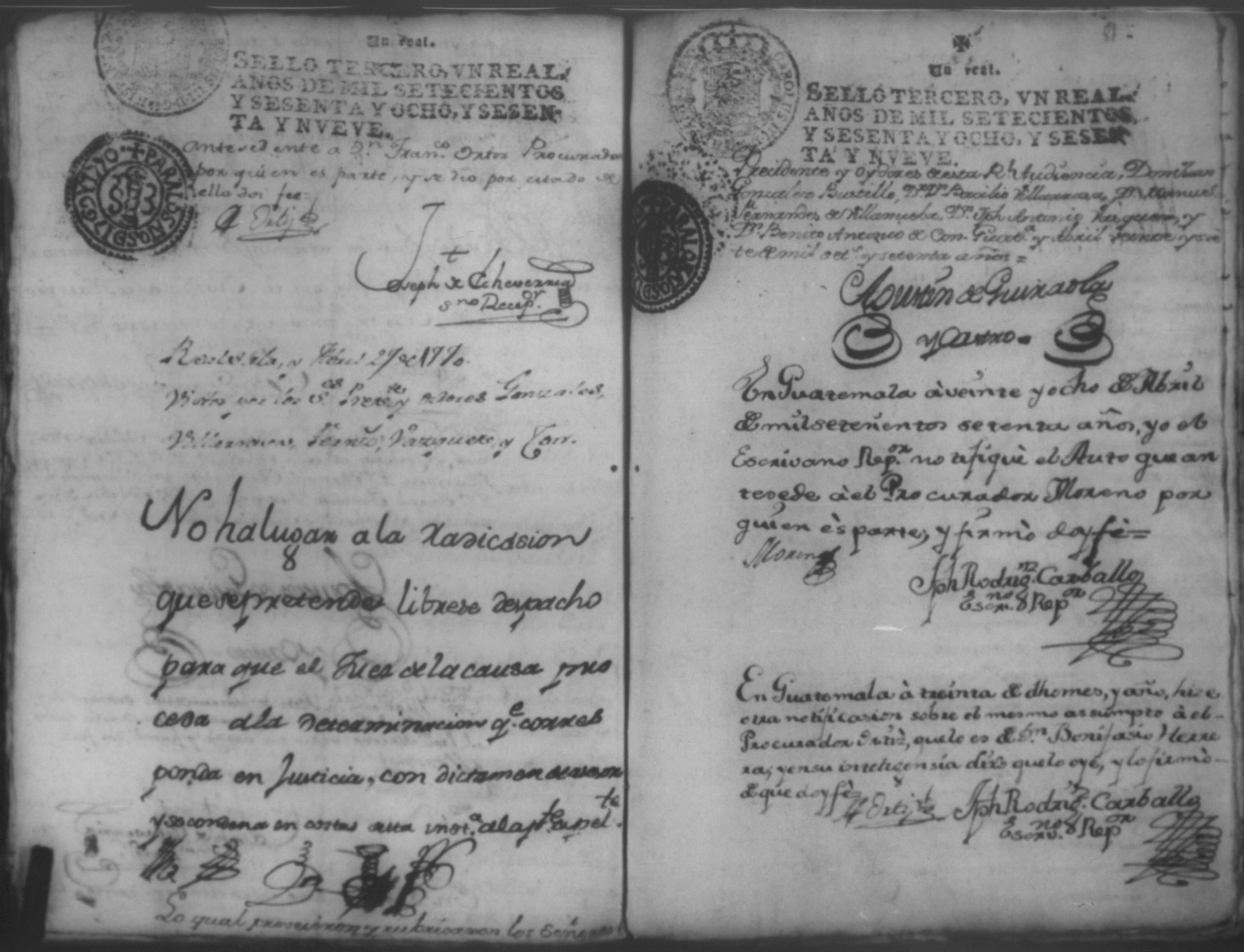 Don Bonifacio de Herrera y Zalazar, Don Diego de Carraza, Regidor y Doña María Valdivia en testimonio de autos seguidos, León 1769