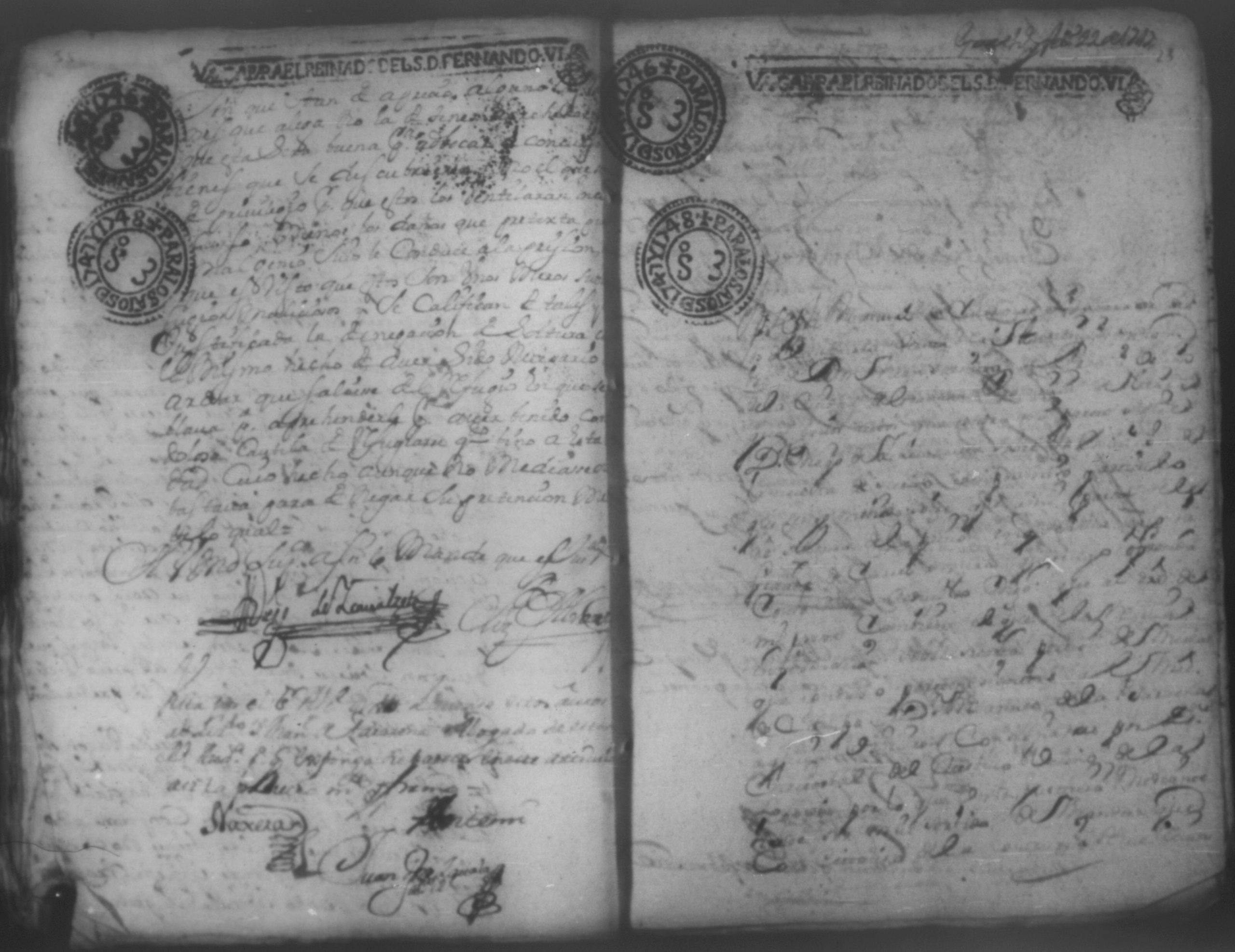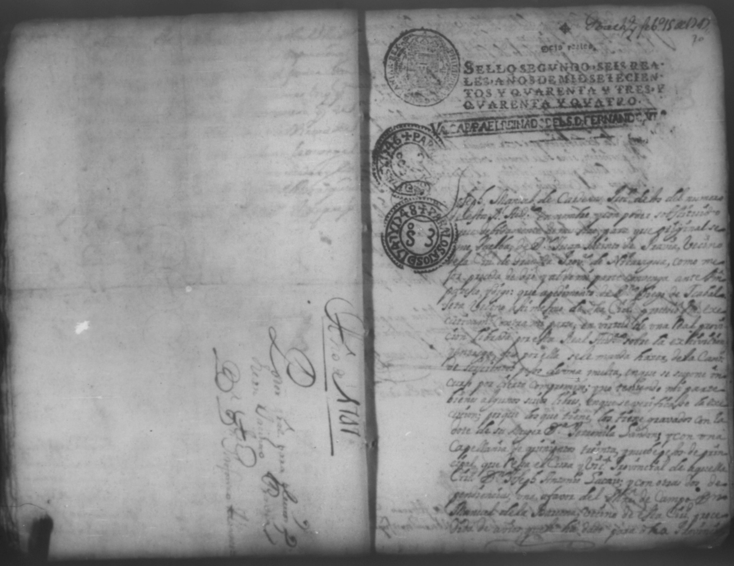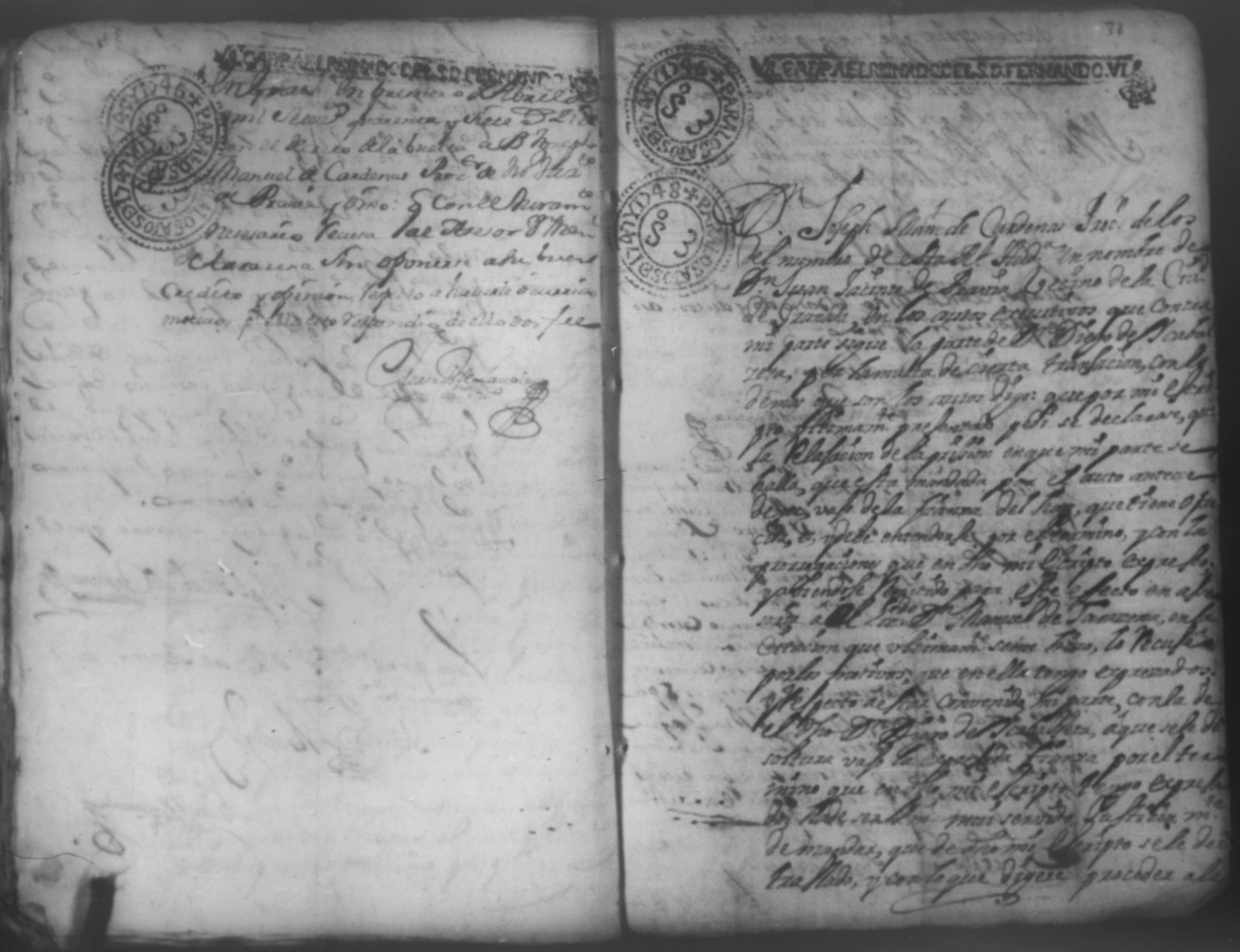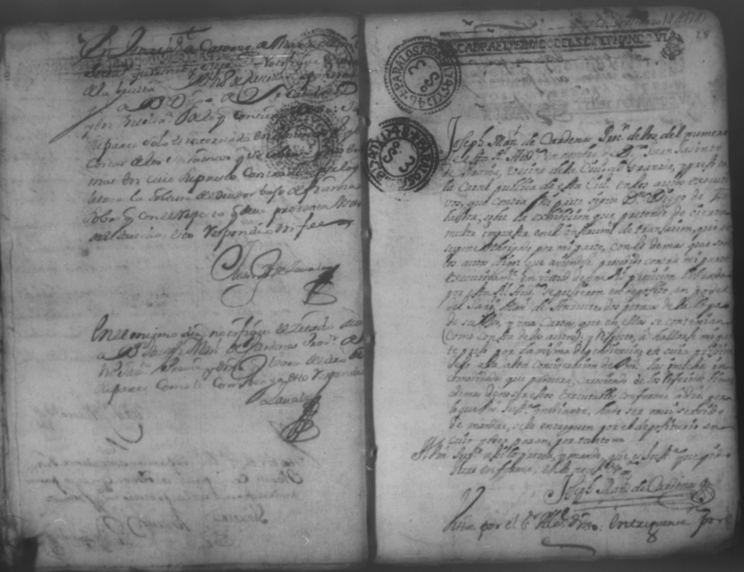 Temática: Don Joseph Manuel de Cardenas Procuraodr de los del número en nombre de Don Juan Jacinto de Pravia vecino de la ciudad de Granada en los autos ejecutivos que contra mi parte sigue Don Diego de Ycabalzeta por la propiedad de unas tierras.