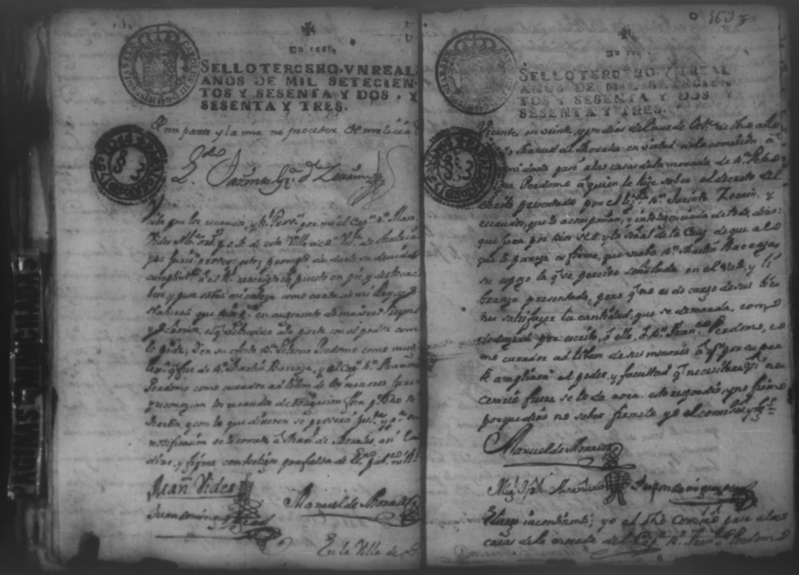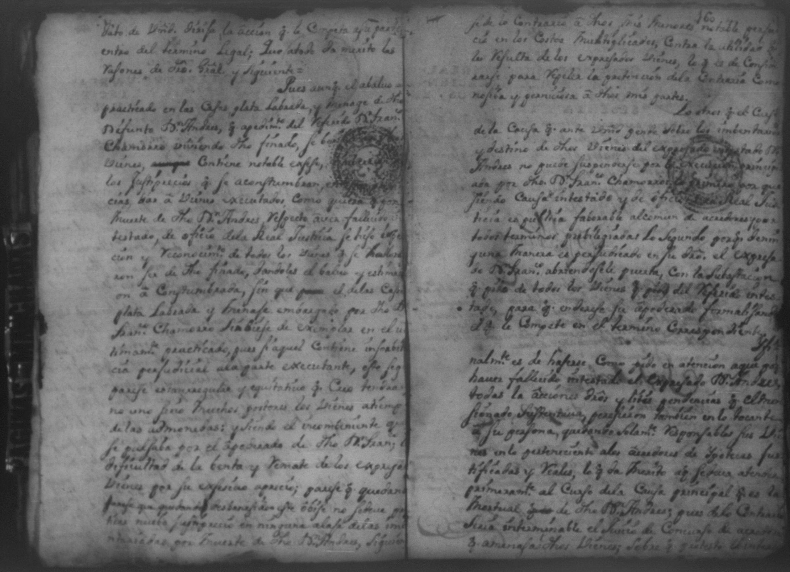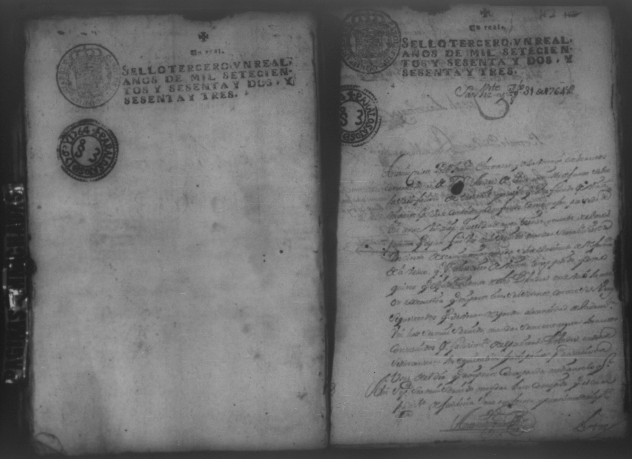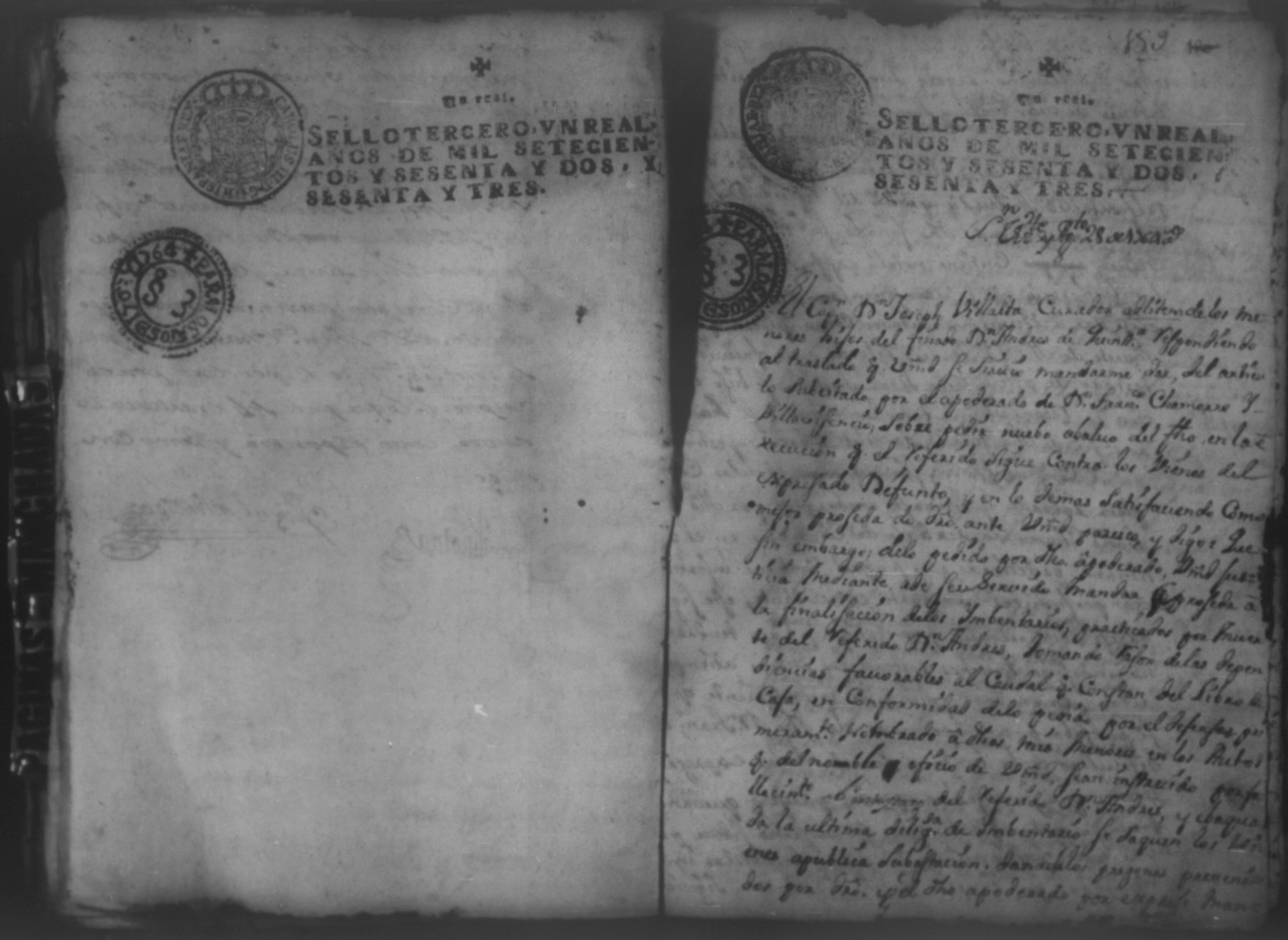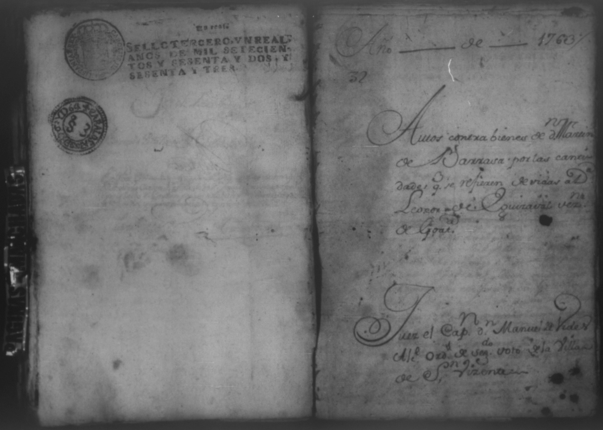 Temática: Año 1762. Executivo por Don Francisco Ignacio Chamoro, cavallero de Avito contra Don Andres de Quintanilla y concurso a sus bienes