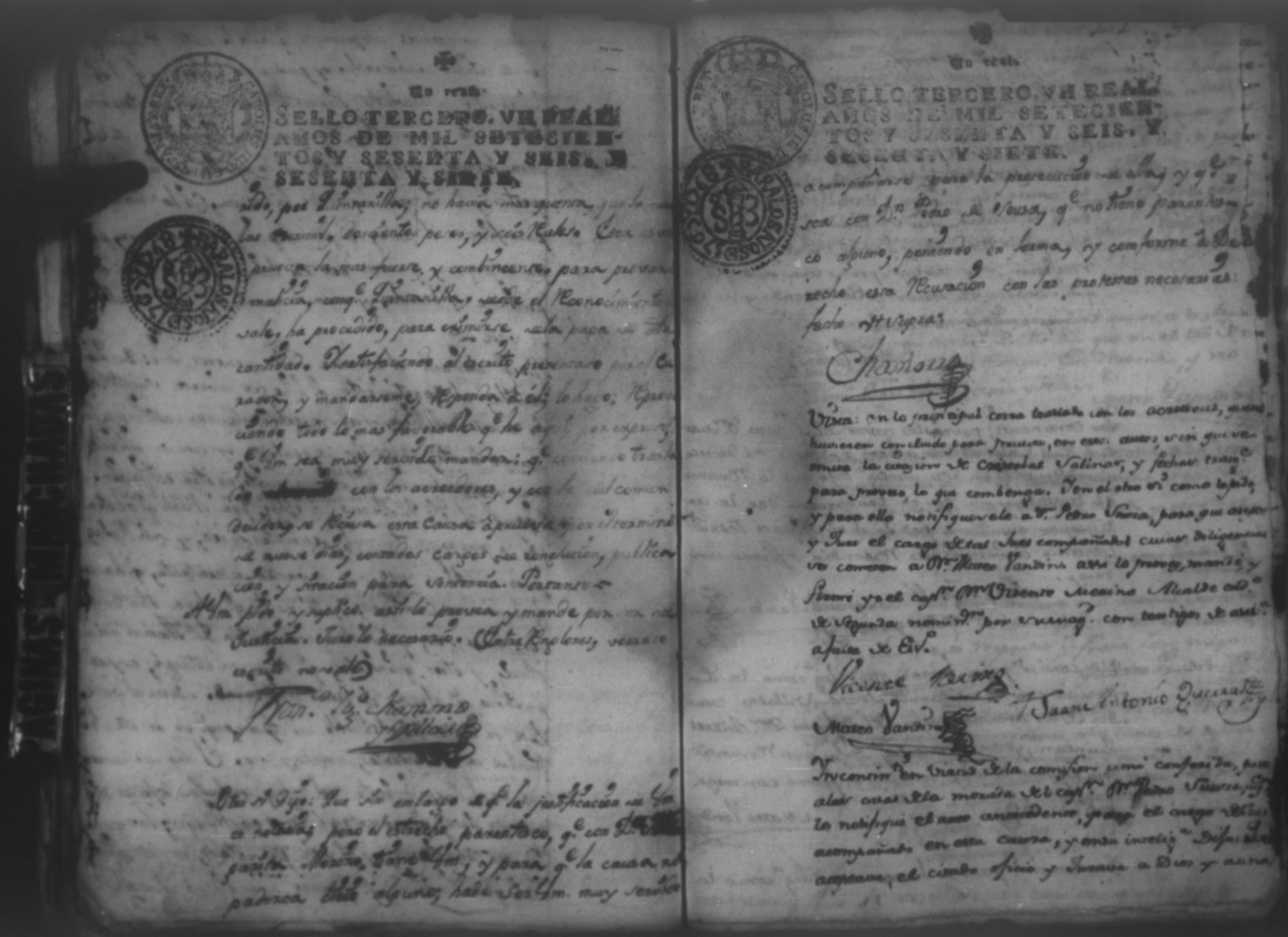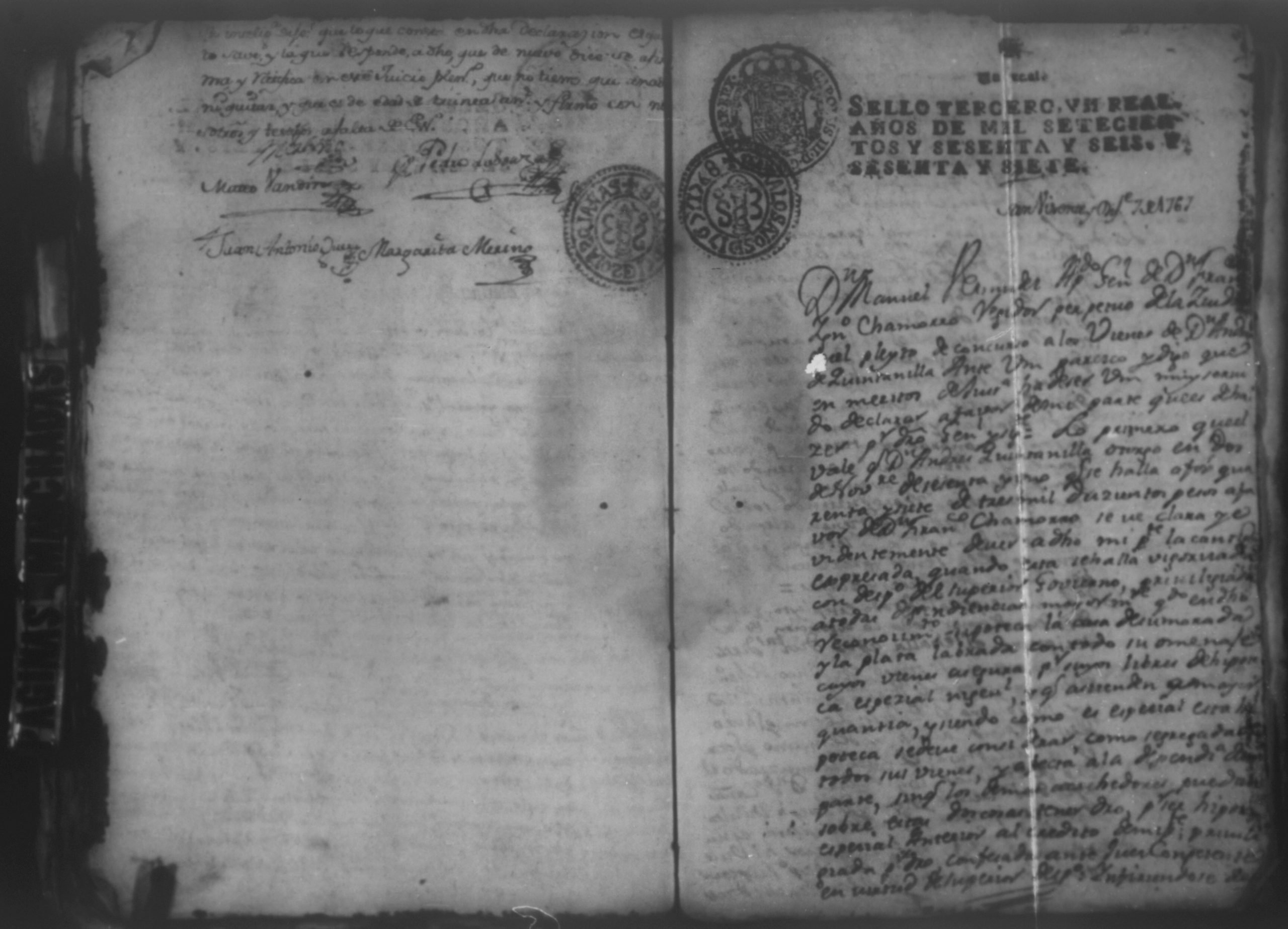 Temática: Año 1762. Executivo por Don Francisco Ignacio Chamoro, cavallero de Avito contra Don Andres de Quintanilla y concurso a sus bienes