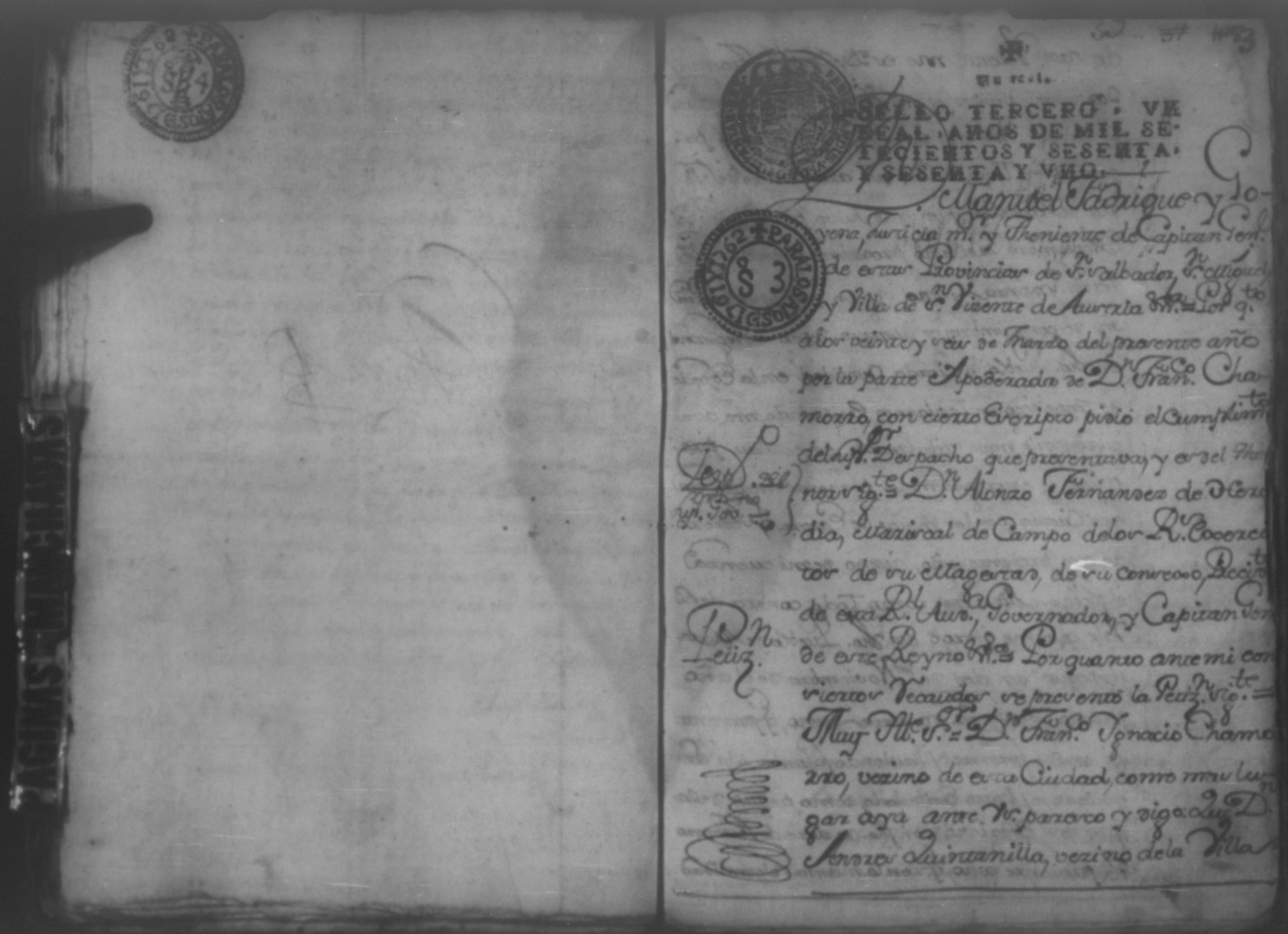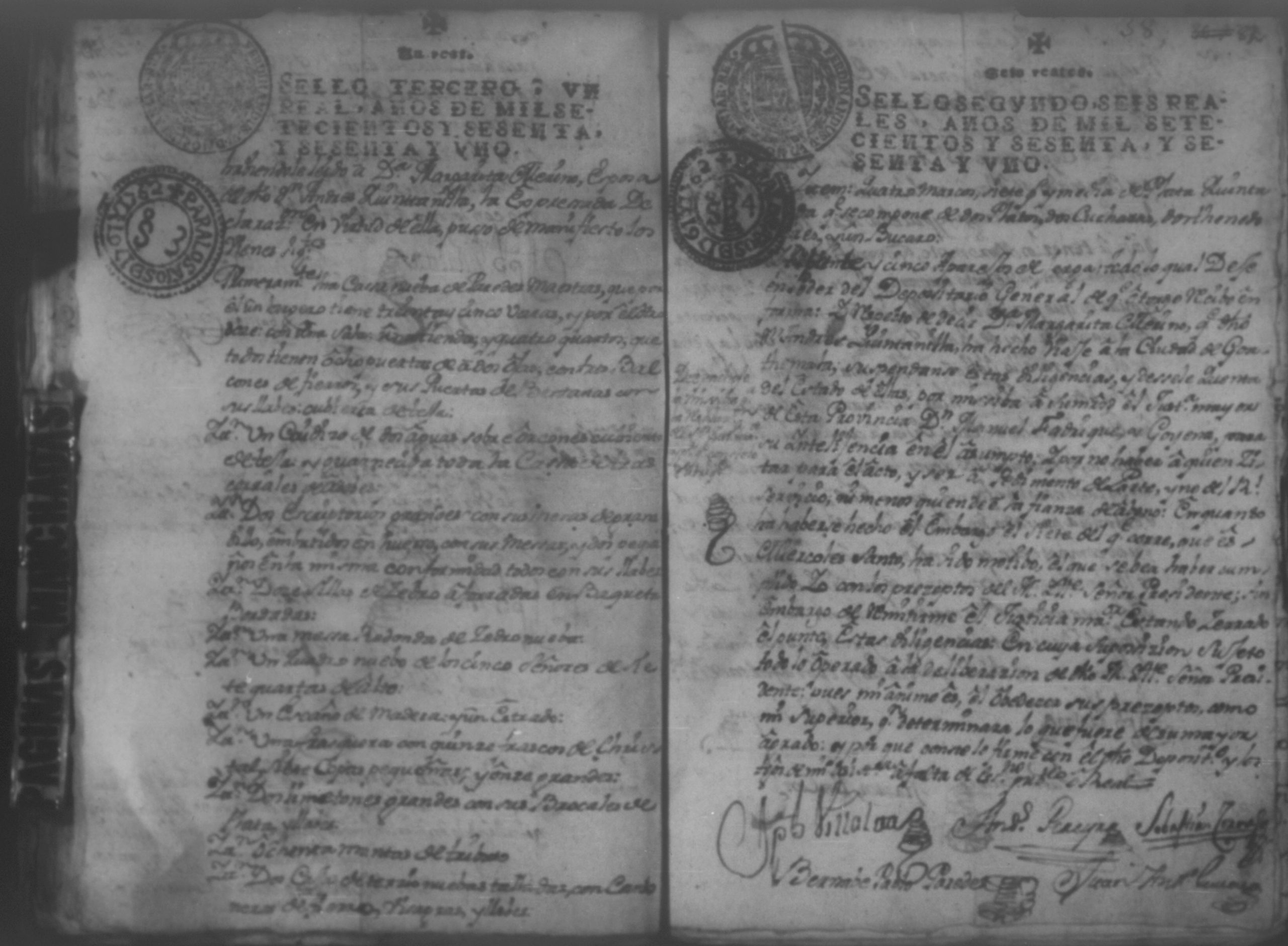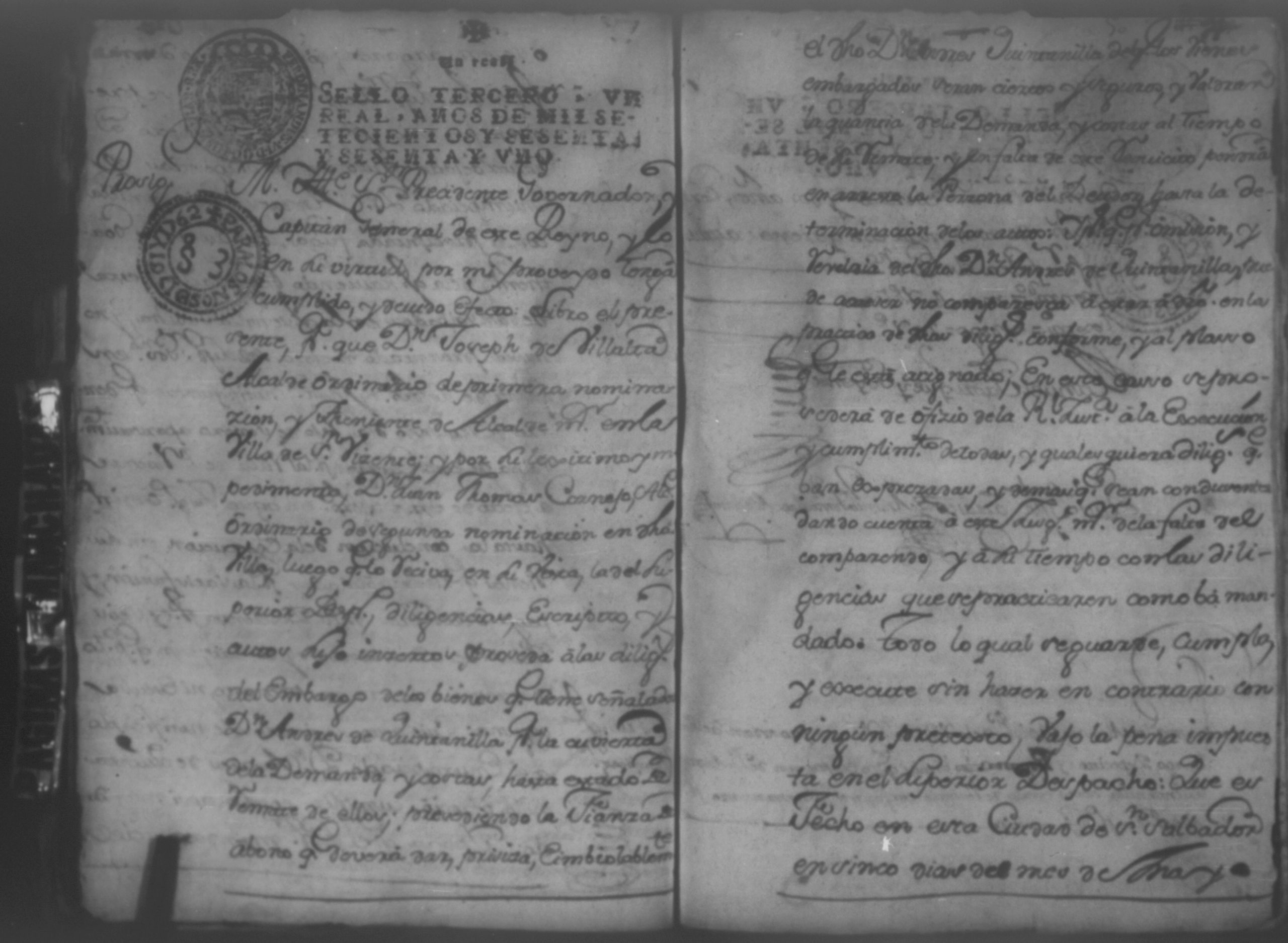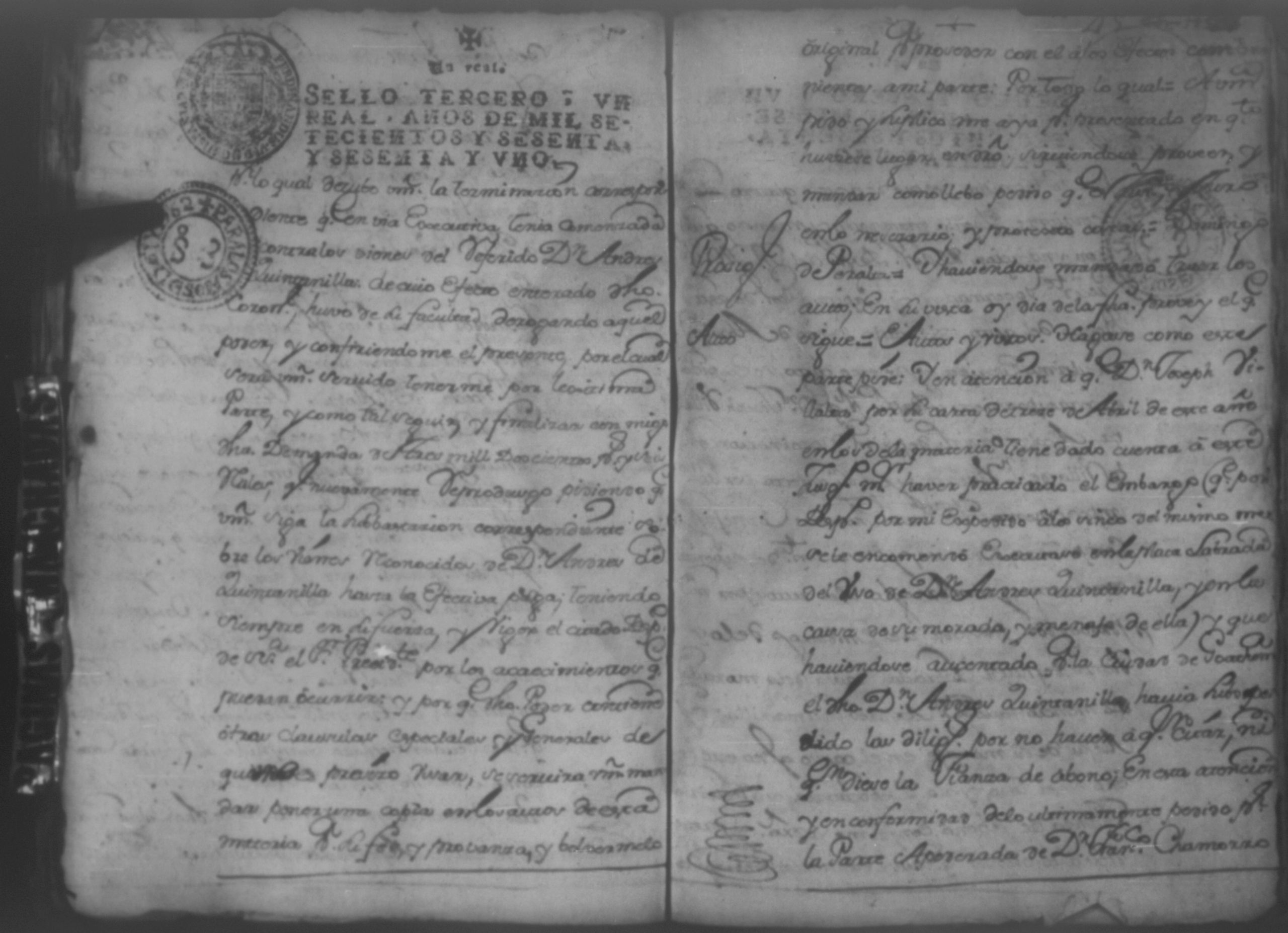 Temática: Año 1762. Executivo por Don Francisco Ignacio Chamoro, cavallero de Avito contra Don Andres de Quintanilla y concurso a sus bienes