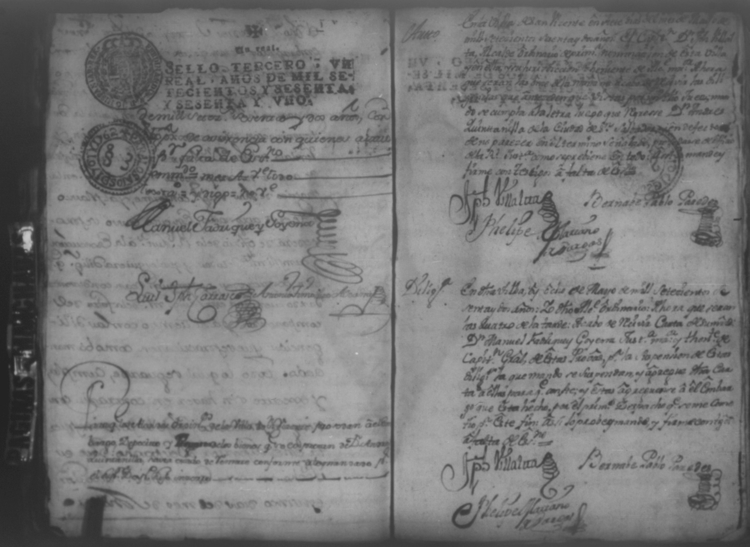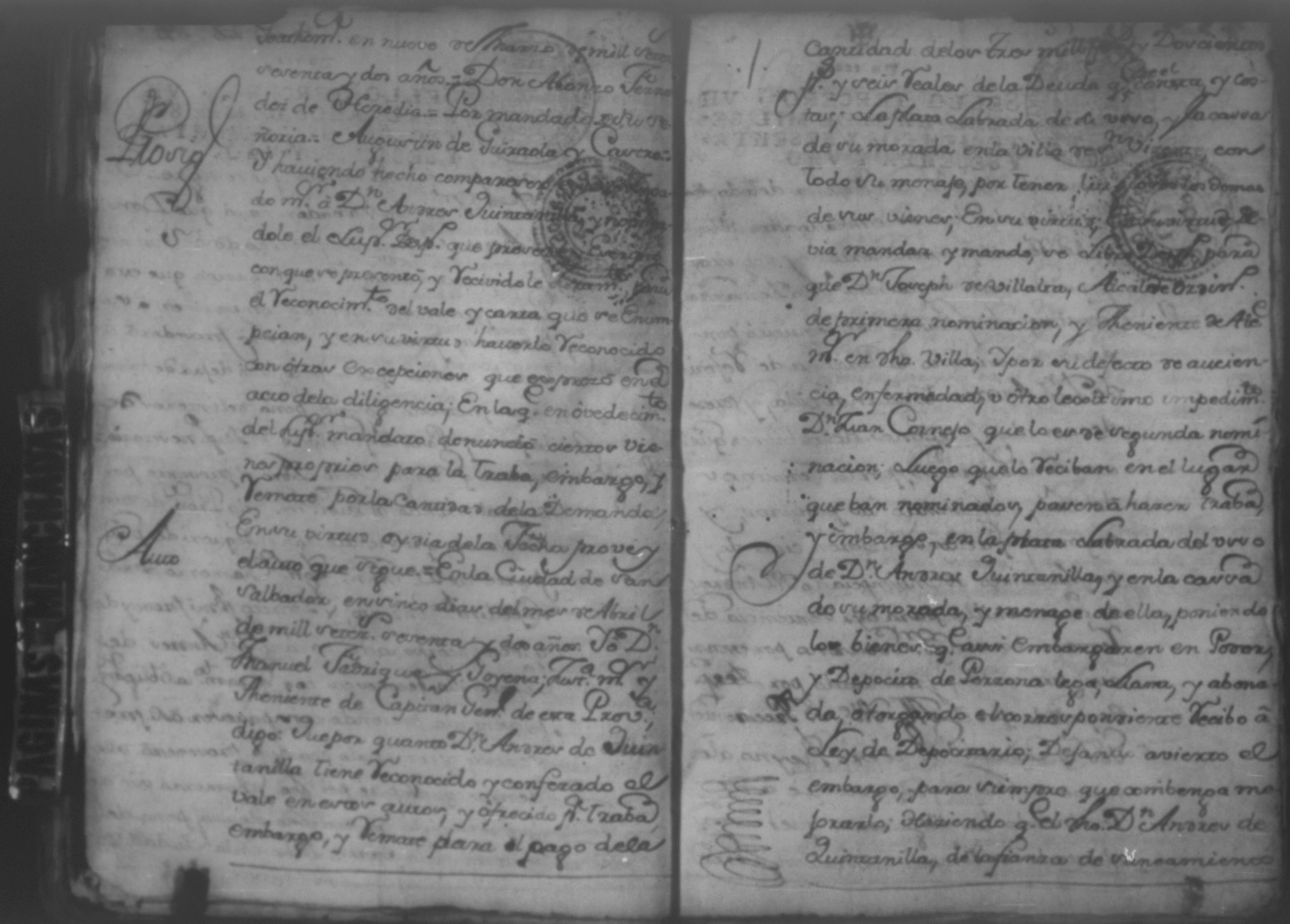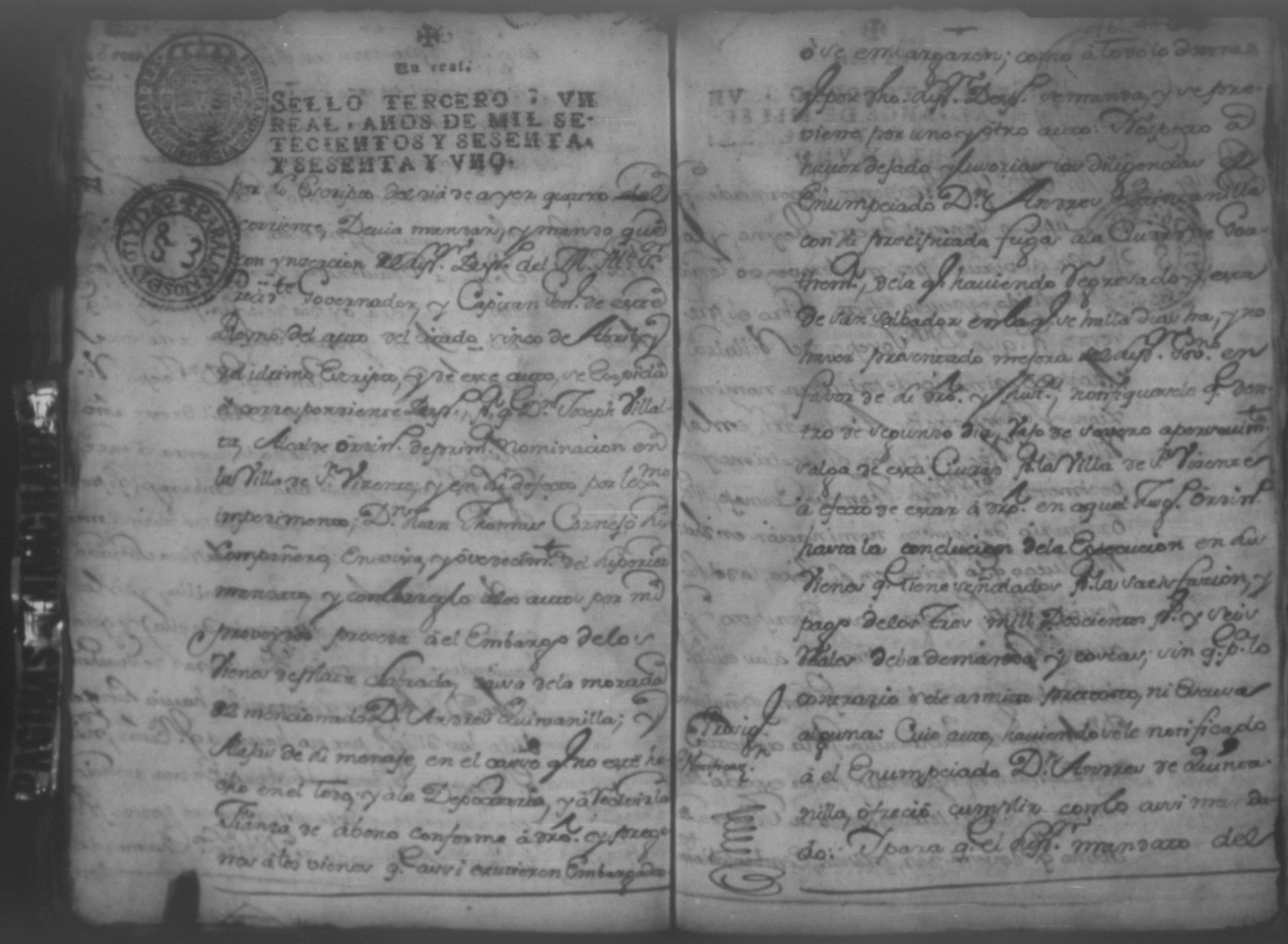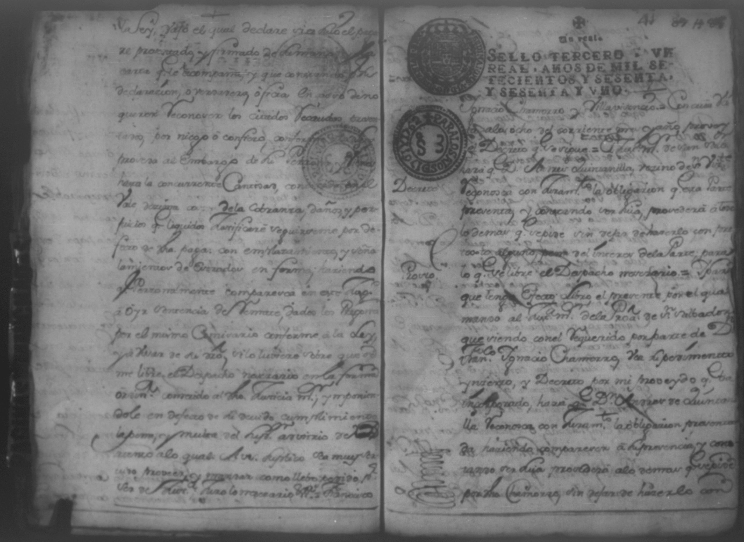 Temática: Año 1762. Executivo por Don Francisco Ignacio Chamoro, cavallero de Avito contra Don Andres de Quintanilla y concurso a sus bienes