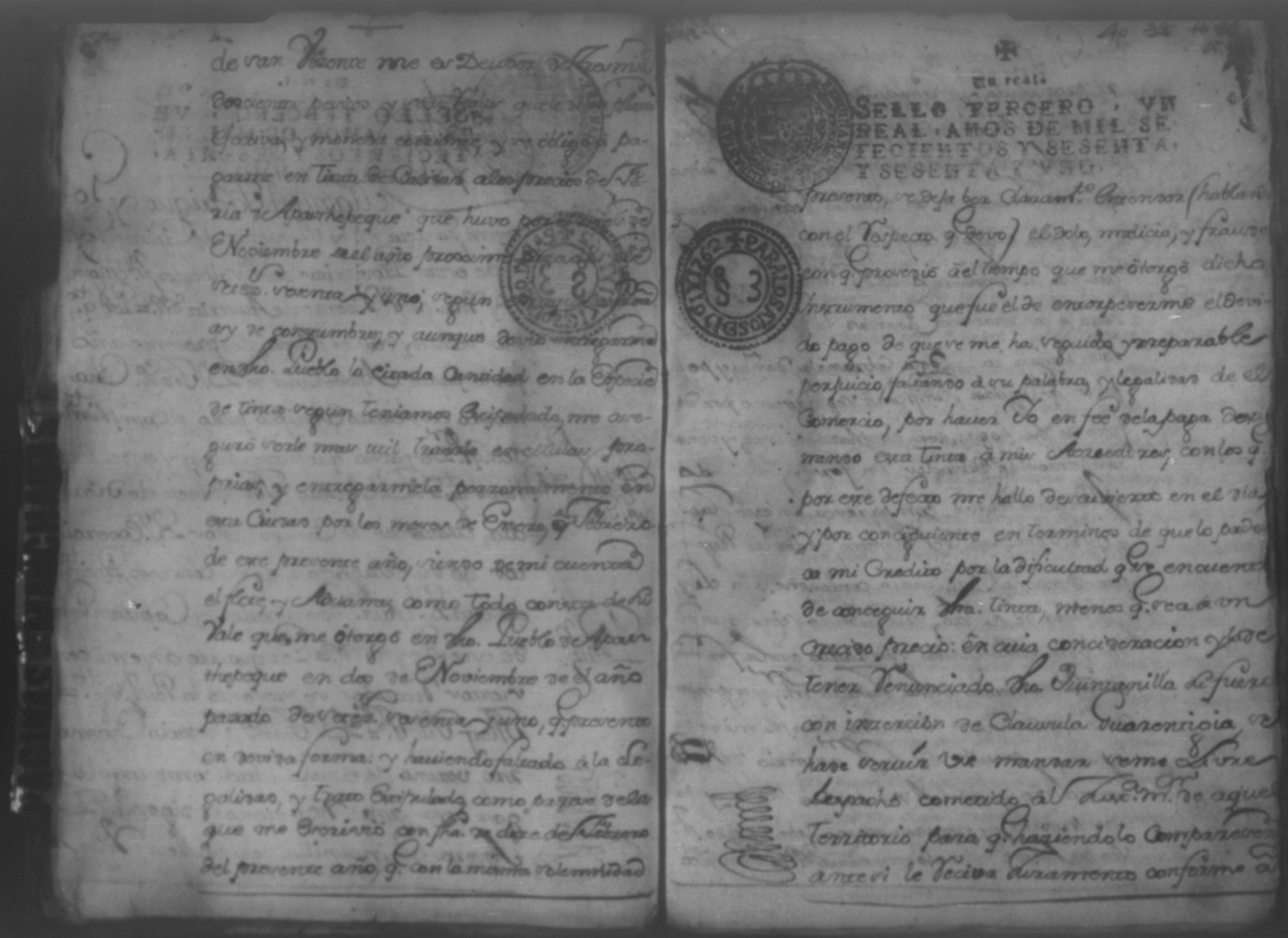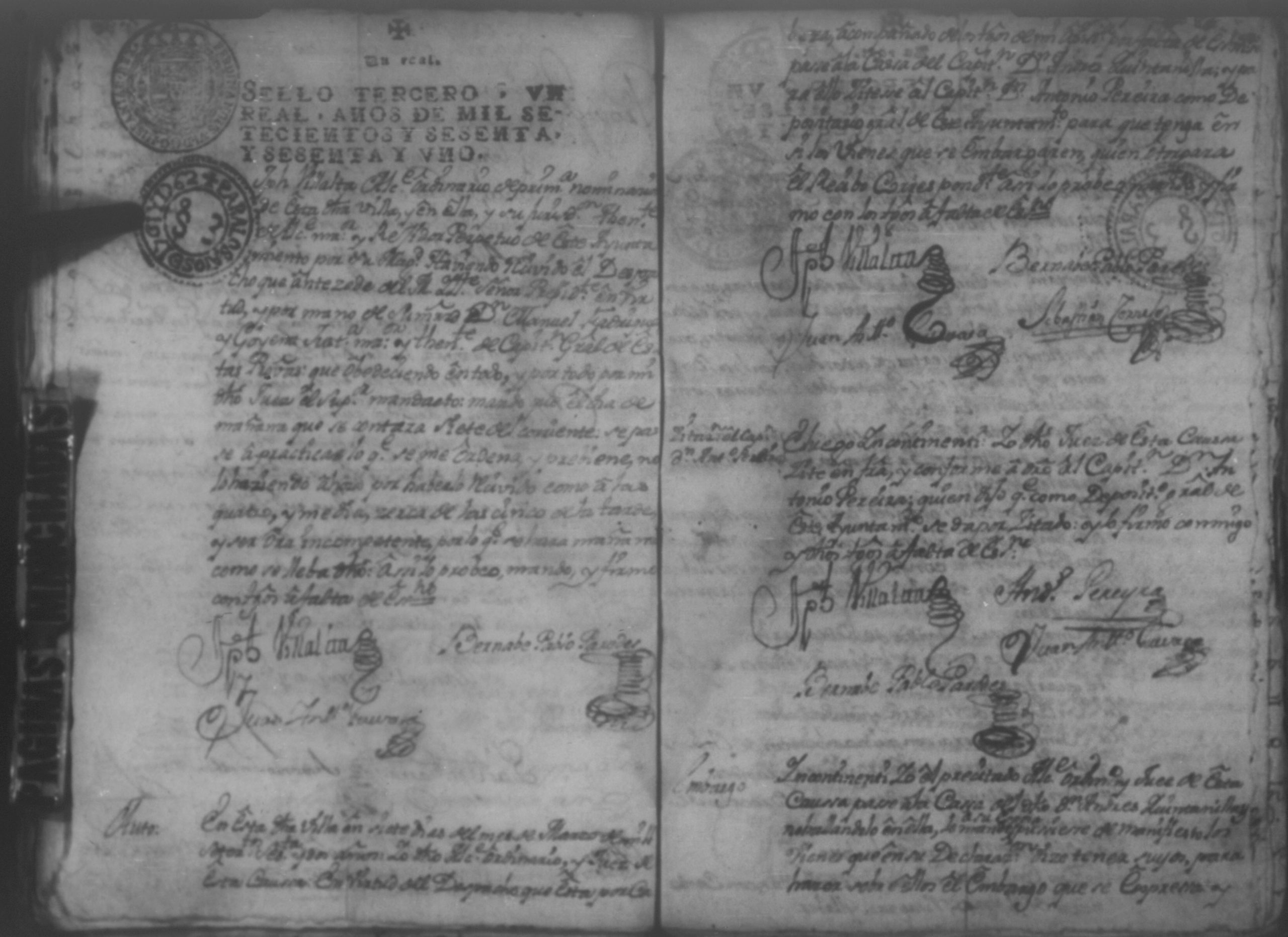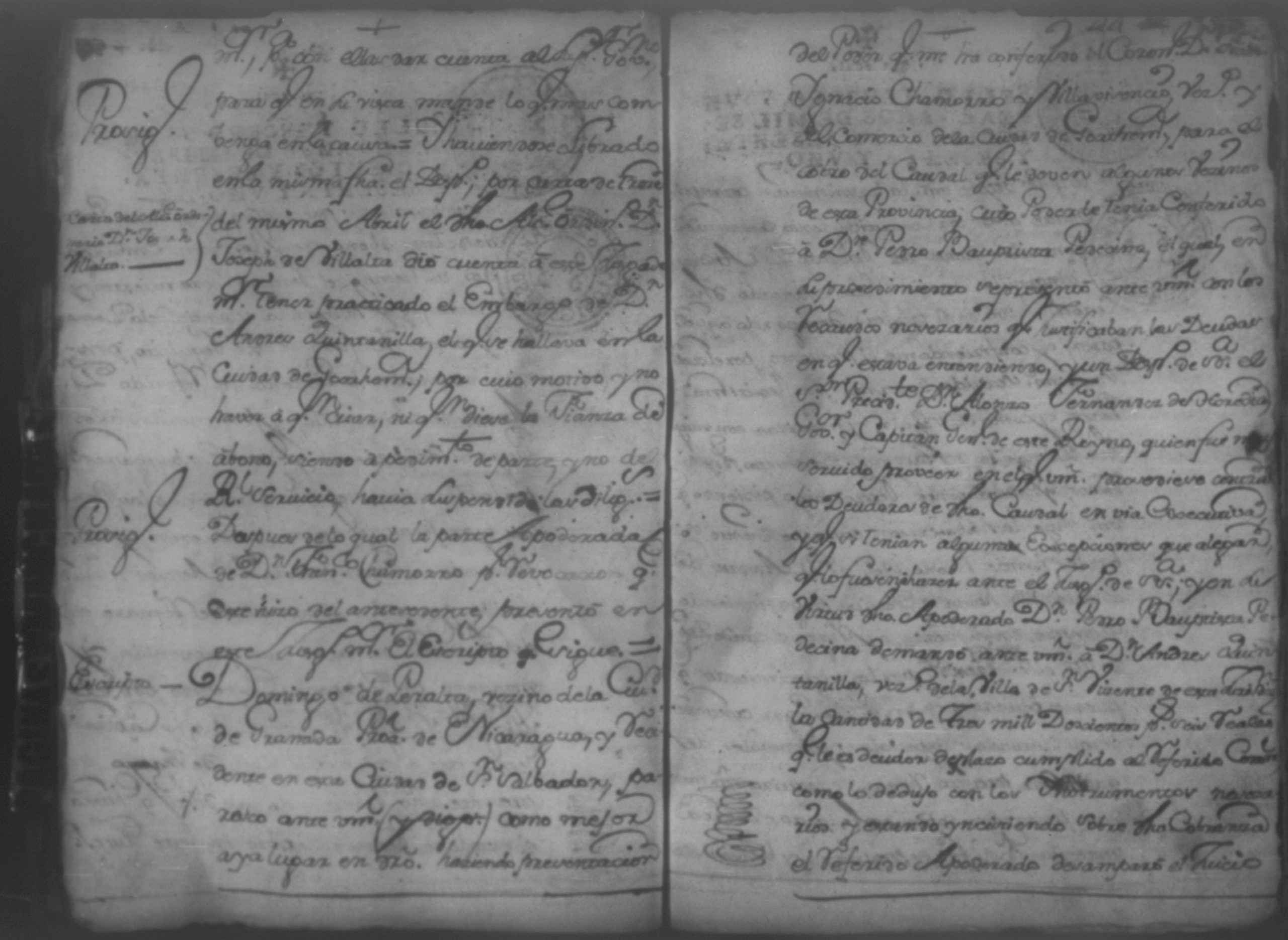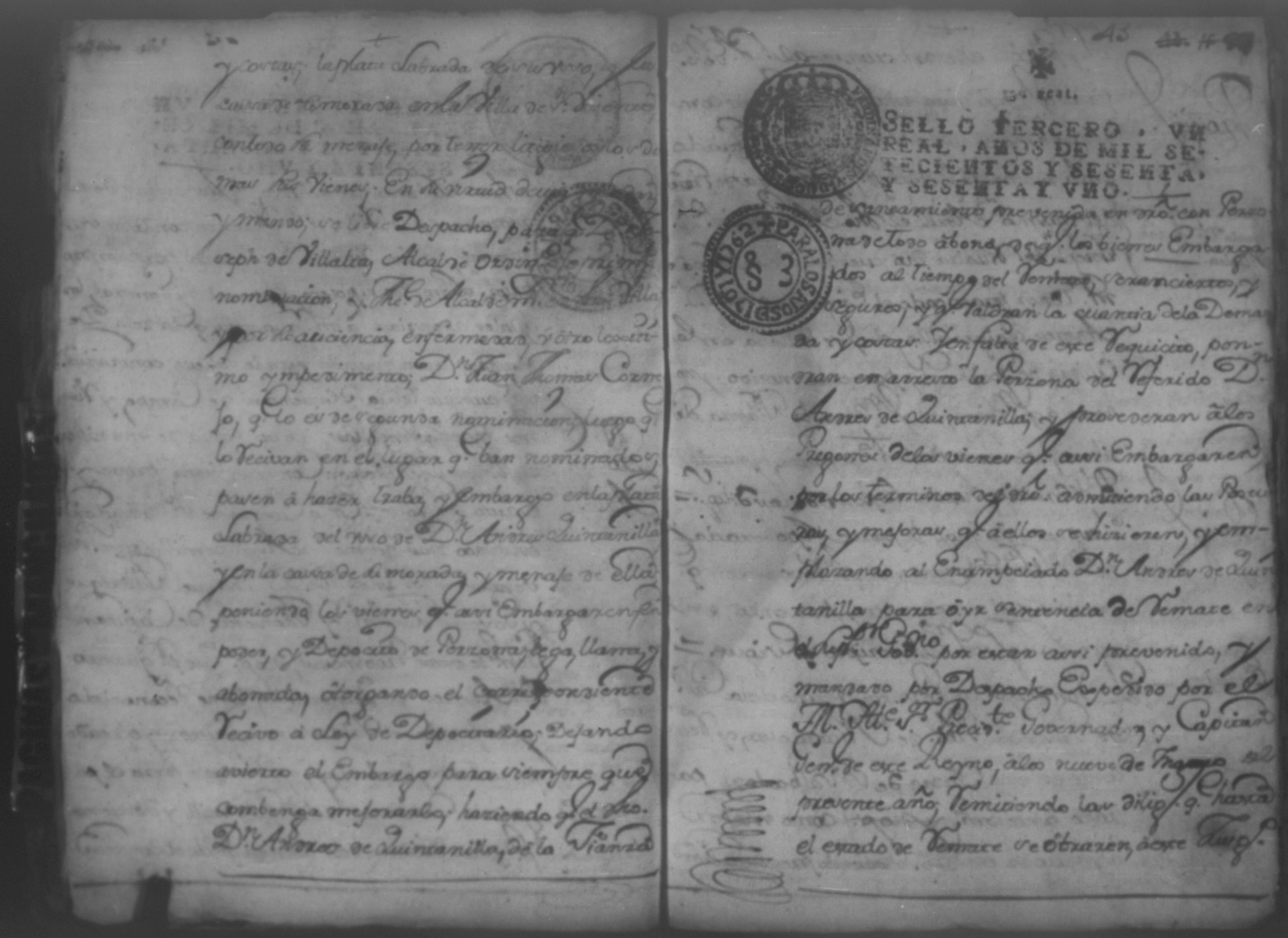 Temática: Año 1762. Executivo por Don Francisco Ignacio Chamoro, cavallero de Avito contra Don Andres de Quintanilla y concurso a sus bienes
