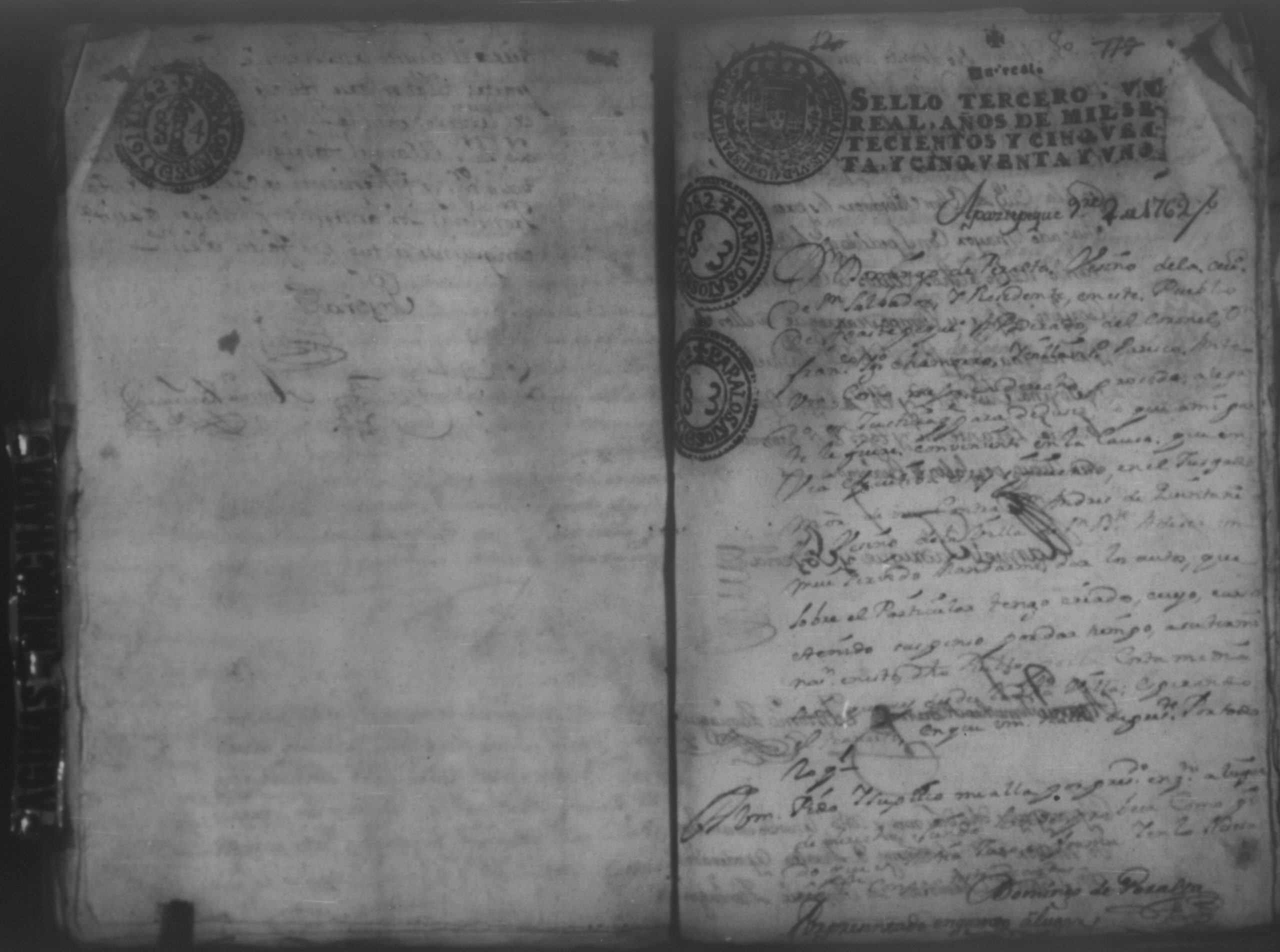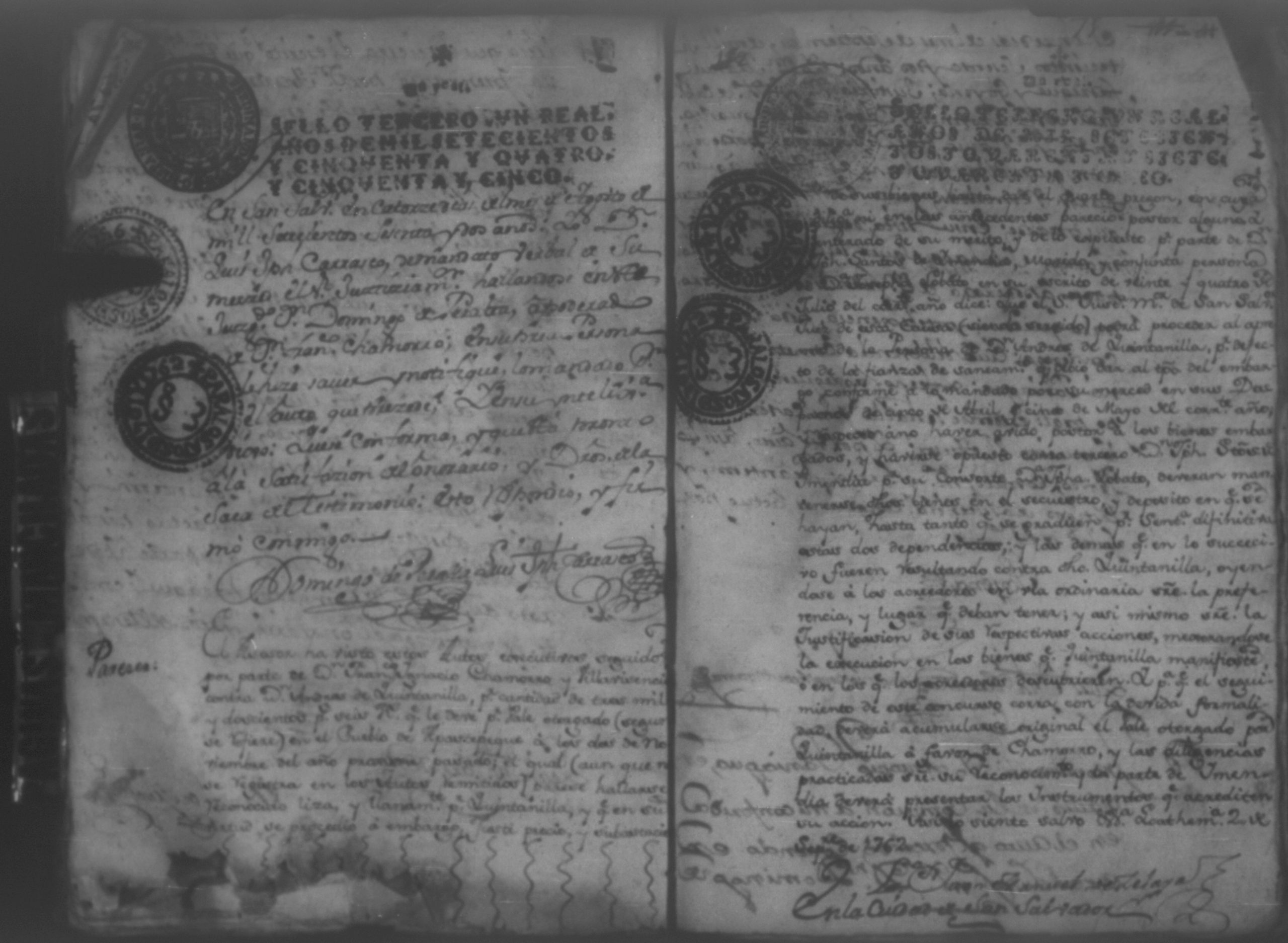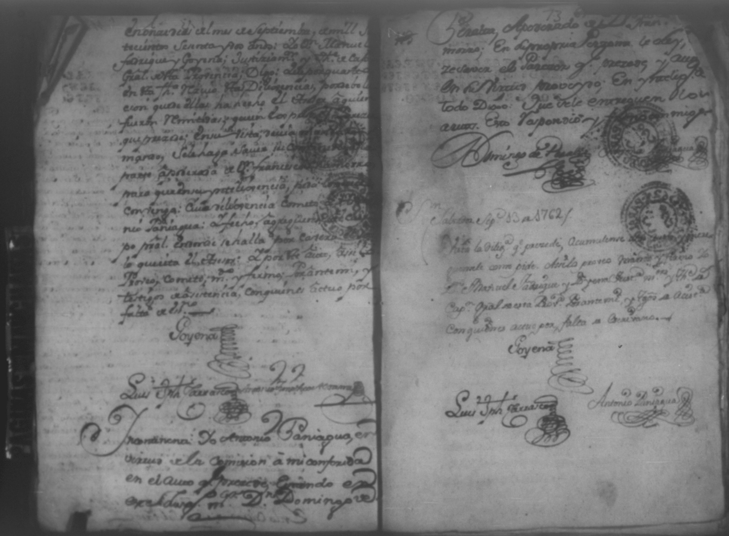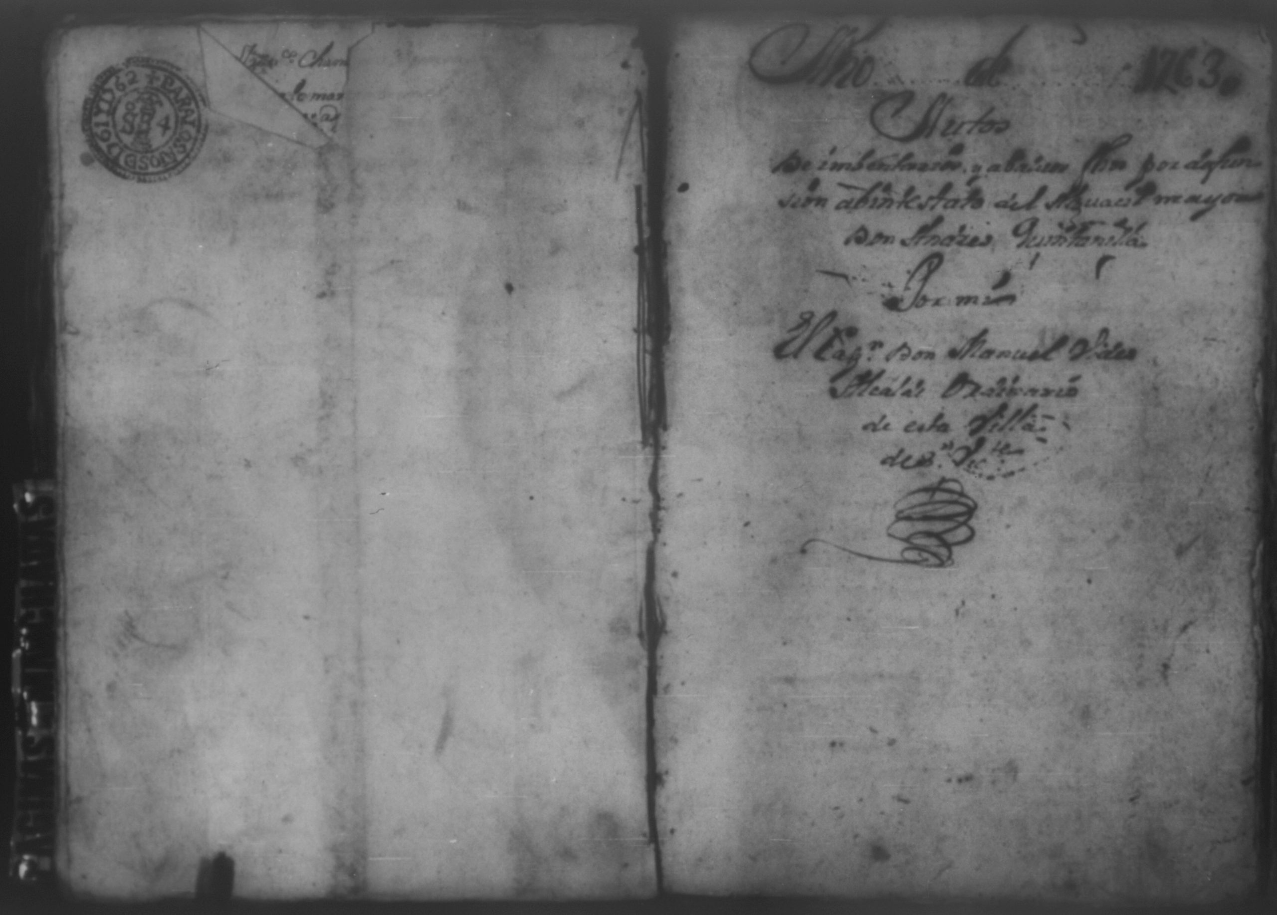 Temática: Año 1762. Executivo por Don Francisco Ignacio Chamoro, cavallero de Avito contra Don Andres de Quintanilla y concurso a sus bienes