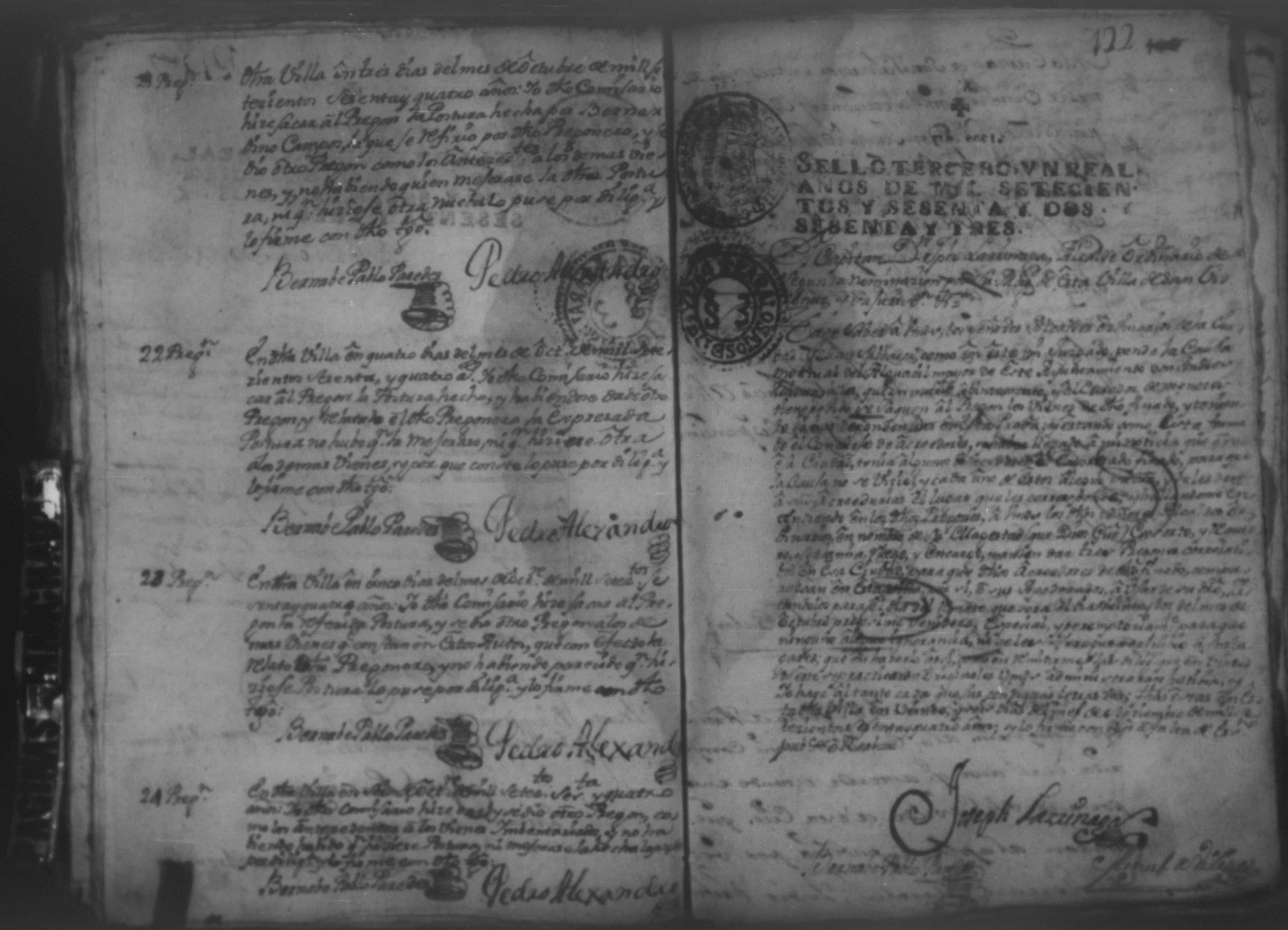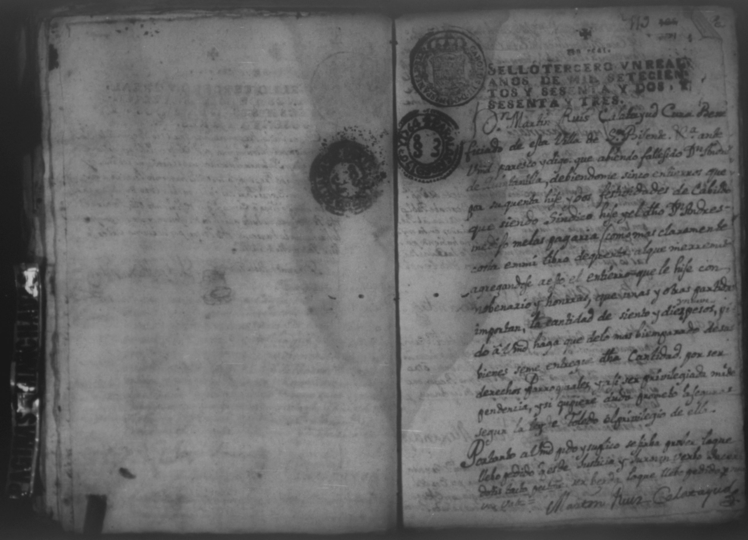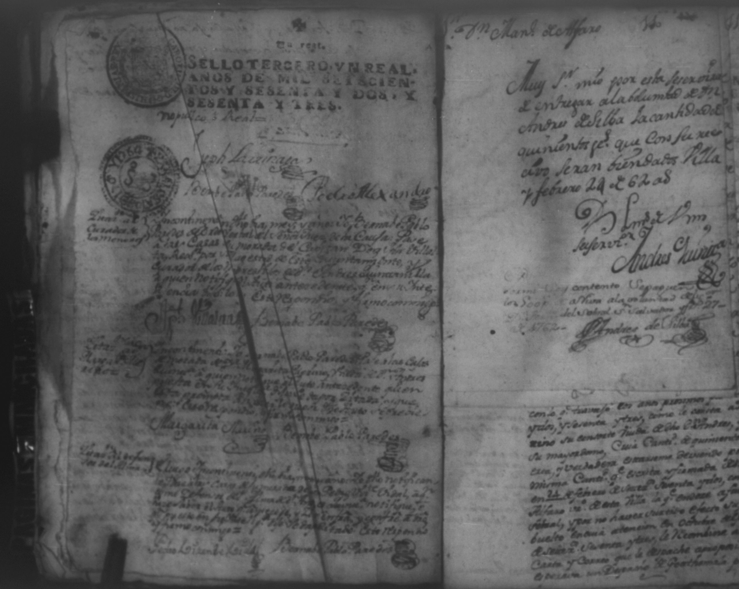 Temática: Año 1762. Executivo por Don Francisco Ignacio Chamoro, cavallero de Avito contra Don Andres de Quintanilla y concurso a sus bienes