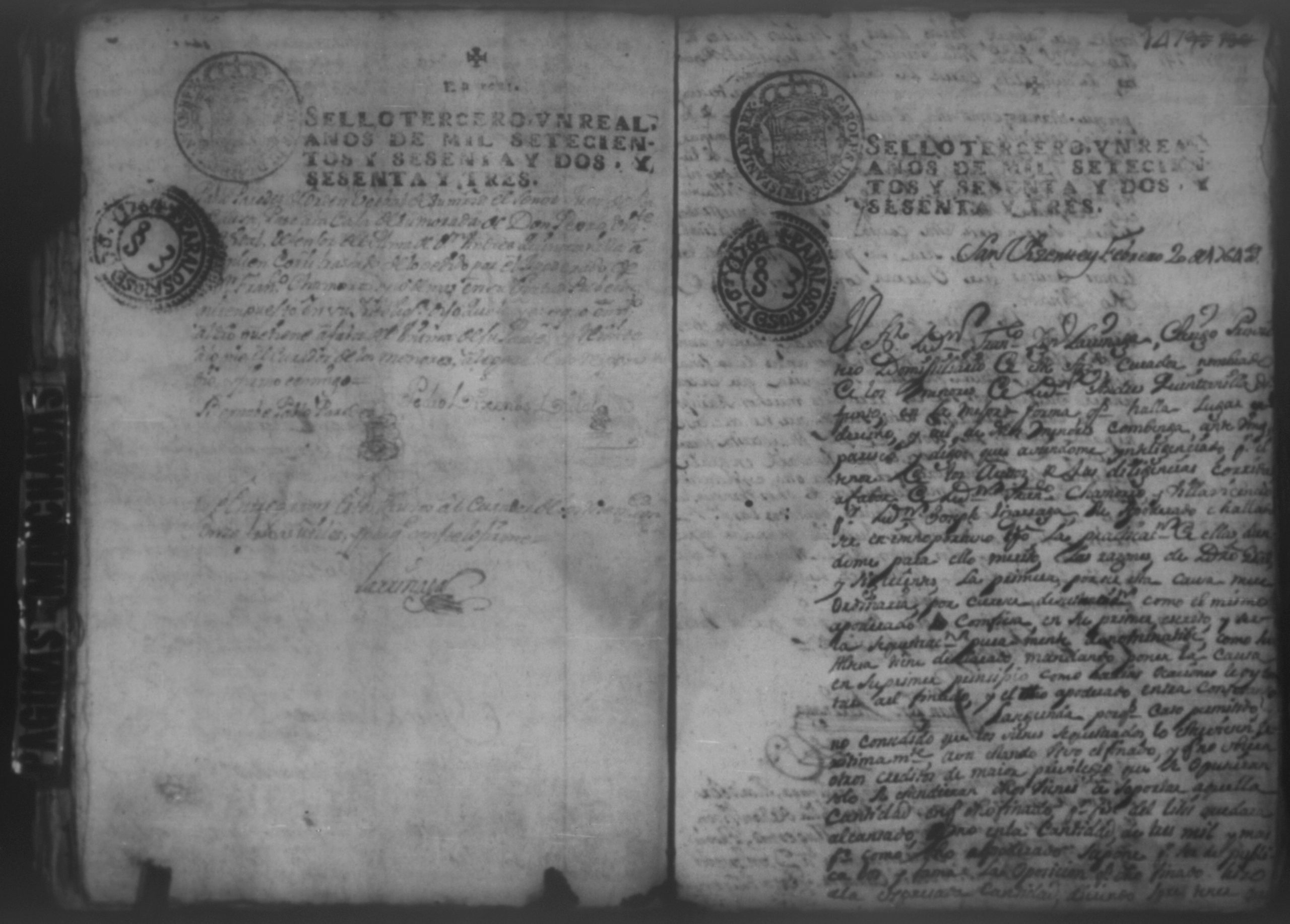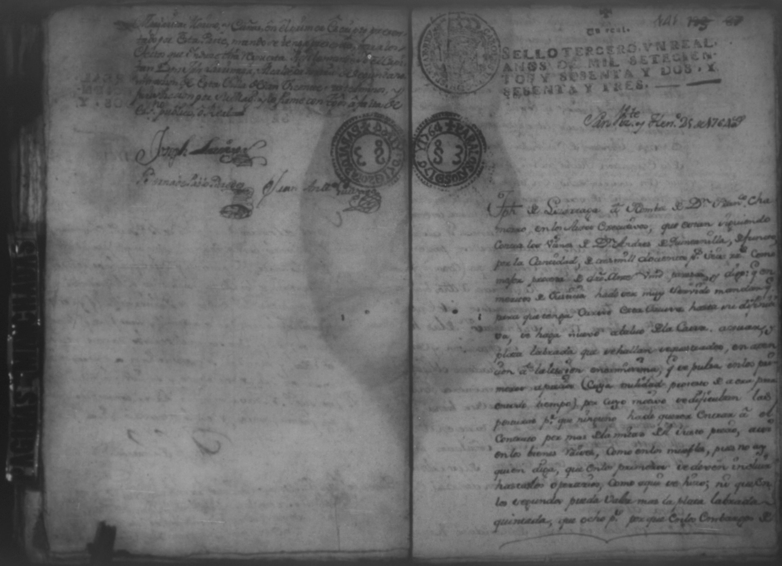 Temática: Año 1762. Executivo por Don Francisco Ignacio Chamoro, cavallero de Avito contra Don Andres de Quintanilla y concurso a sus bienes
