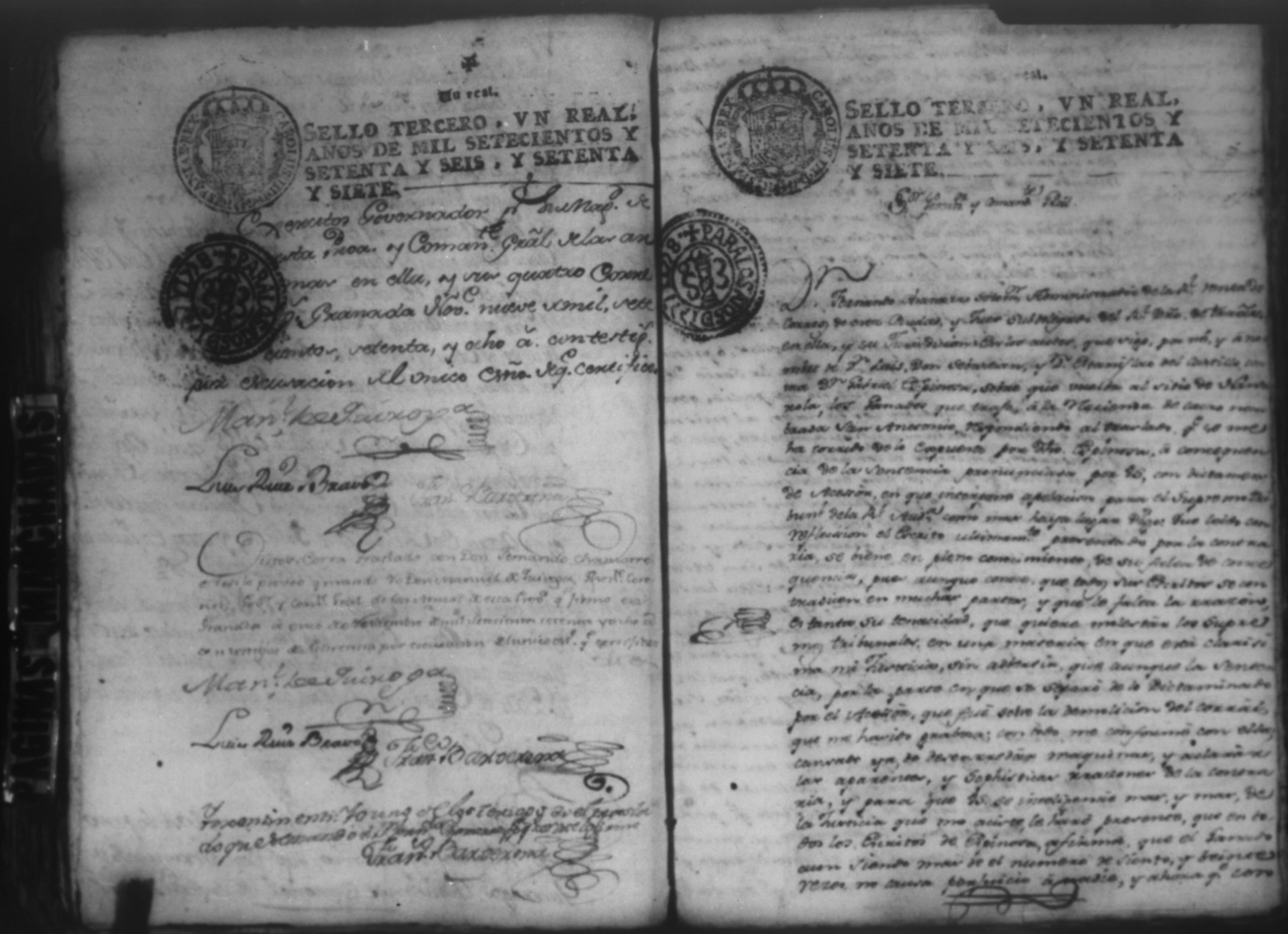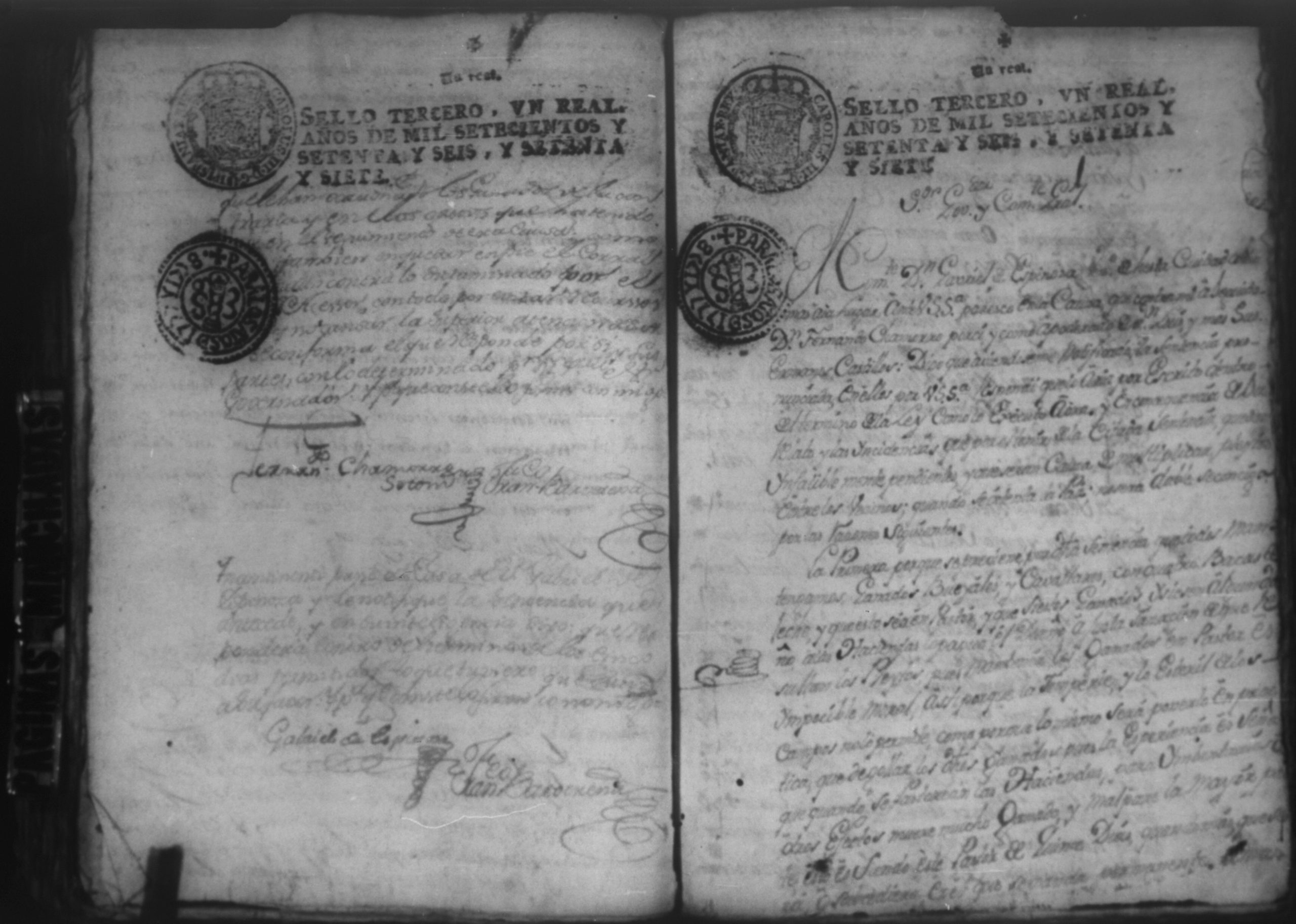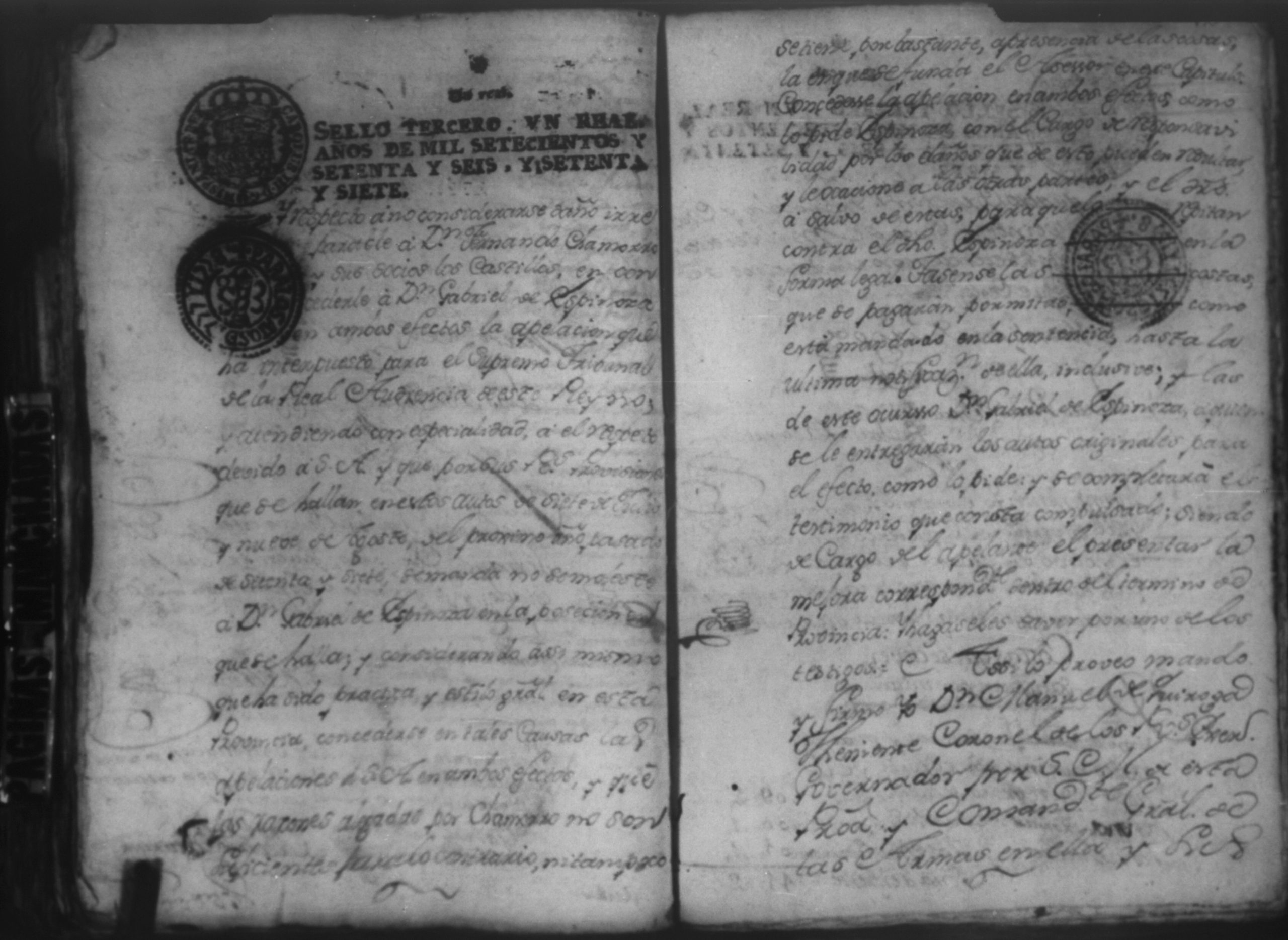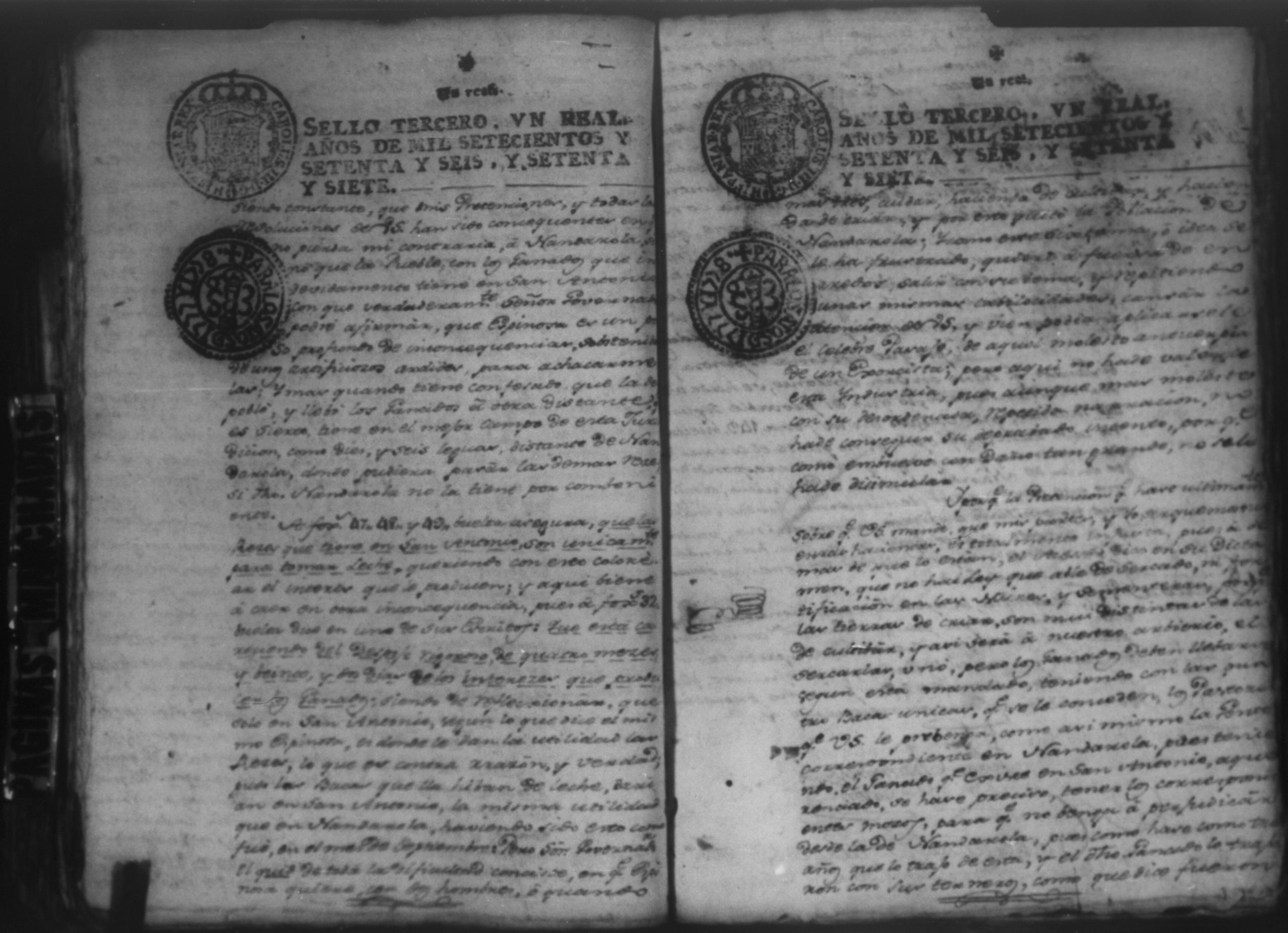 Temática: Audiencia Leon 1779. Autos seguidos en grado de apelación por Don Gabriel de Espinosa con Don Fernando Chamorro y su consorte el presbitero Don Estanislao Don Luiz Ventura y Don Sebastian del Castillo vecino de la ciudad de Granada sobre la despoblación y retiro del ganado mayor del citio de Don Antonio por los perjuicios que causa a los confinantes. Oficios de Guerra.