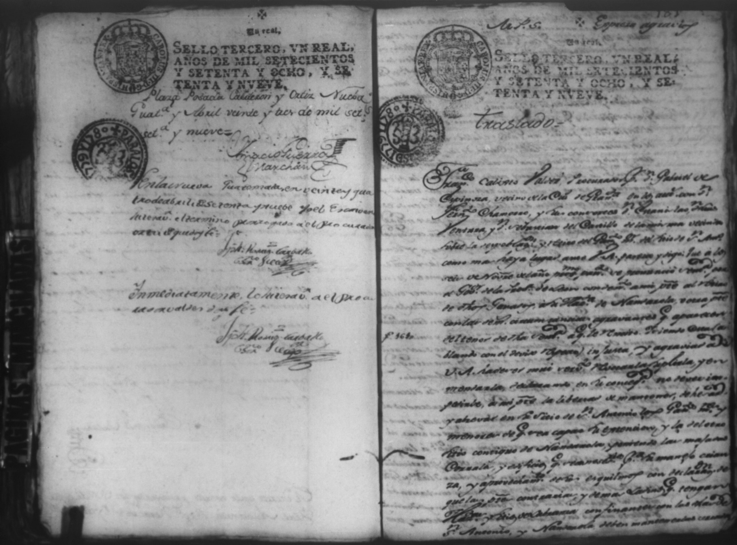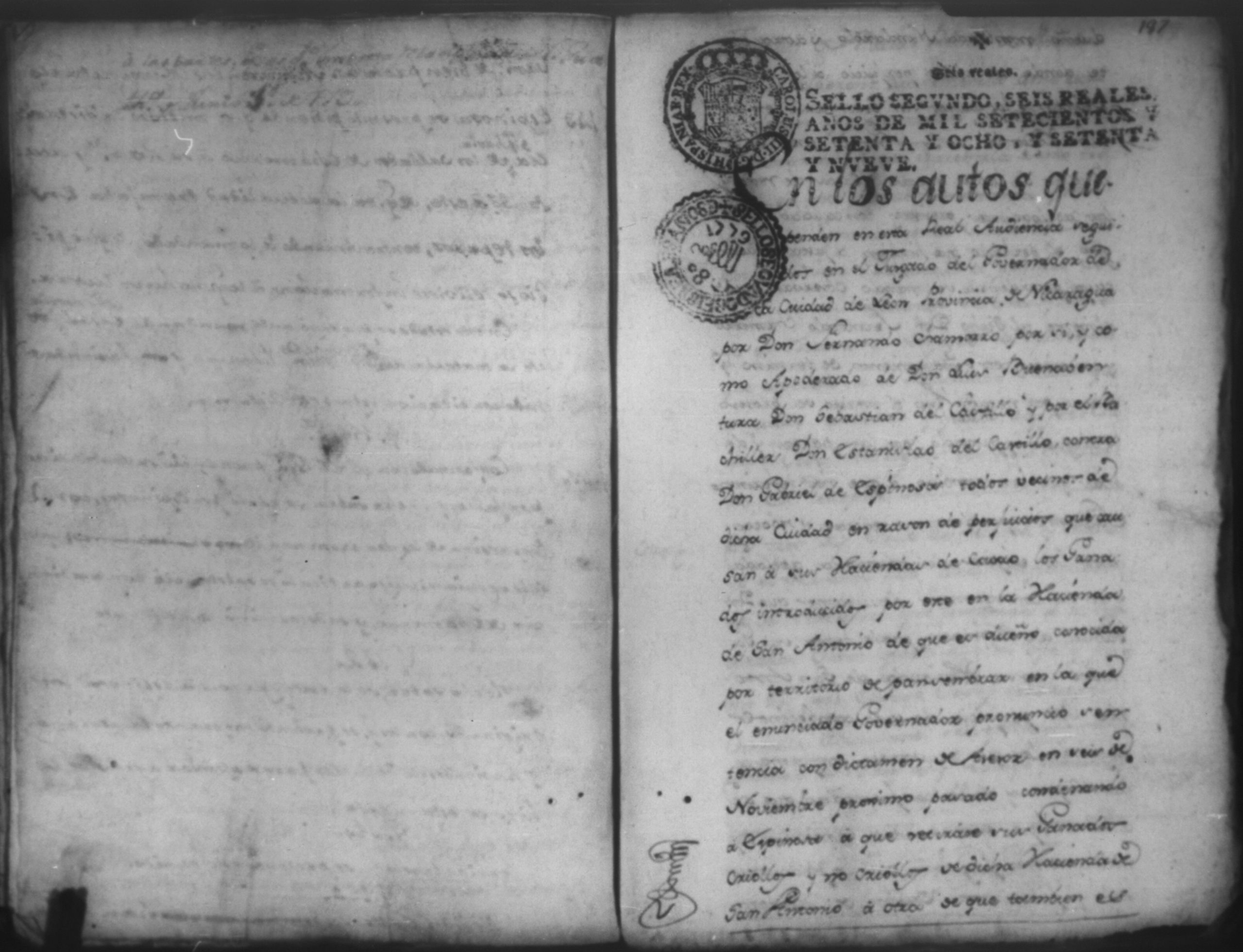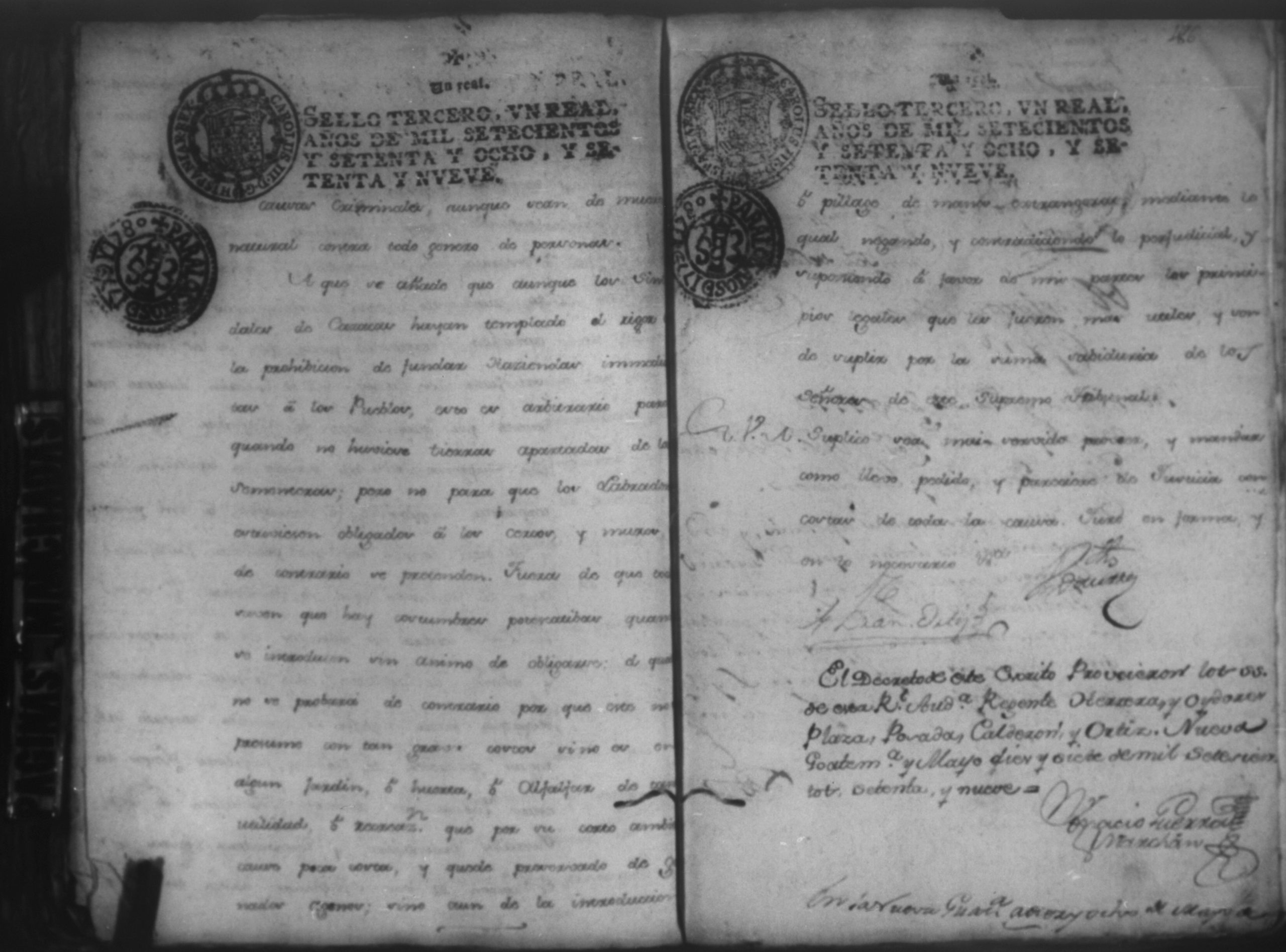 Temática: Audiencia Leon 1779. Autos seguidos en grado de apelación por Don Gabriel de Espinosa con Don Fernando Chamorro y su consorte el presbitero Don Estanislao Don Luiz Ventura y Don Sebastian del Castillo vecino de la ciudad de Granada sobre la despoblación y retiro del ganado mayor del citio de Don Antonio por los perjuicios que causa a los confinantes. Oficios de Guerra.