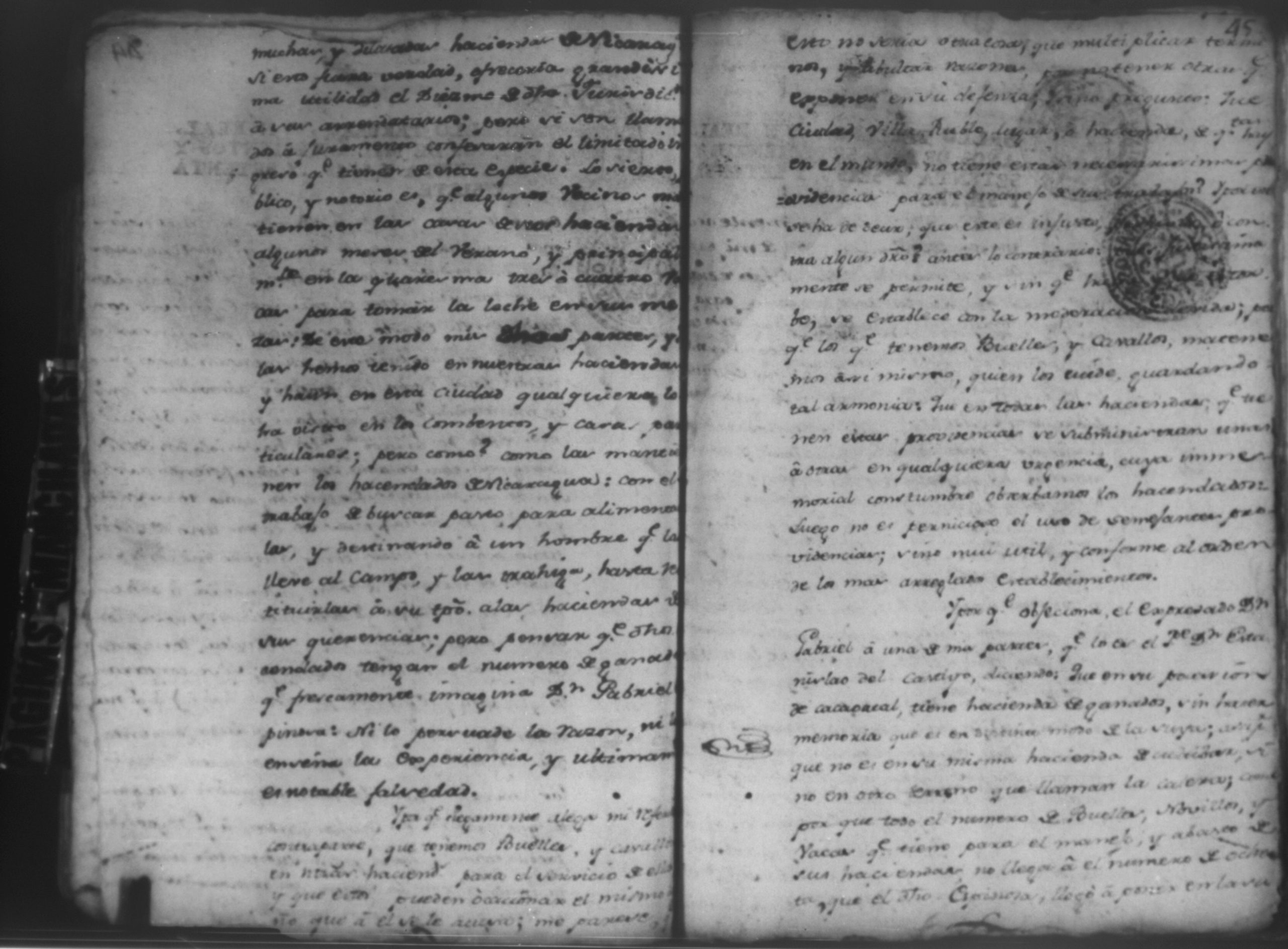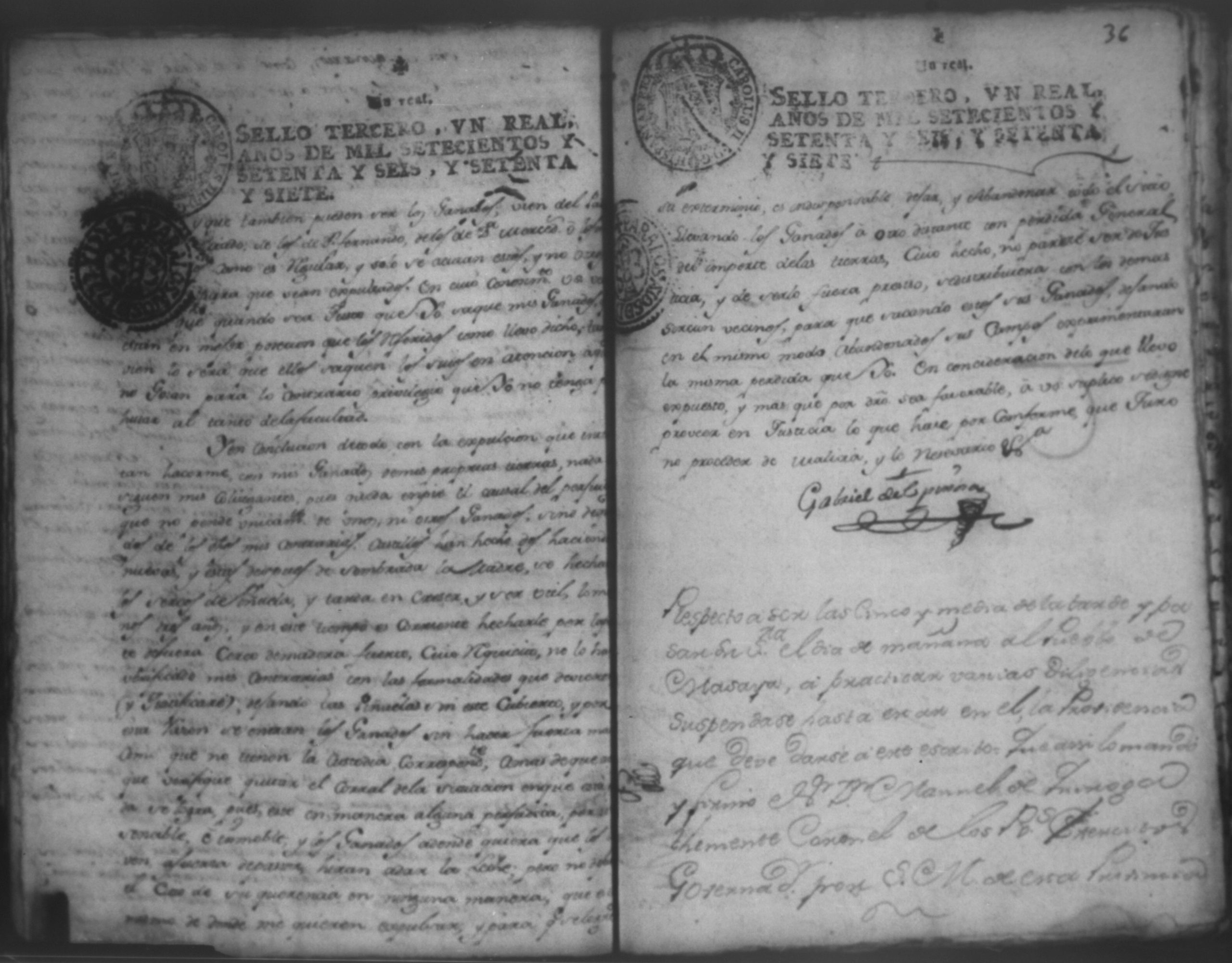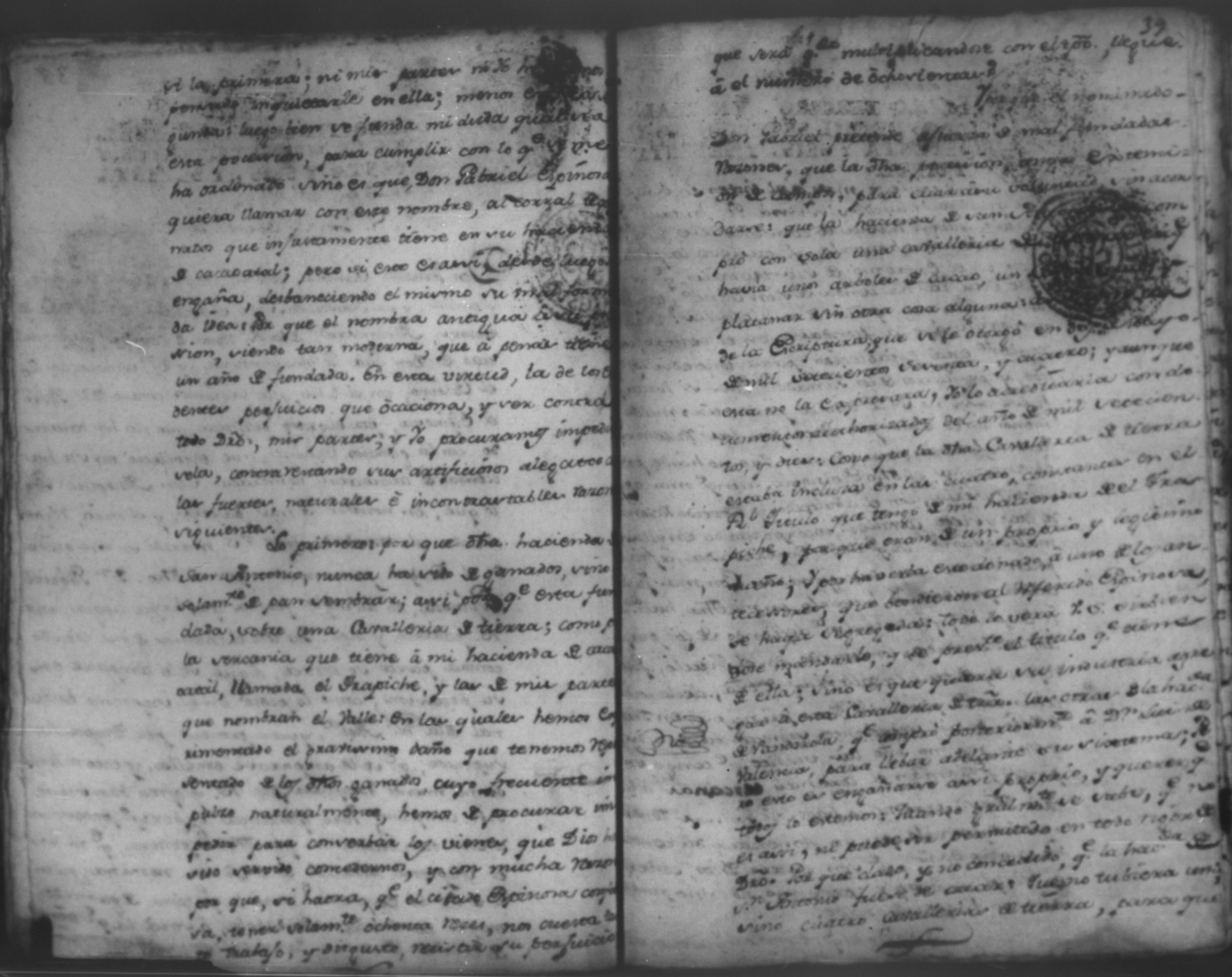 Don Gabriel de Espinosa con Don Fernando Chamorro en autos seguidos sobre despoblación y retiro del ganado del citio de Don Antonio, León 1779