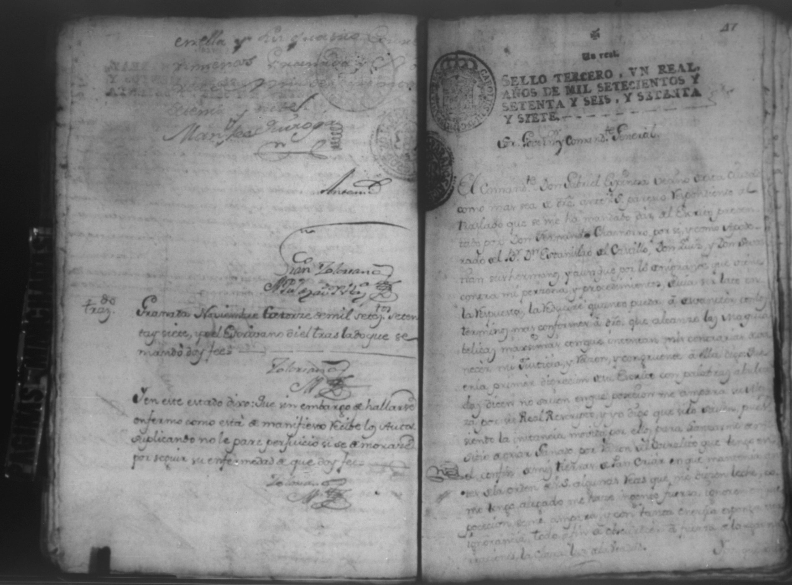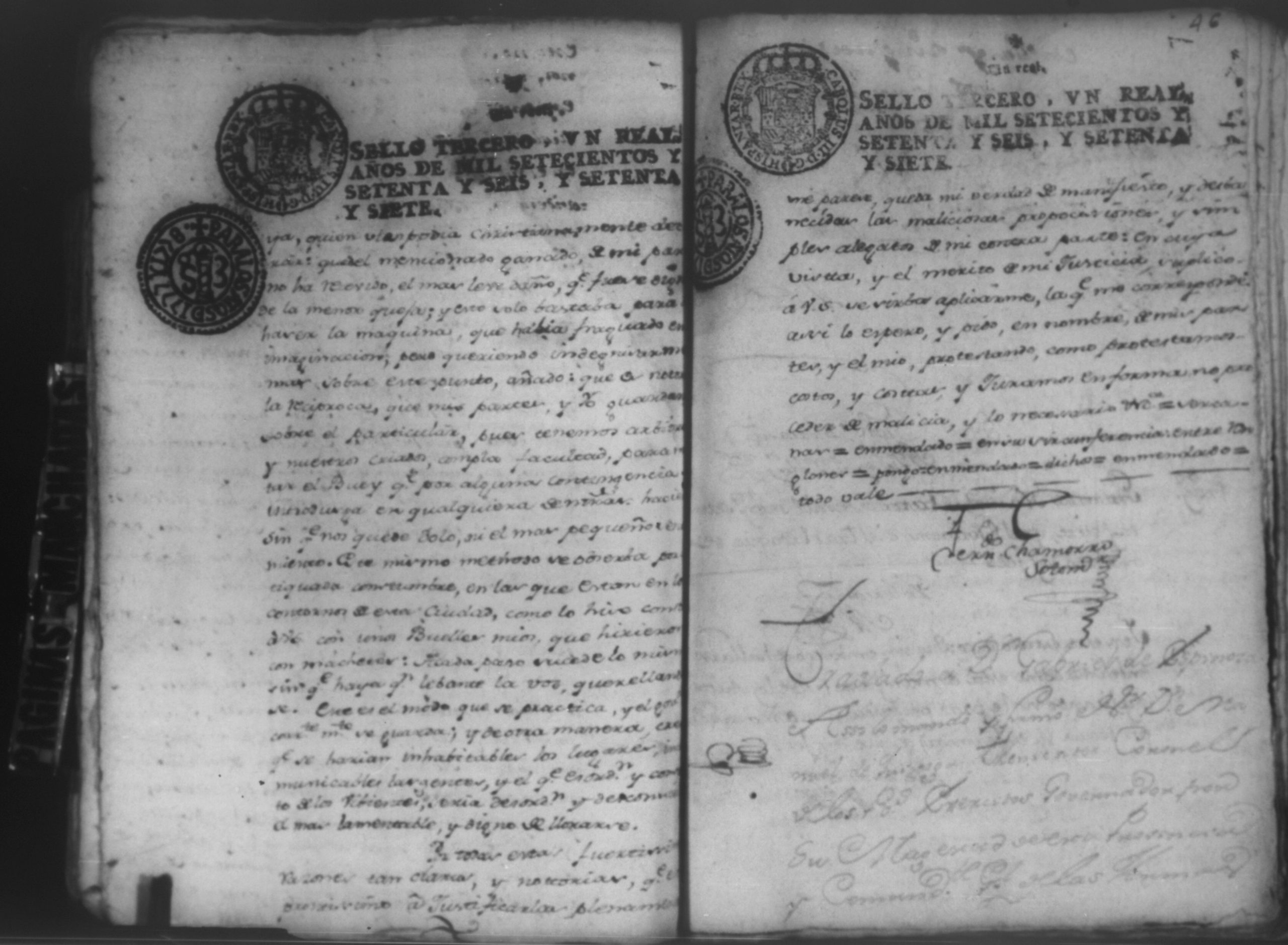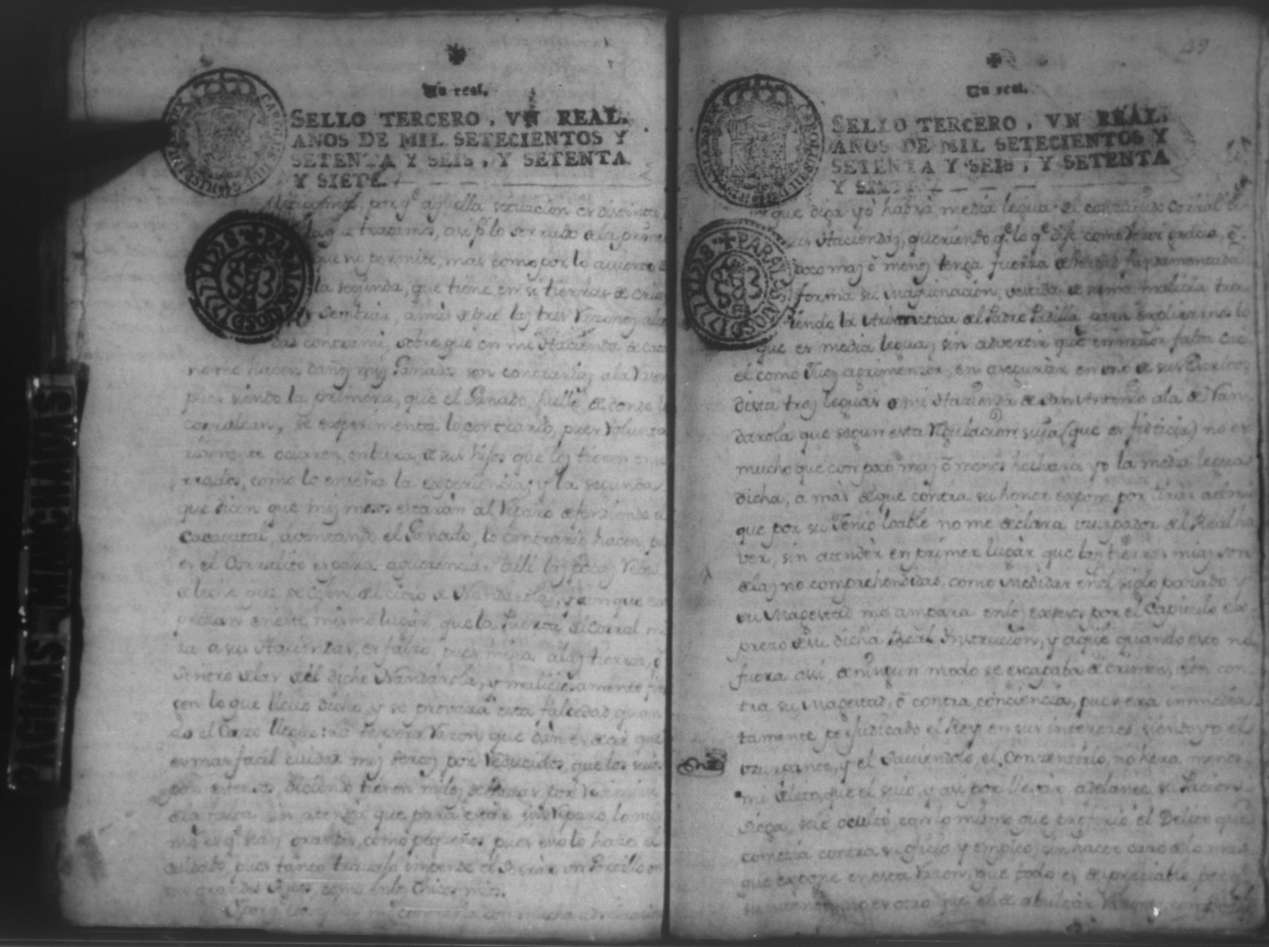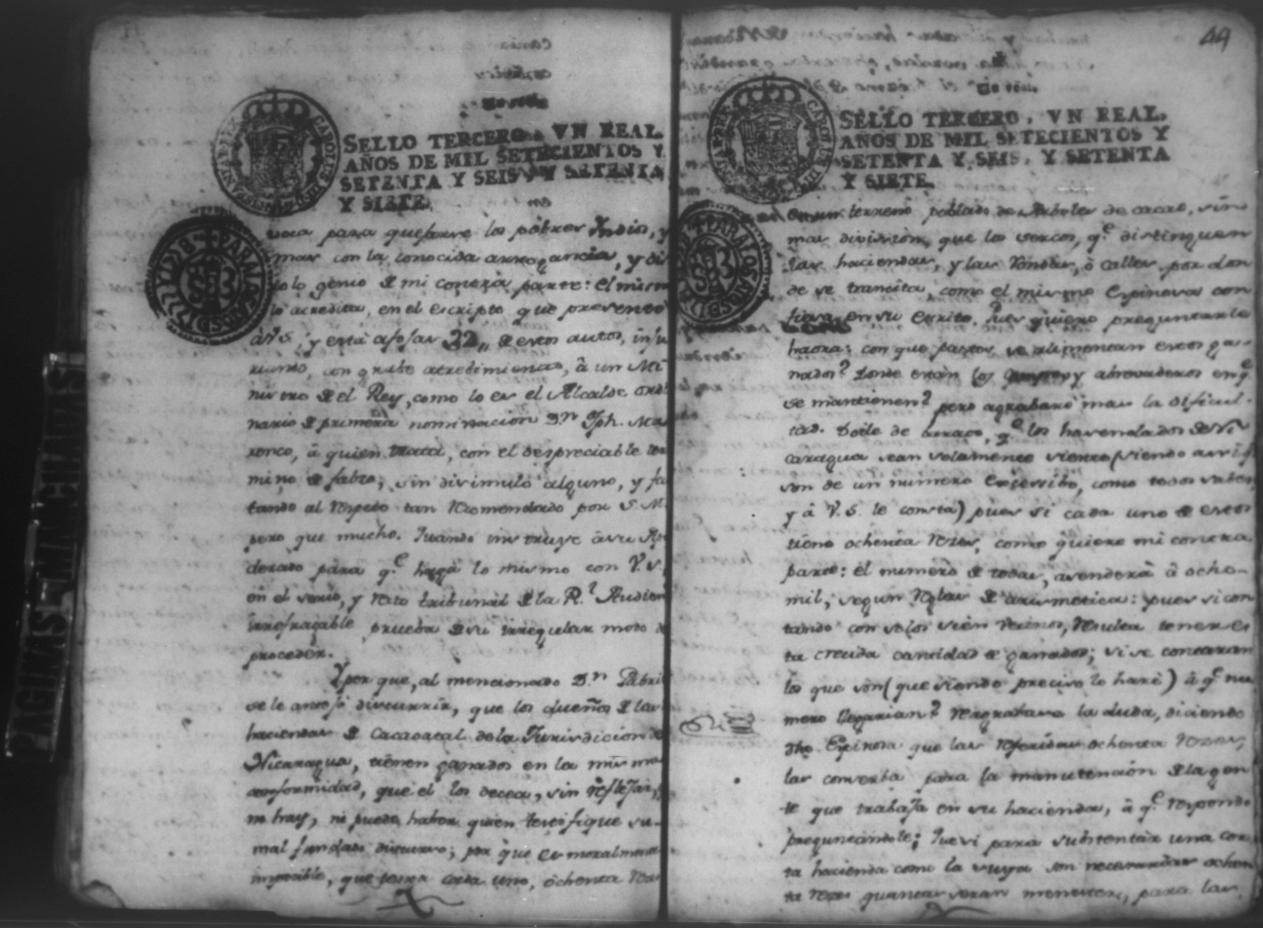 Temática: Audiencia Leon 1779. Autos seguidos en grado de apelación por Don Gabriel de Espinosa con Don Fernando Chamorro y su consorte el presbitero Don Estanislao Don Luiz Ventura y Don Sebastian del Castillo vecino de la ciudad de Granada sobre la despoblación y retiro del ganado mayor del citio de Don Antonio por los perjuicios que causa a los confinantes. Oficios de Guerra.