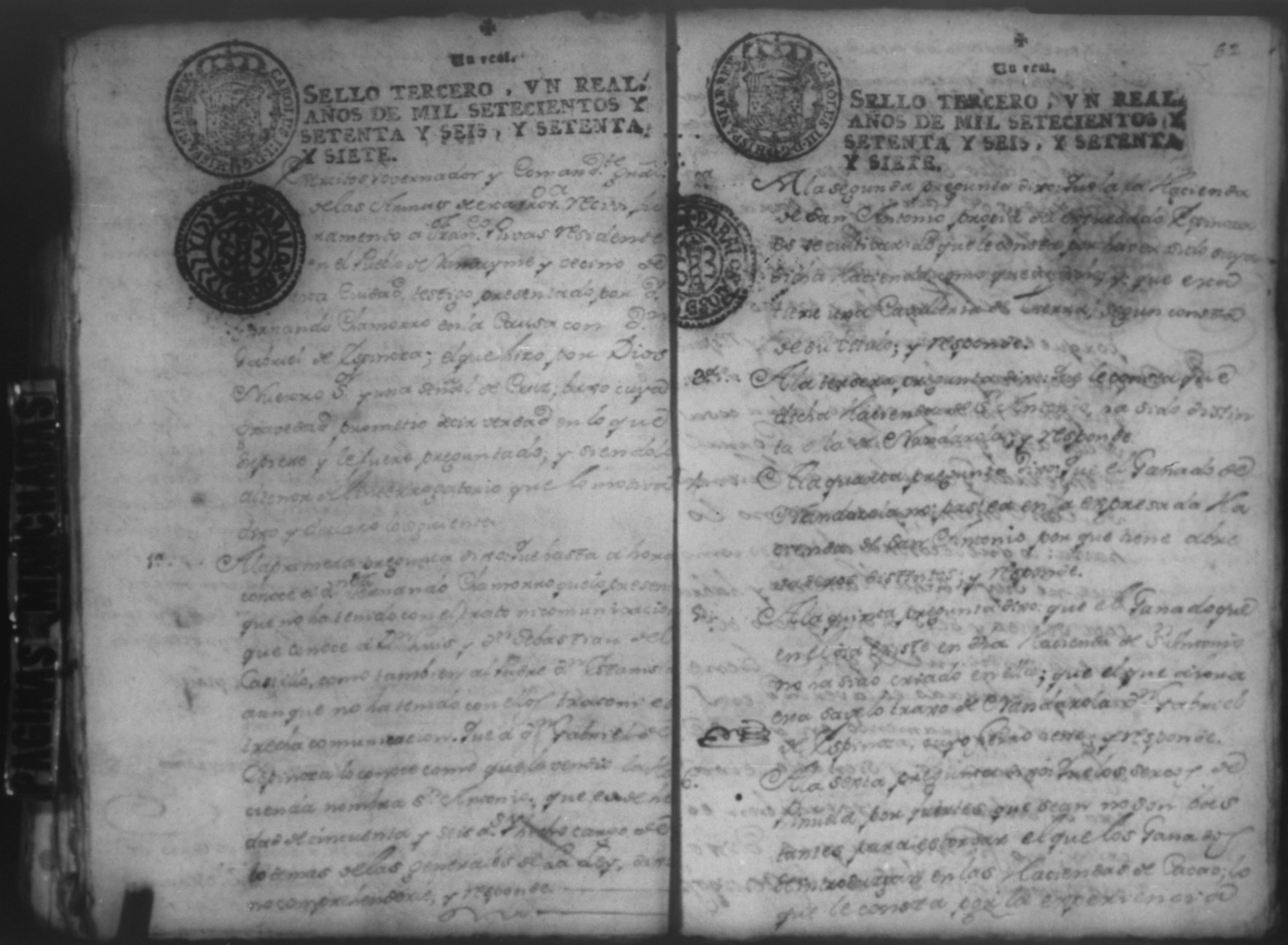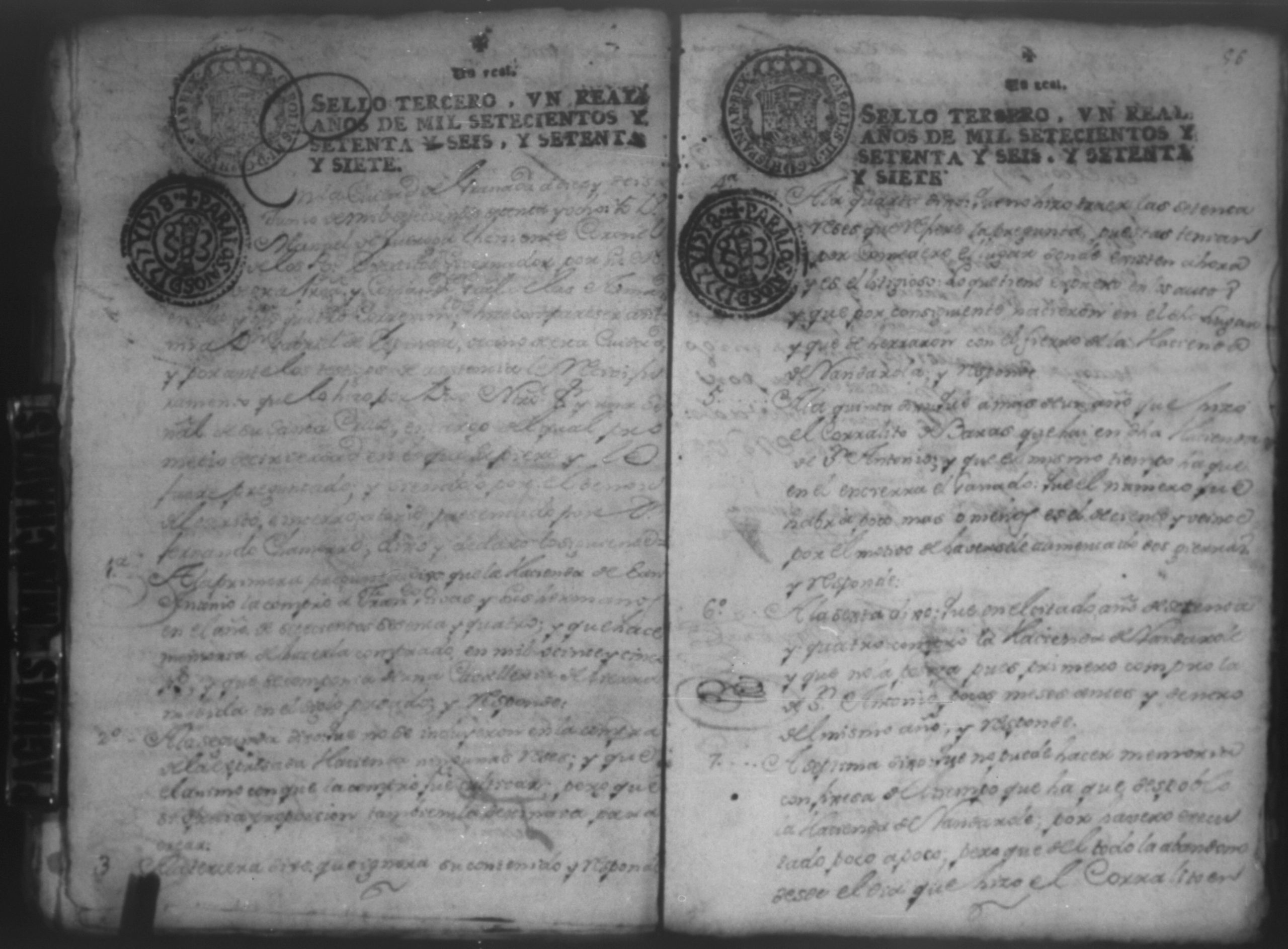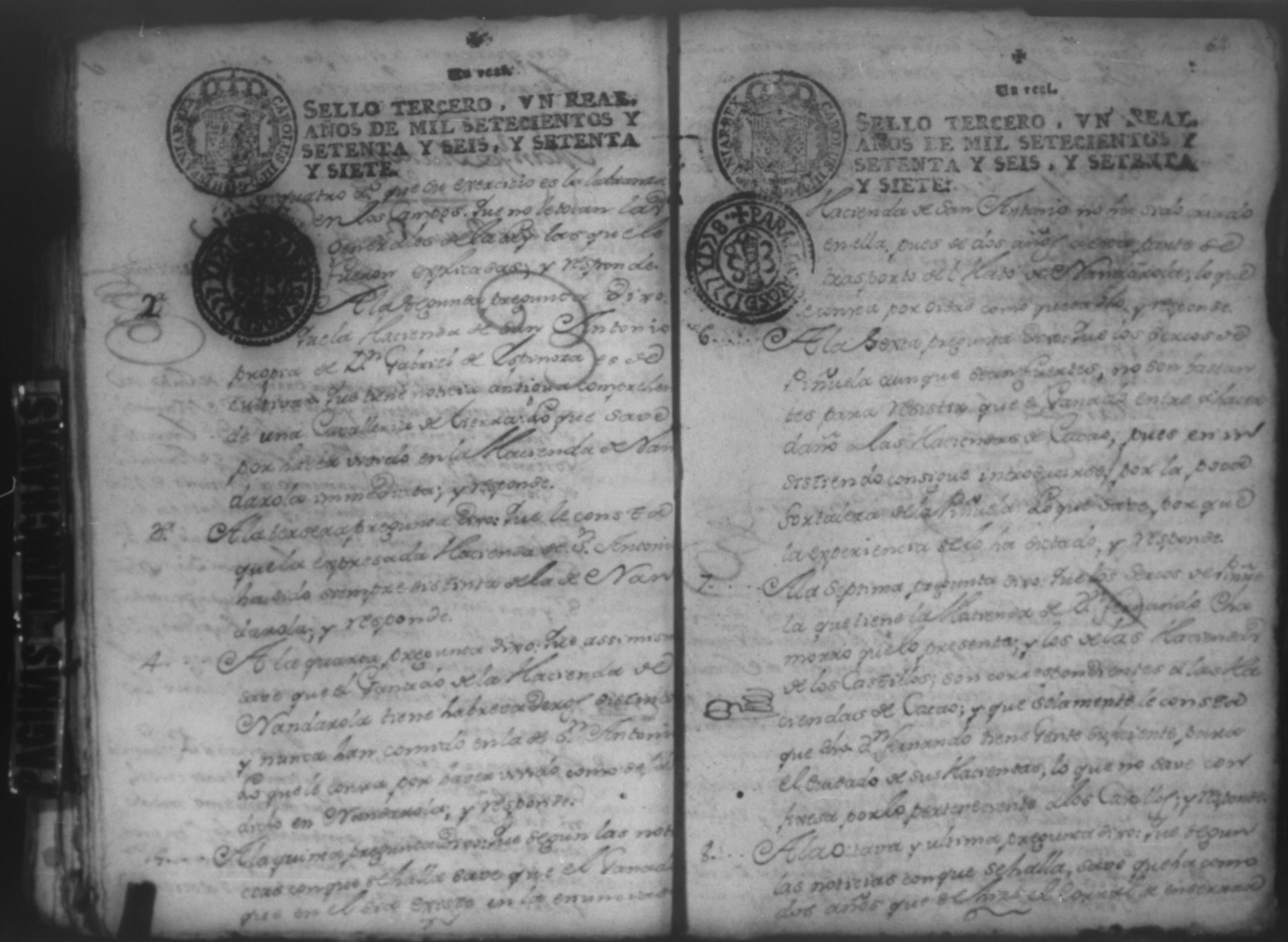 Temática: Audiencia Leon 1779. Autos seguidos en grado de apelación por Don Gabriel de Espinosa con Don Fernando Chamorro y su consorte el presbitero Don Estanislao Don Luiz Ventura y Don Sebastian del Castillo vecino de la ciudad de Granada sobre la despoblación y retiro del ganado mayor del citio de Don Antonio por los perjuicios que causa a los confinantes. Oficios de Guerra.