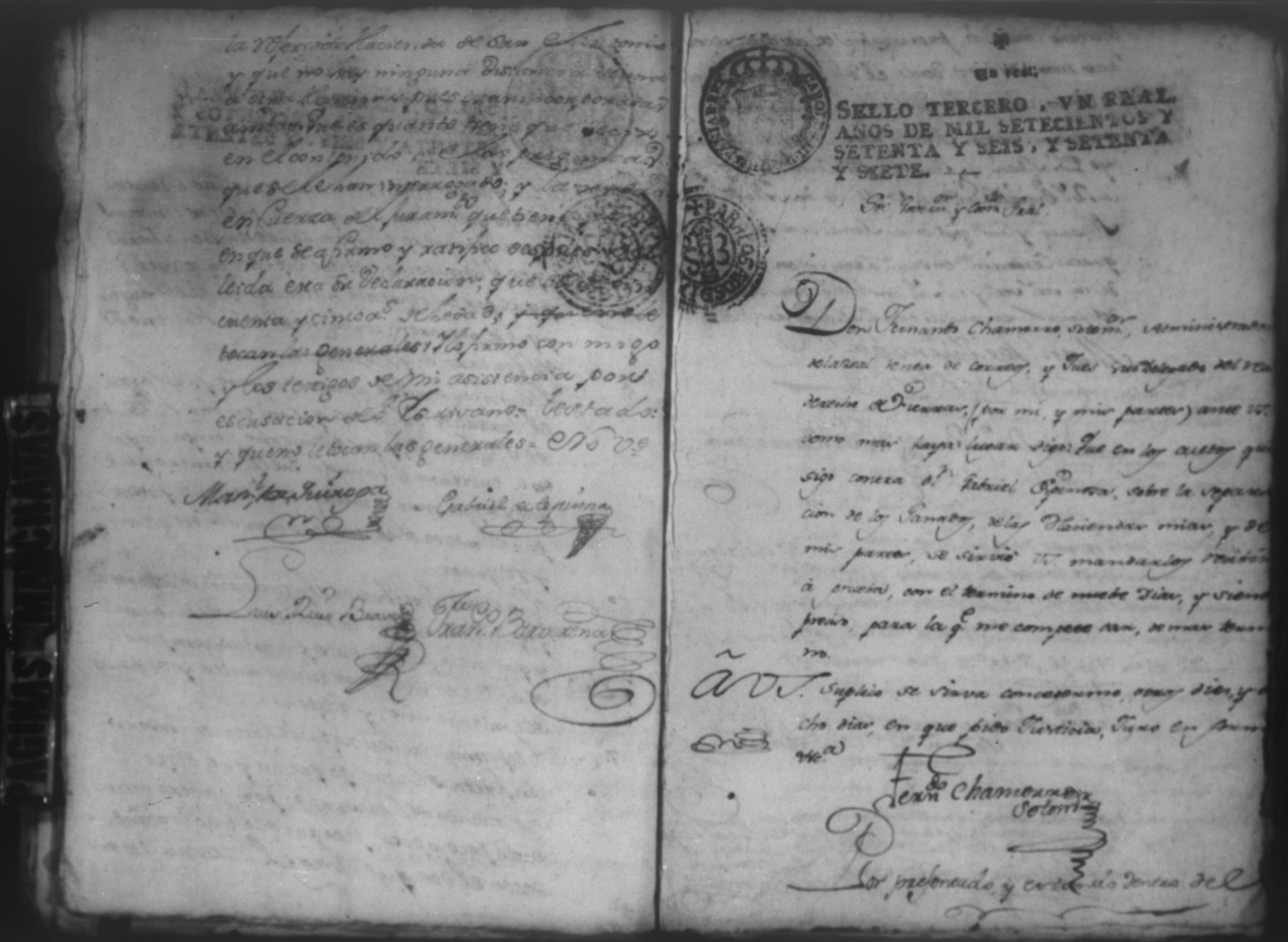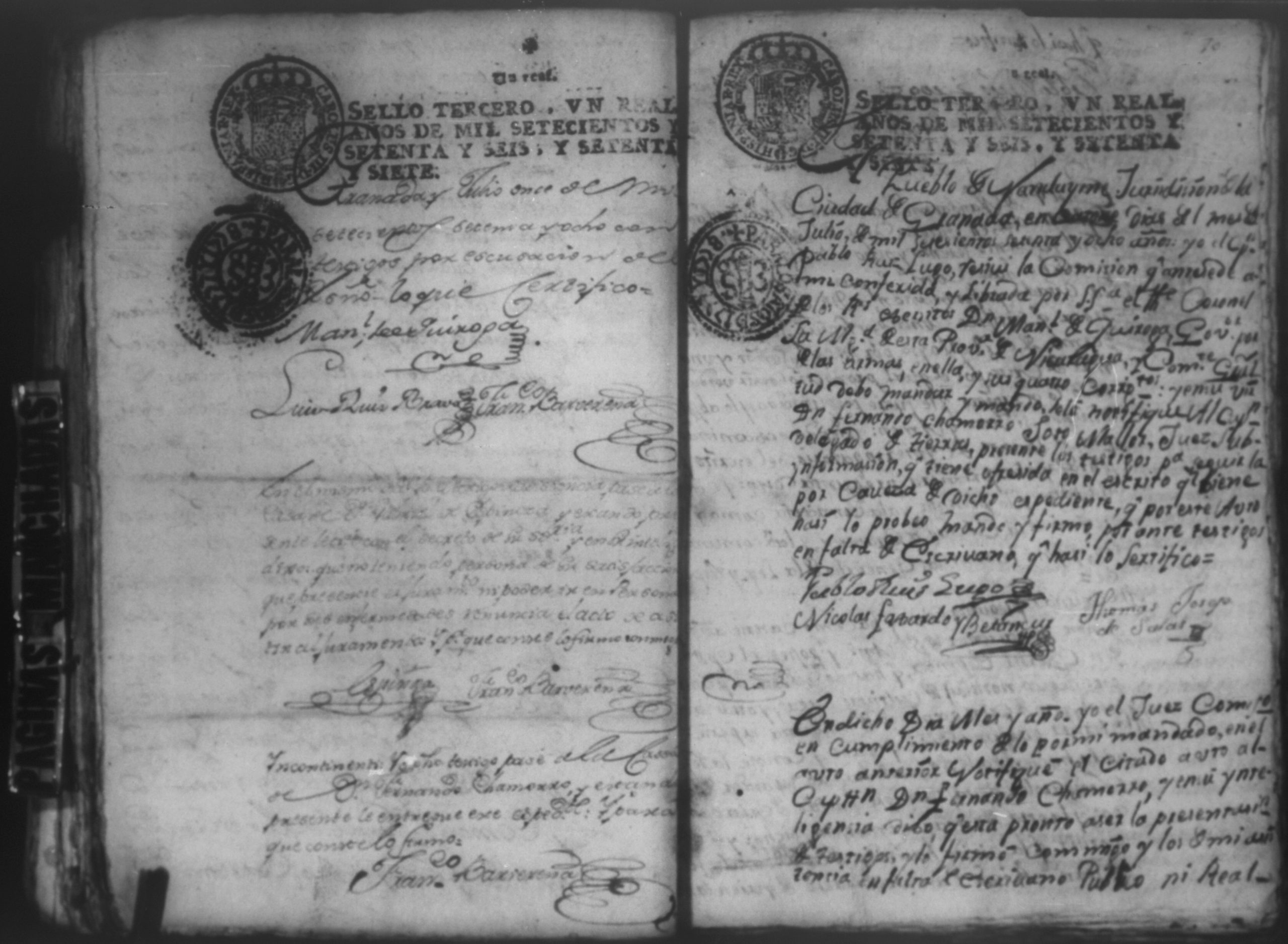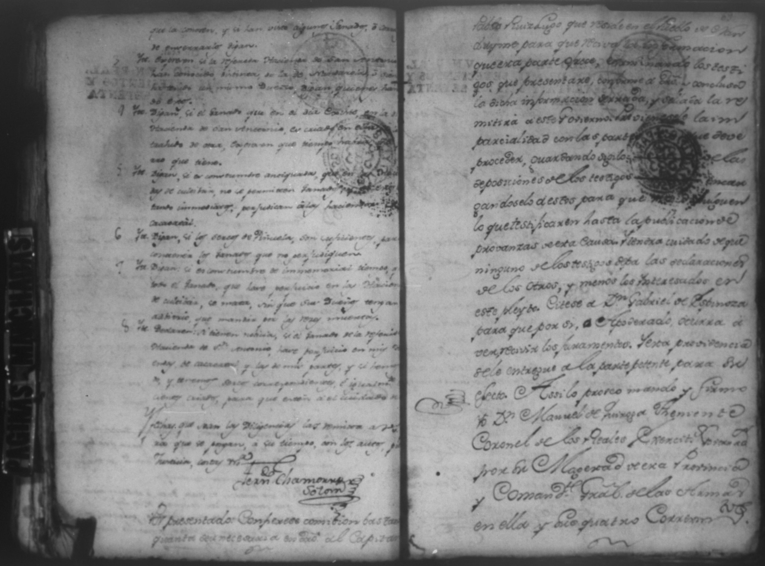 Temática: Audiencia Leon 1779. Autos seguidos en grado de apelación por Don Gabriel de Espinosa con Don Fernando Chamorro y su consorte el presbitero Don Estanislao Don Luiz Ventura y Don Sebastian del Castillo vecino de la ciudad de Granada sobre la despoblación y retiro del ganado mayor del citio de Don Antonio por los perjuicios que causa a los confinantes. Oficios de Guerra.