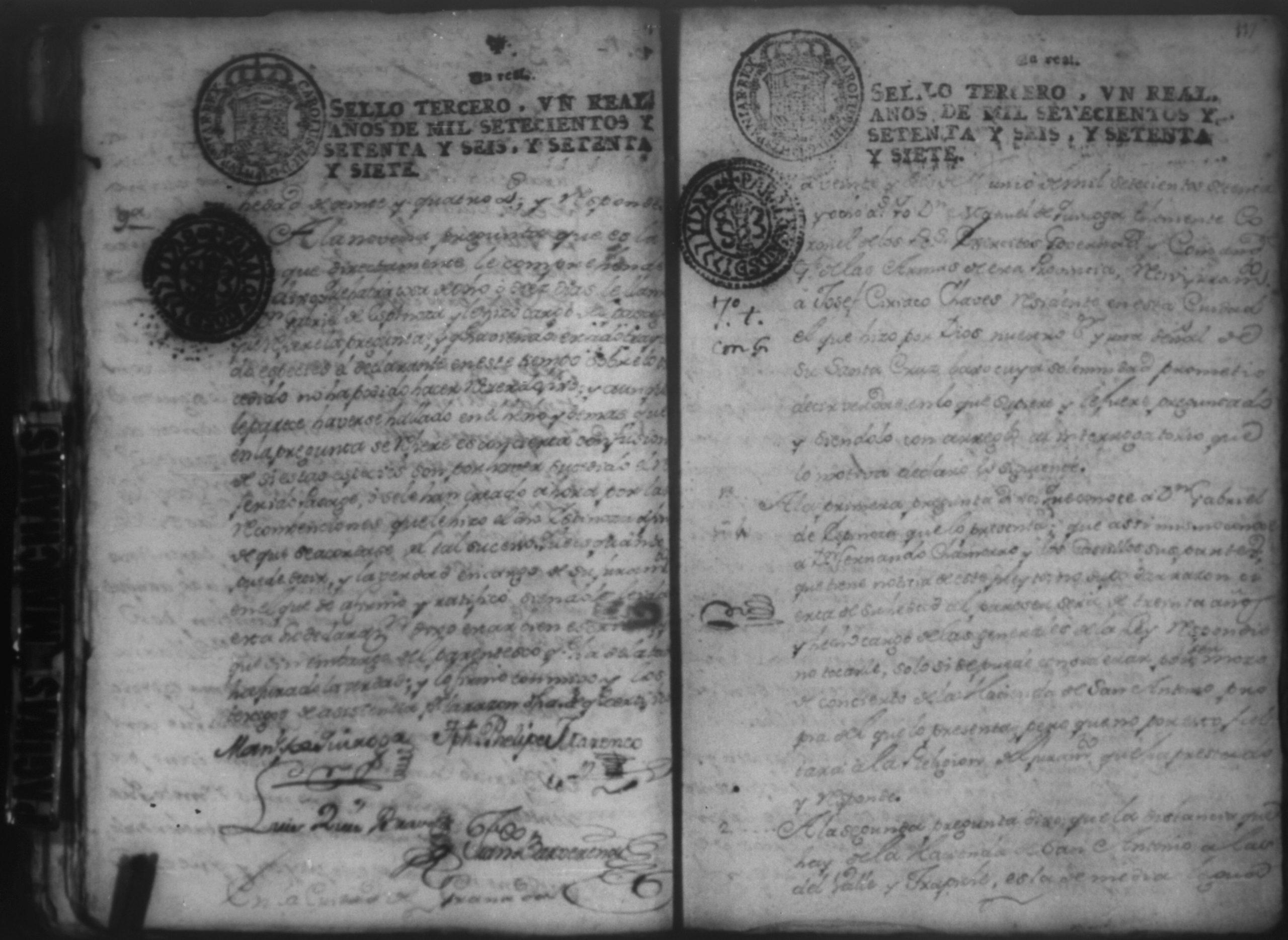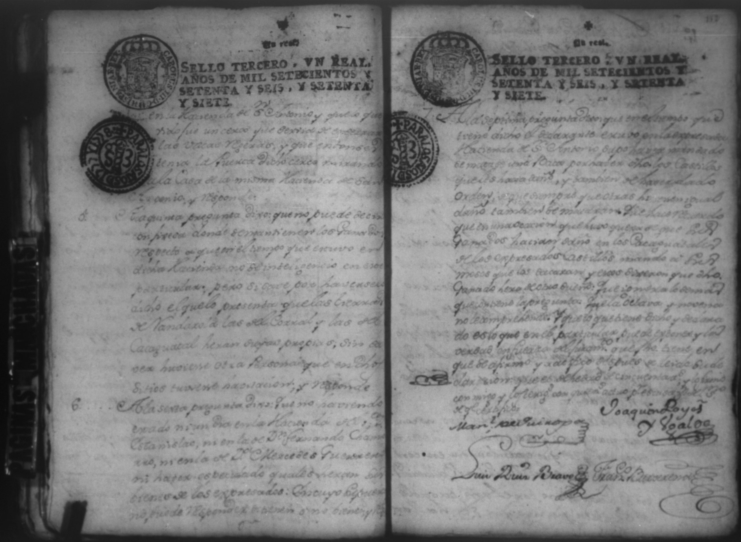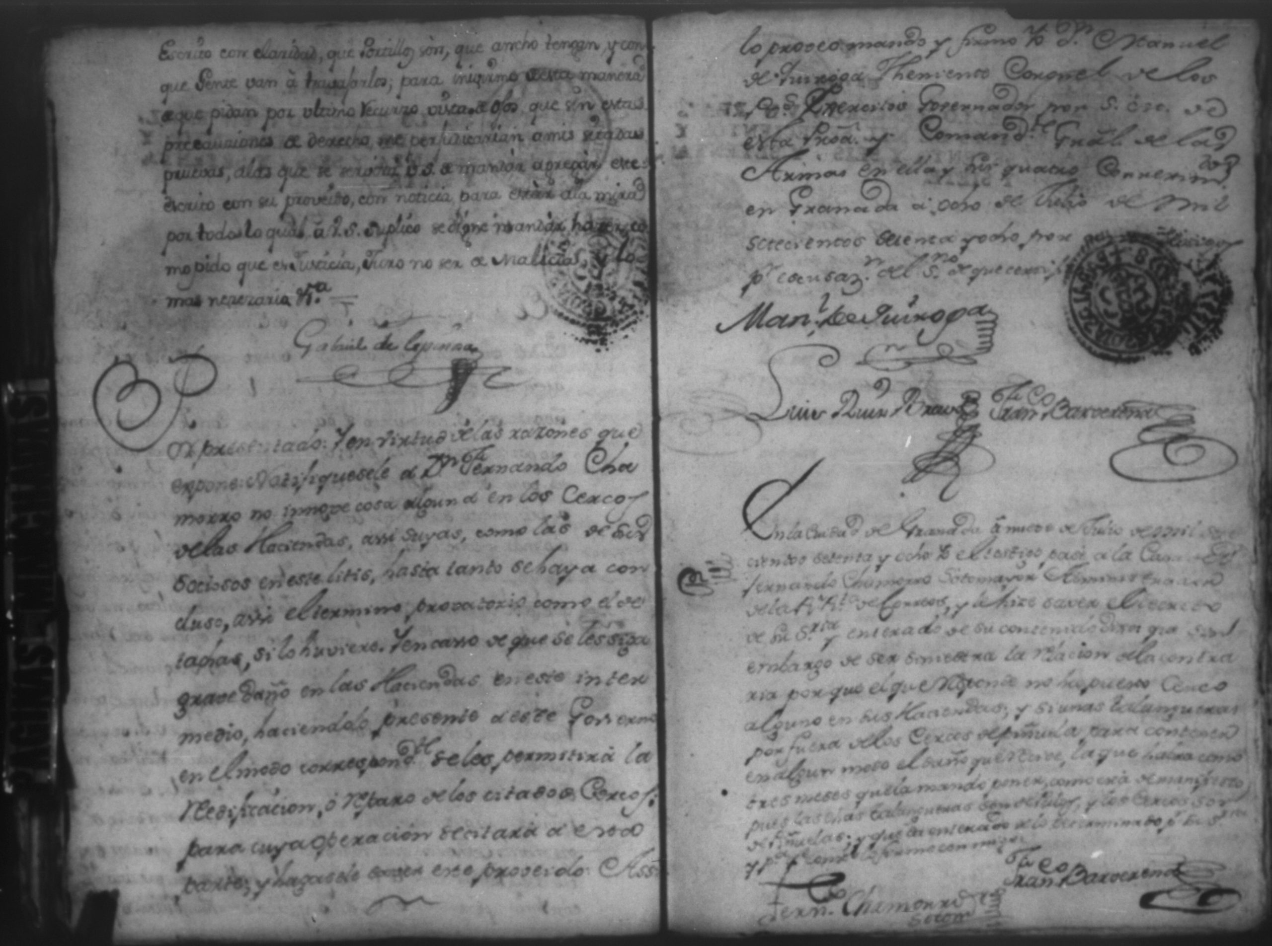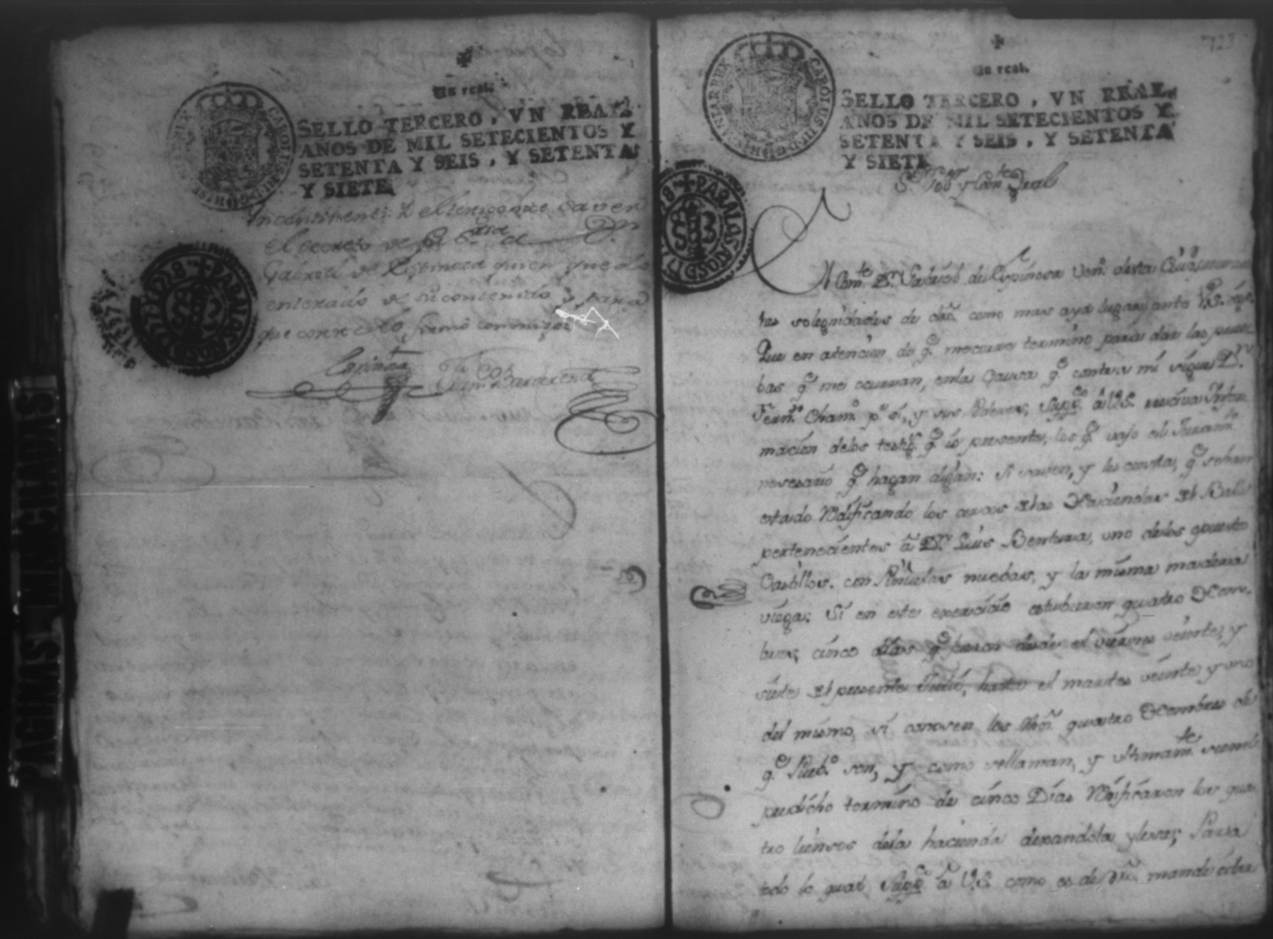 Temática: Audiencia Leon 1779. Autos seguidos en grado de apelación por Don Gabriel de Espinosa con Don Fernando Chamorro y su consorte el presbitero Don Estanislao Don Luiz Ventura y Don Sebastian del Castillo vecino de la ciudad de Granada sobre la despoblación y retiro del ganado mayor del citio de Don Antonio por los perjuicios que causa a los confinantes. Oficios de Guerra.