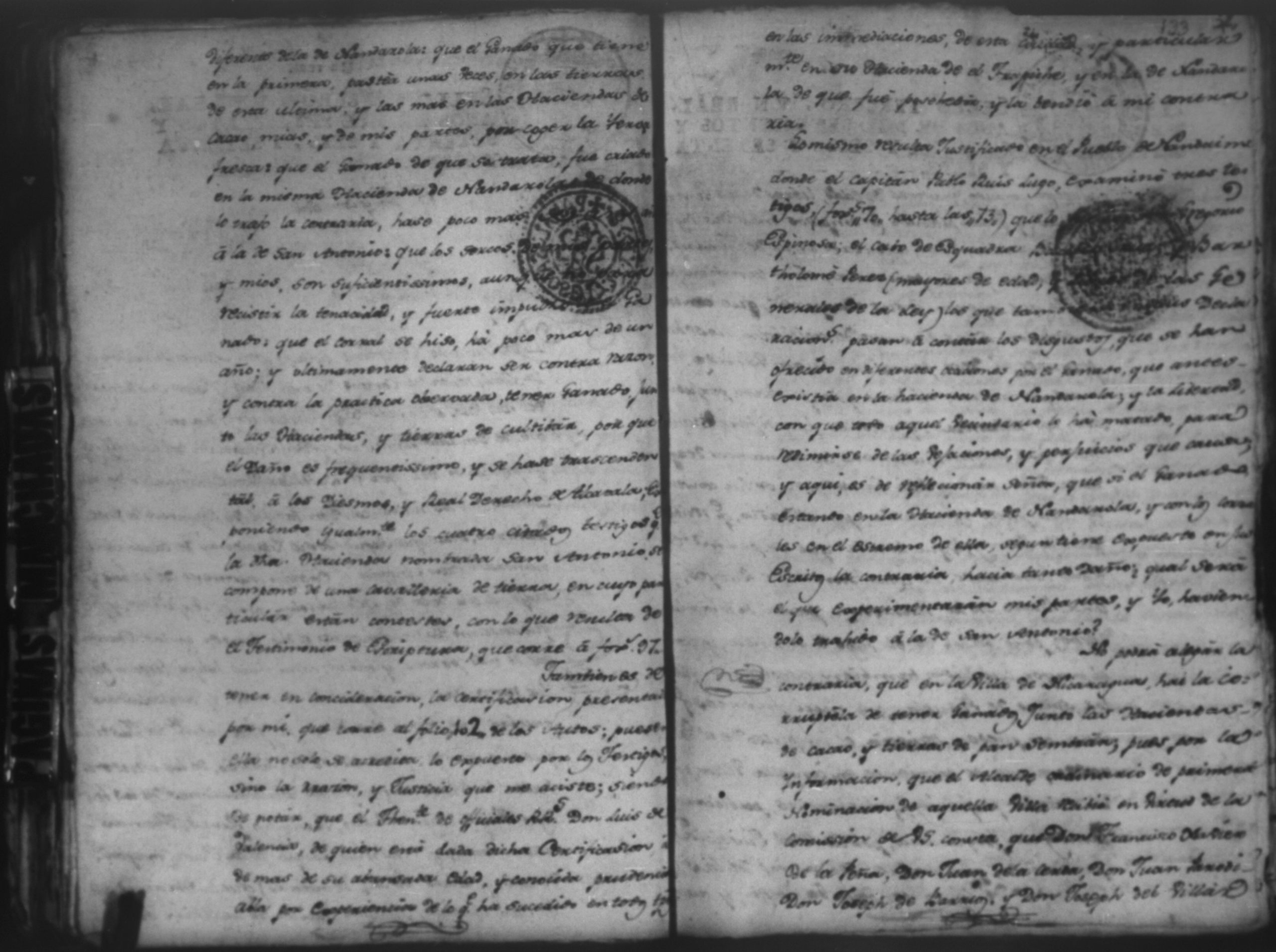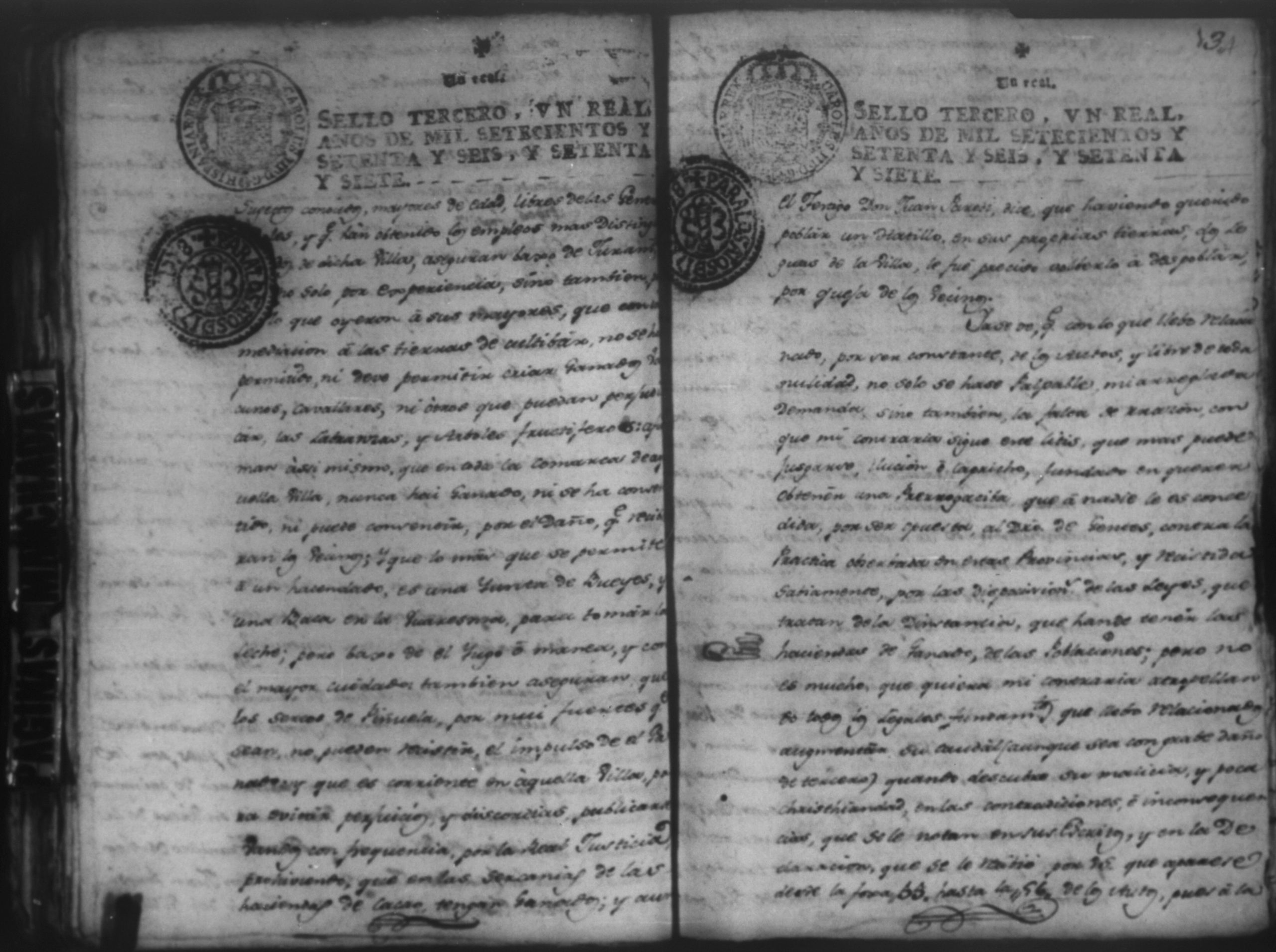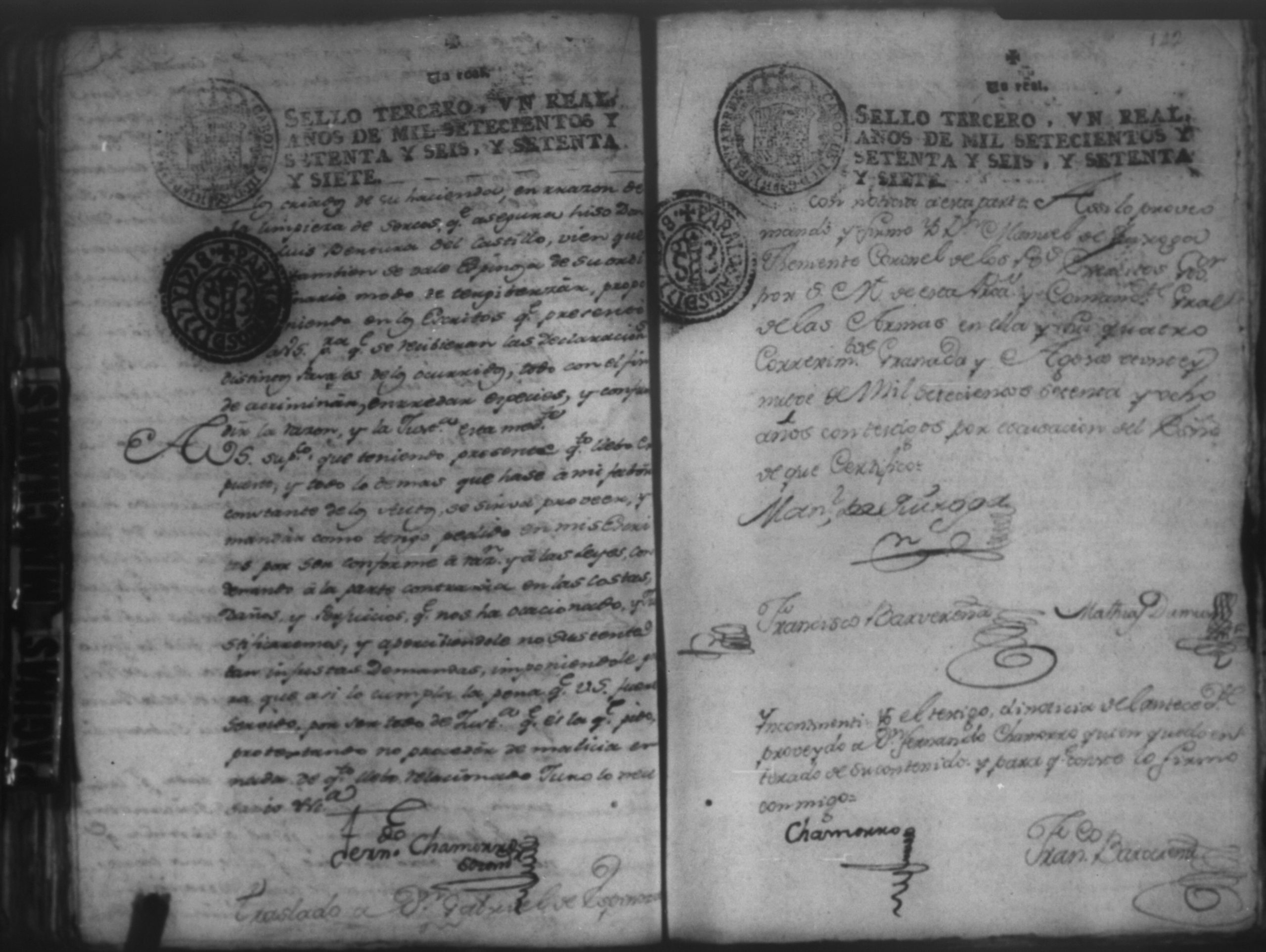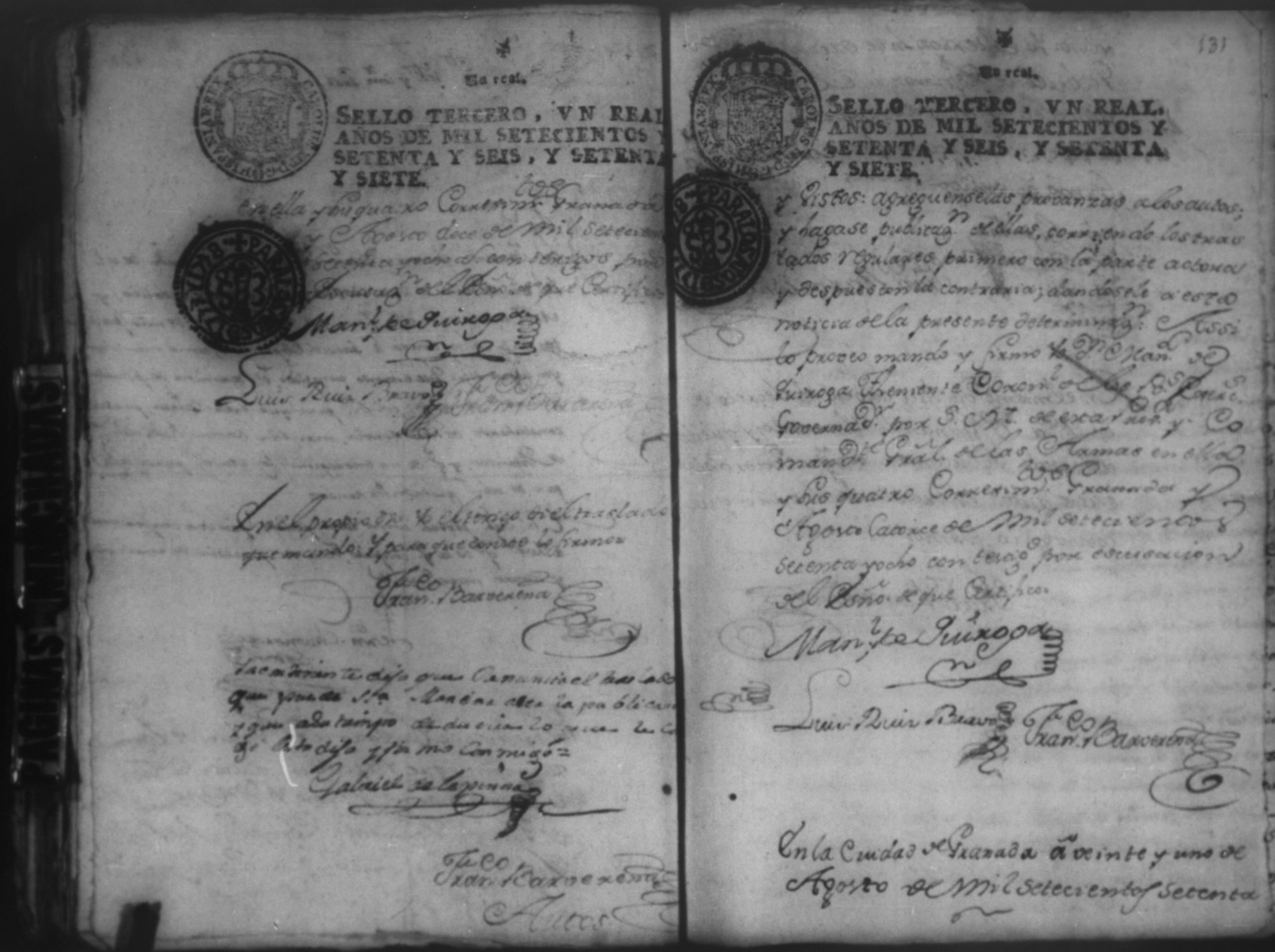 Temática: Audiencia Leon 1779. Autos seguidos en grado de apelación por Don Gabriel de Espinosa con Don Fernando Chamorro y su consorte el presbitero Don Estanislao Don Luiz Ventura y Don Sebastian del Castillo vecino de la ciudad de Granada sobre la despoblación y retiro del ganado mayor del citio de Don Antonio por los perjuicios que causa a los confinantes. Oficios de Guerra.
