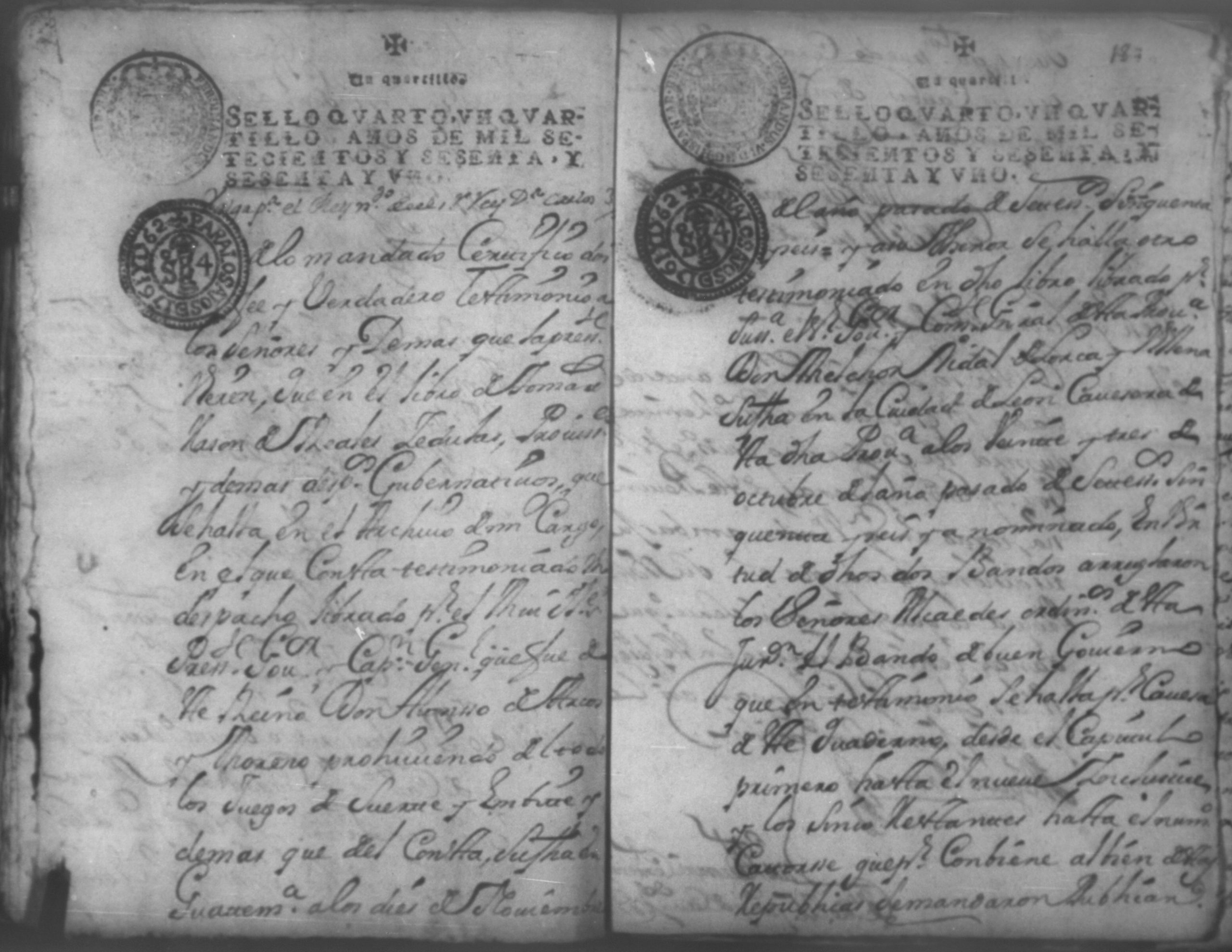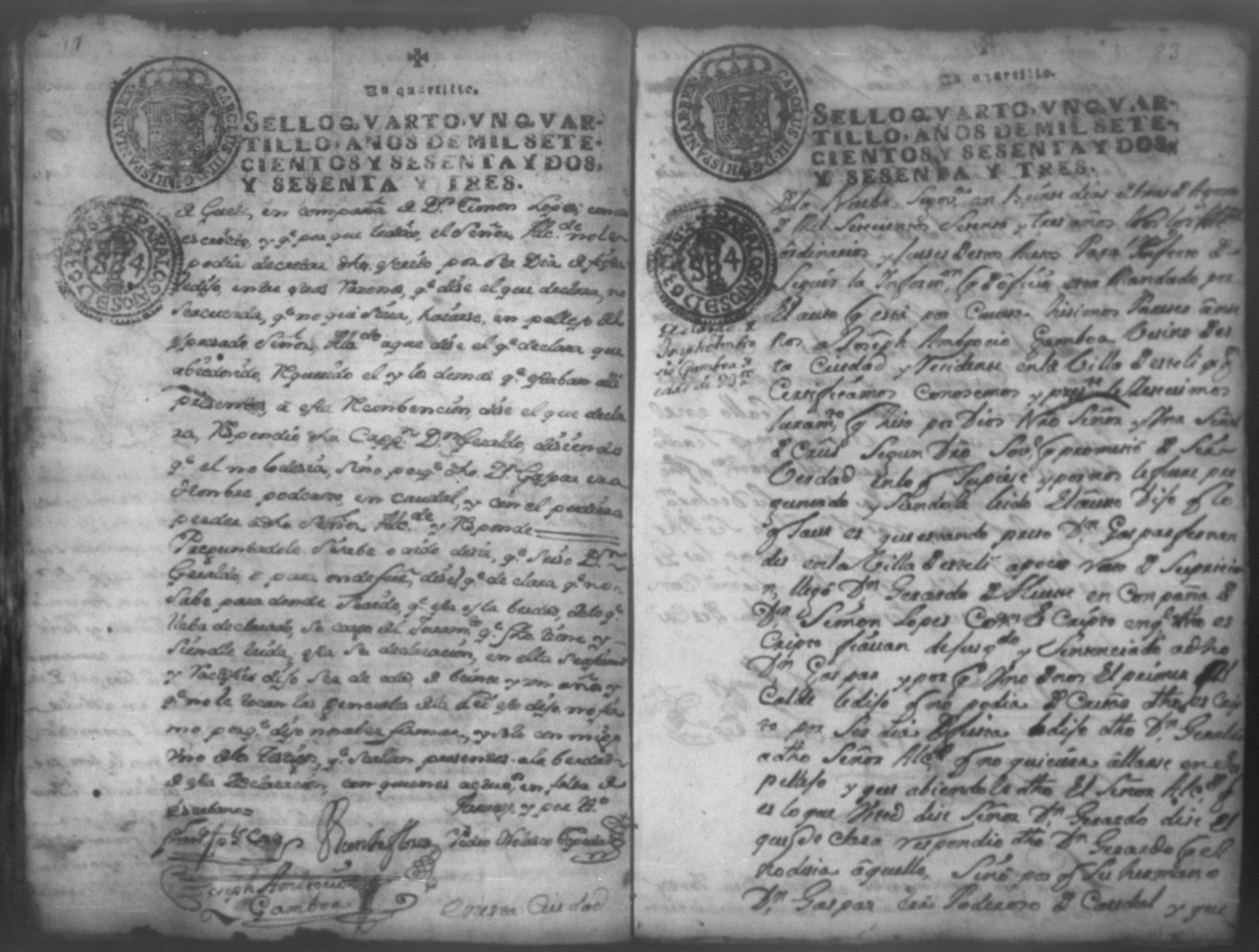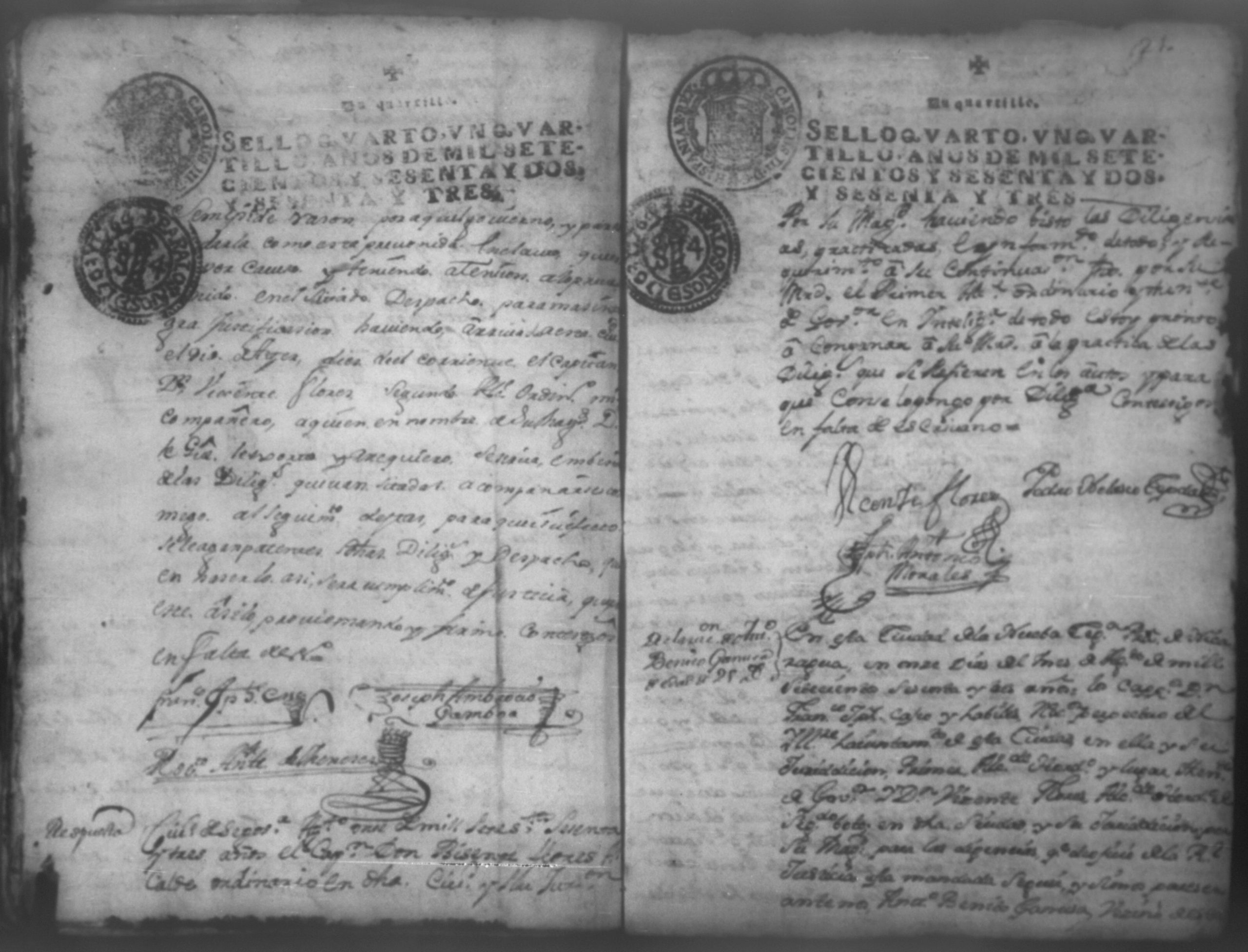 Temática: Año de 1763. Ynformacion de oficio de la Real Justicia contra Don Gerardo Puente Capitan de Milicias en Segovia [concerniente] a los autos que sigue Don Gaspar Fernandez con el Regidor Mayor Don Miguel [Armas].