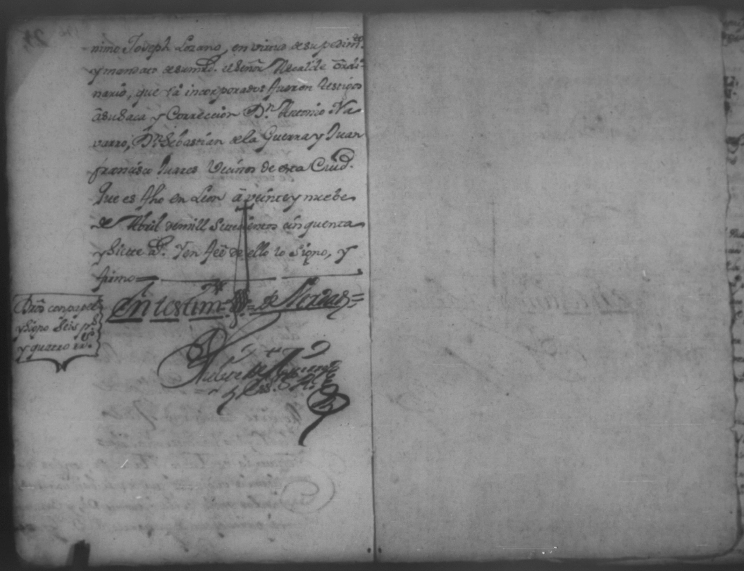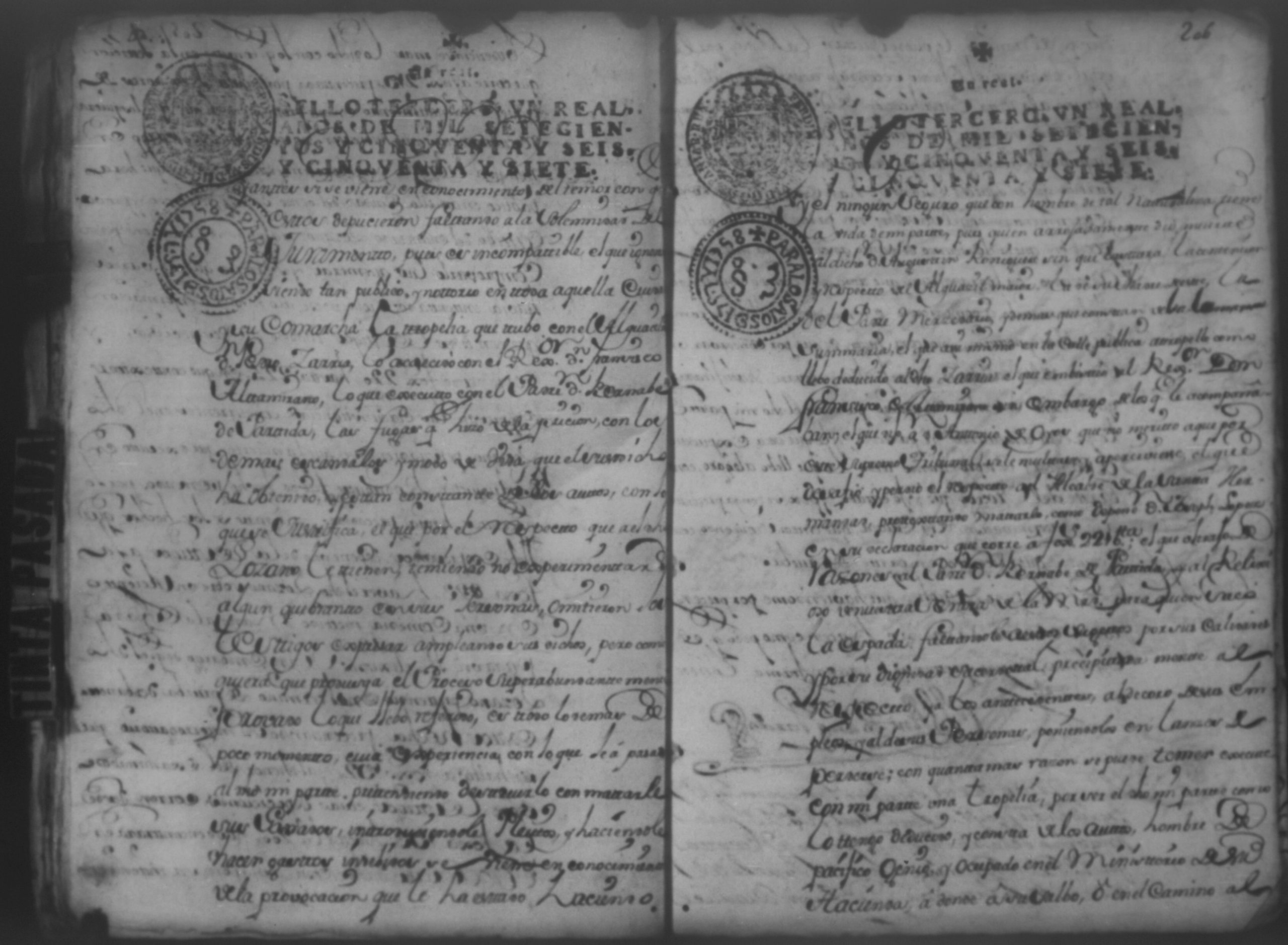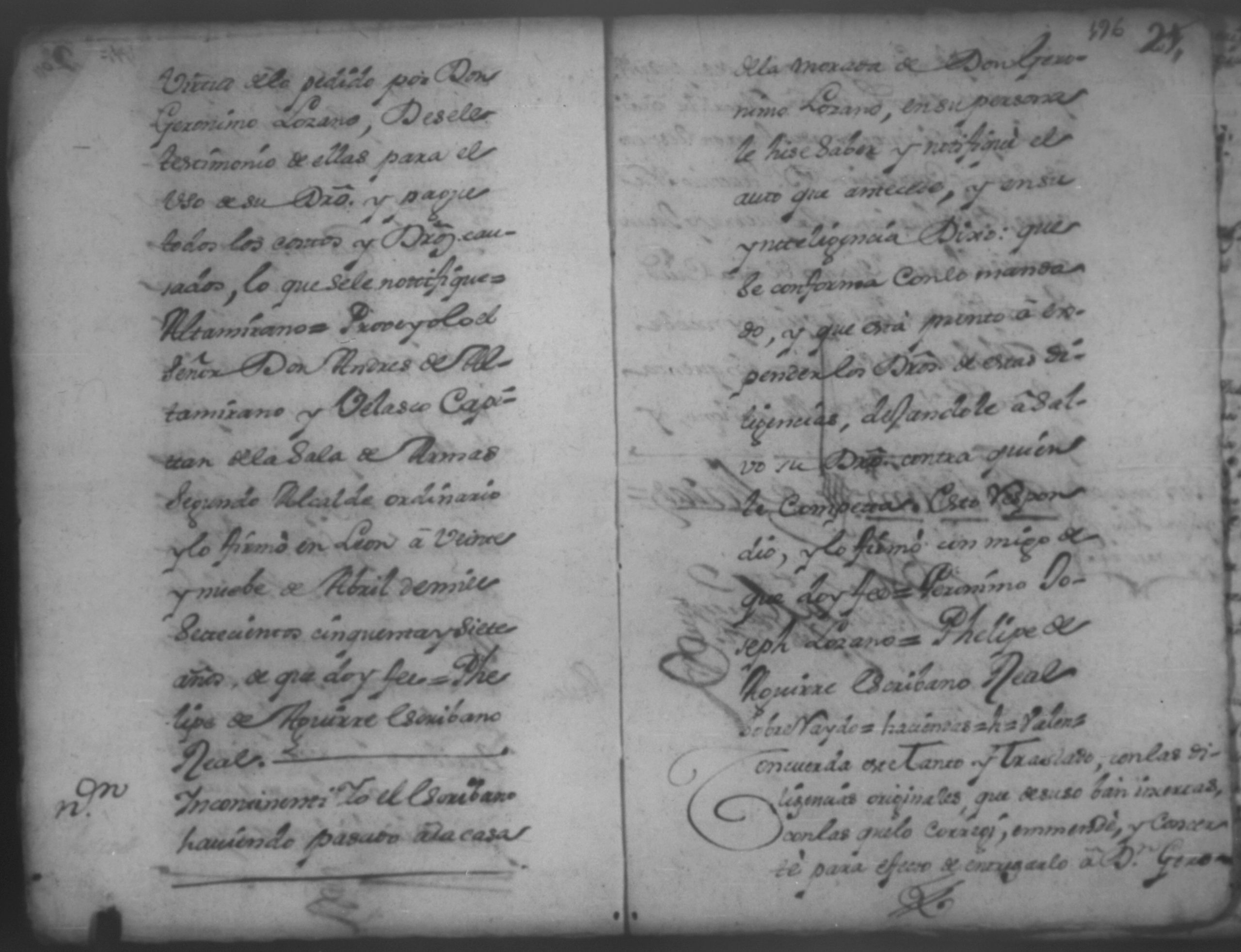 Temática: Don Geronimo Joseph Lozano vecino de esta ciudad como mejor proceda de derecho en el que haya lugar y me convenga ante usted paresco…a solicitar mi remedio y obiar cuales quiera malas consecuencias que del hecho presente que el dia anterior me avisa mi mayordomo del trapiche que tengo, que los ganados de Doña Margarita de Oconor me han comido y destruido tres suertes de caña