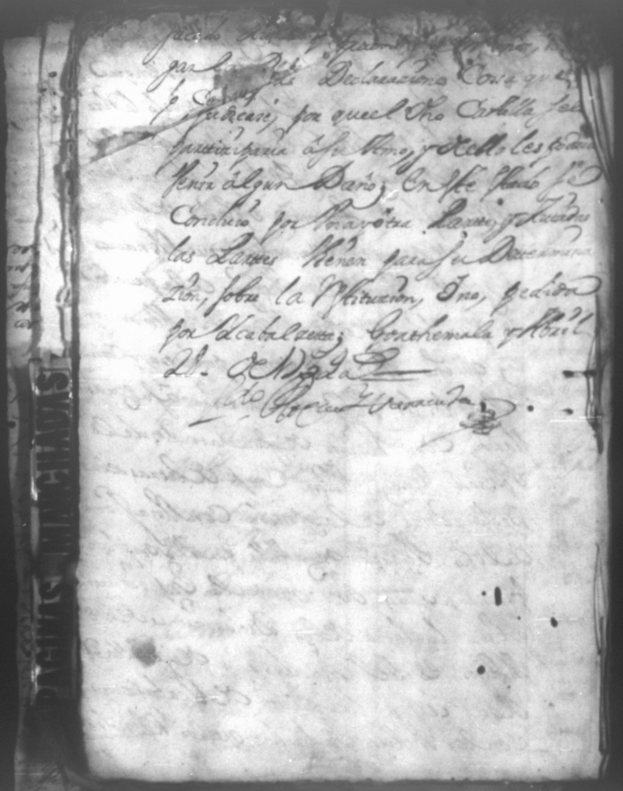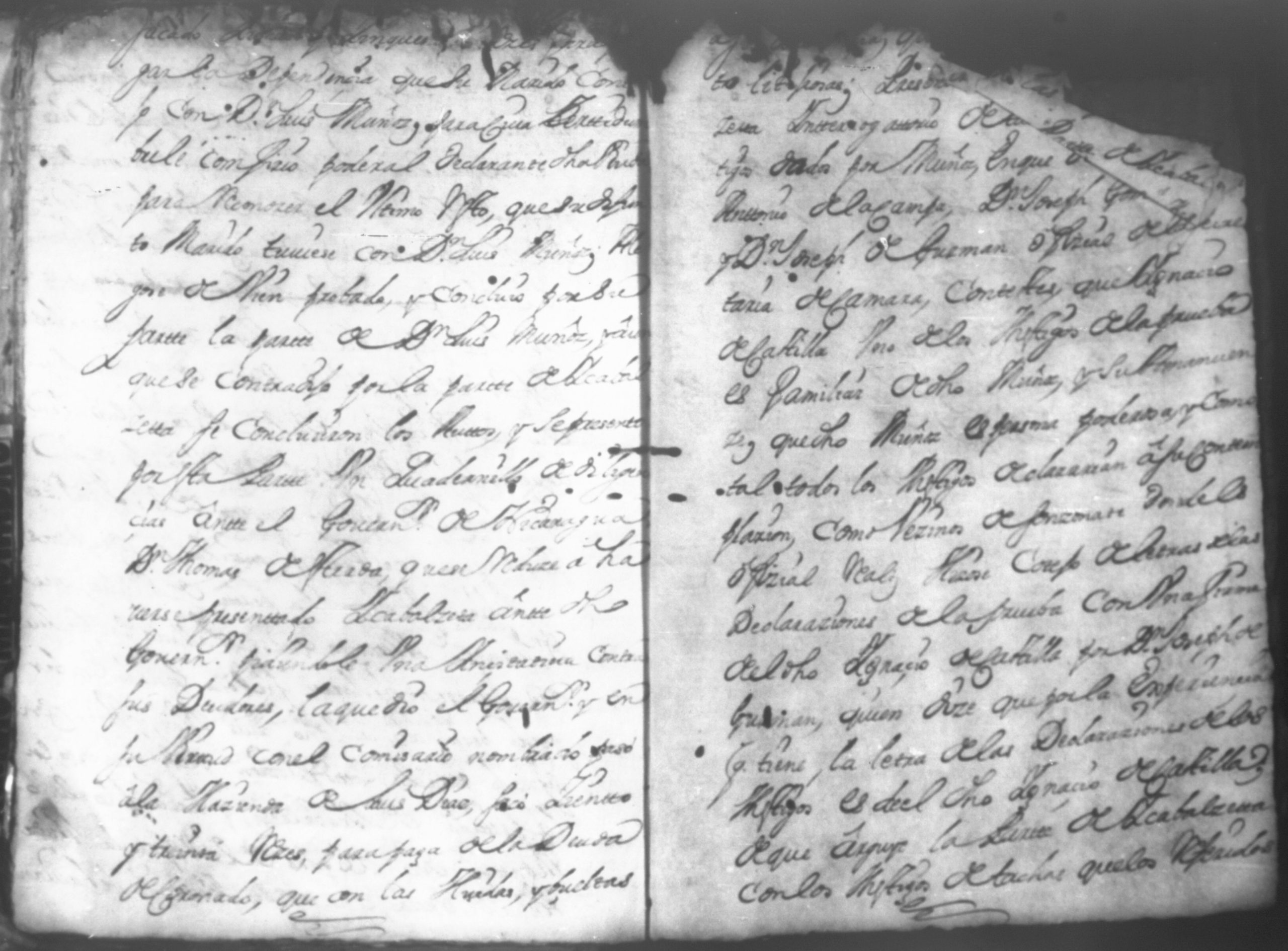 Temática: Audiencia No. 8 Año de 1730. Don José de Villalobos en representación de Don Manuel de [Ycabalgeta] contra Don Luis Antonio Muñoz por despojo de ganado