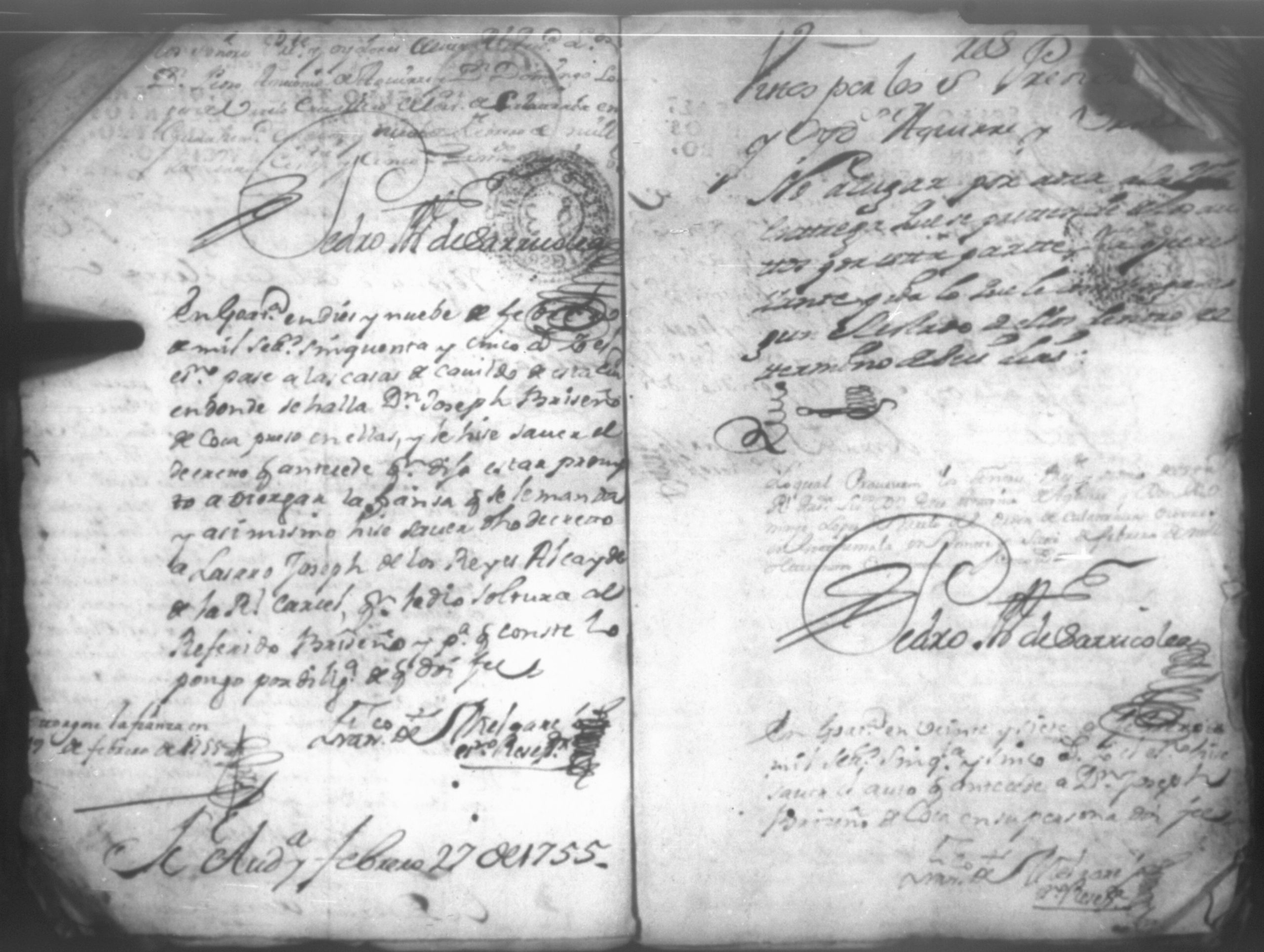 Temática: Año de 1755, 1756, 1757. Criminal. Autos que sigue Don Joseph Brizeño vezino de la provincia de Leon sobre pretender [indemnisarle] sobre el delito que se a impuesto por Don Pedro Sarria.