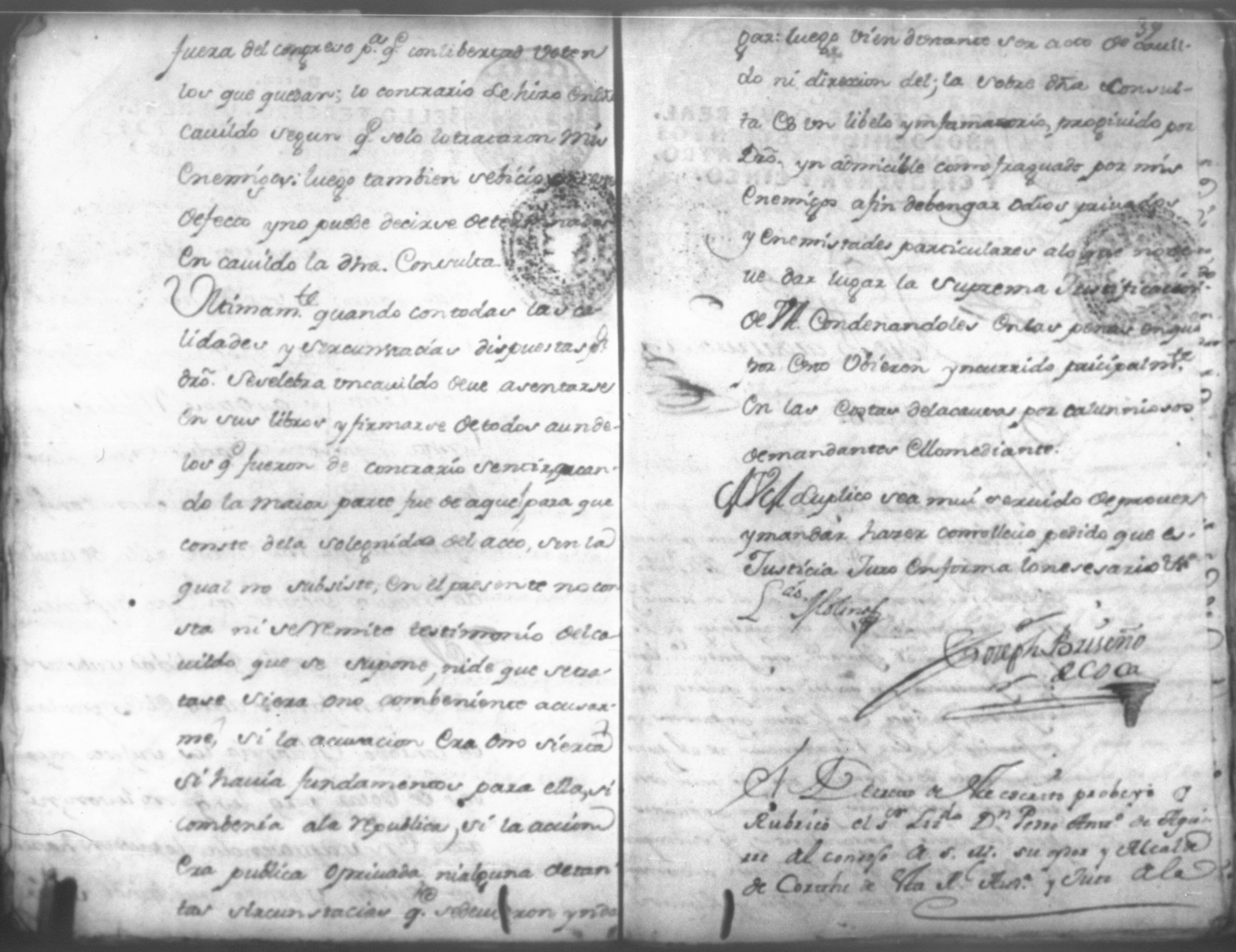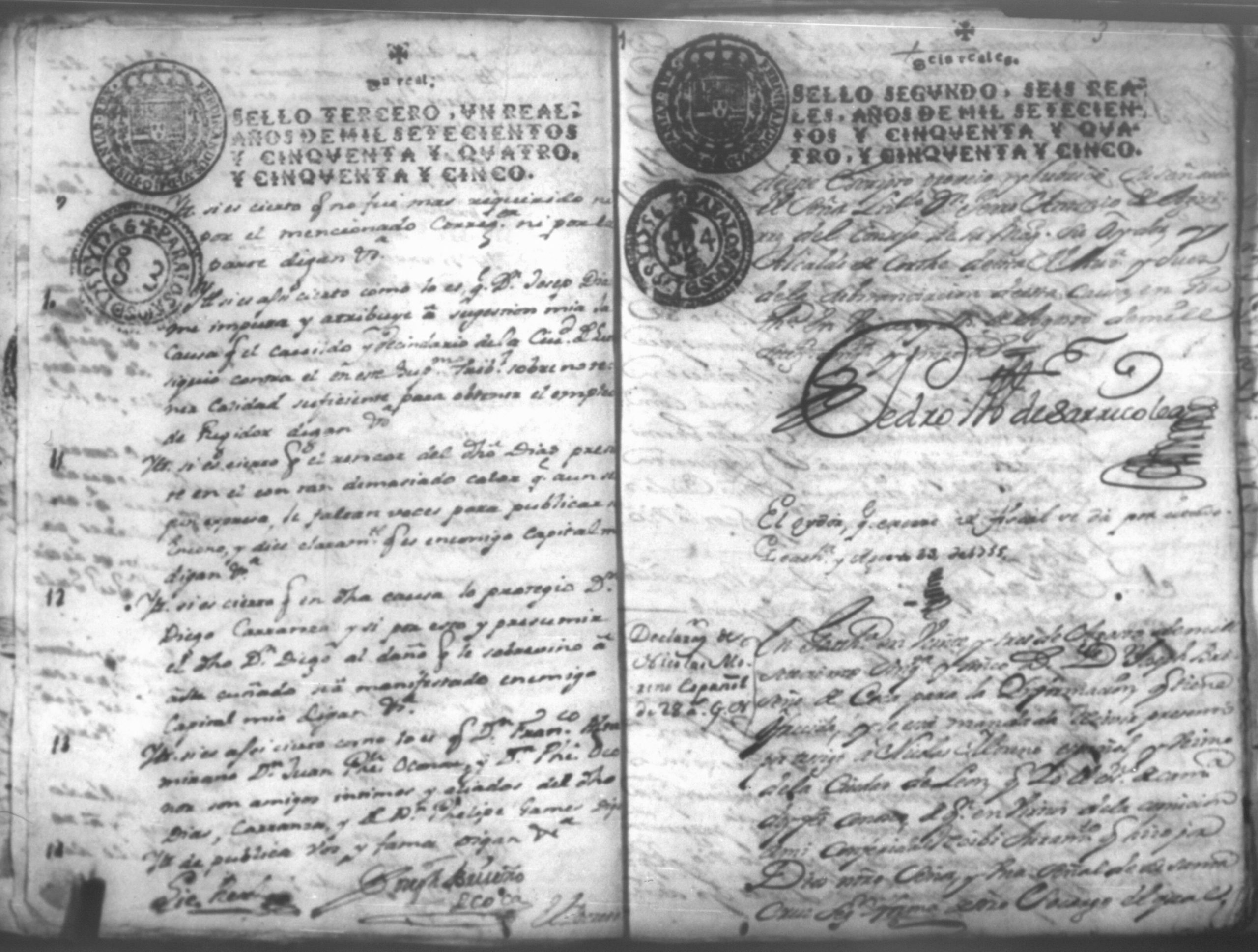 Temática: Año de 1755, 1756, 1757. Criminal. Autos que sigue Don Joseph Brizeño vezino de la provincia de Leon sobre pretender [indemnisarle] sobre el delito que se a impuesto por Don Pedro Sarria.