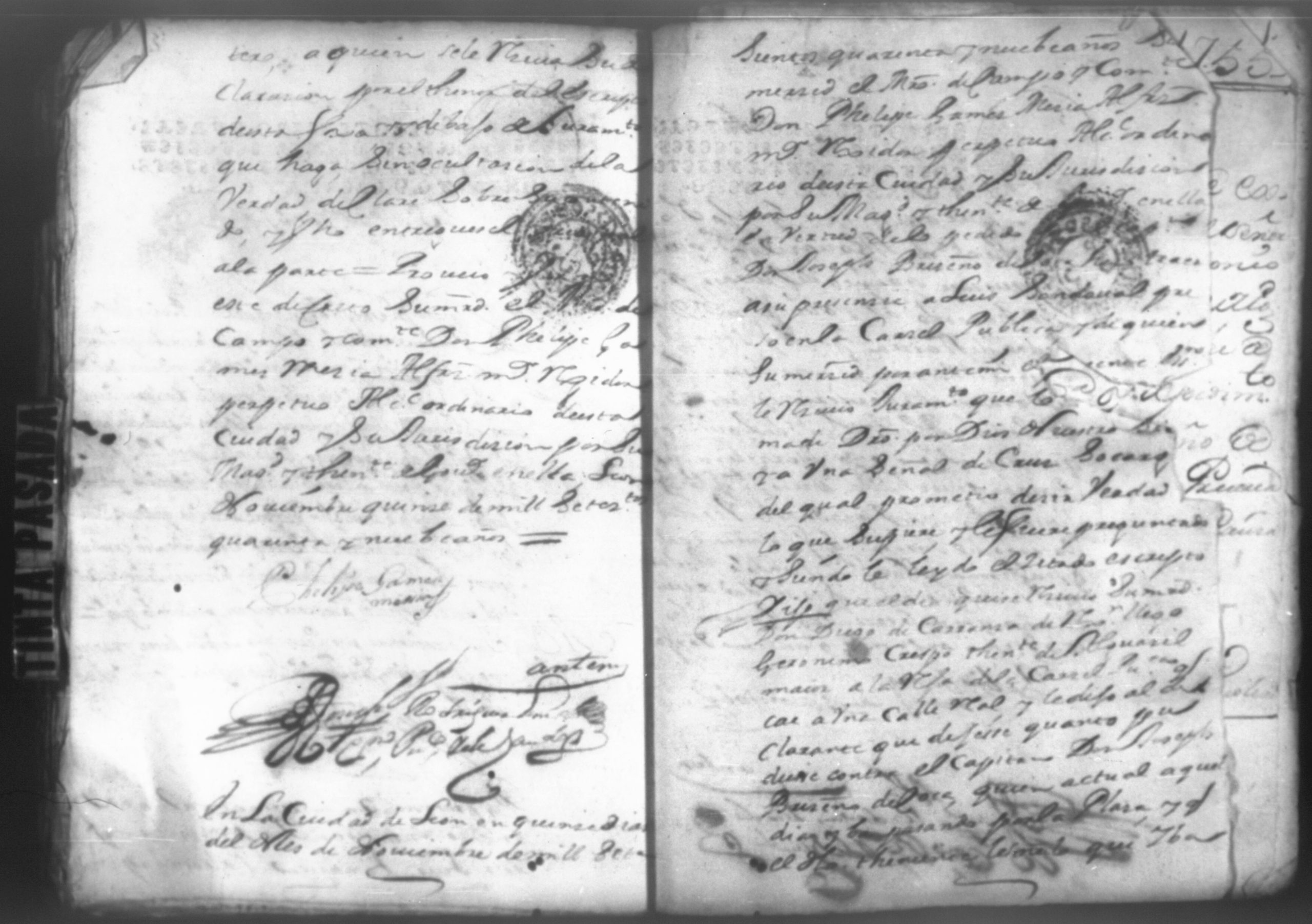 Temática: Año de 1755, 1756, 1757. Criminal. Autos que sigue Don Joseph Brizeño vezino de la provincia de Leon sobre pretender [indemnisarle] sobre el delito que se a impuesto por Don Pedro Sarria.