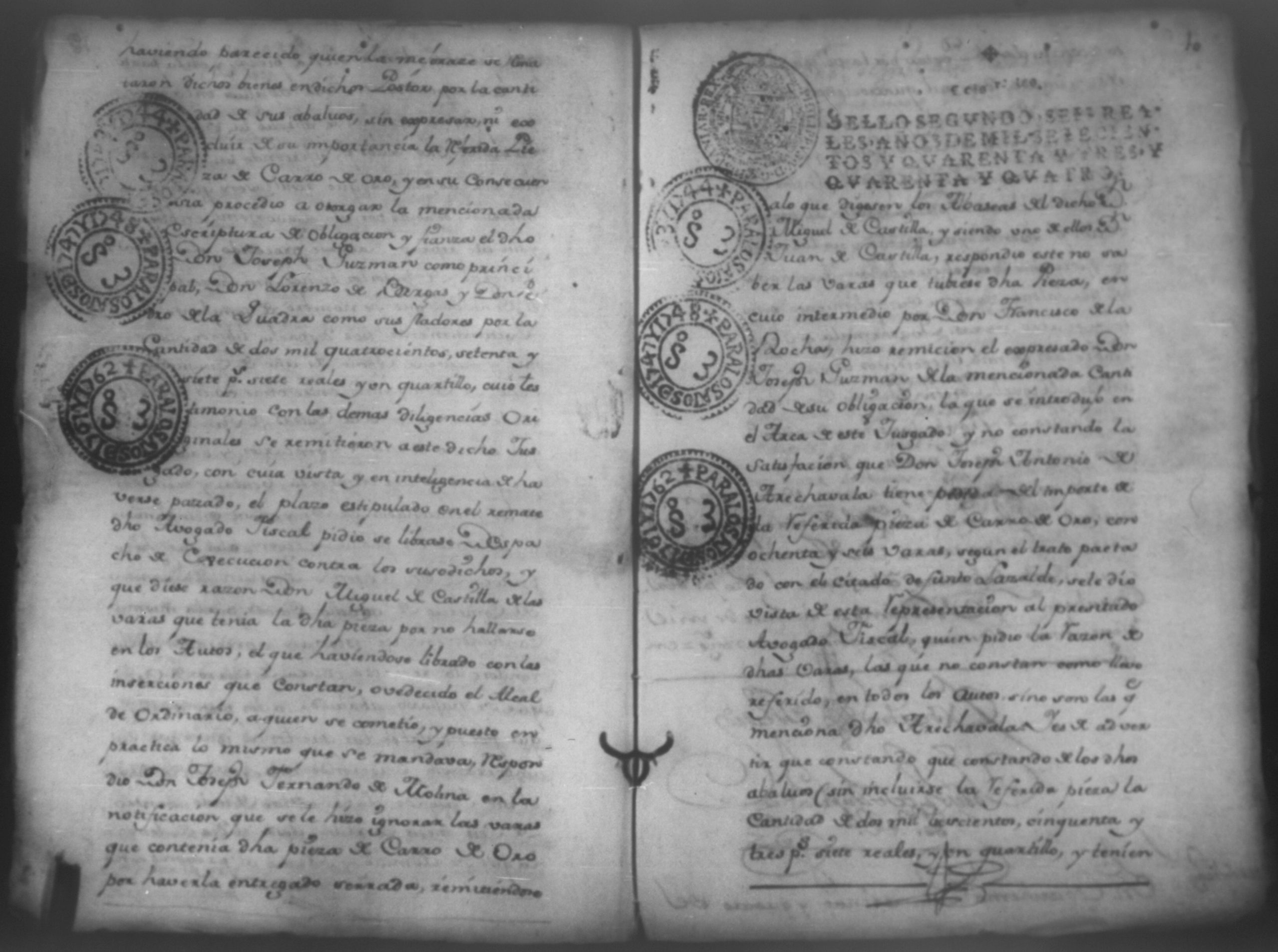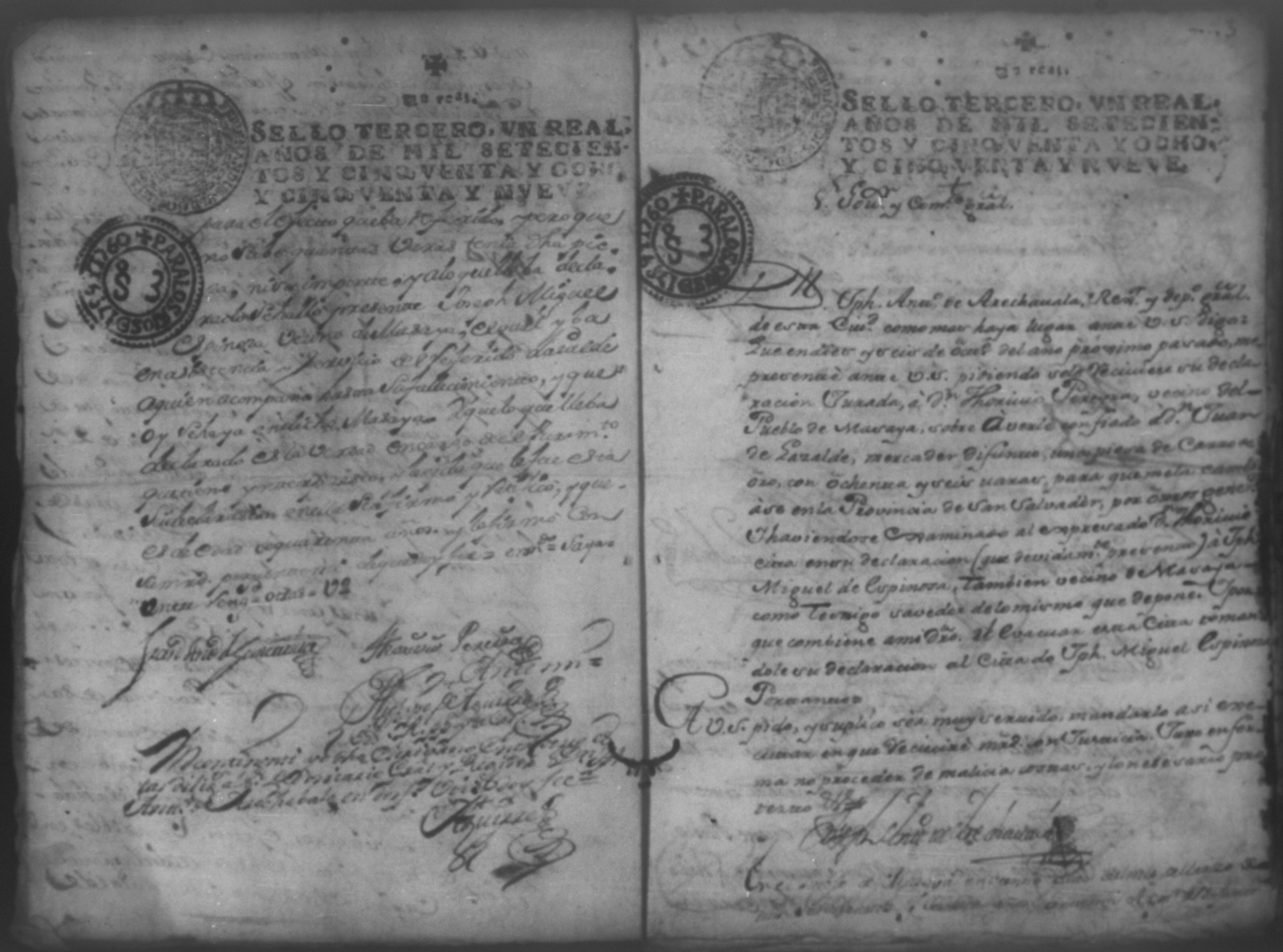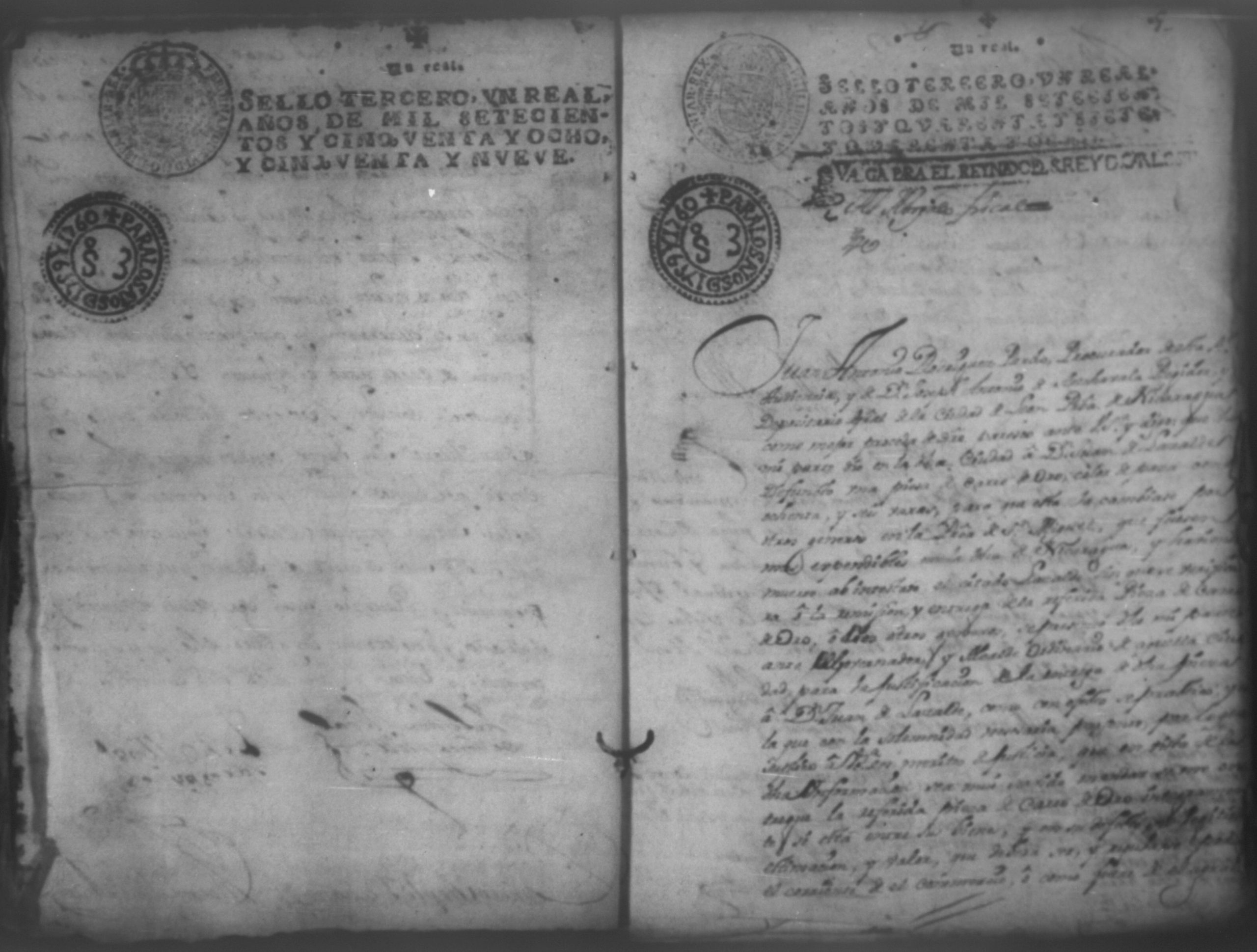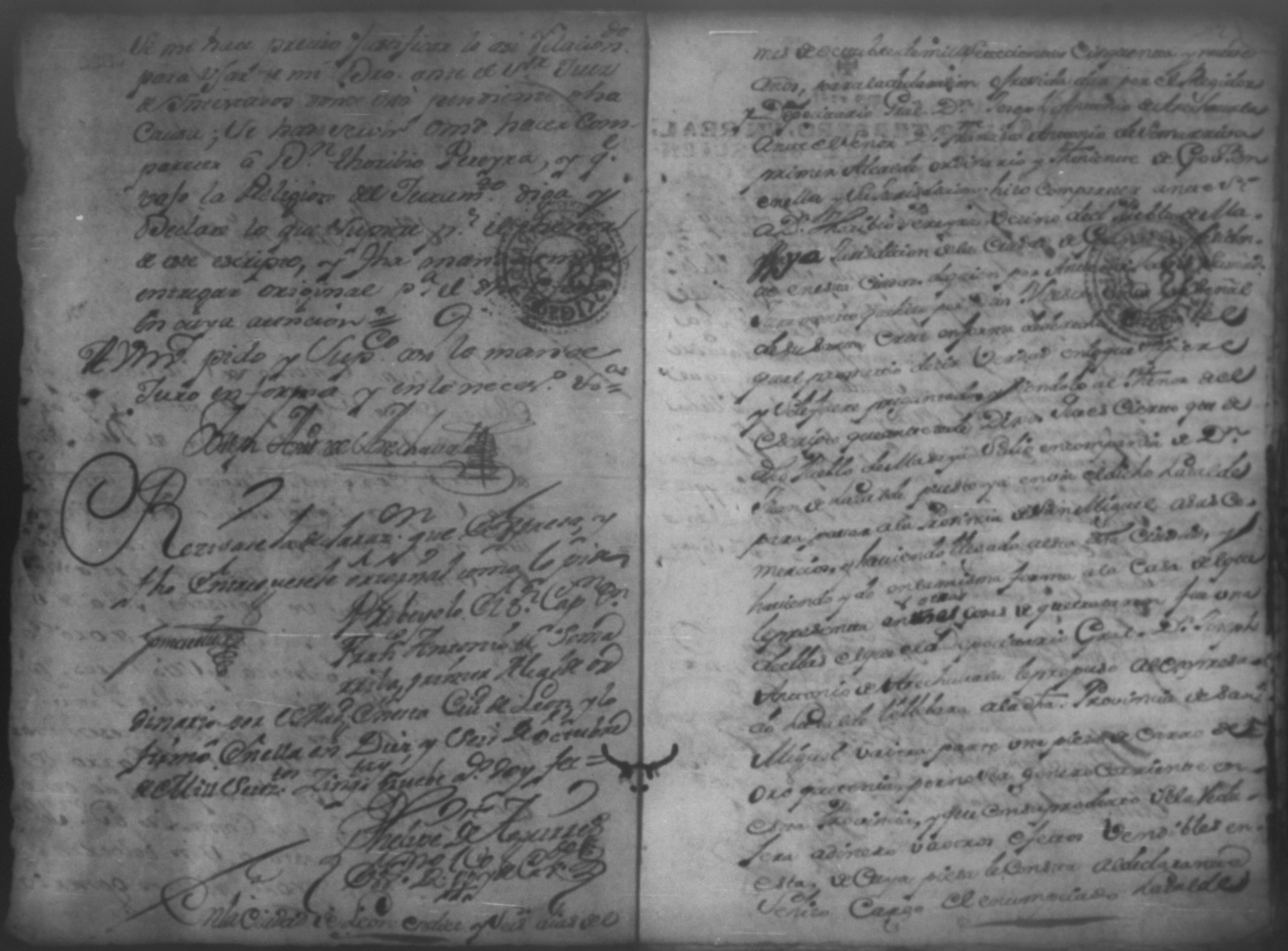 Temática: 1763. Don Joseph Antonio de Arechavala y Olacia vecino Receptor y Depositario General desta ciudad y Juez subdelegado del Real derecho de Tierras, como mas lugar aya ante Vuestra Majestad y digo que por el año de pasado de setecientos cinquenta y siete hallandose en esta ciudad Don Juan de Laralde ...que se regresaba para la de San Miguel, le di una pieza de carro de oro color de [plata] con ochenta y seis varas para que me los cambiase en aquella provincia por varios generos