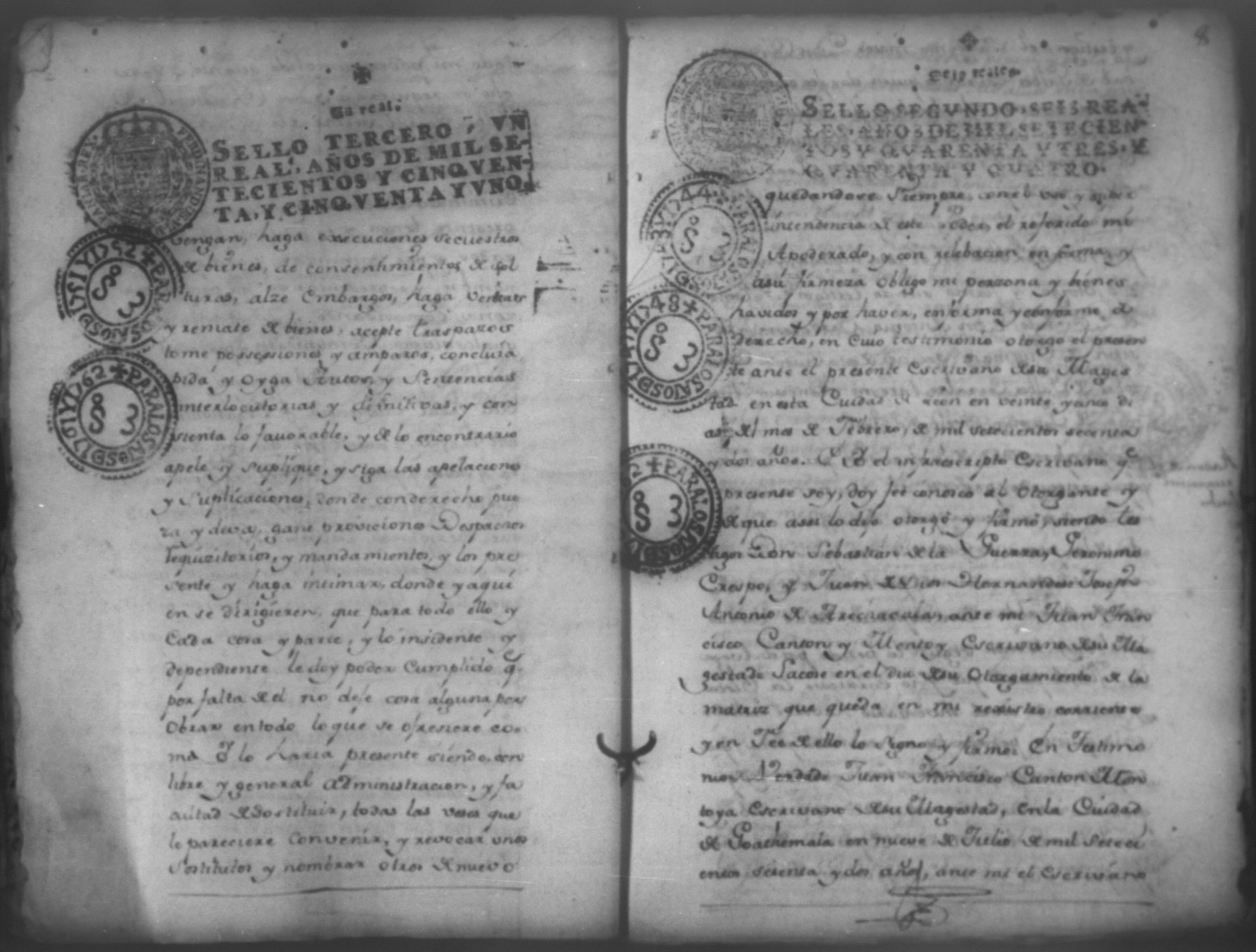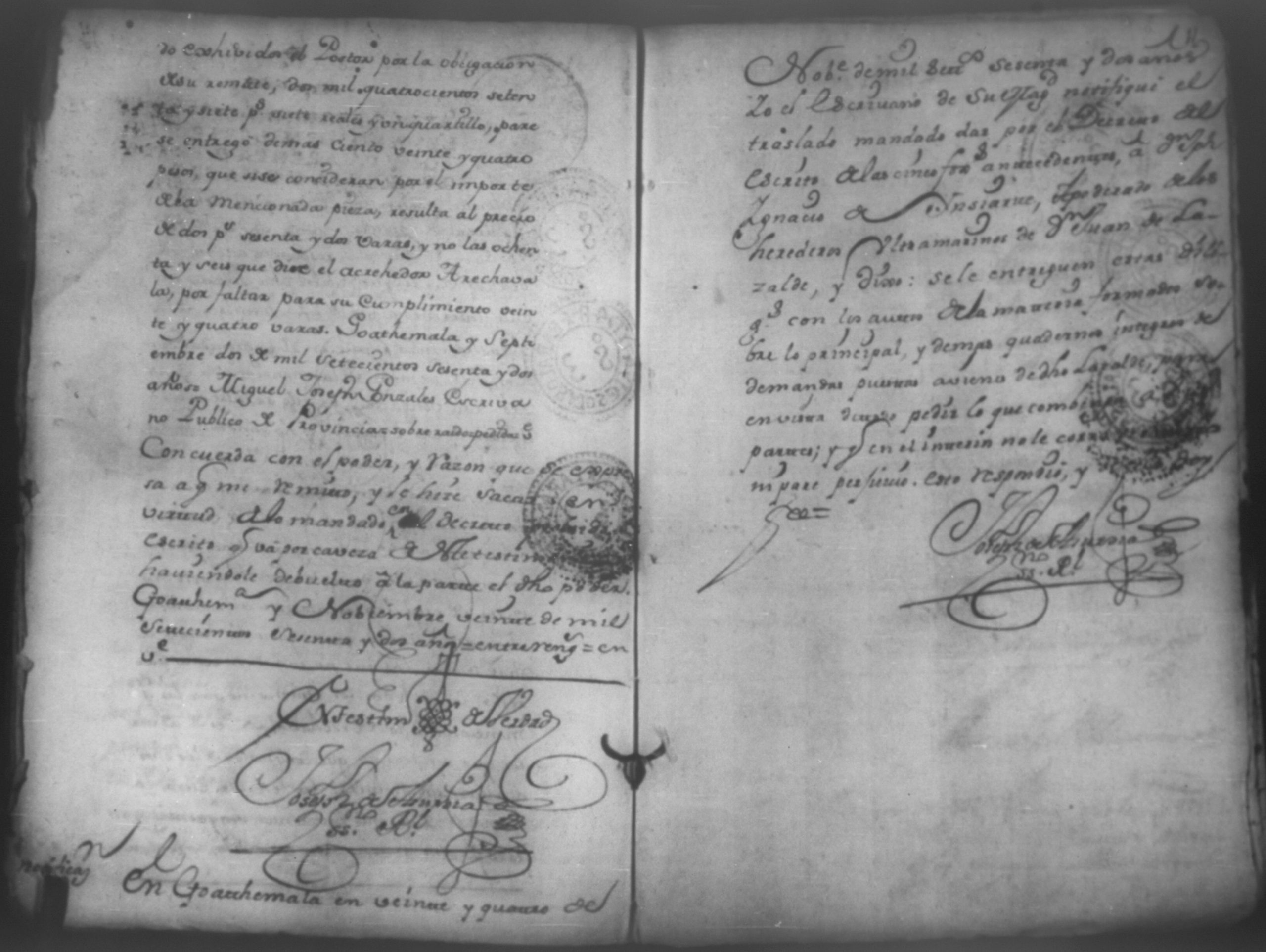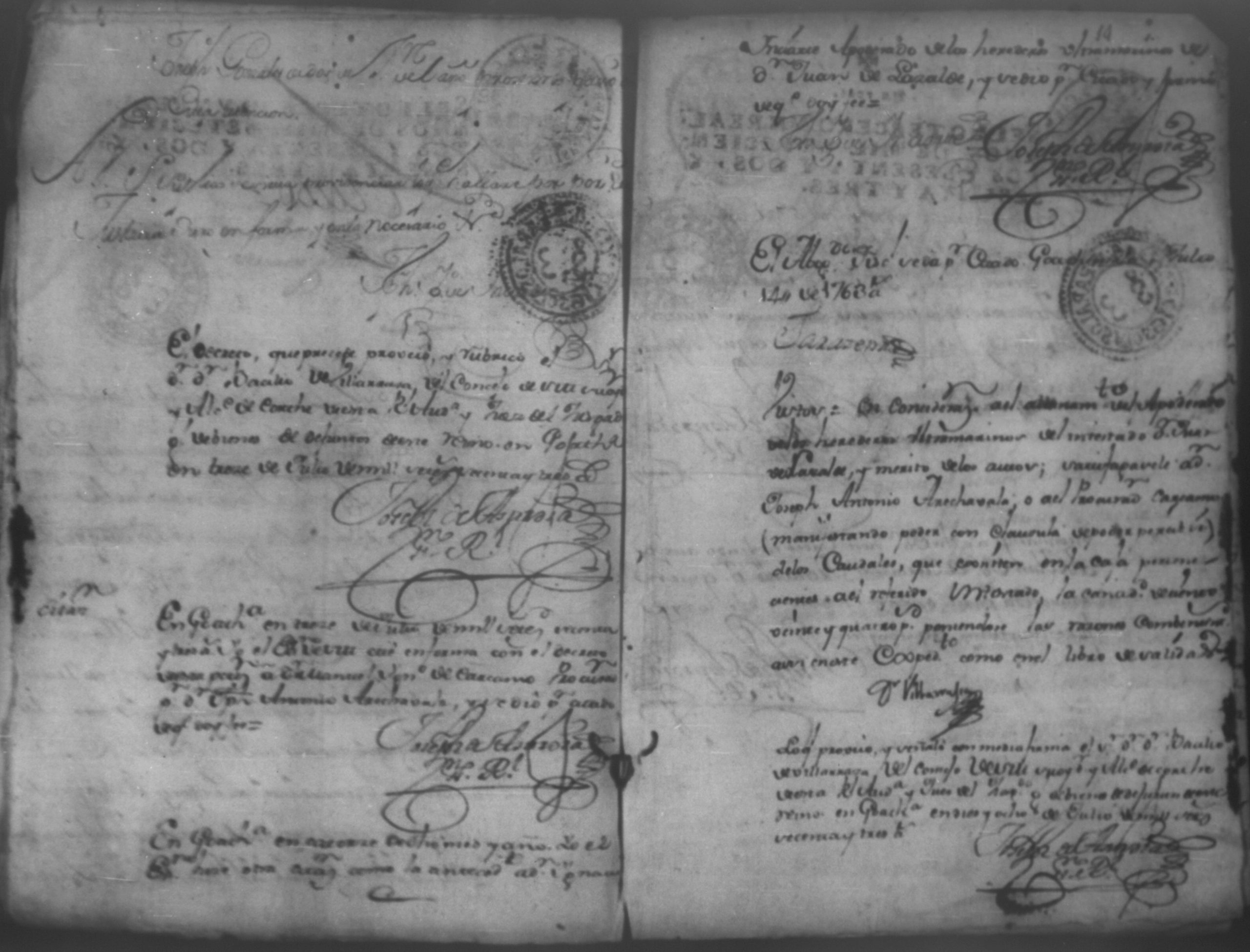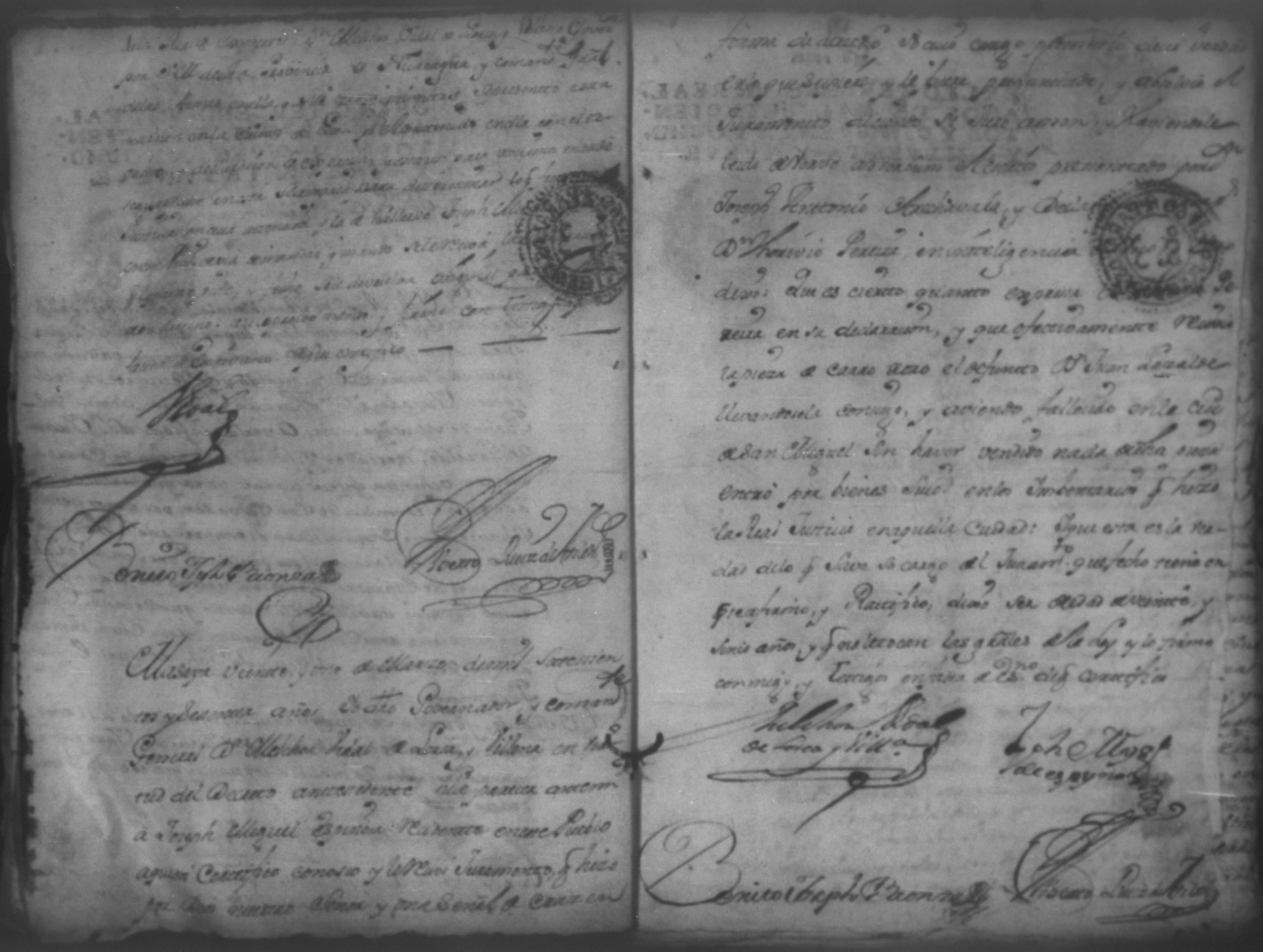 Temática: 1763. Don Joseph Antonio de Arechavala y Olacia vecino Receptor y Depositario General desta ciudad y Juez subdelegado del Real derecho de Tierras, como mas lugar aya ante Vuestra Majestad y digo que por el año de pasado de setecientos cinquenta y siete hallandose en esta ciudad Don Juan de Laralde ...que se regresaba para la de San Miguel, le di una pieza de carro de oro color de [plata] con ochenta y seis varas para que me los cambiase en aquella provincia por varios generos