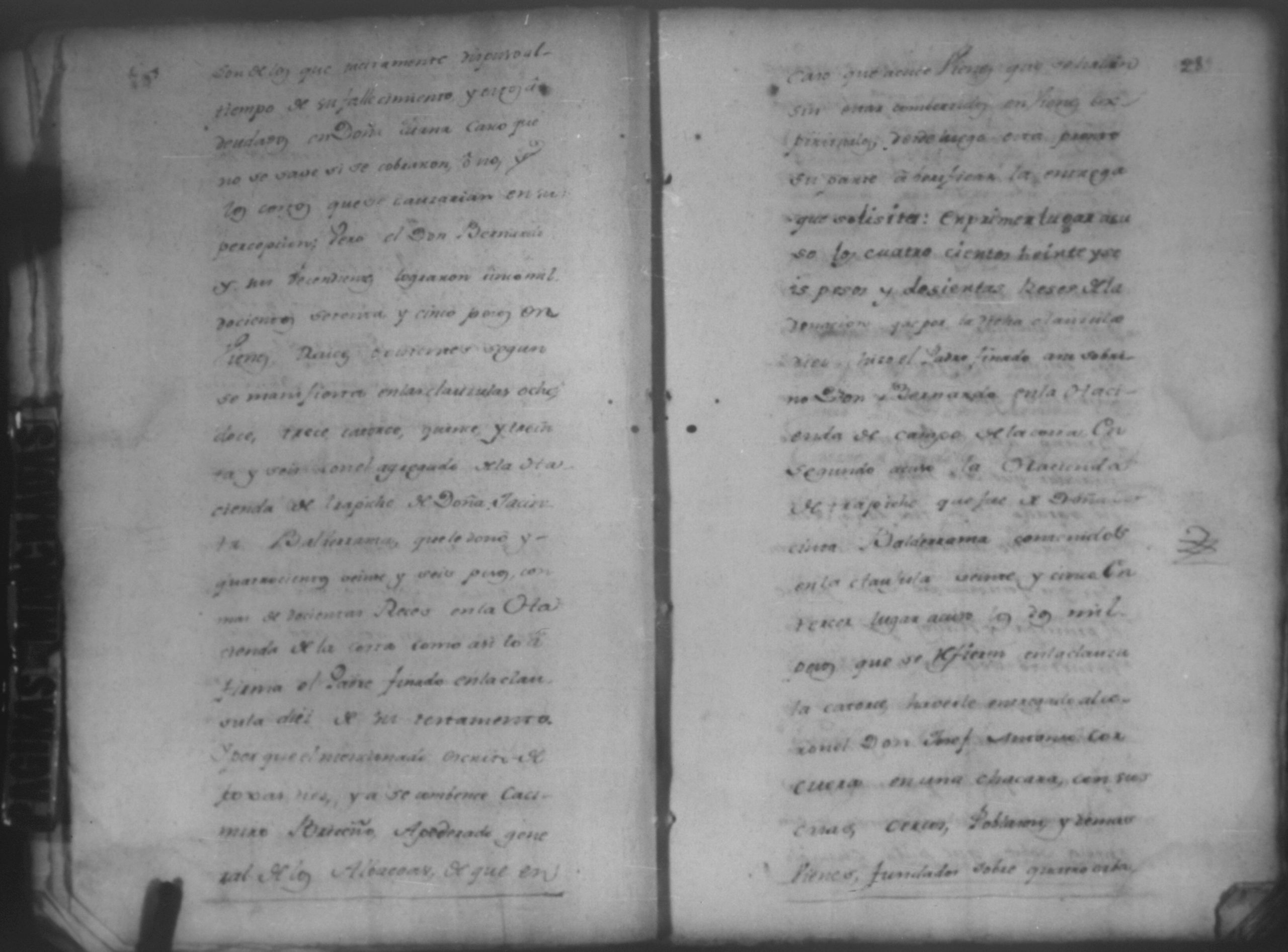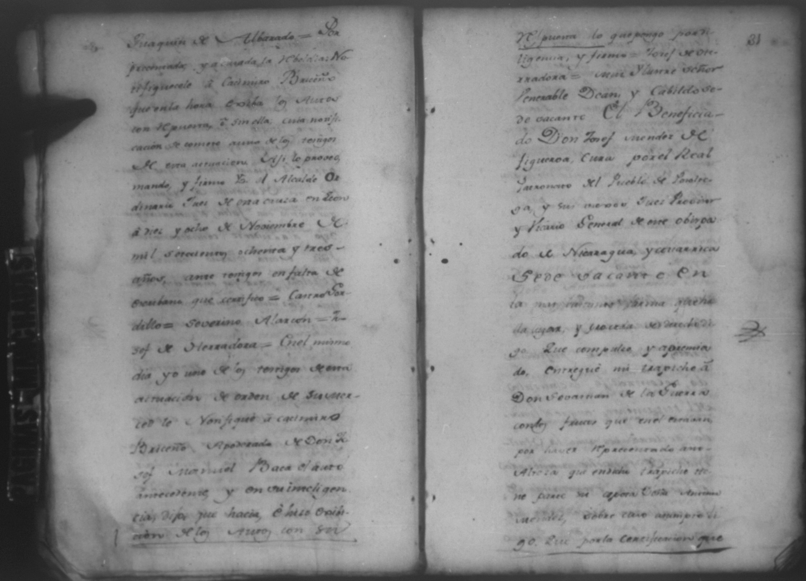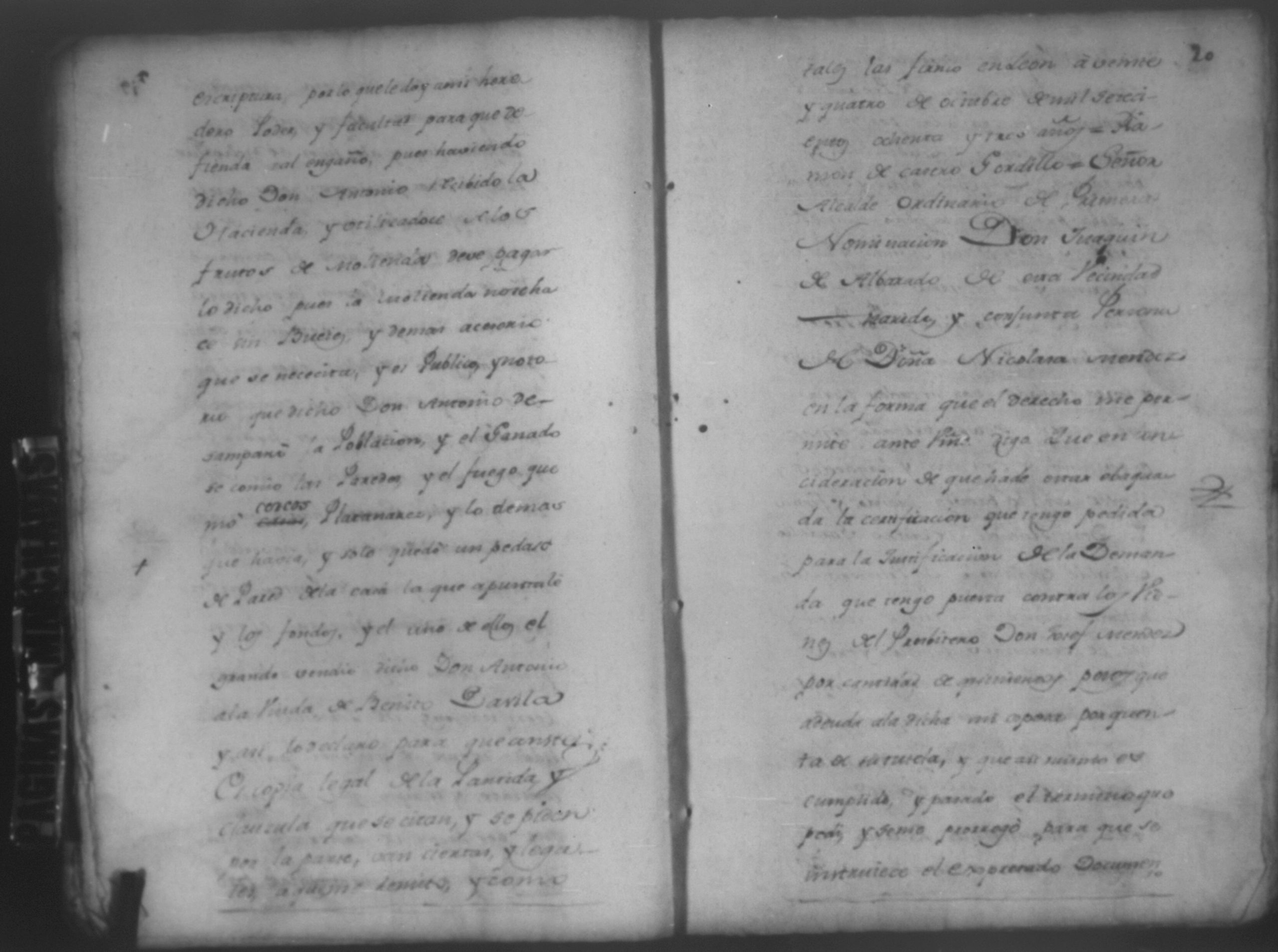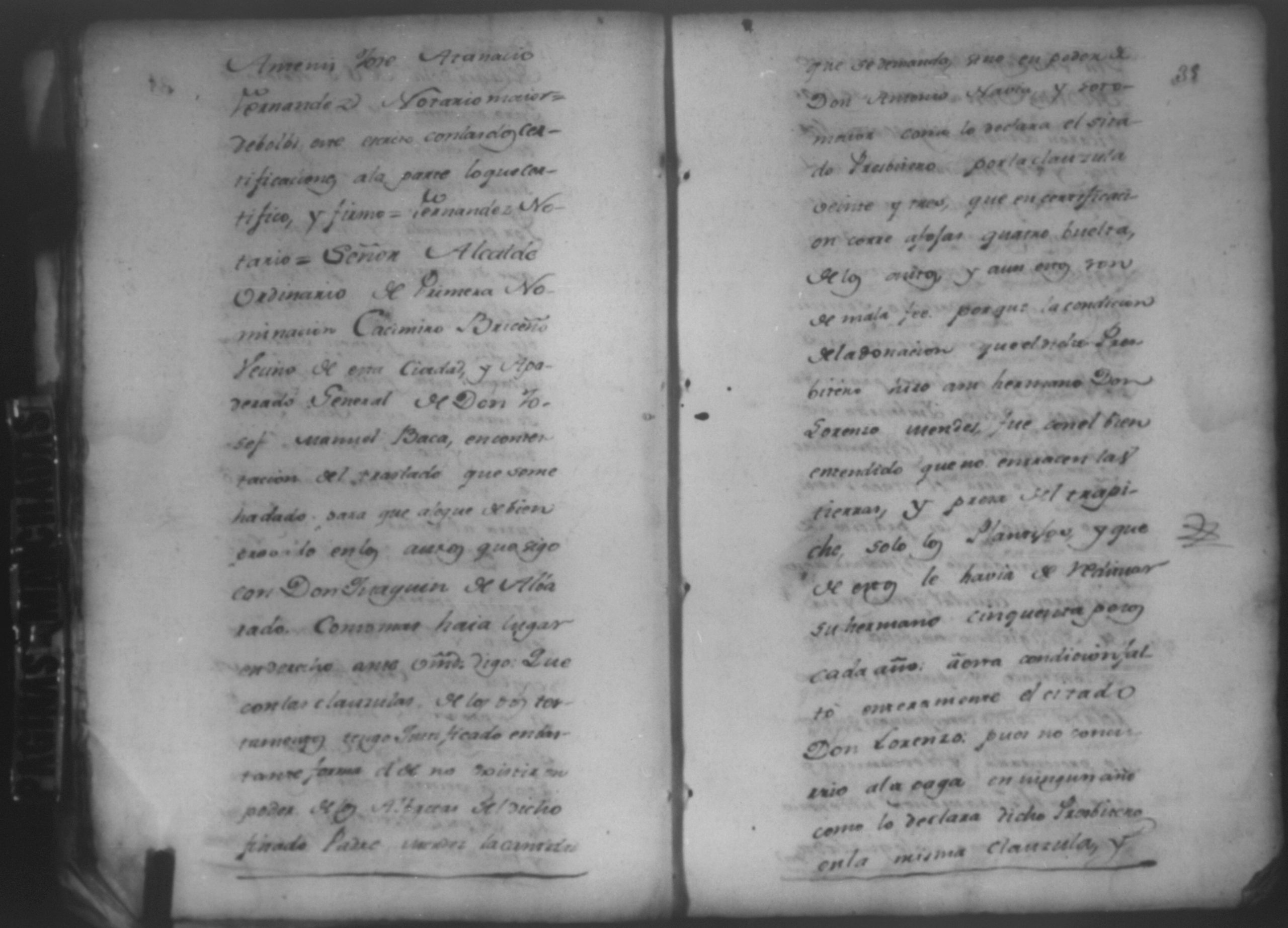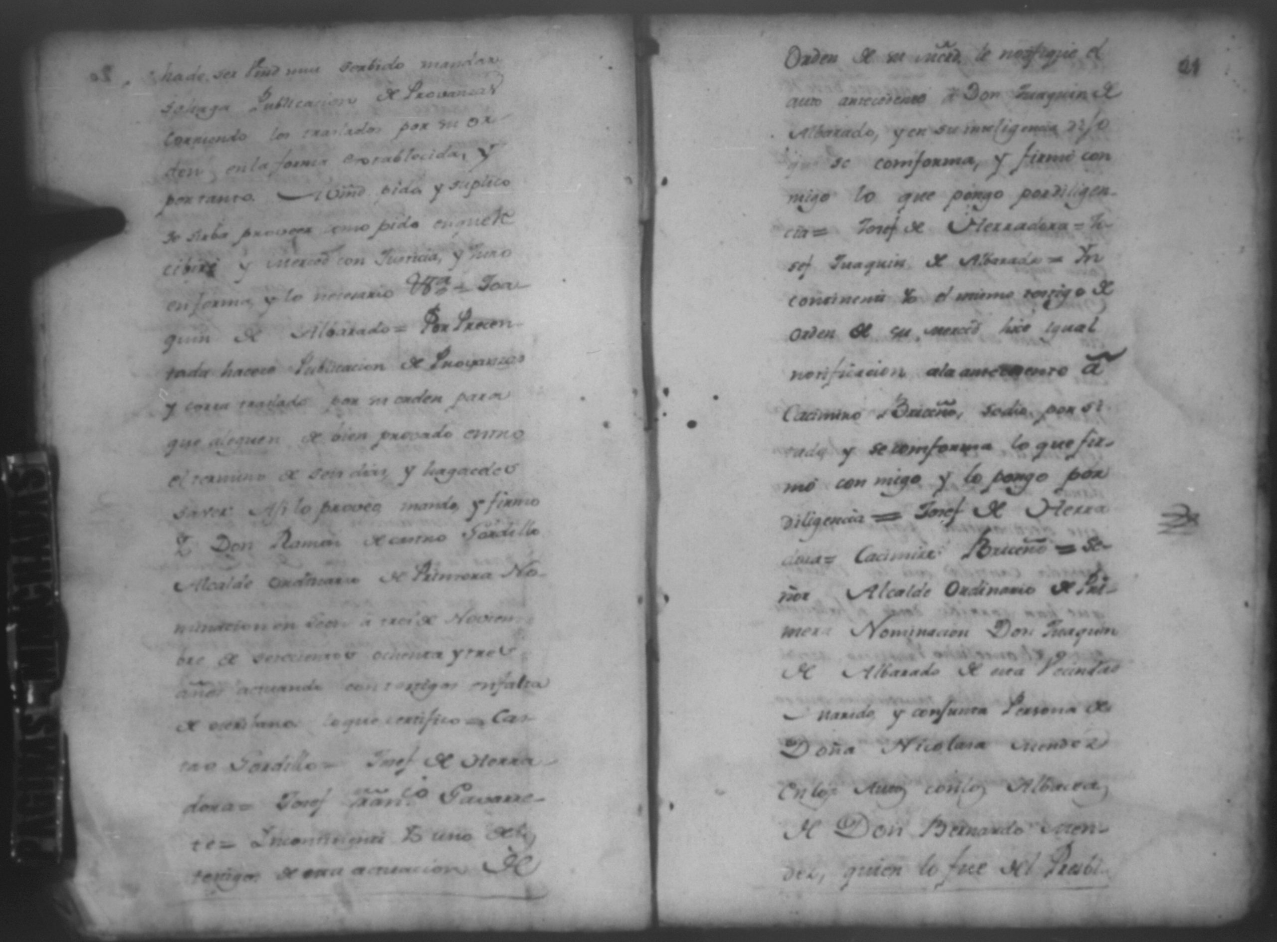 Temática: León, 1785. Testimonio de los Autos que se trajeron por Apelación de lo determinado por el alcalde ordinario de primer voto de León en la ynstancia de don Juaquin Alvarado marido y conjunta persona de doña Nicolasa Méndez de Figueroa contra don Manuel Díaz Caveza de Baca por quinientos pesos y reditos tantos de la testamentaria de don Bernardo Méndez