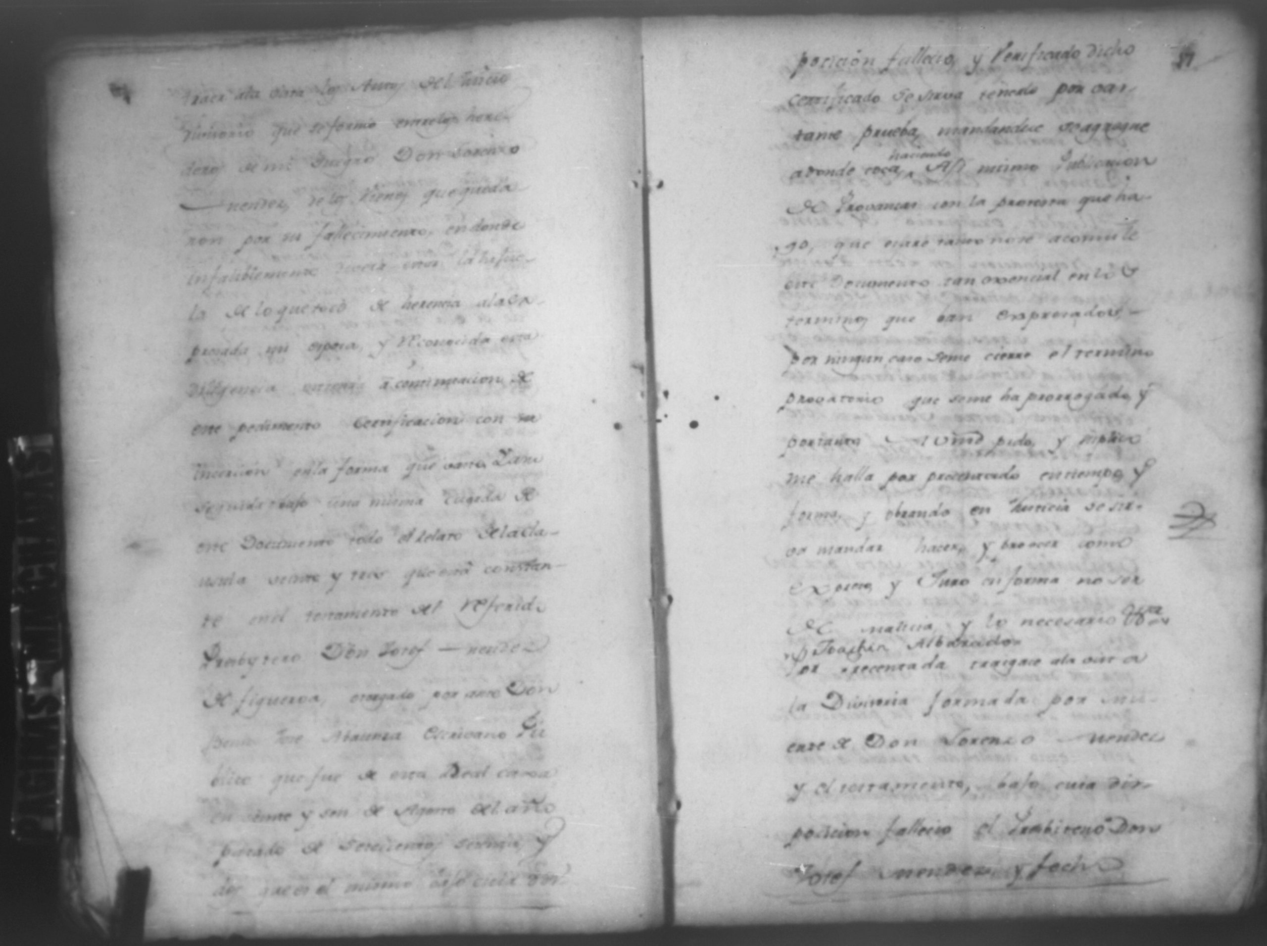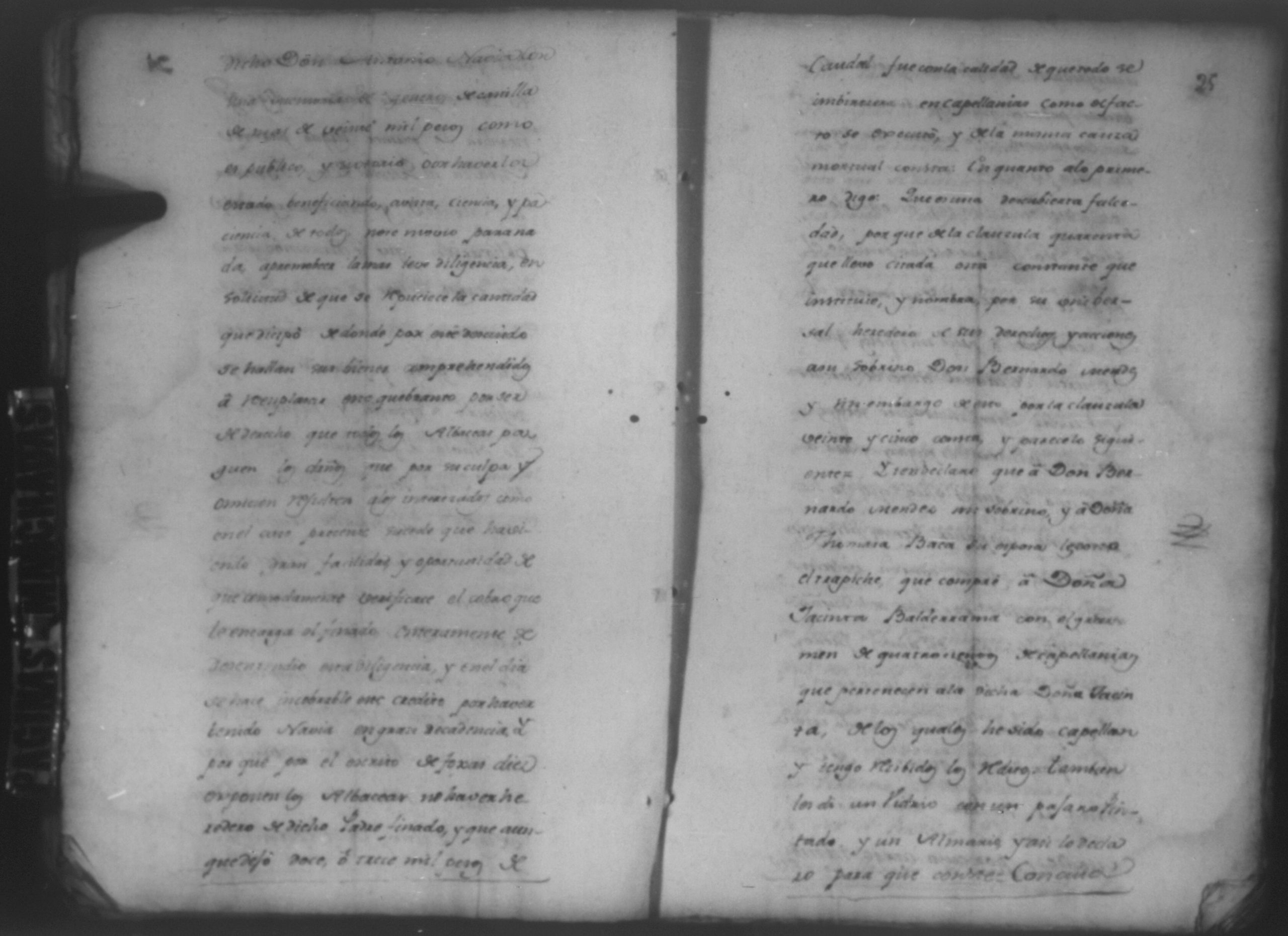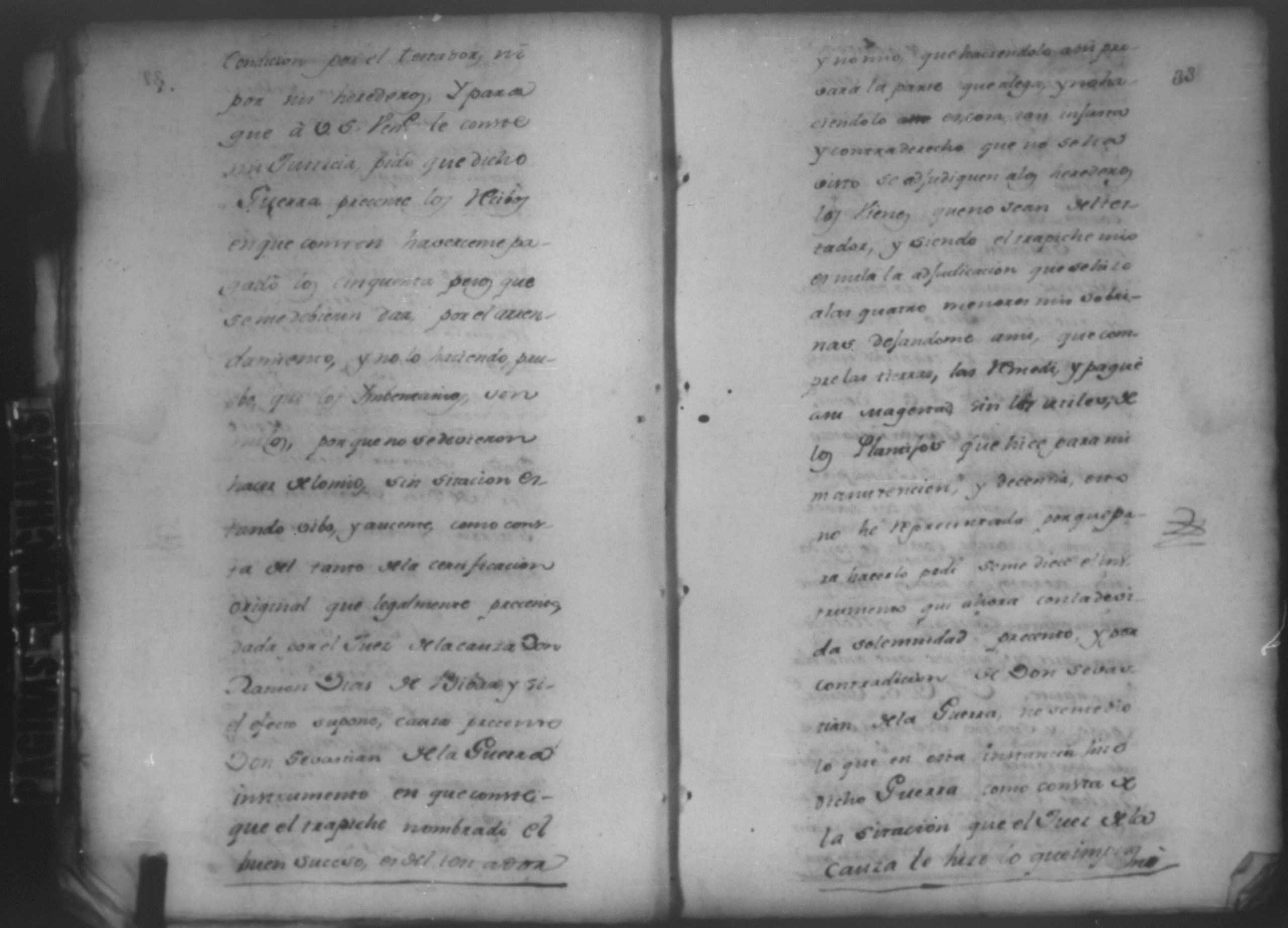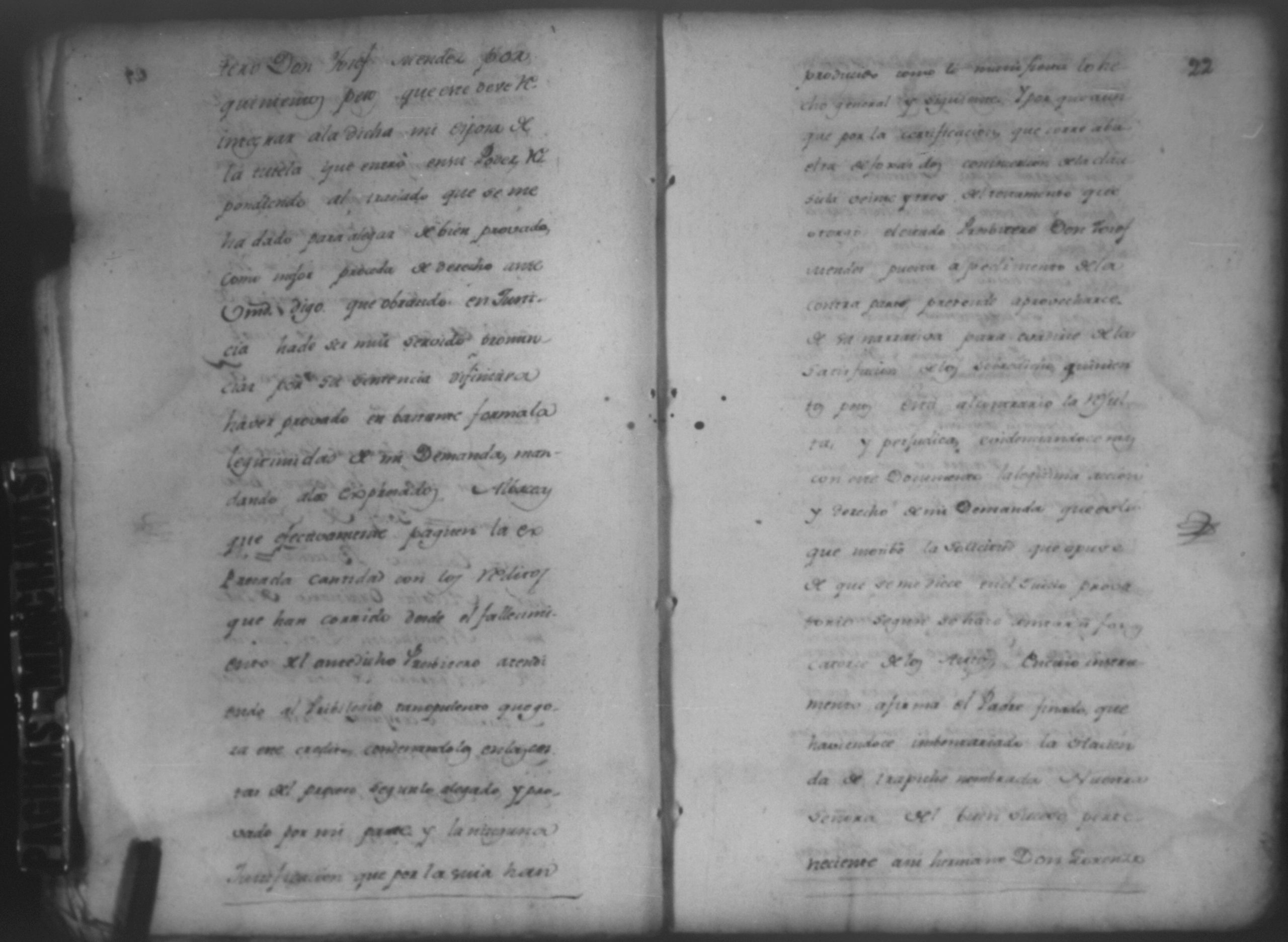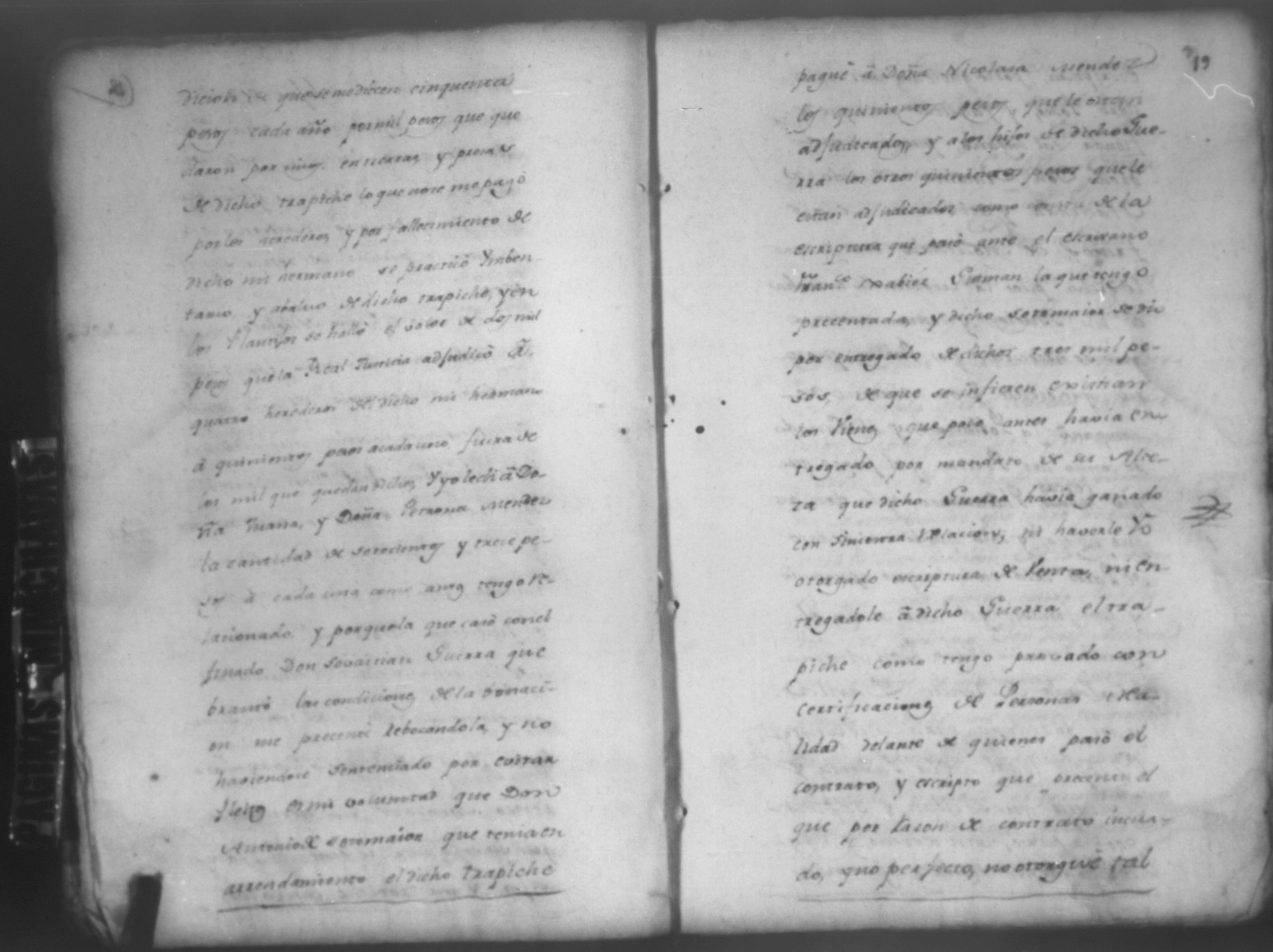 Temática: León, 1785. Testimonio de los Autos que se trajeron por Apelación de lo determinado por el alcalde ordinario de primer voto de León en la ynstancia de don Juaquin Alvarado marido y conjunta persona de doña Nicolasa Méndez de Figueroa contra don Manuel Díaz Caveza de Baca por quinientos pesos y reditos tantos de la testamentaria de don Bernardo Méndez