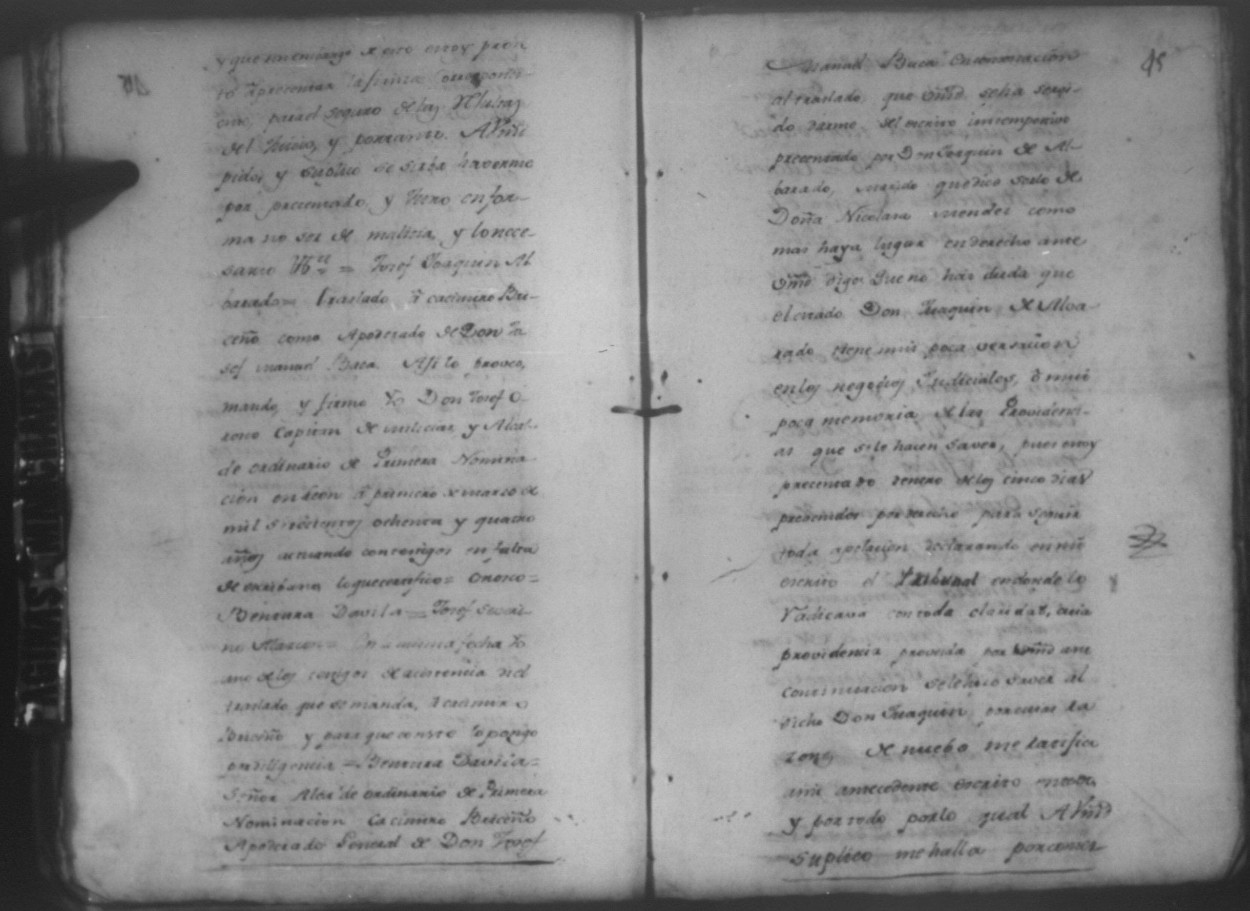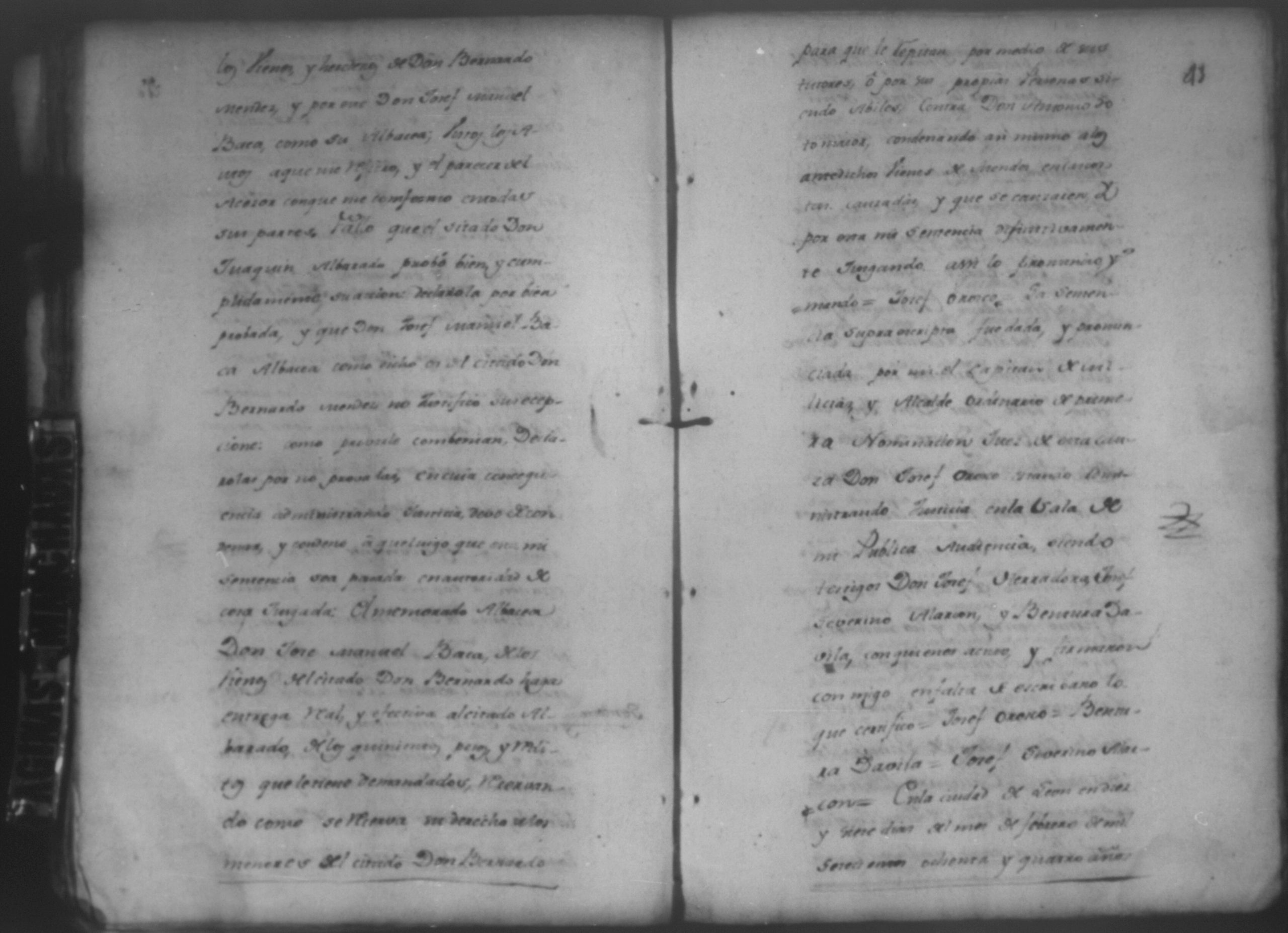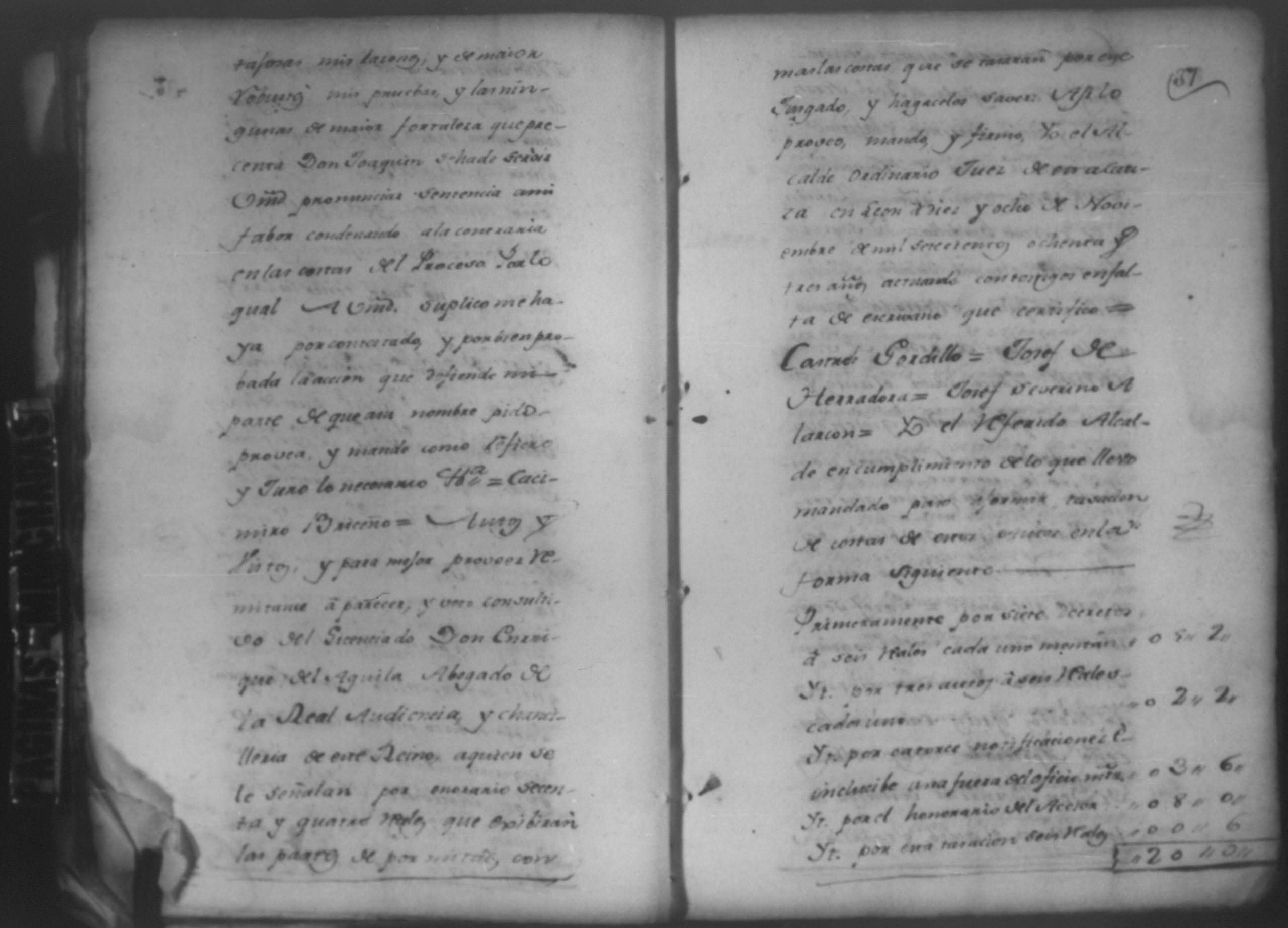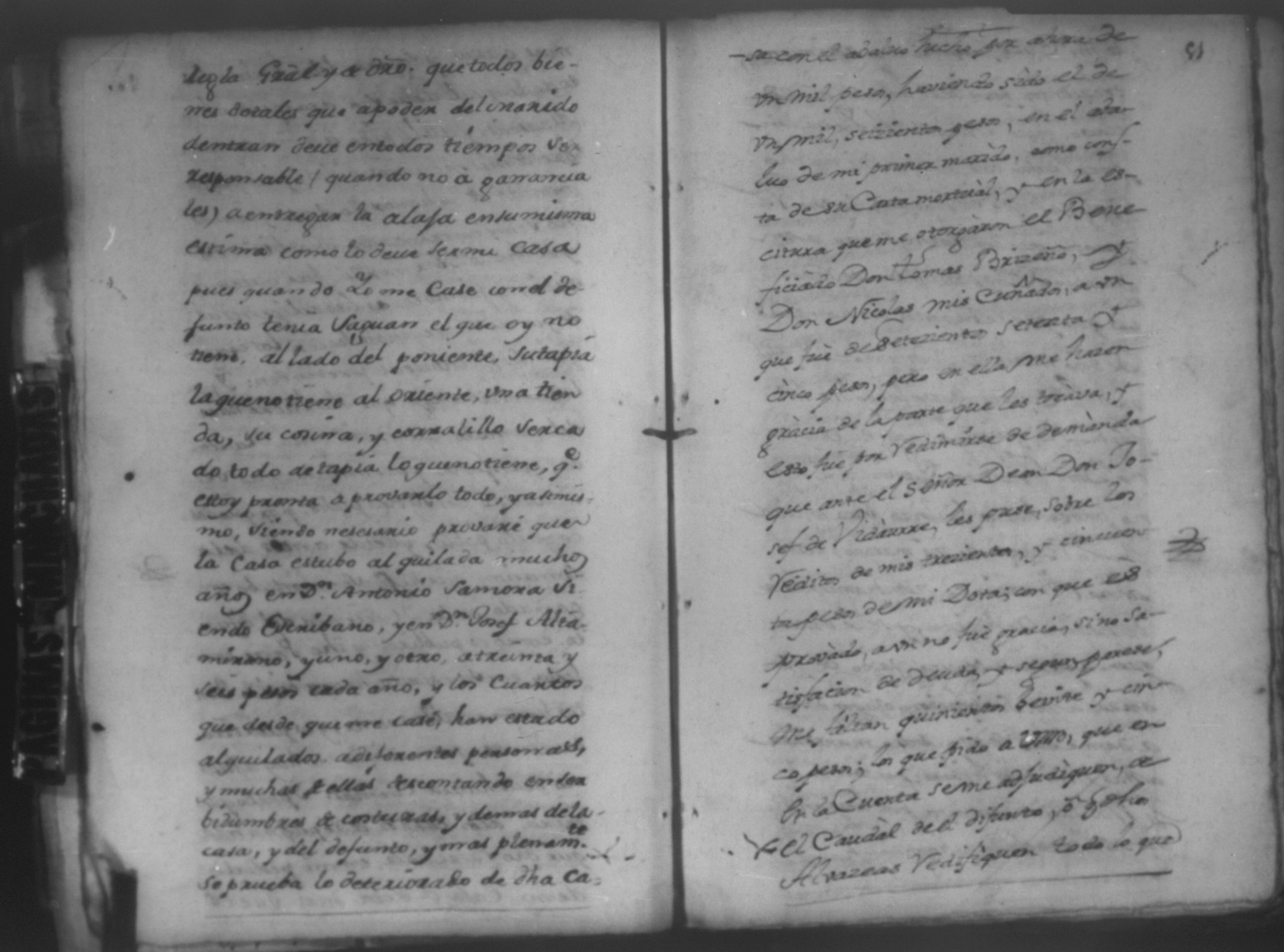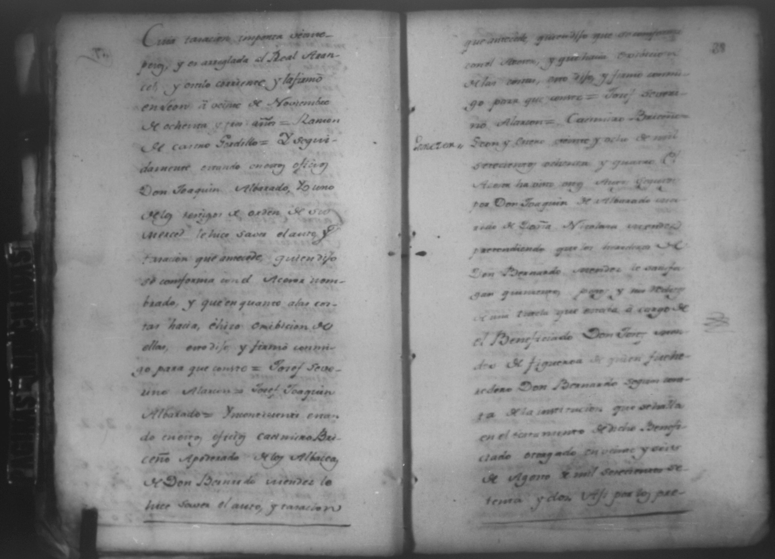 Temática: León, 1785. Testimonio de los Autos que se trajeron por Apelación de lo determinado por el alcalde ordinario de primer voto de León en la ynstancia de don Juaquin Alvarado marido y conjunta persona de doña Nicolasa Méndez de Figueroa contra don Manuel Díaz Caveza de Baca por quinientos pesos y reditos tantos de la testamentaria de don Bernardo Méndez