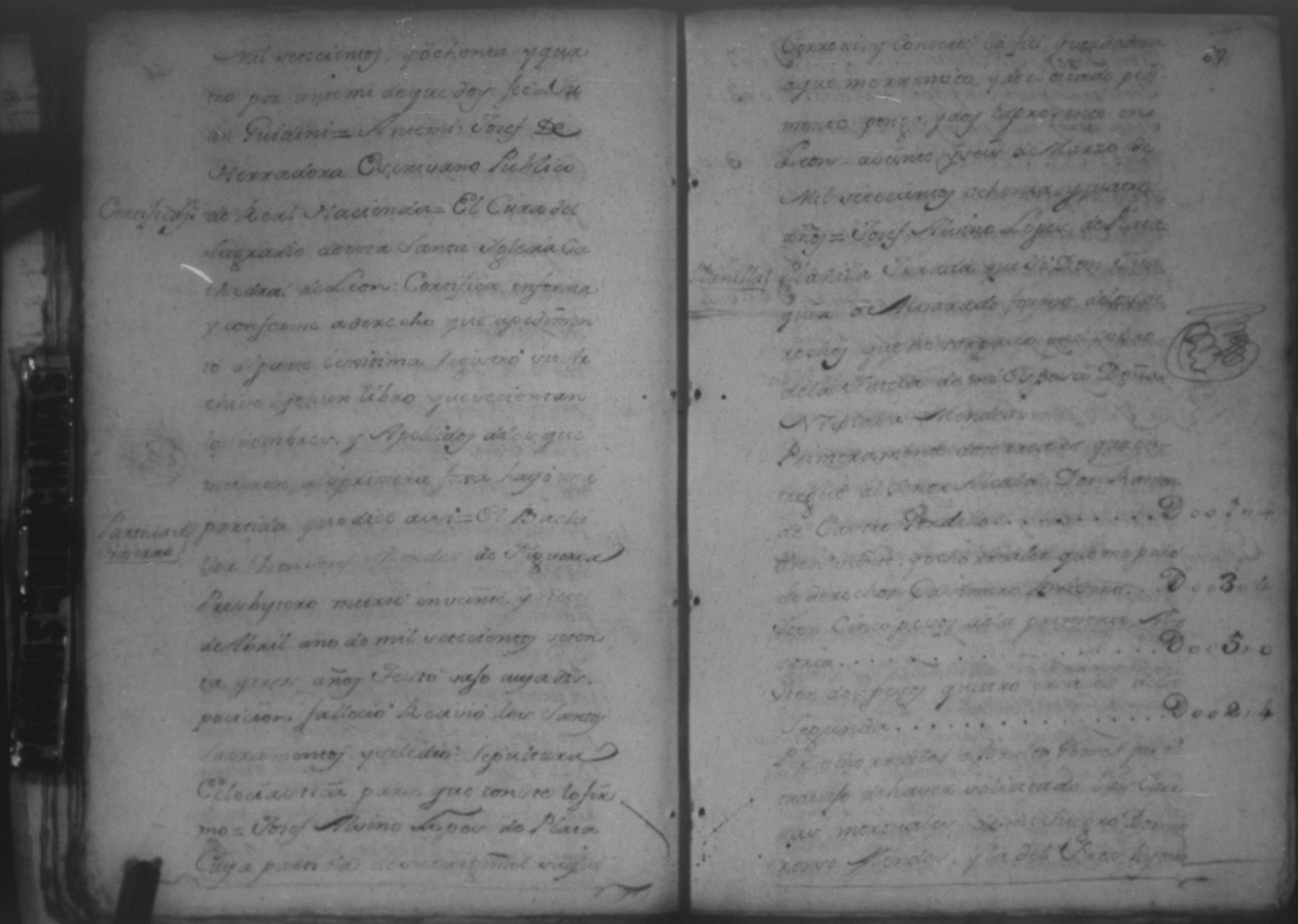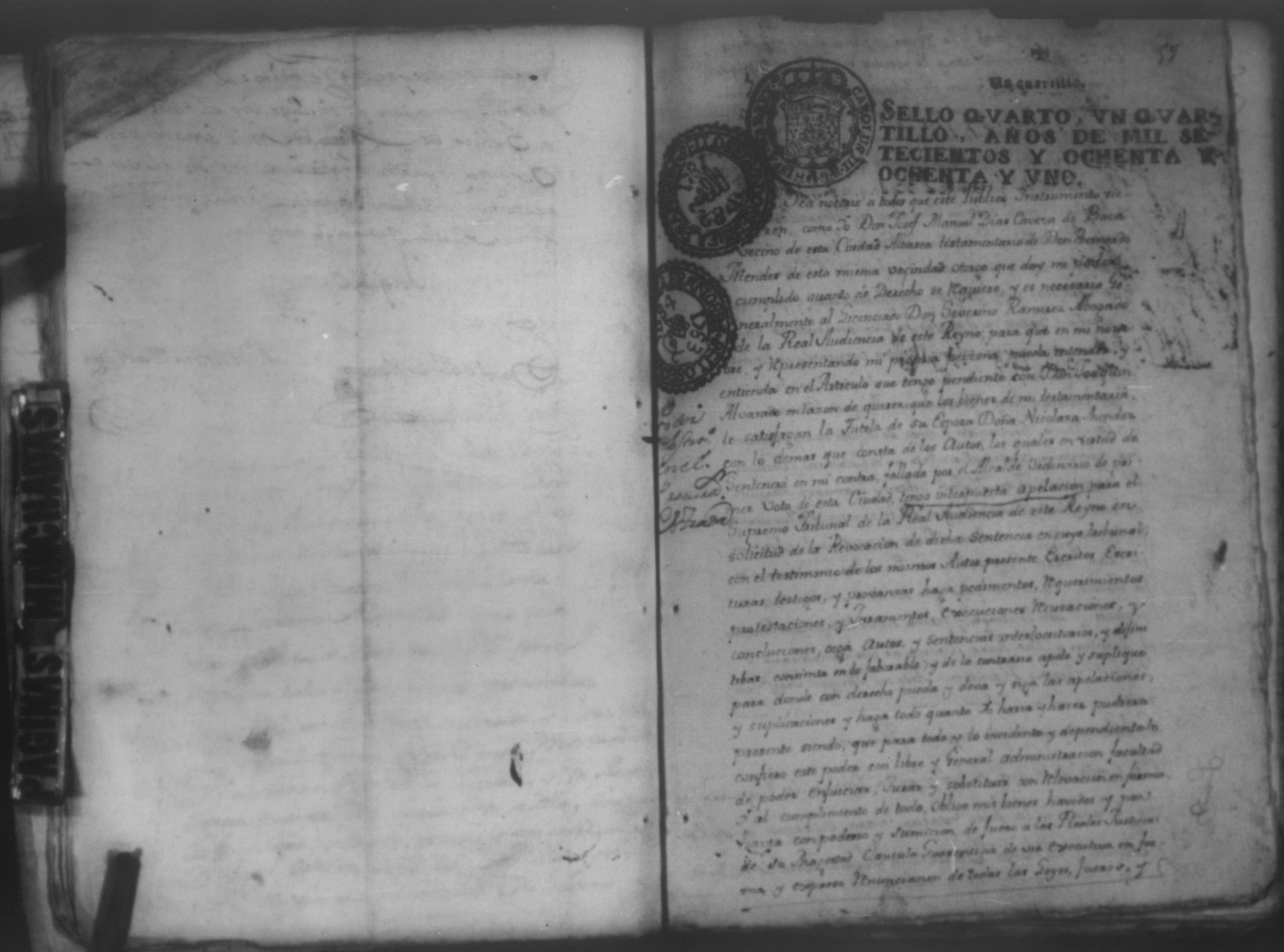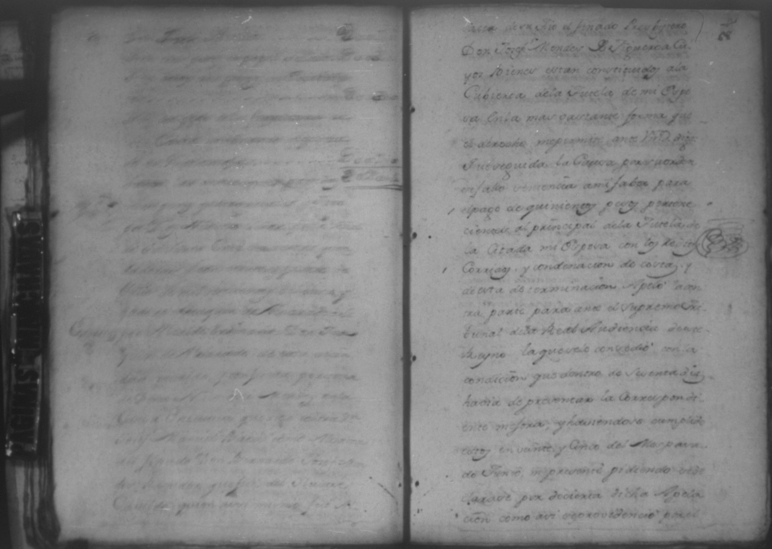 Temática: León, 1785. Testimonio de los Autos que se trajeron por Apelación de lo determinado por el alcalde ordinario de primer voto de León en la ynstancia de don Juaquin Alvarado marido y conjunta persona de doña Nicolasa Méndez de Figueroa contra don Manuel Díaz Caveza de Baca por quinientos pesos y reditos tantos de la testamentaria de don Bernardo Méndez