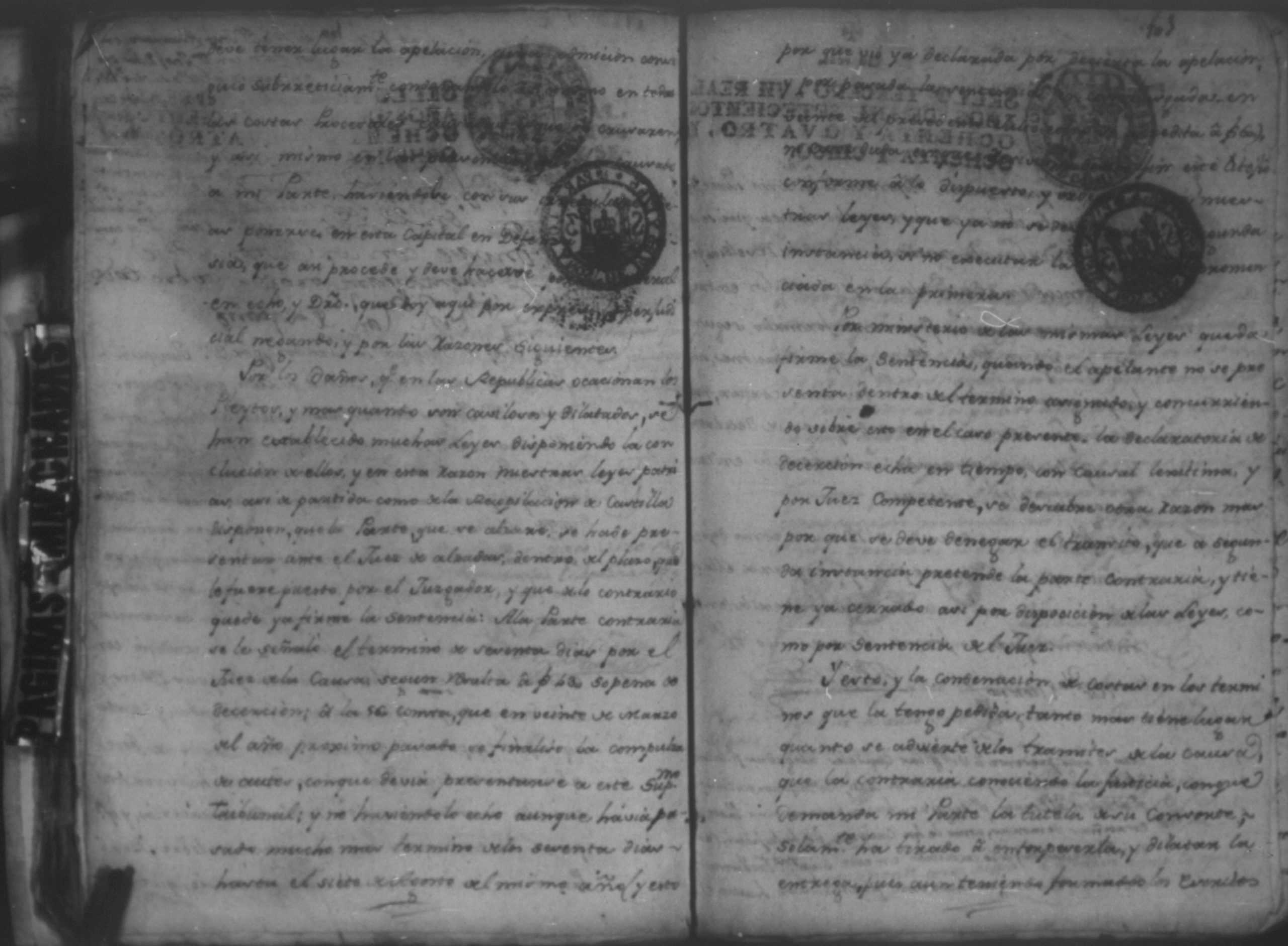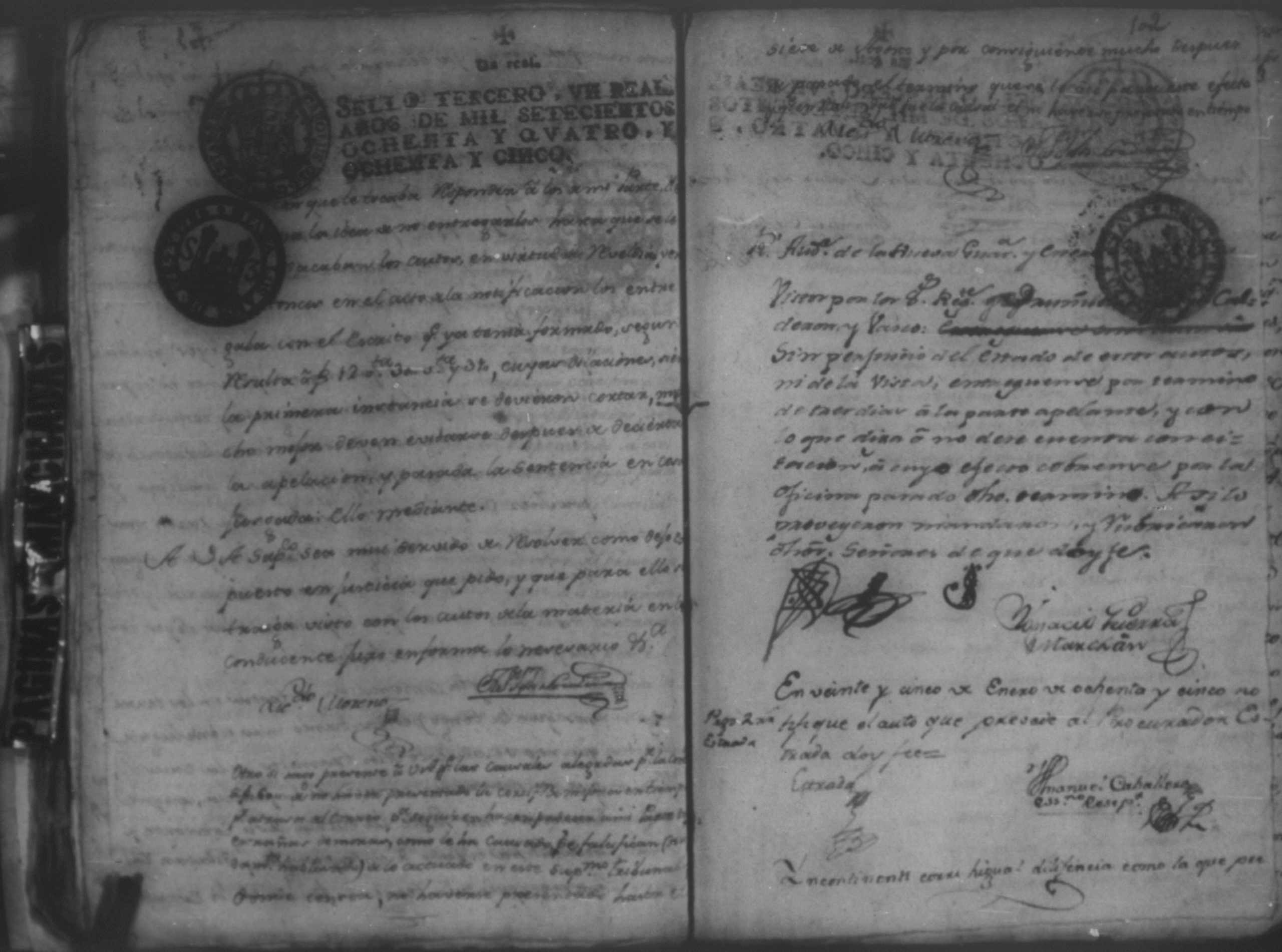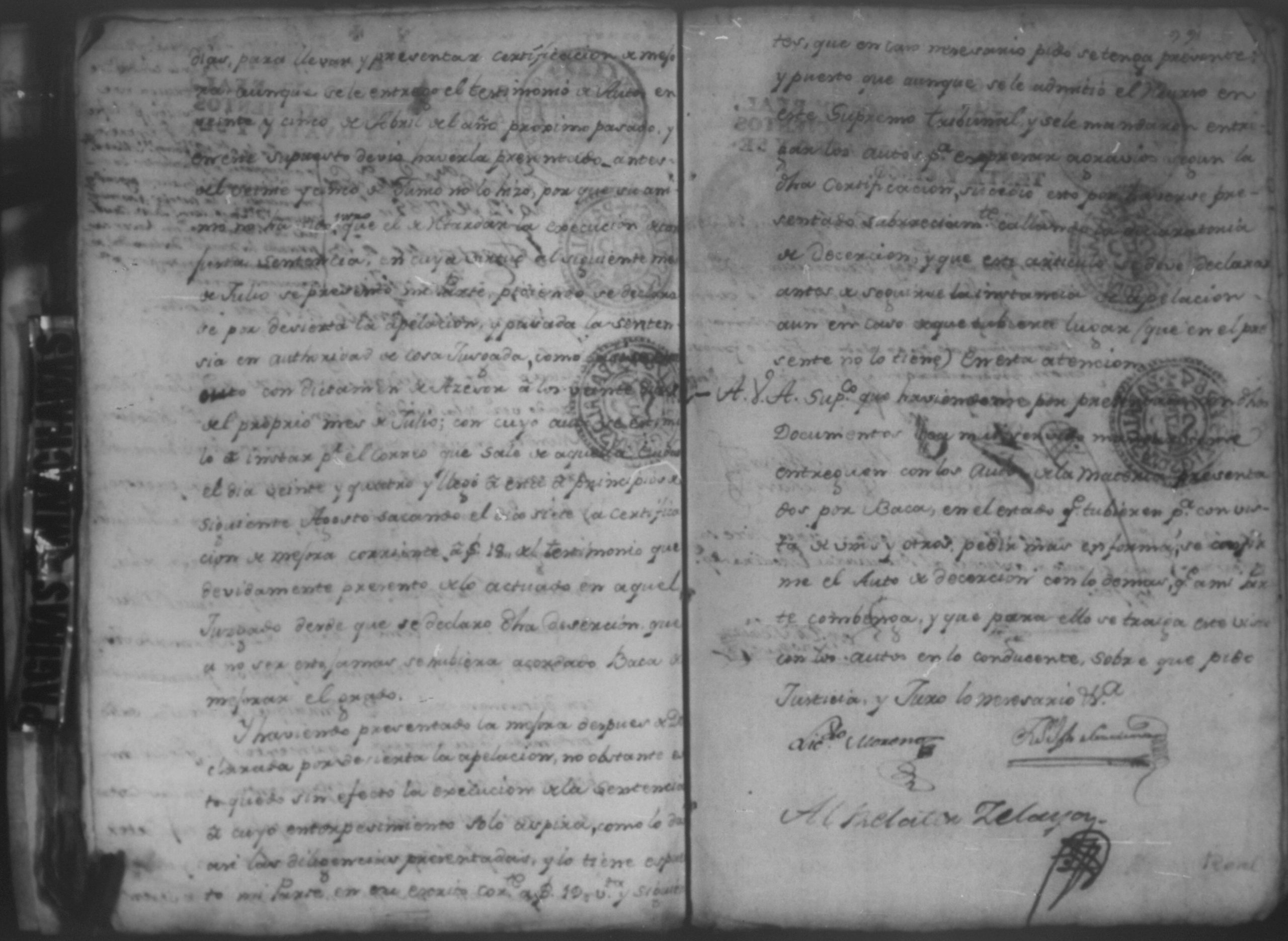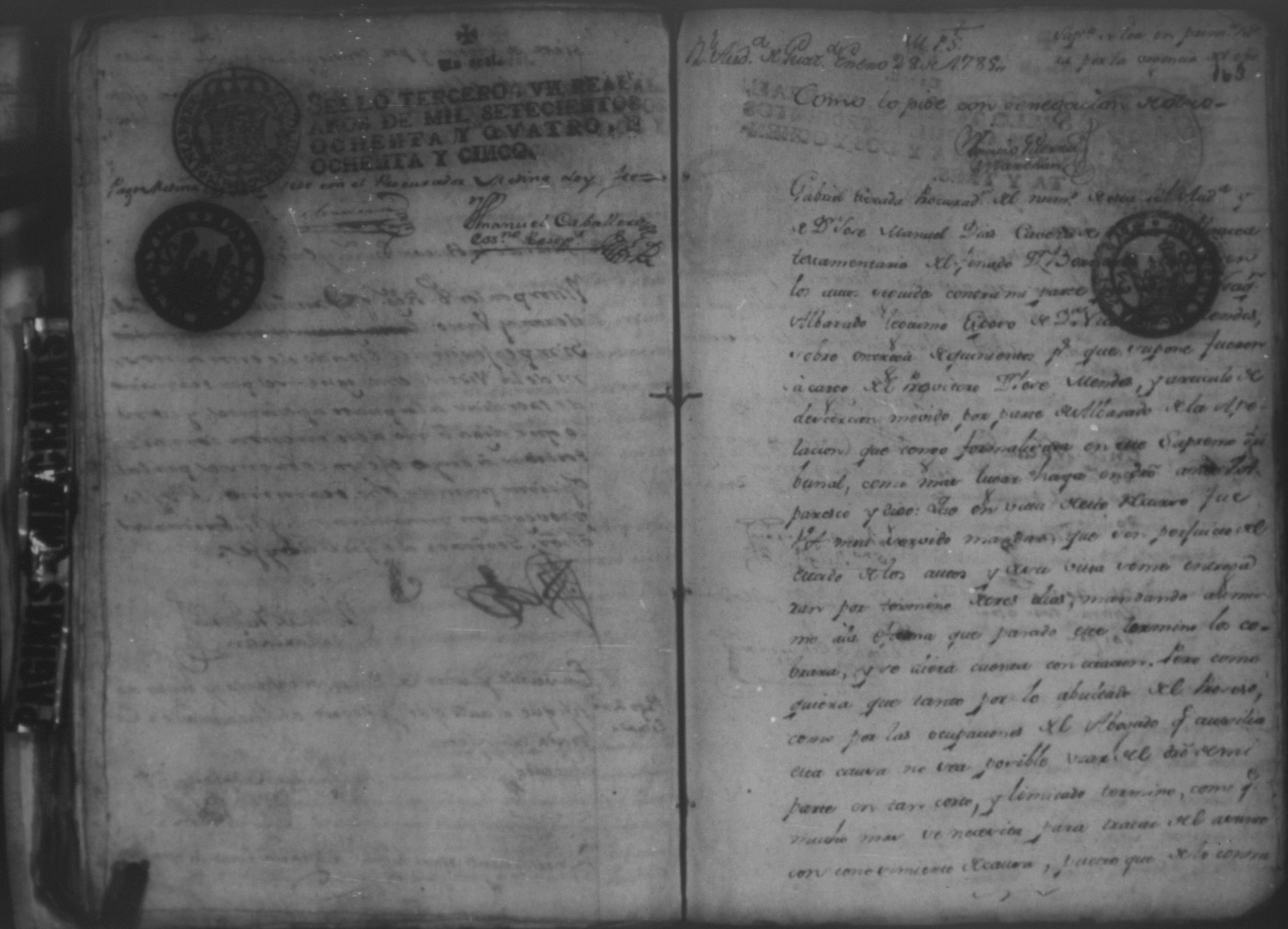 Temática: León, 1785. Testimonio de los Autos que se trajeron por Apelación de lo determinado por el alcalde ordinario de primer voto de León en la ynstancia de don Juaquin Alvarado marido y conjunta persona de doña Nicolasa Méndez de Figueroa contra don Manuel Díaz Caveza de Baca por quinientos pesos y reditos tantos de la testamentaria de don Bernardo Méndez