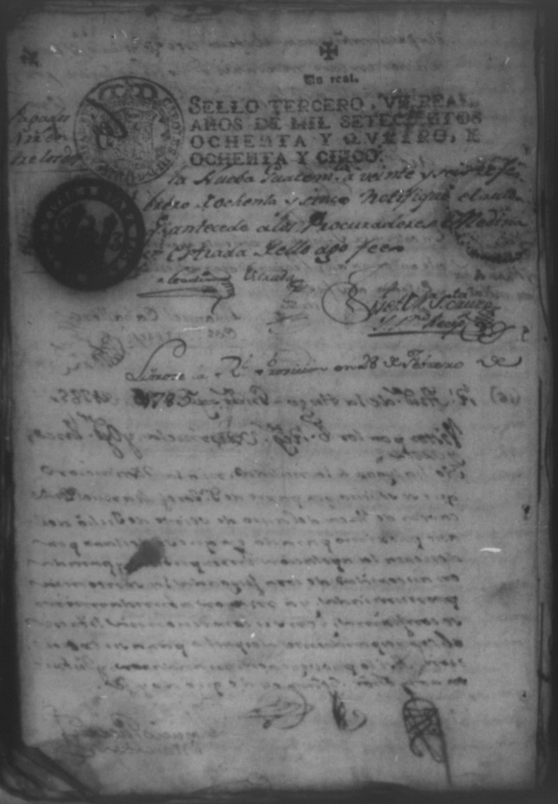 Temática: León, 1785. Testimonio de los Autos que se trajeron por Apelación de lo determinado por el alcalde ordinario de primer voto de León en la ynstancia de don Juaquin Alvarado marido y conjunta persona de doña Nicolasa Méndez de Figueroa contra don Manuel Díaz Caveza de Baca por quinientos pesos y reditos tantos de la testamentaria de don Bernardo Méndez