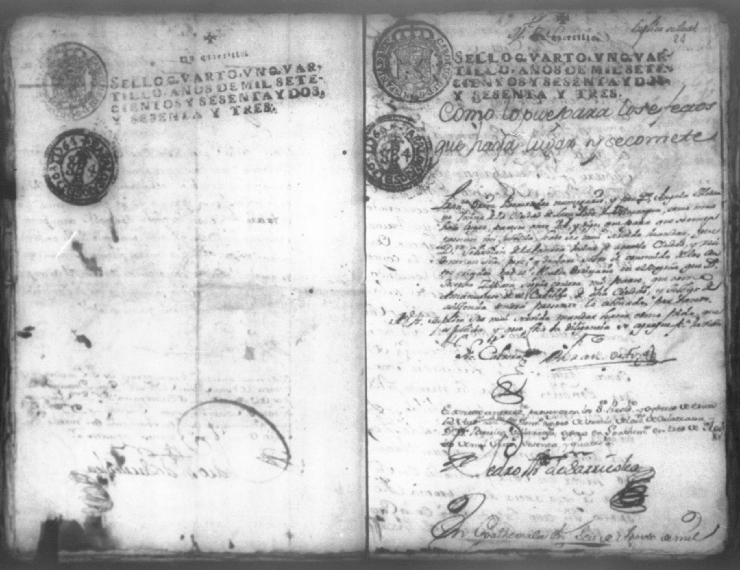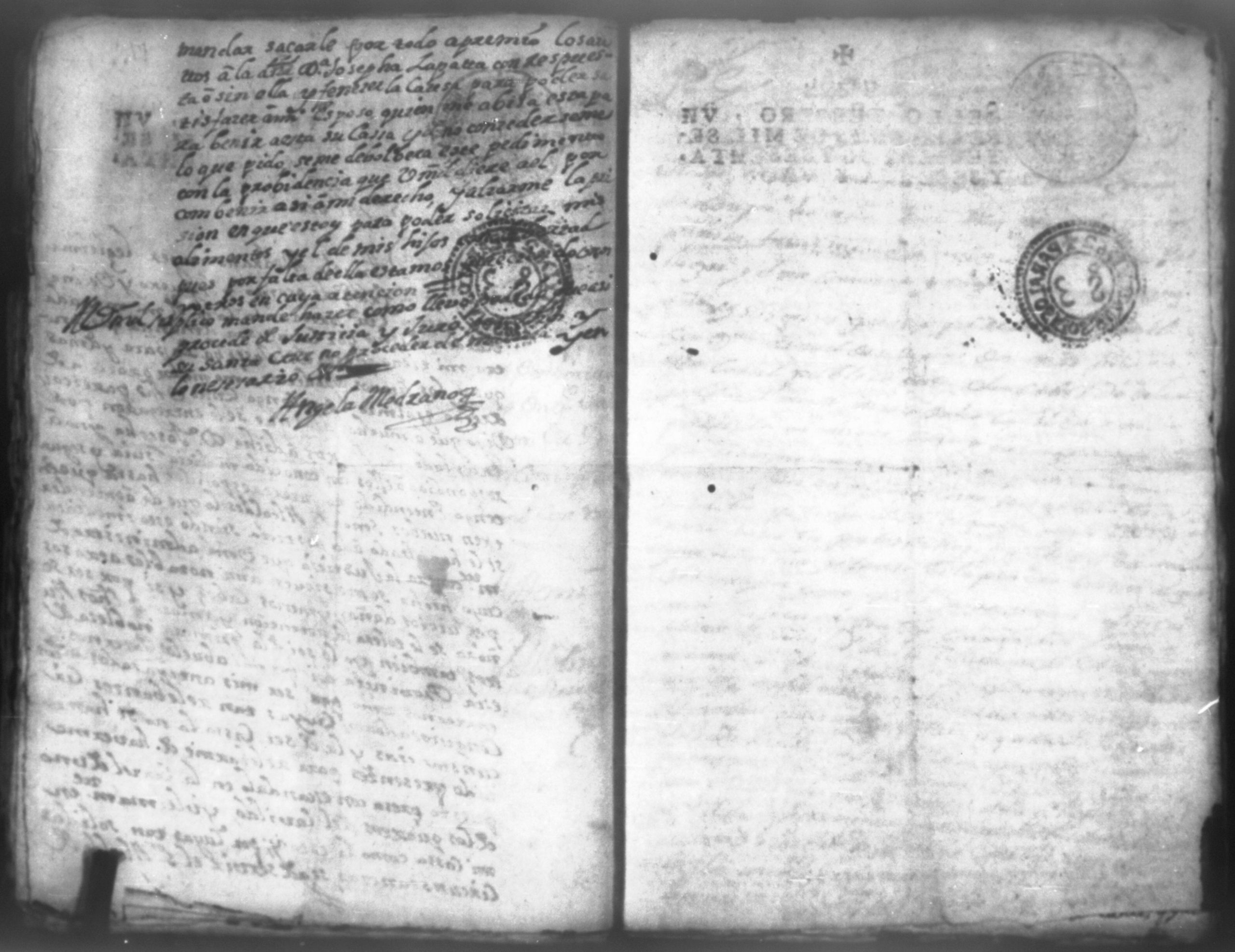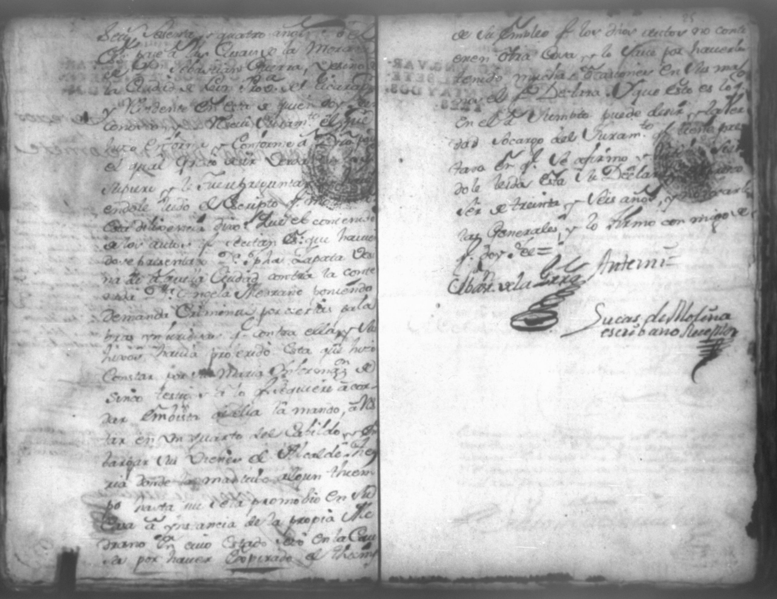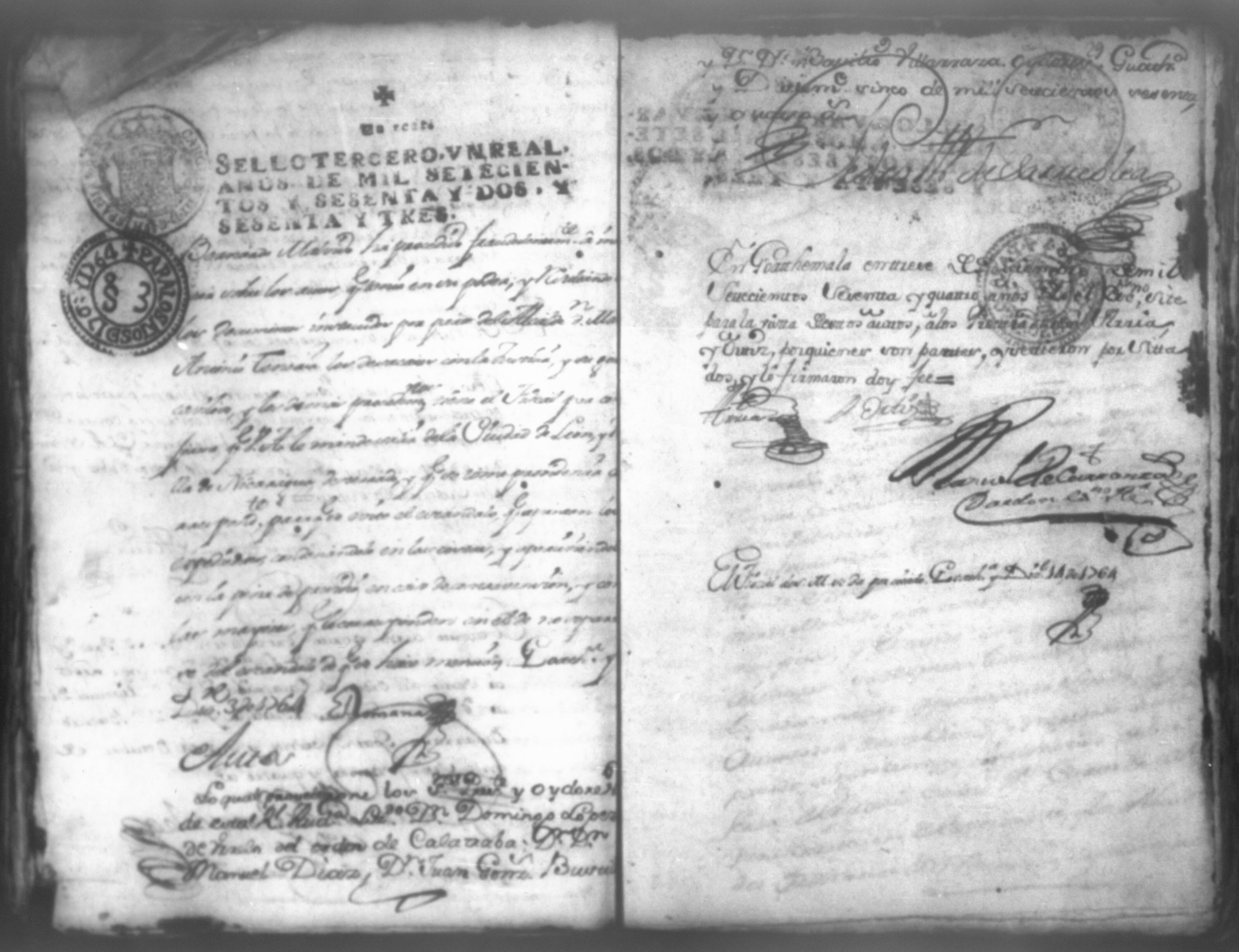 Temática: Don Manuel Antonio de Thelleria Alferes Mayor […] de Cano desta ciudad Ante Vuestra Majestad paresco y digo: que ami derecho combiene se sirva Vuestra Majestad hacer comparecer ante si al Capitan Don Francisco Altamirano y Velasco y a Don Francisco de Oses y debajo de la [relicencia] del juramento. Criminal. 1763. Contra Bernardo de Malvido.