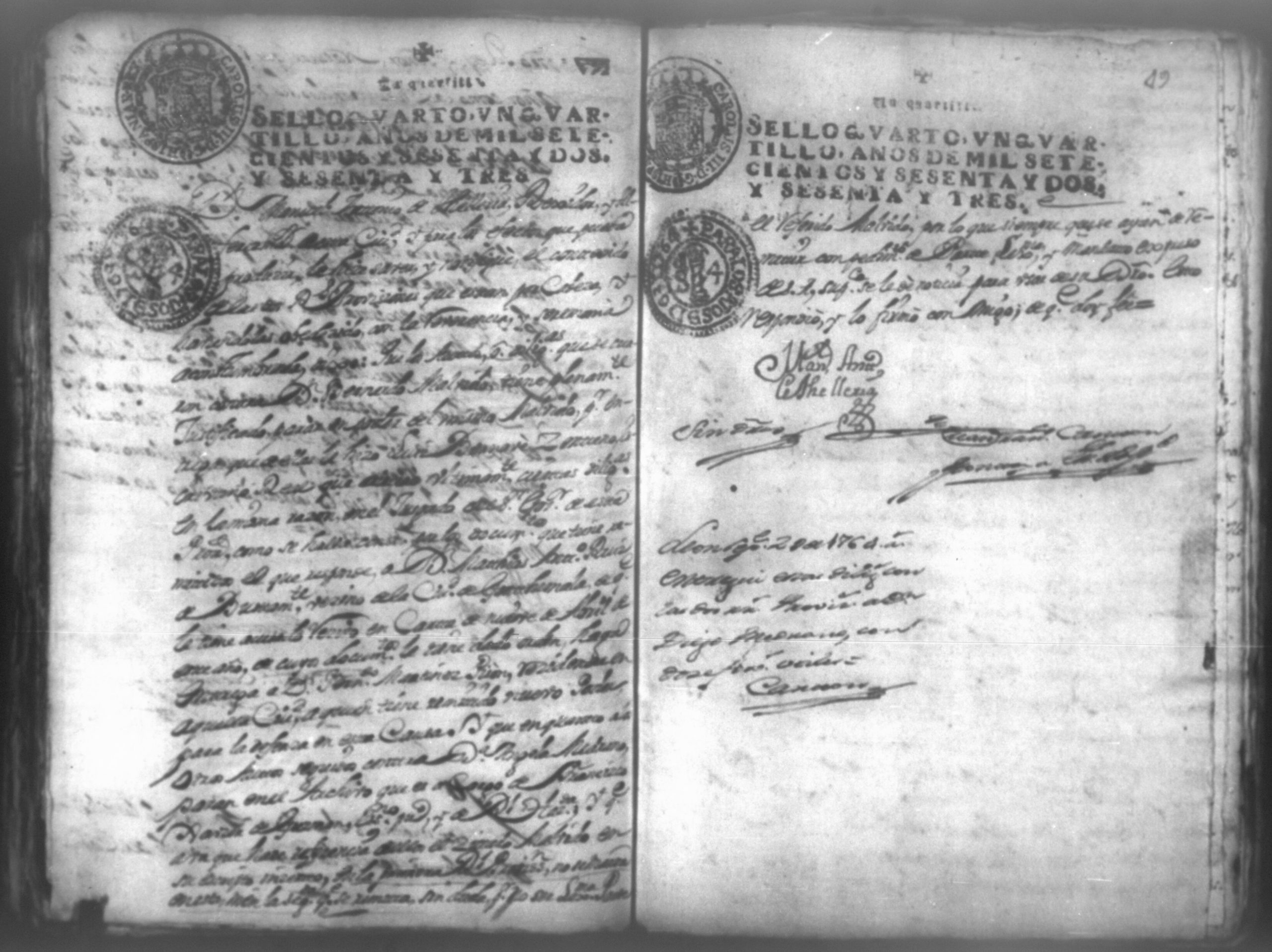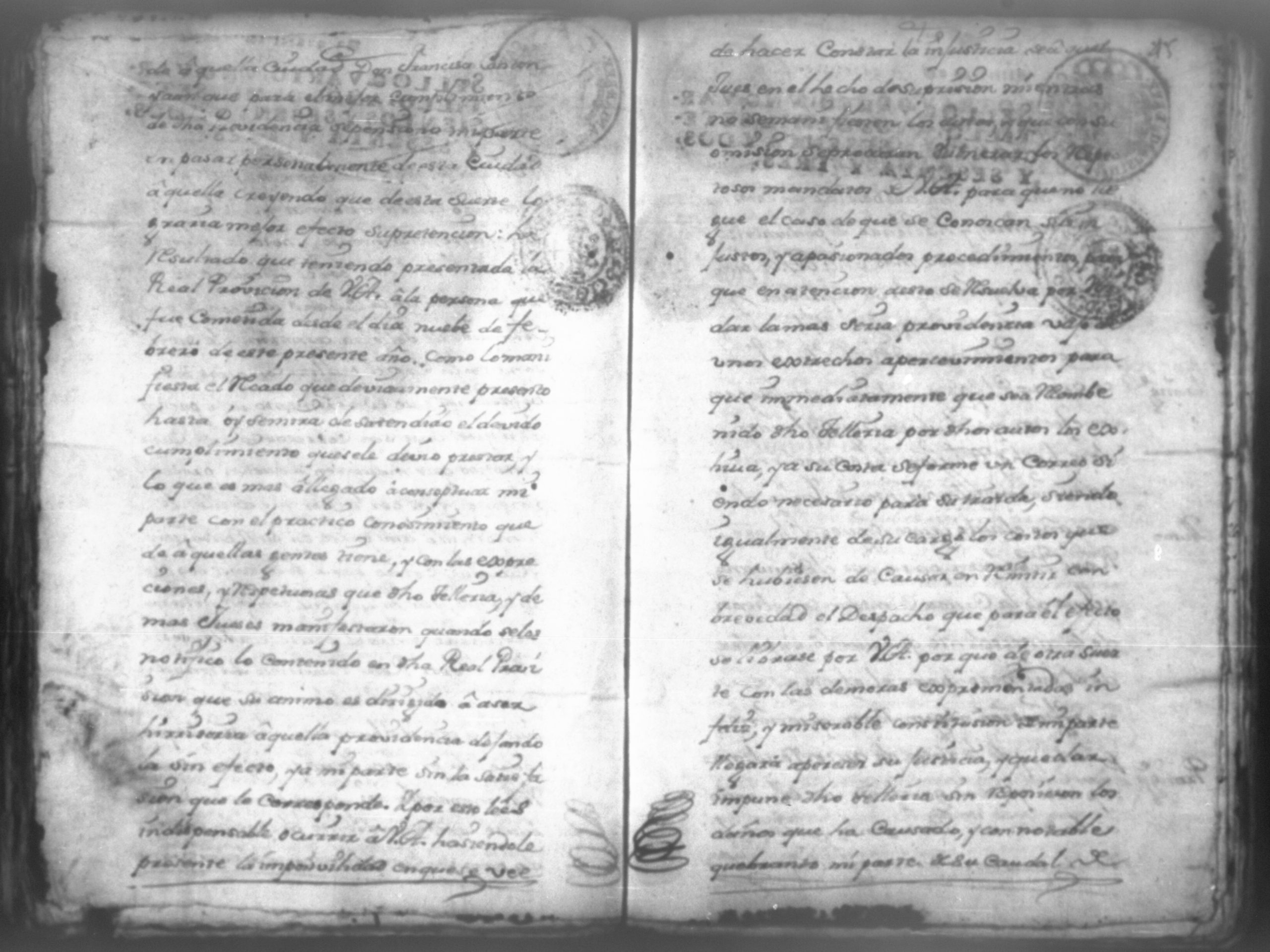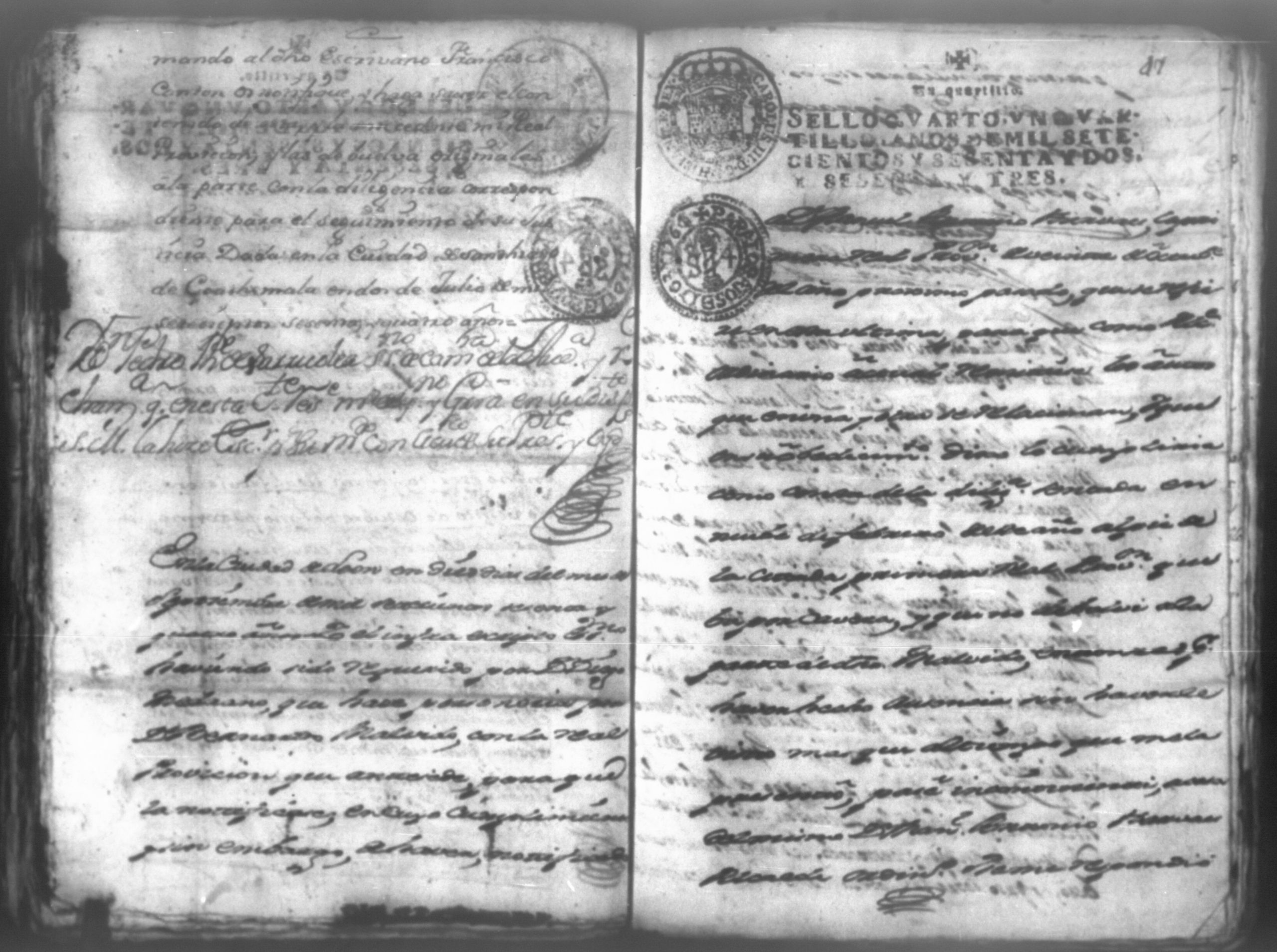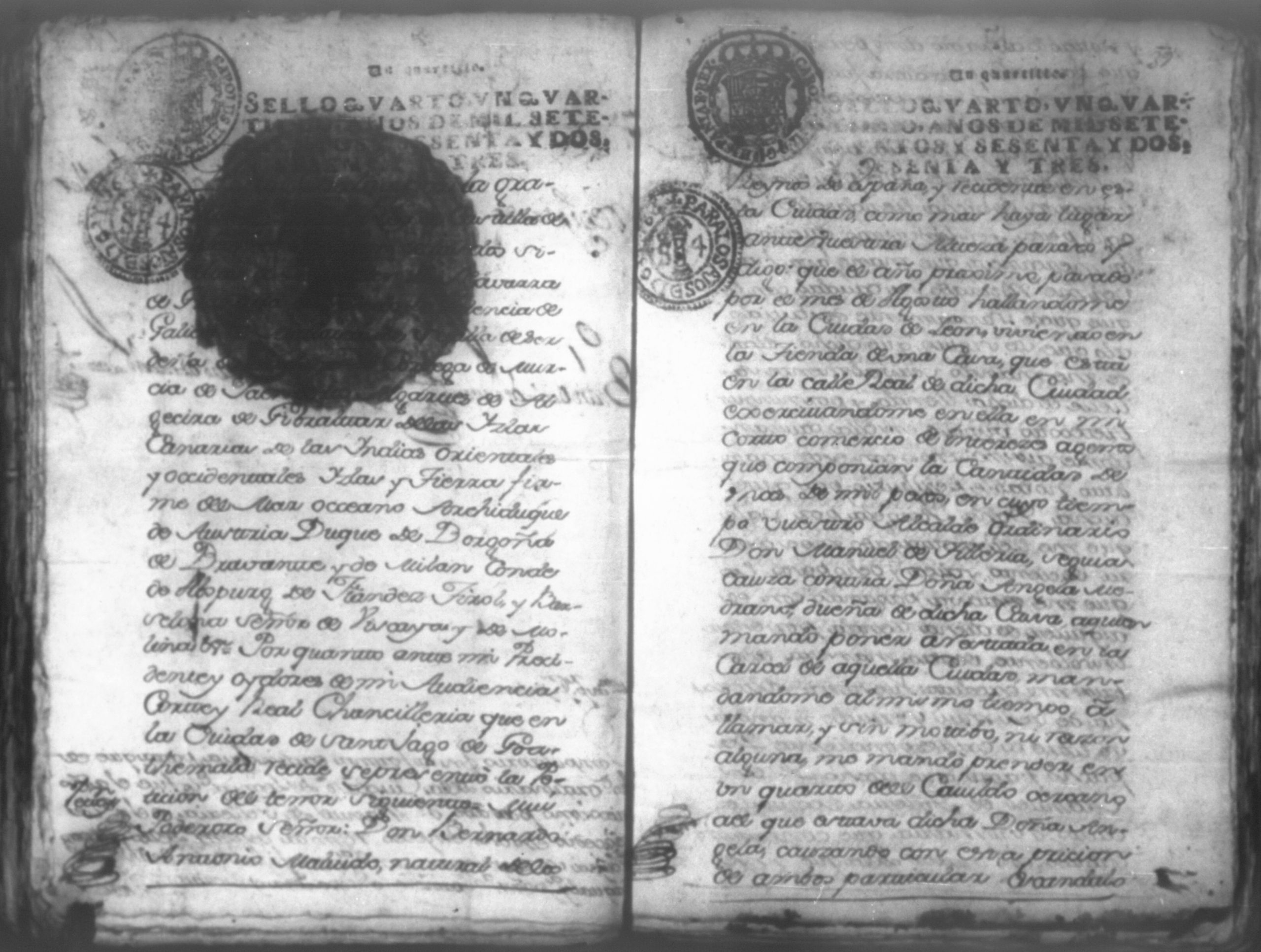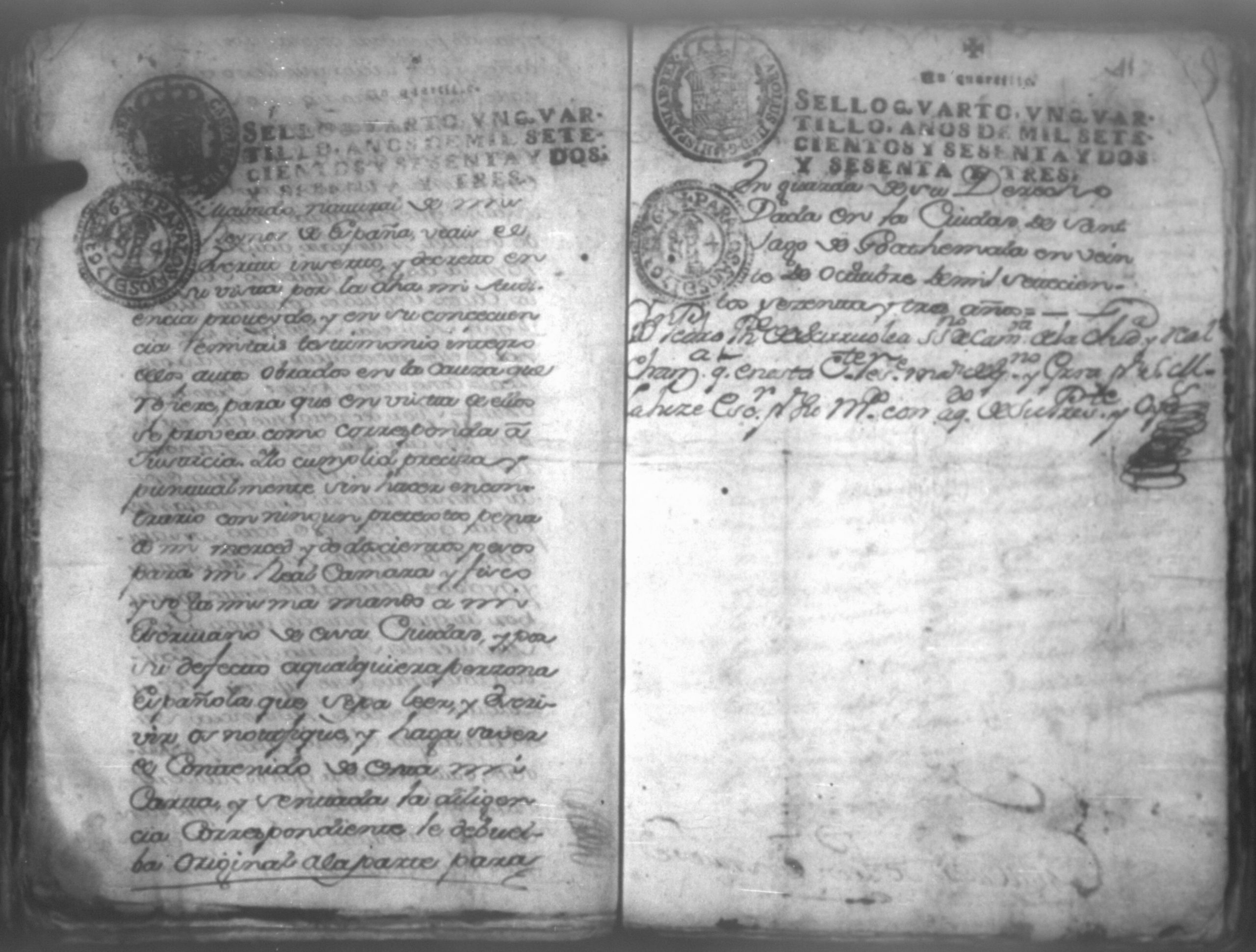Temática: Don Manuel Antonio de Thelleria Alferes Mayor […] de Cano desta ciudad Ante Vuestra Majestad paresco y digo: que ami derecho combiene se sirva Vuestra Majestad hacer comparecer ante si al Capitan Don Francisco Altamirano y Velasco y a Don Francisco de Oses y debajo de la [relicencia] del juramento. Criminal. 1763. Contra Bernardo de Malvido.