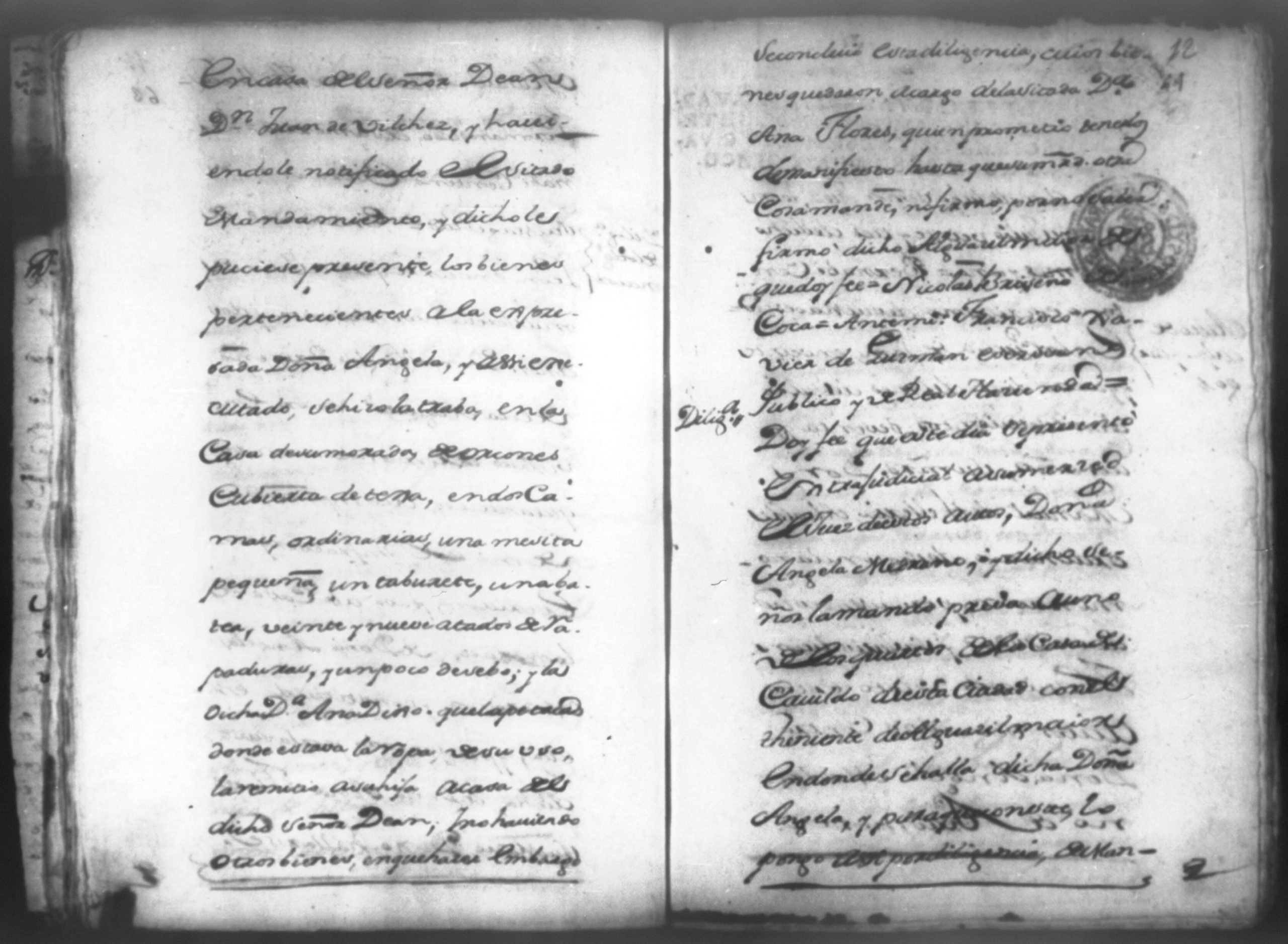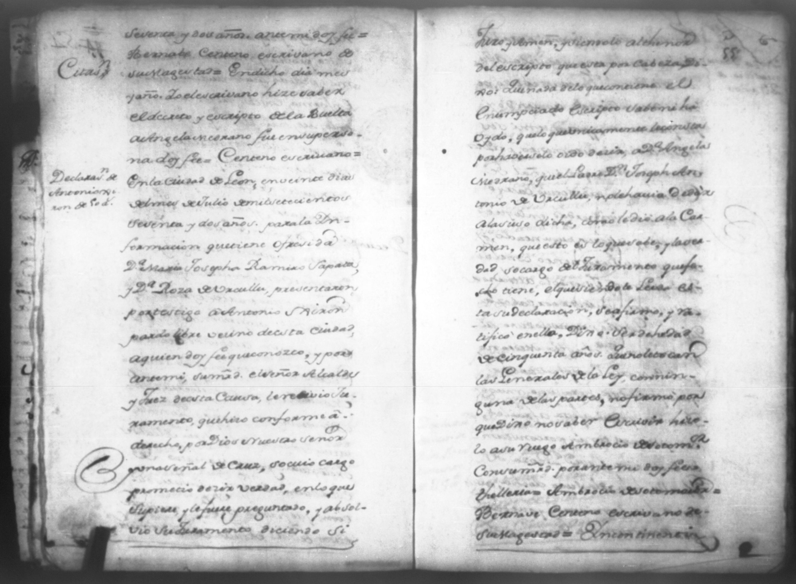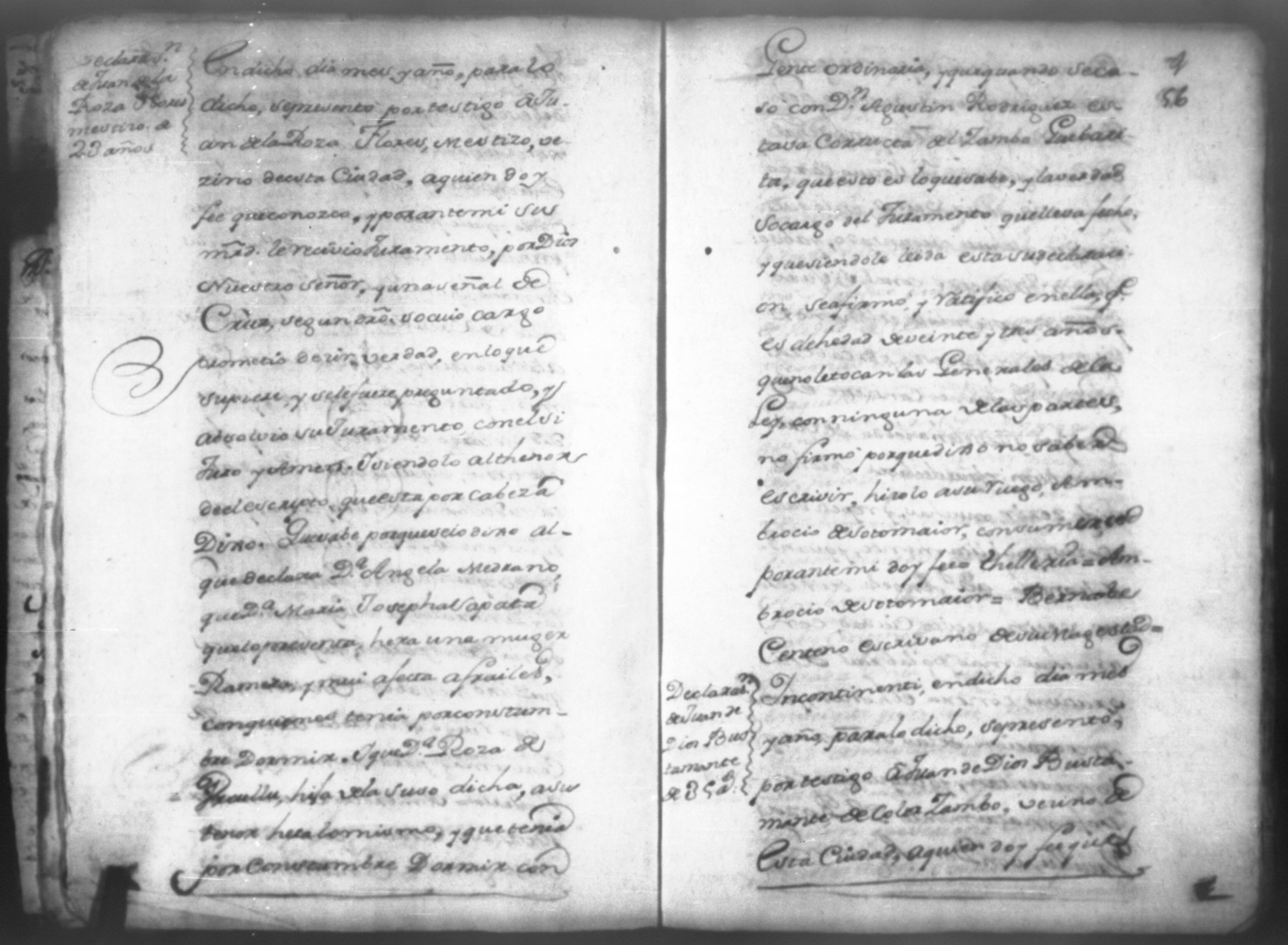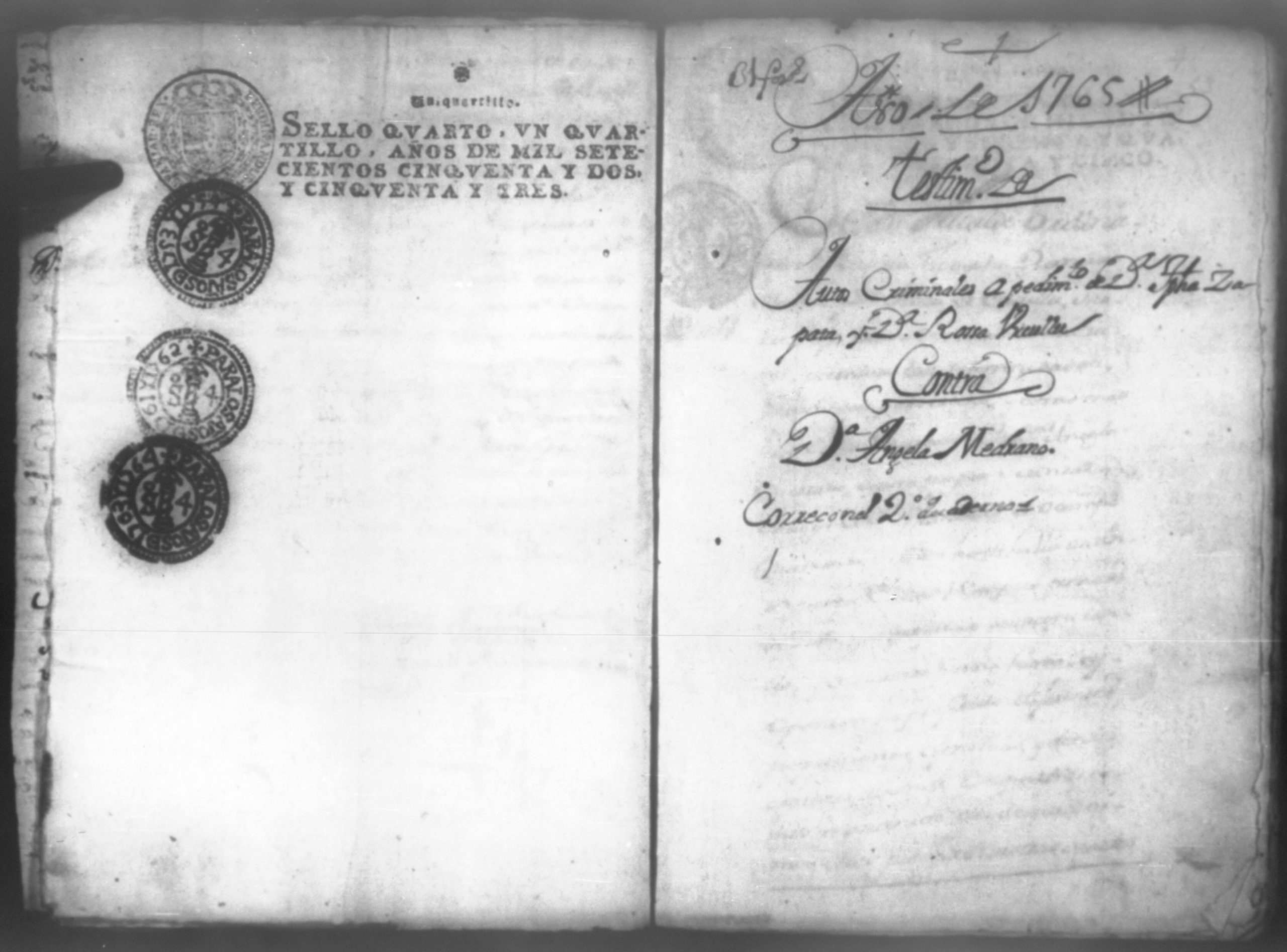 Temática: Don Manuel Antonio de Thelleria Alferes Mayor […] de Cano desta ciudad Ante Vuestra Majestad paresco y digo: que ami derecho combiene se sirva Vuestra Majestad hacer comparecer ante si al Capitan Don Francisco Altamirano y Velasco y a Don Francisco de Oses y debajo de la [relicencia] del juramento. Criminal. 1763. Contra Bernardo de Malvido.